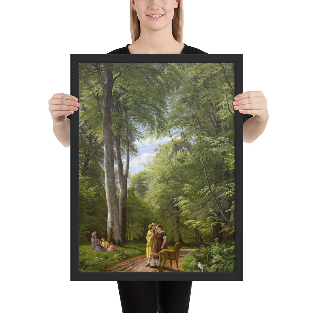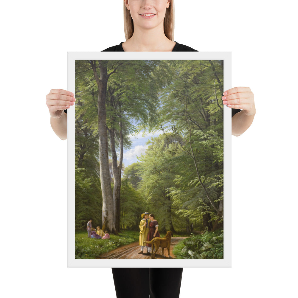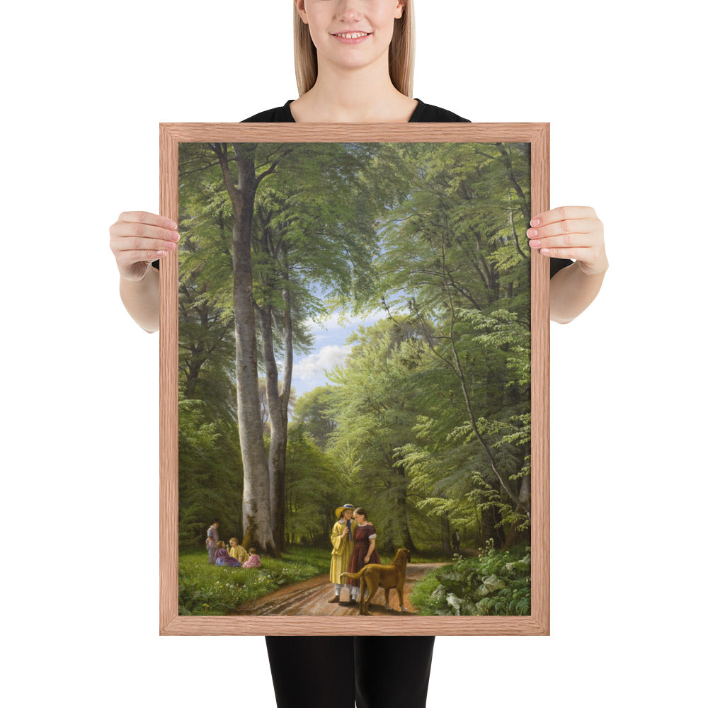 Invite the calm elegance of Danish Romanticism into your space with P. C. Skovgaard’s A Beech Wood in May near Iselingen Manor, Zealand. This exquisite 19th‑century landscape captures the fresh vitality of spring, with sunlit beech trees, dappled forest paths, and figures enjoying a leisurely day in nature. Skovgaard’s masterful brushwork and harmonious palette evoke both the grandeur of the natural world and the quiet joy of human connection. Perfect for nature lovers, art collectors, and those seeking a peaceful yet sophisticated focal point for their home or office