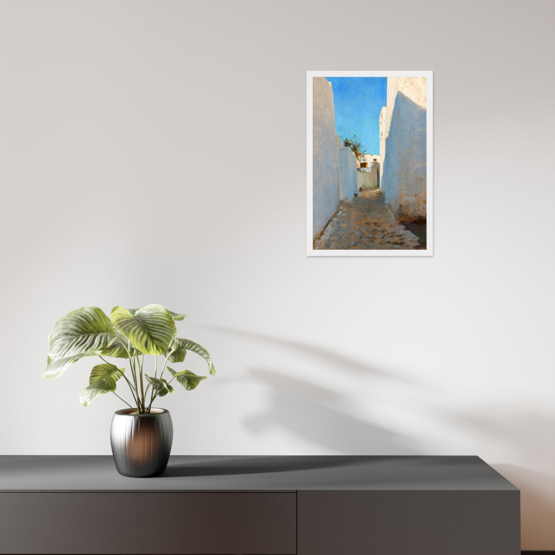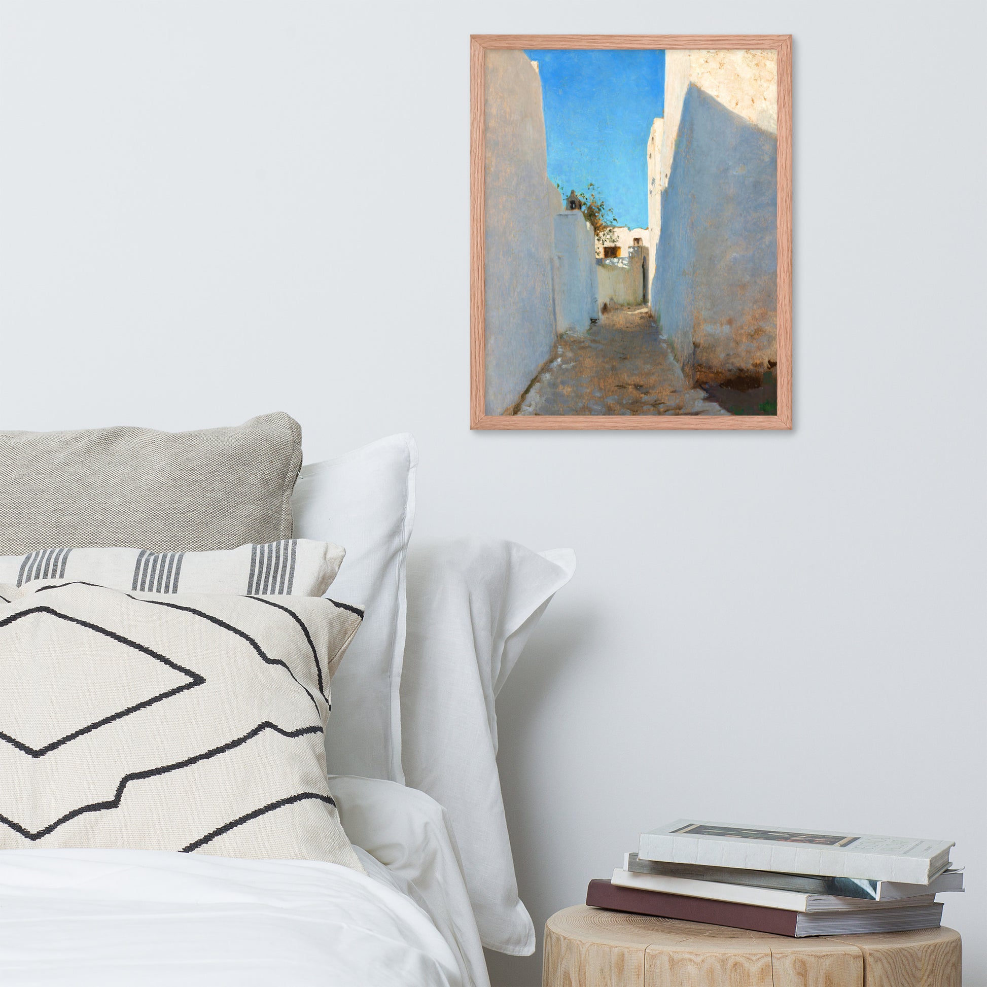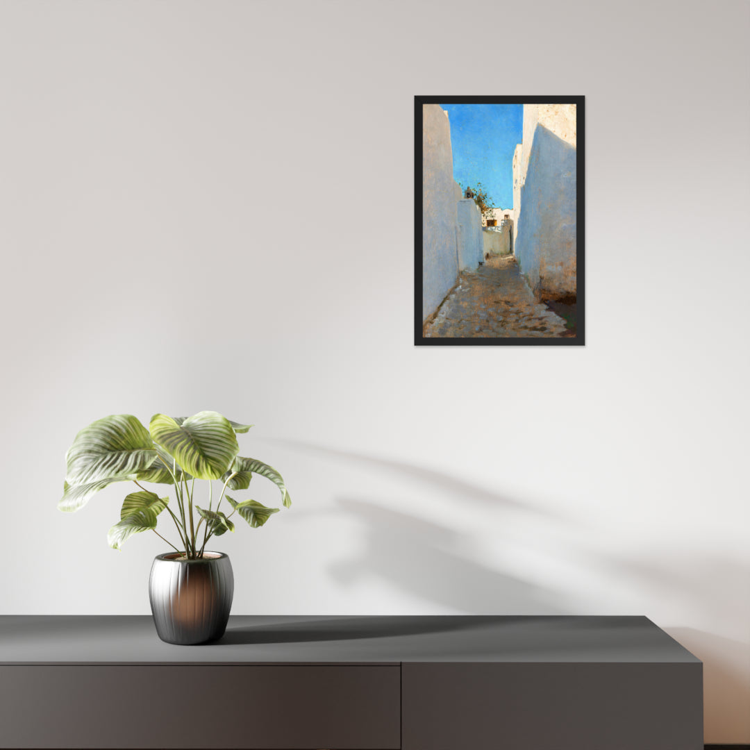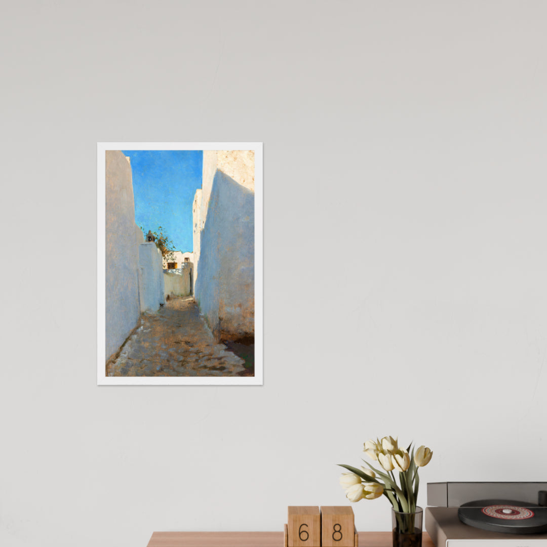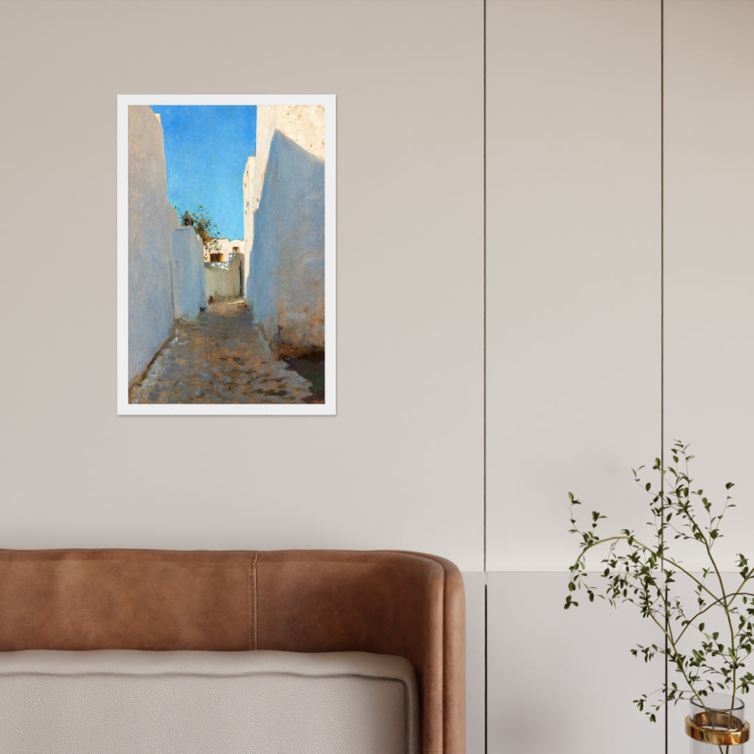 John Singer Sargent’s A Moroccan Street Scene captures the warmth and atmosphere of sunlit walls and narrow passageways with impressionist brilliance. This elegant wall art print brings the charm of Morocco to life, showcasing Sargent’s mastery of light, shadow, and texture. A timeless impressionist artwork, it adds sophistication and a sense of travel-inspired serenity to any space.
