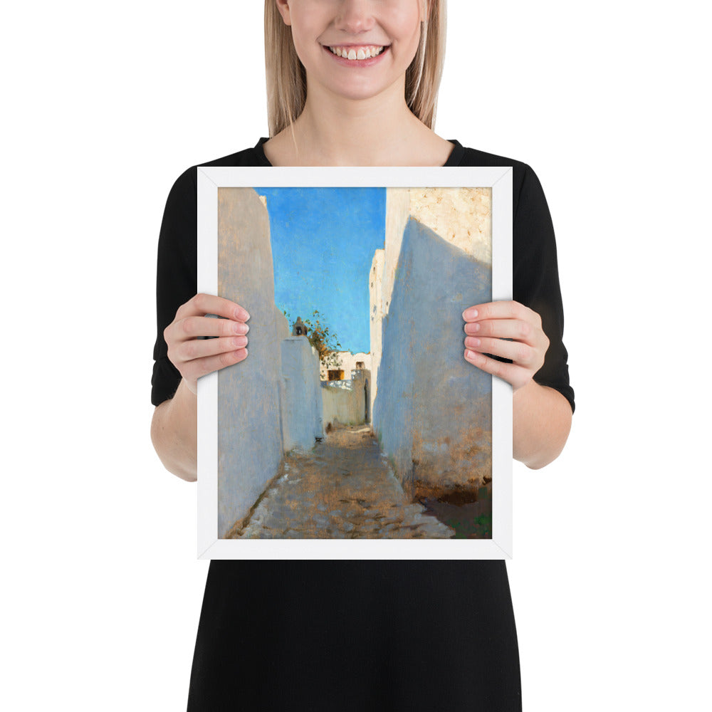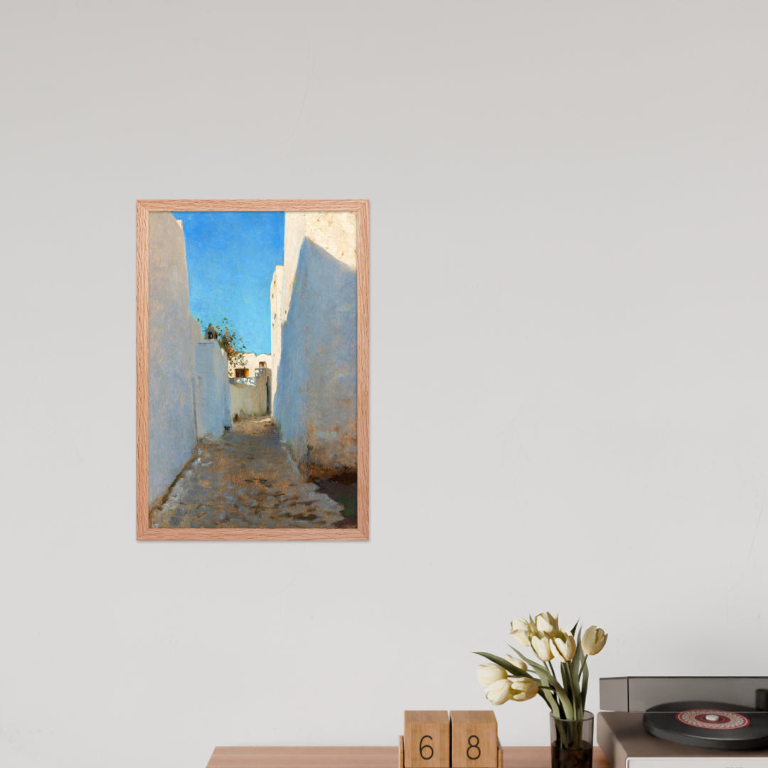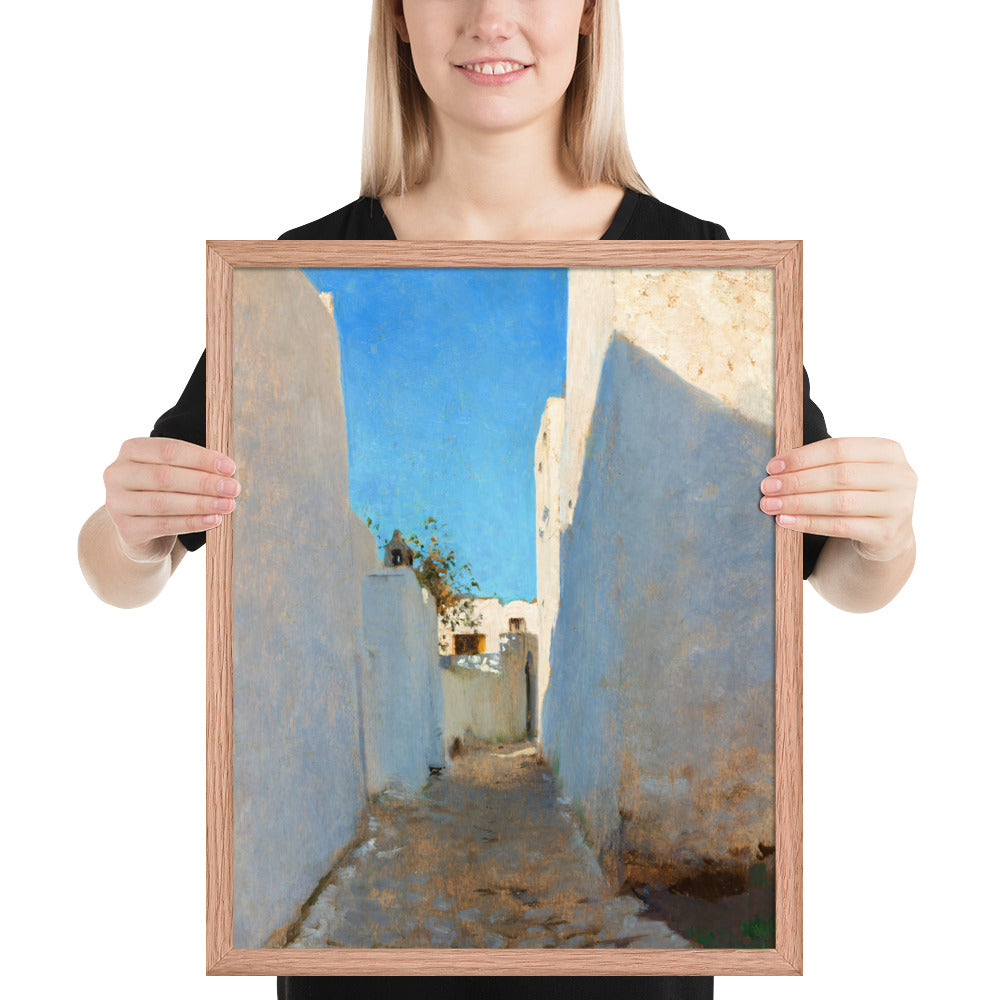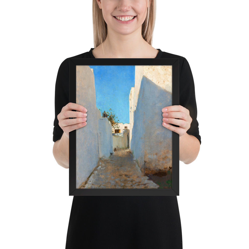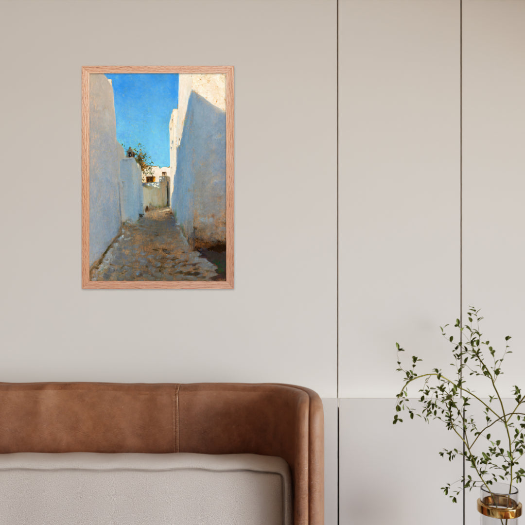 John Singer Sargent’s A Moroccan Street Scene captures the warmth and atmosphere of sunlit walls and narrow passageways with impressionist brilliance. This elegant wall art print brings the charm of Morocco to life, showcasing Sargent’s mastery of light, shadow, and texture. A timeless impressionist artwork, it adds sophistication and a sense of travel-inspired serenity to any space.