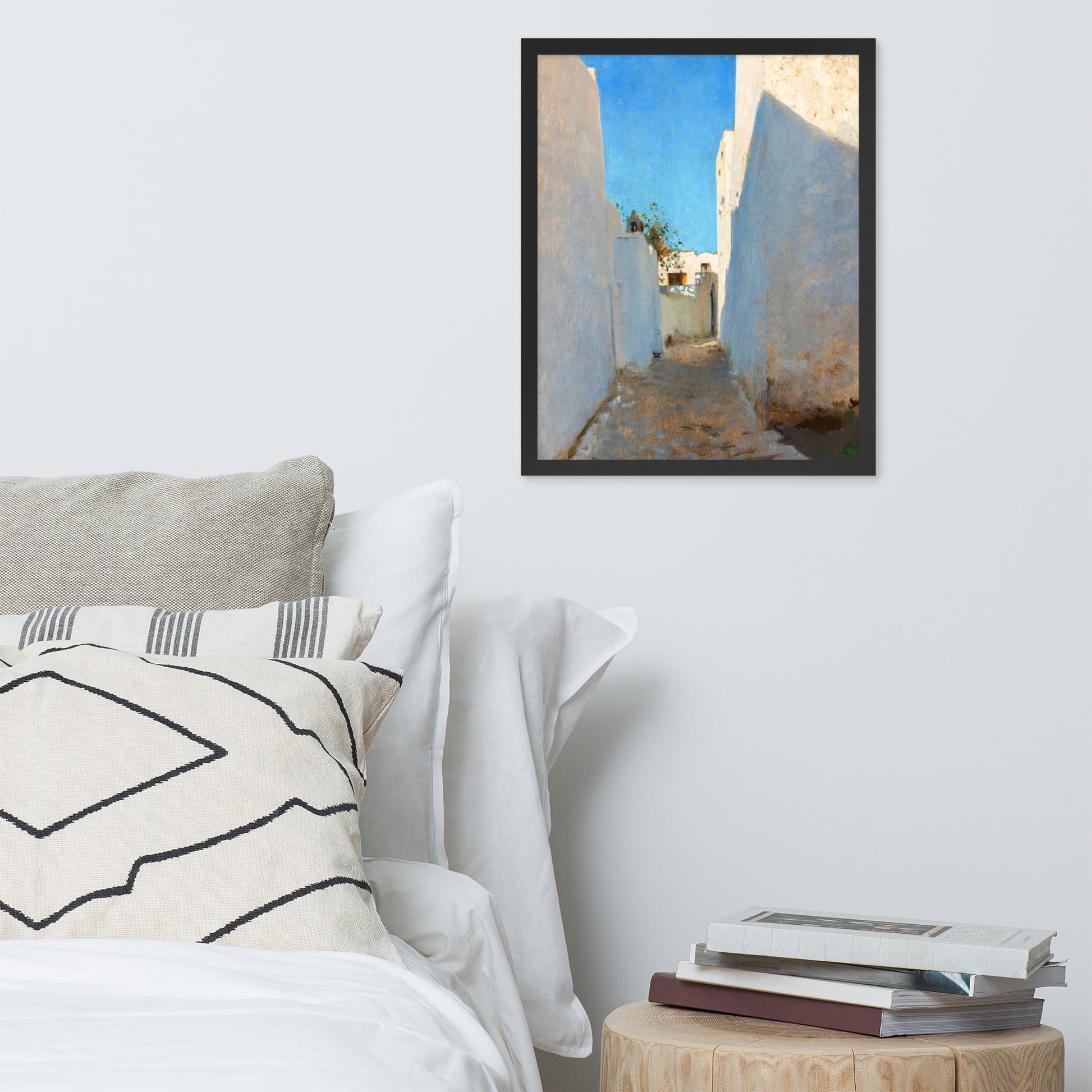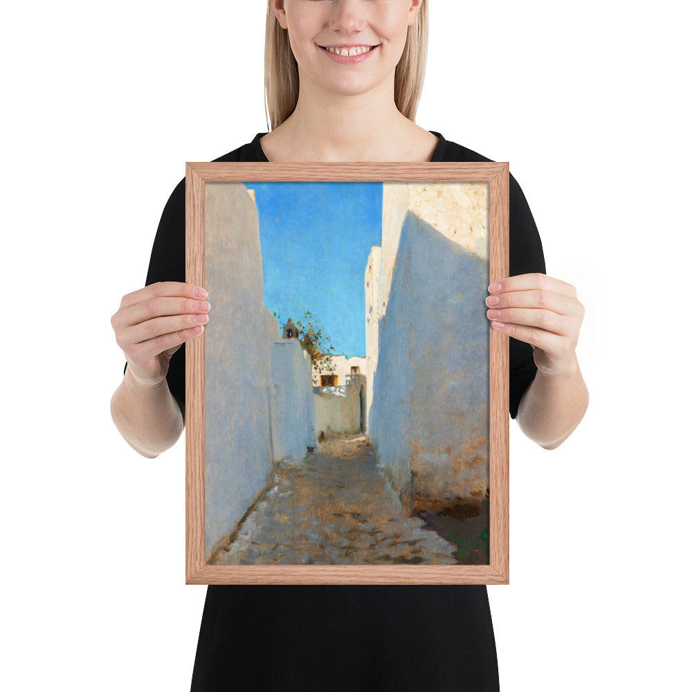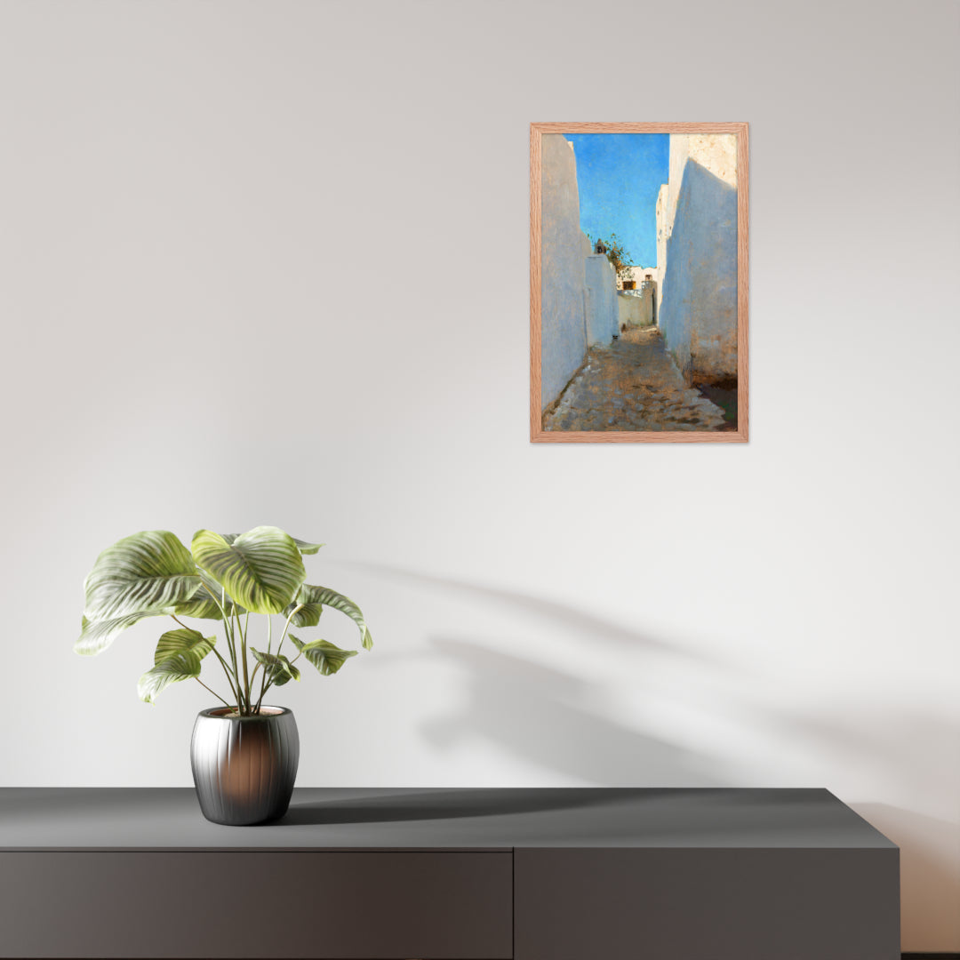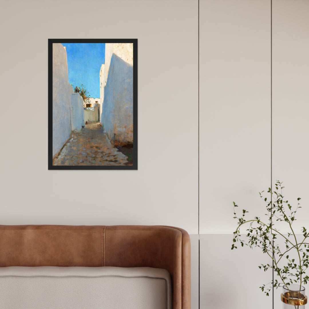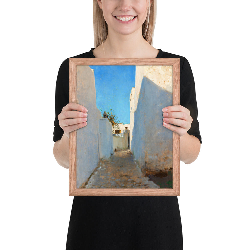 John Singer Sargent’s A Moroccan Street Scene captures the warmth and atmosphere of sunlit walls and narrow passageways with impressionist brilliance. This elegant wall art print brings the charm of Morocco to life, showcasing Sargent’s mastery of light, shadow, and texture. A timeless impressionist artwork, it adds sophistication and a sense of travel-inspired serenity to any space.