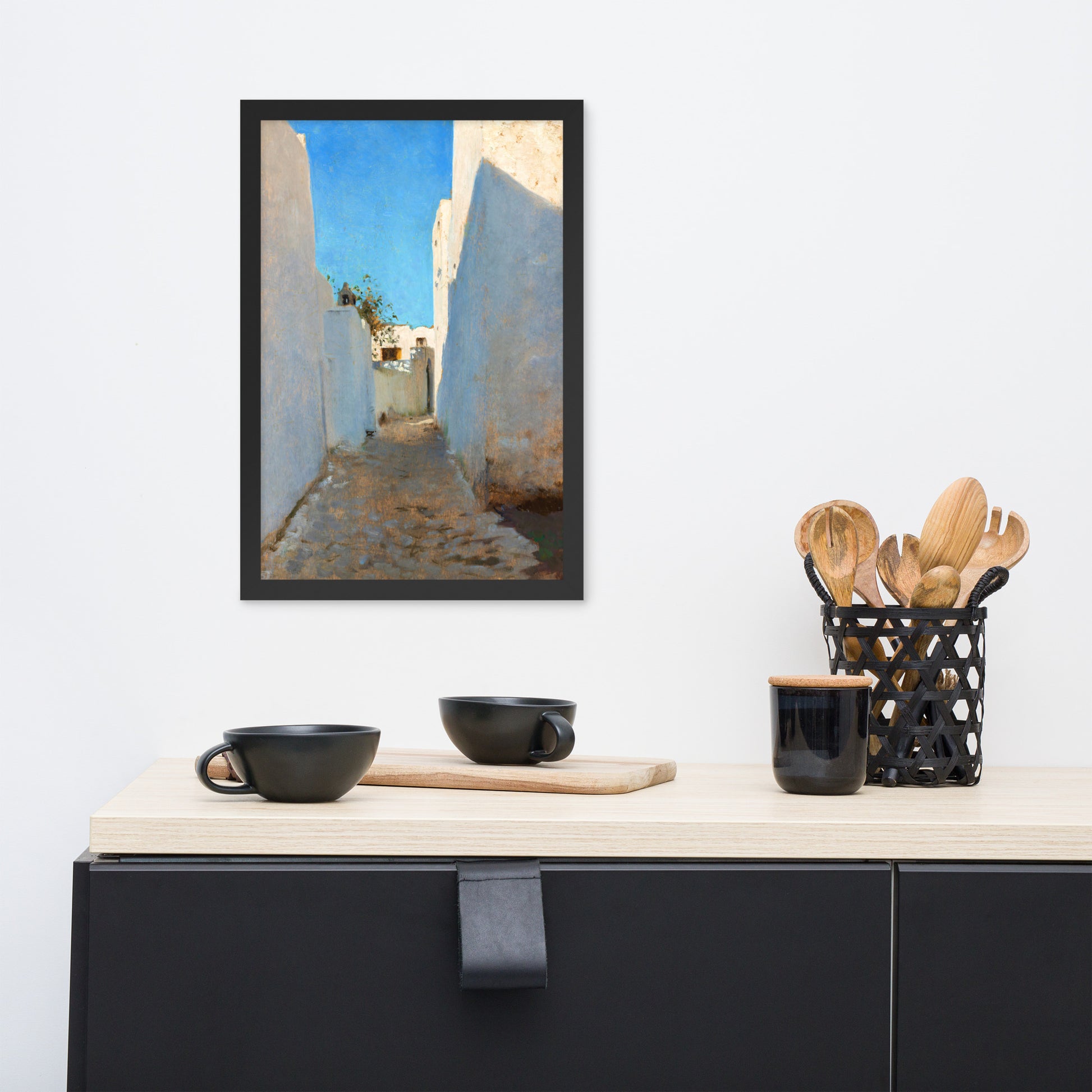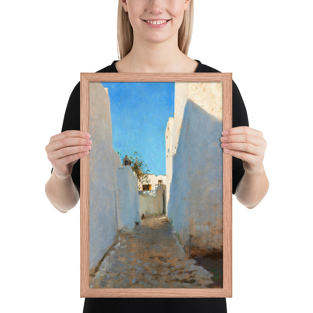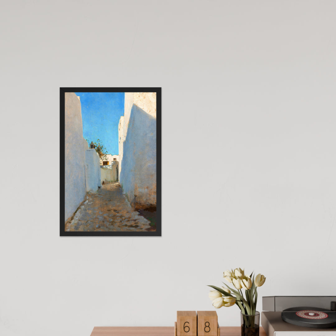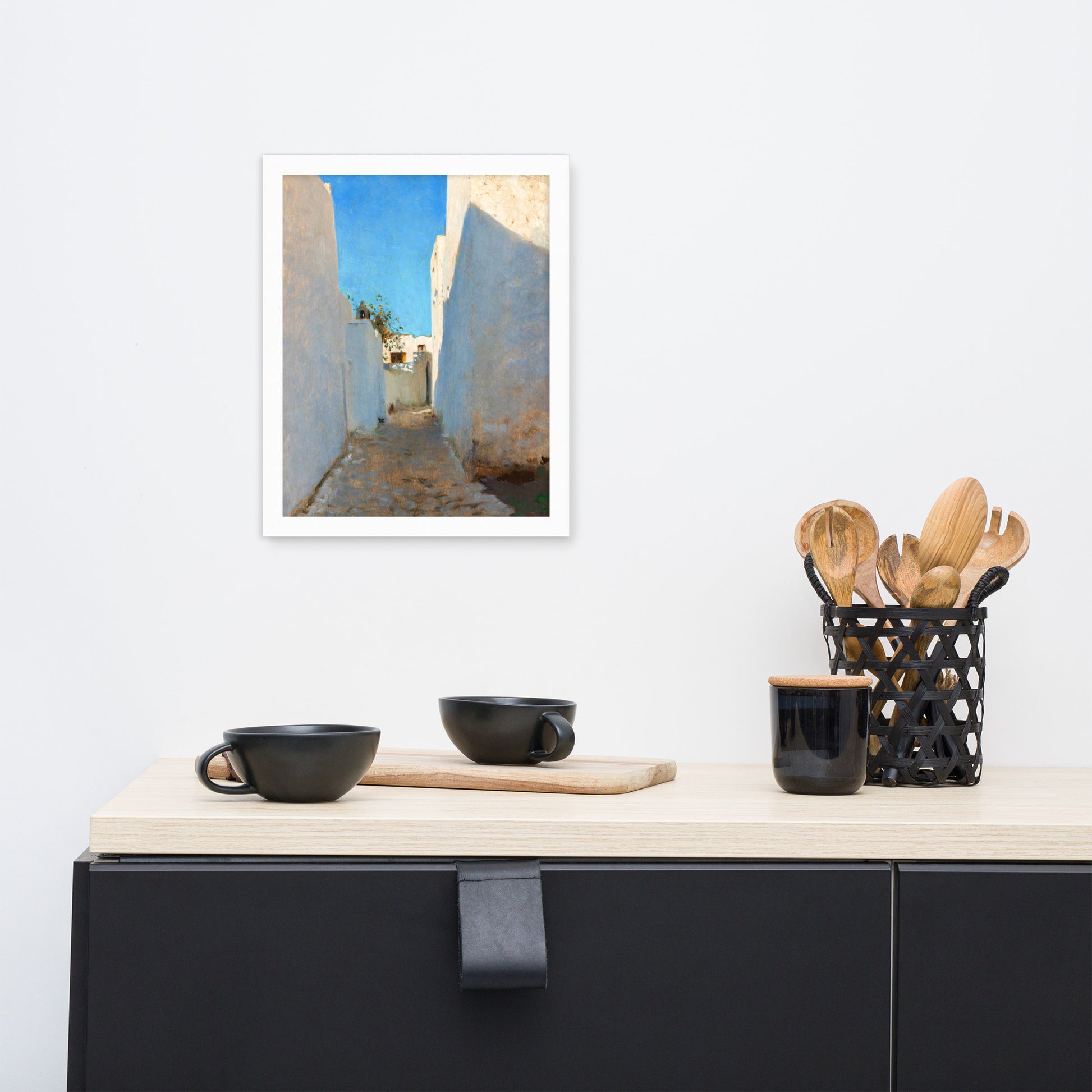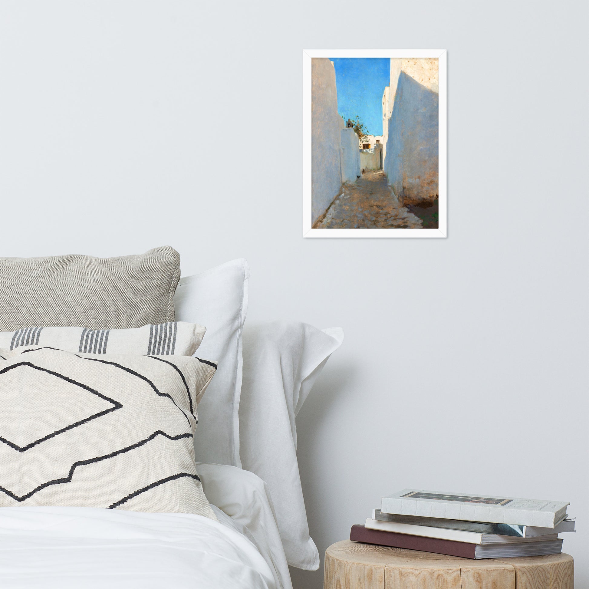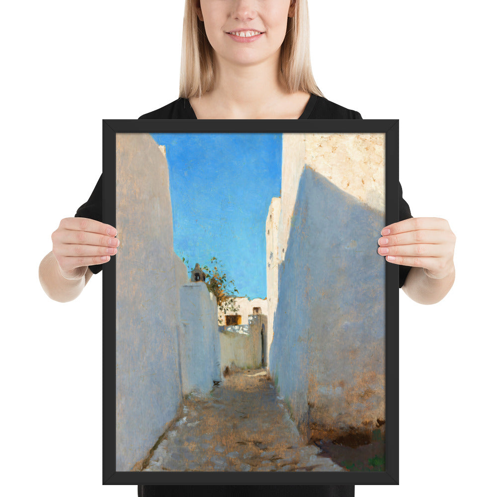John Singer Sargent’s A Moroccan Street Scene captures the warmth and atmosphere of sunlit walls and narrow passageways with impressionist brilliance. This elegant wall art print brings the charm of Morocco to life, showcasing Sargent’s mastery of light, shadow, and texture. A timeless impressionist artwork, it adds sophistication and a sense of travel-inspired serenity to any space.