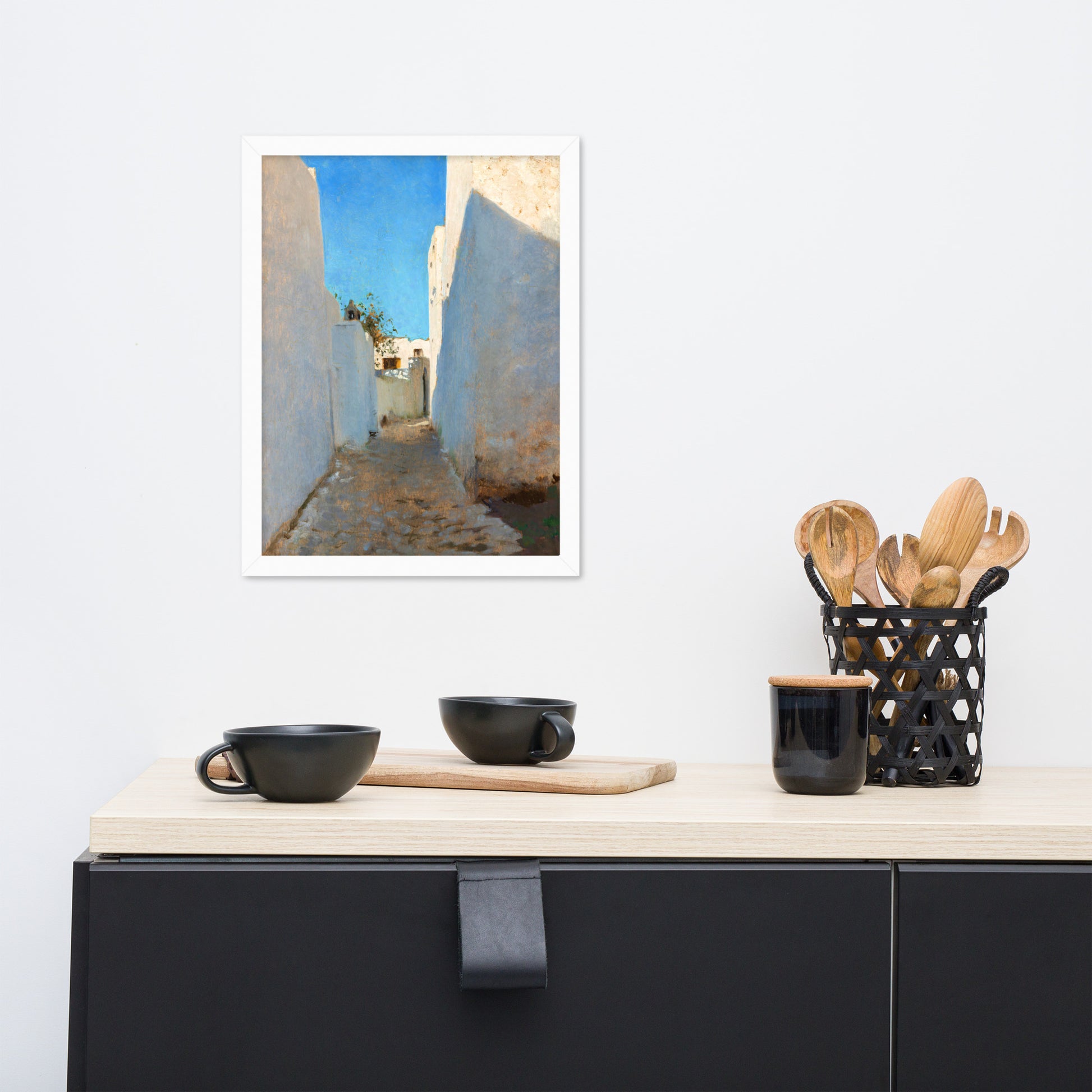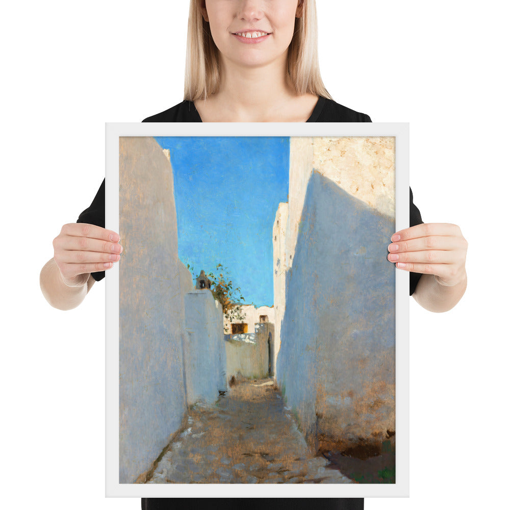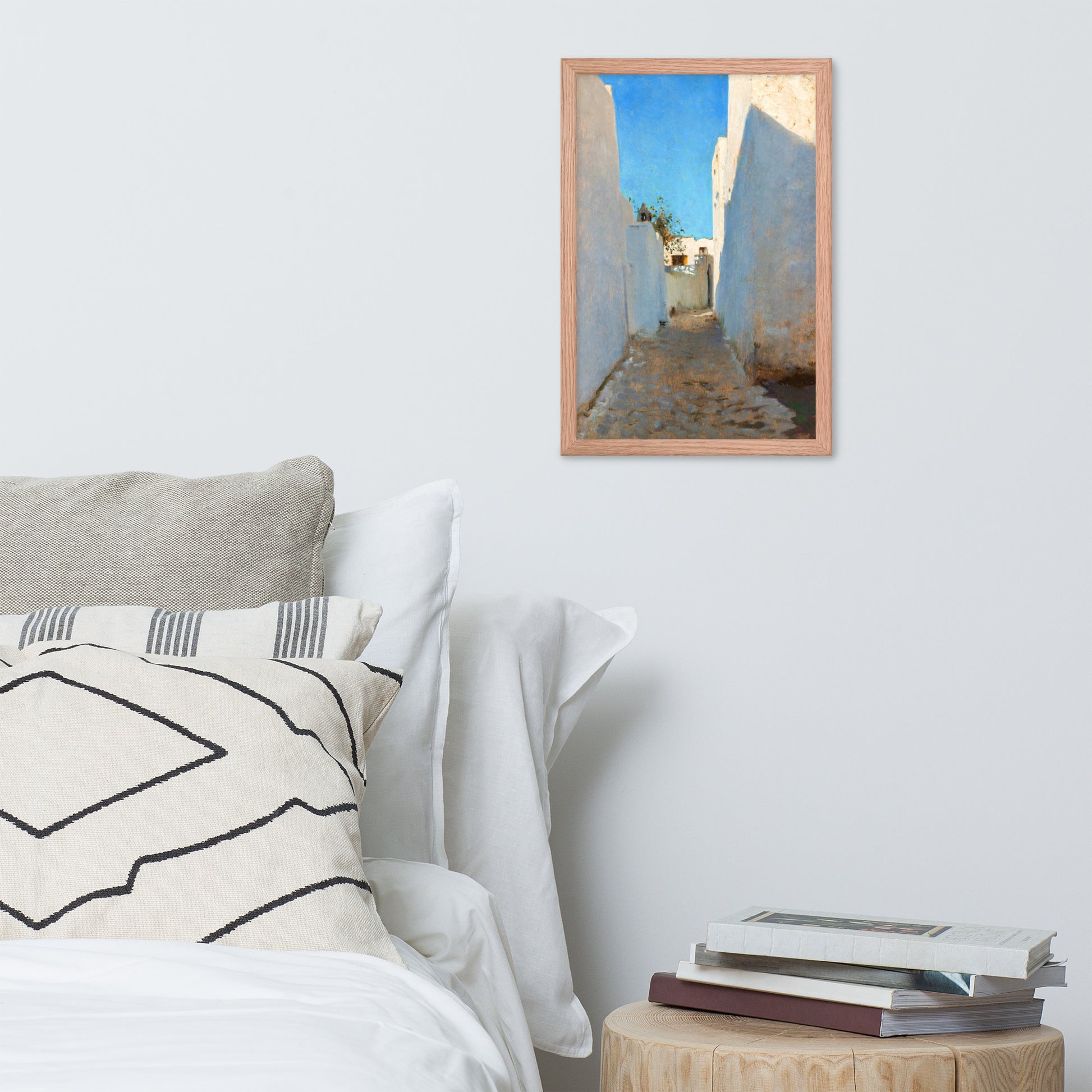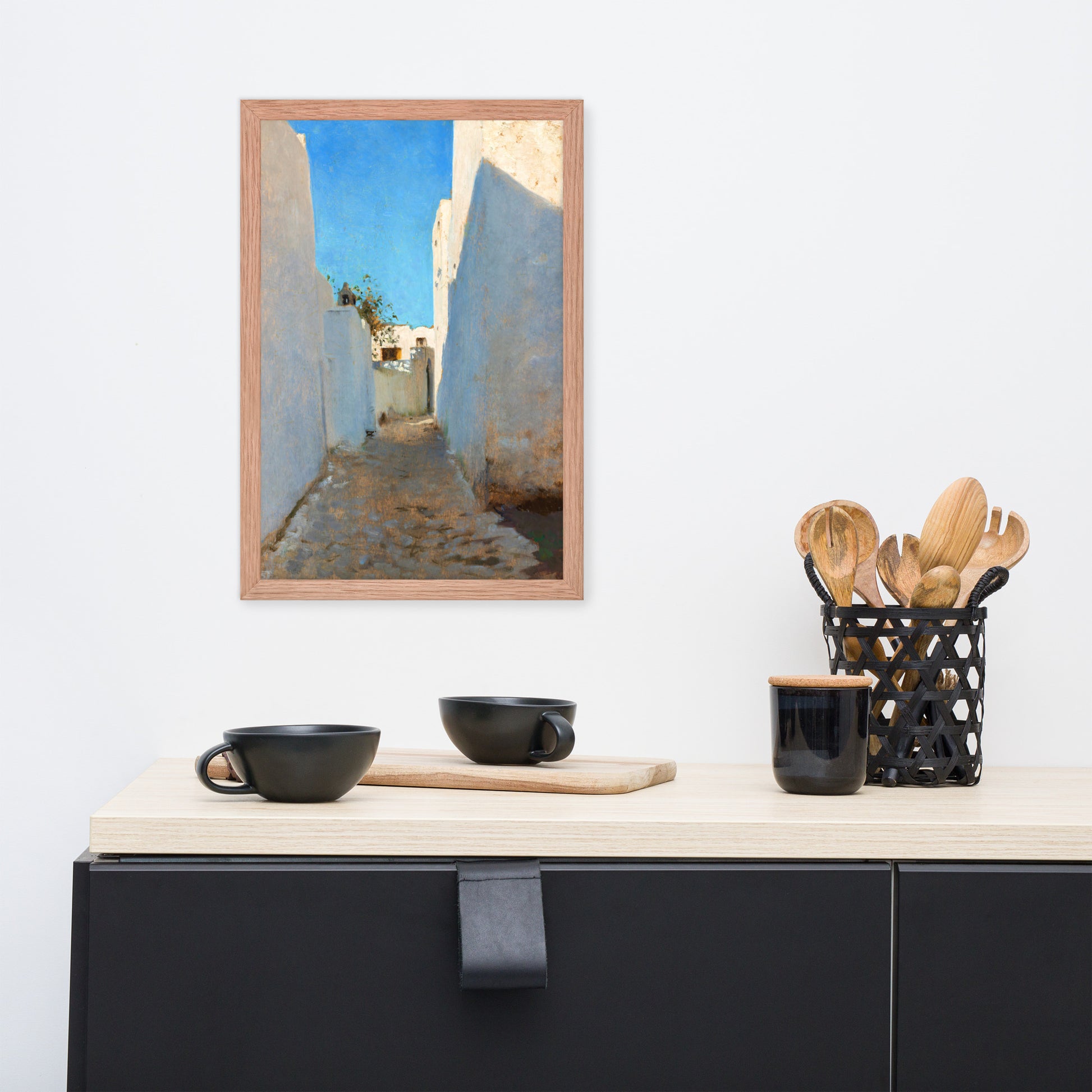 John Singer Sargent’s A Moroccan Street Scene captures the warmth and atmosphere of sunlit walls and narrow passageways with impressionist brilliance. This elegant wall art print brings the charm of Morocco to life, showcasing Sargent’s mastery of light, shadow, and texture. A timeless impressionist artwork, it adds sophistication and a sense of travel-inspired serenity to any space.