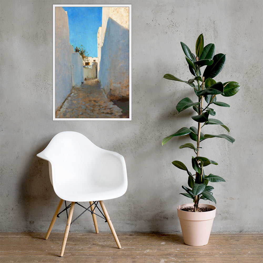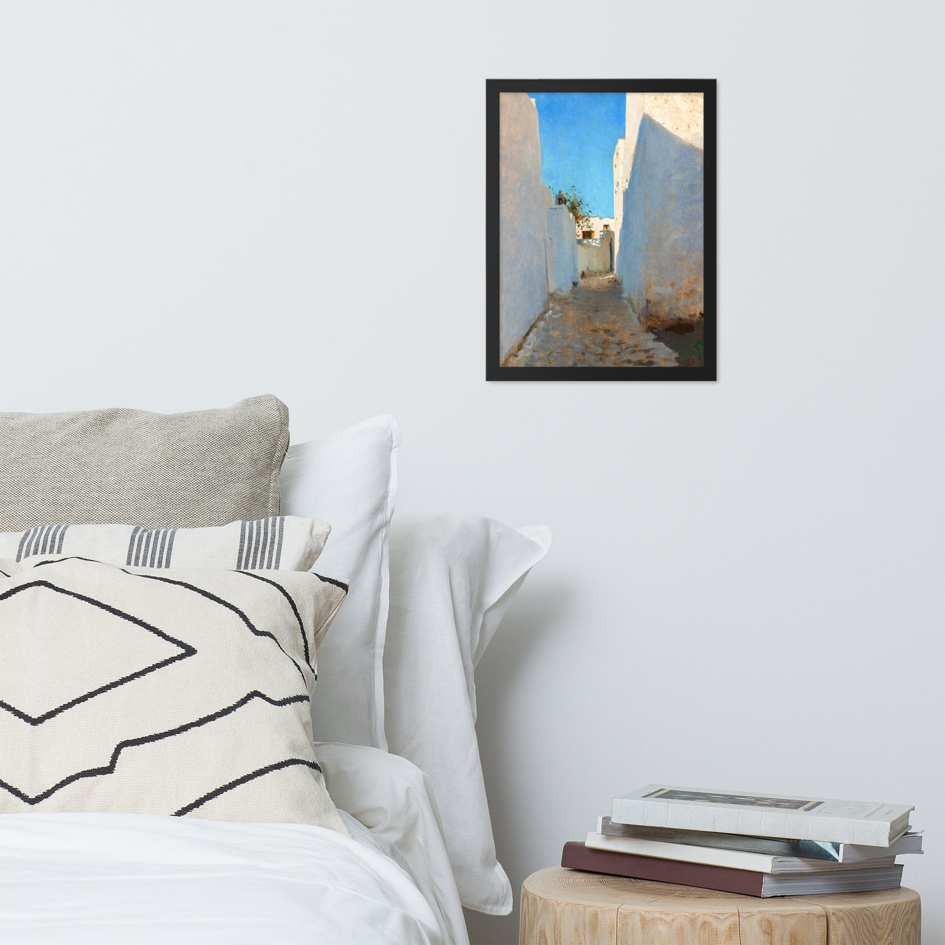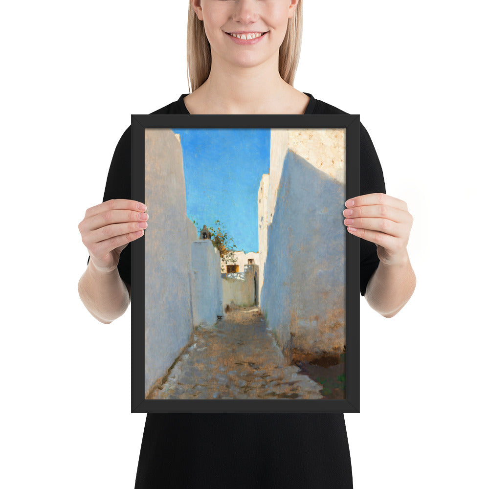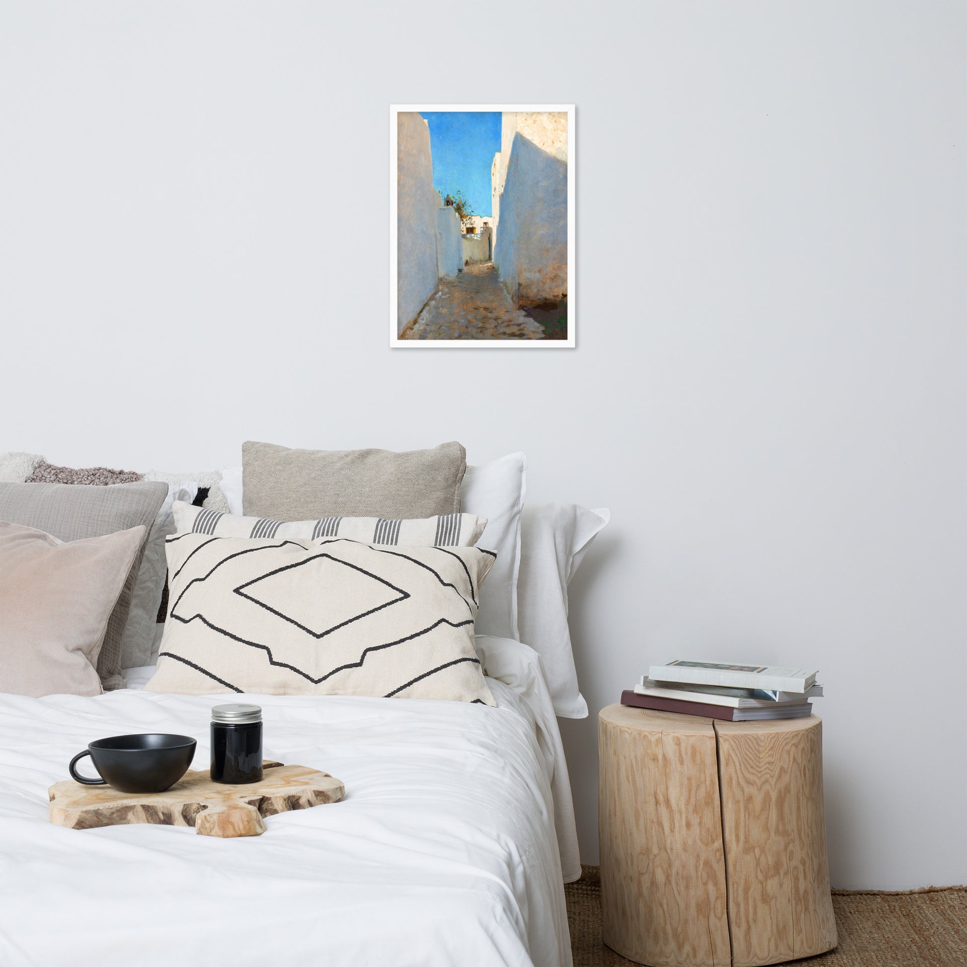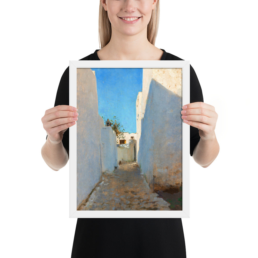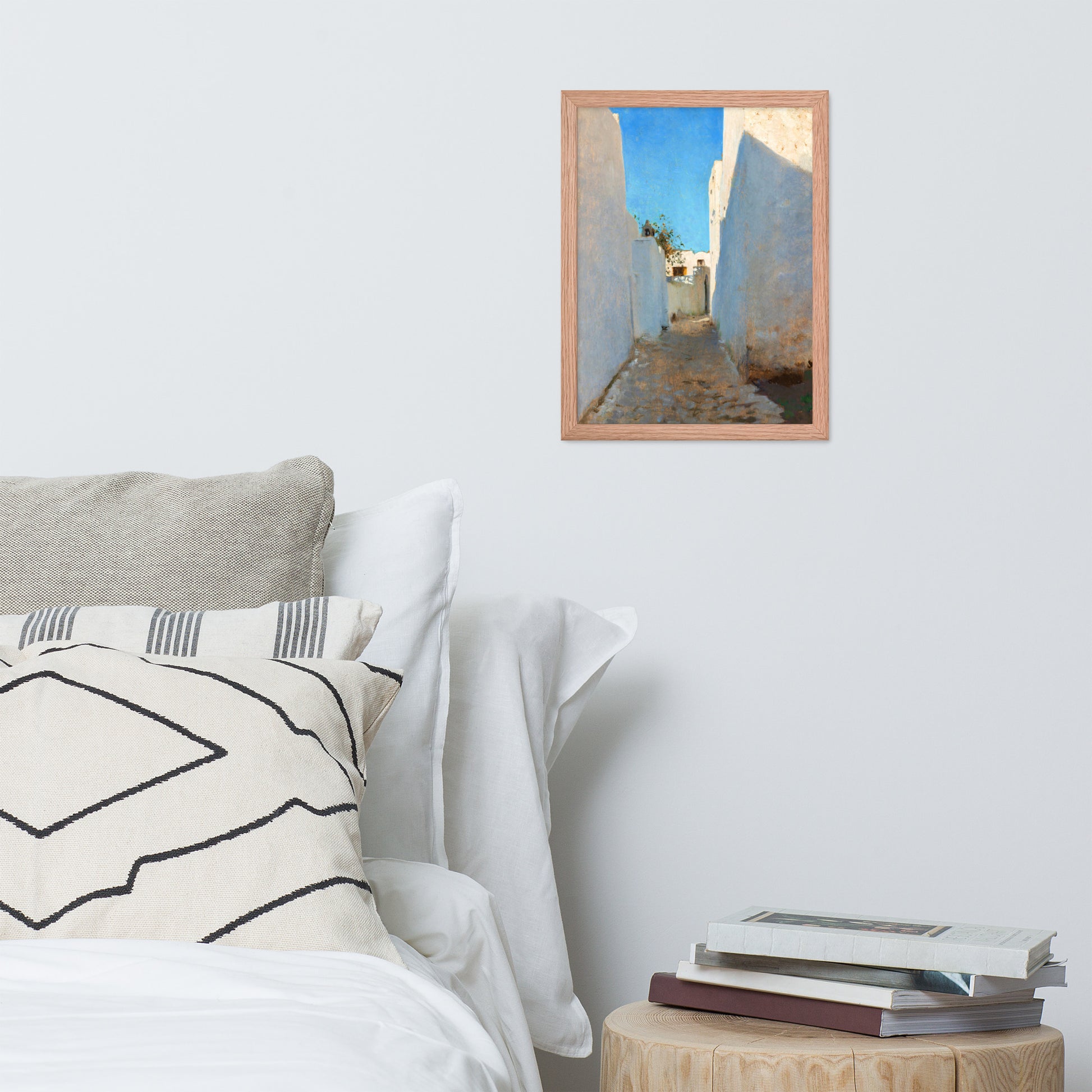 John Singer Sargent’s A Moroccan Street Scene captures the warmth and atmosphere of sunlit walls and narrow passageways with impressionist brilliance. This elegant wall art print brings the charm of Morocco to life, showcasing Sargent’s mastery of light, shadow, and texture. A timeless impressionist artwork, it adds sophistication and a sense of travel-inspired serenity to any space.