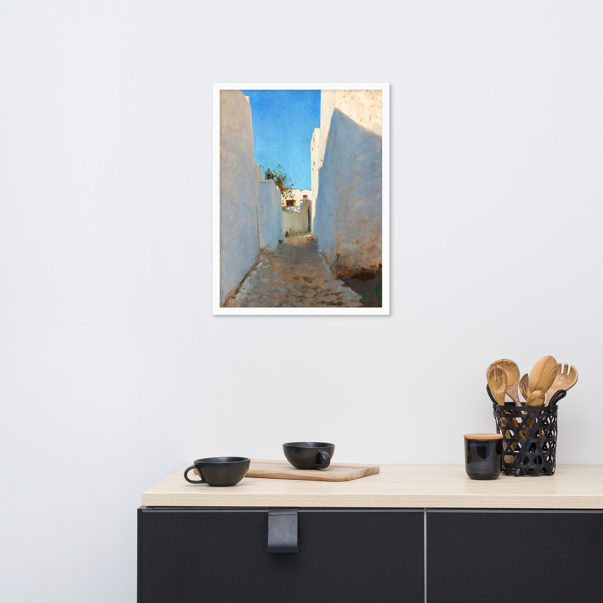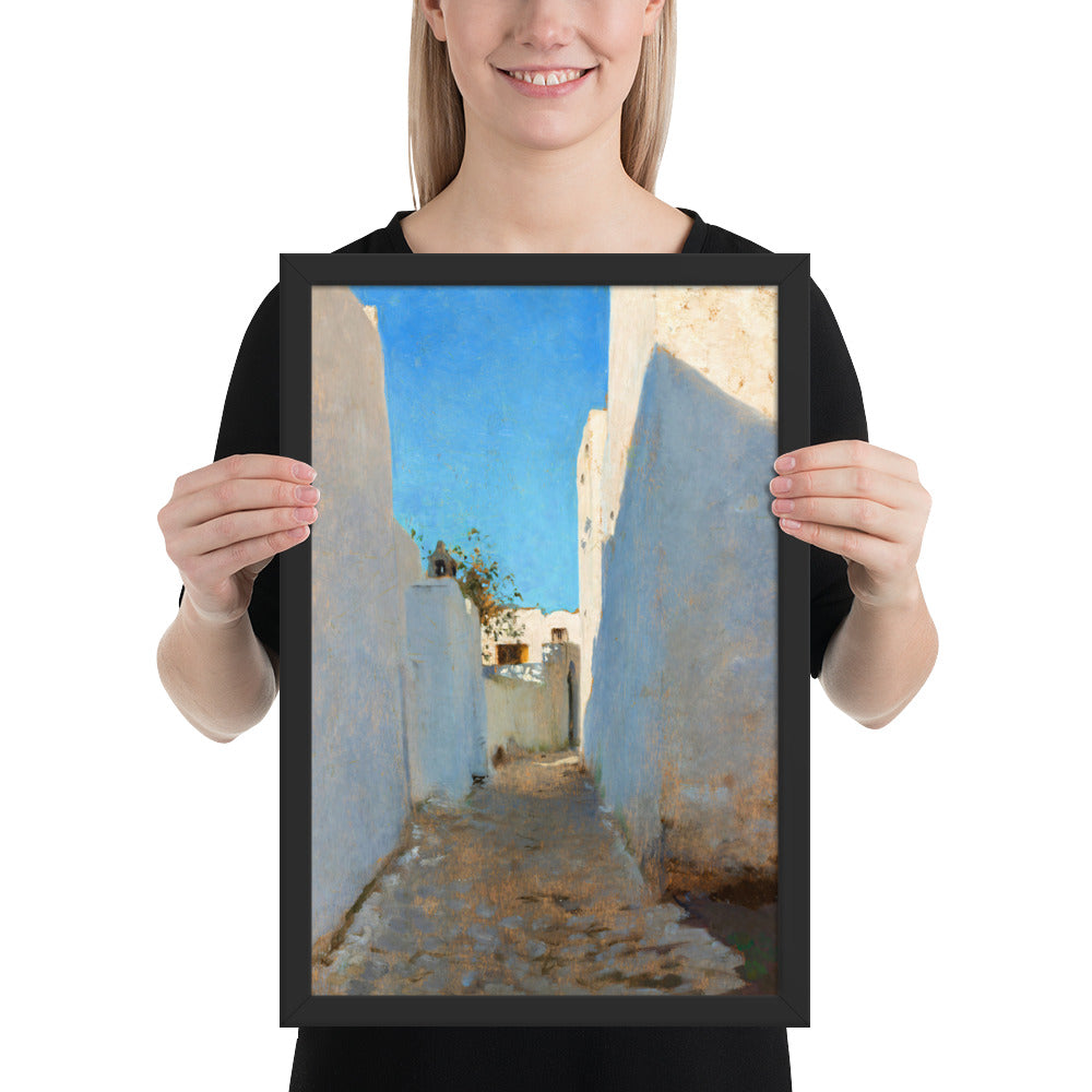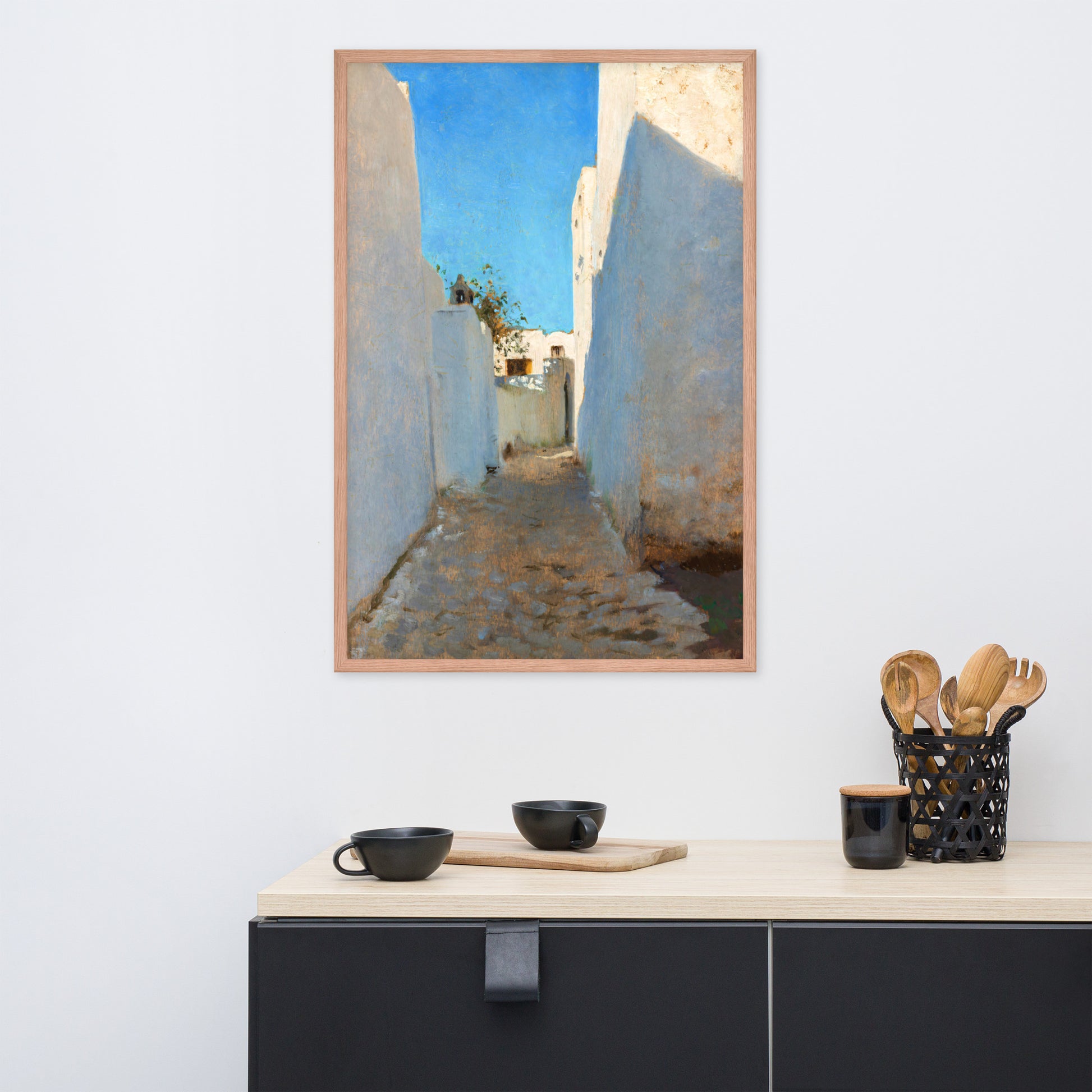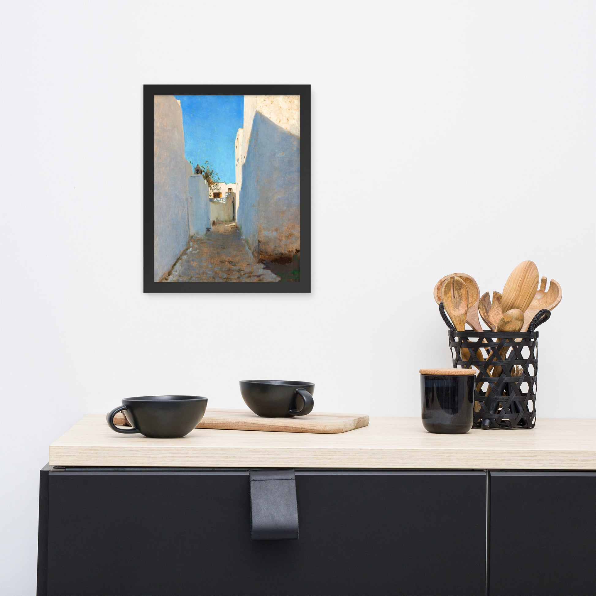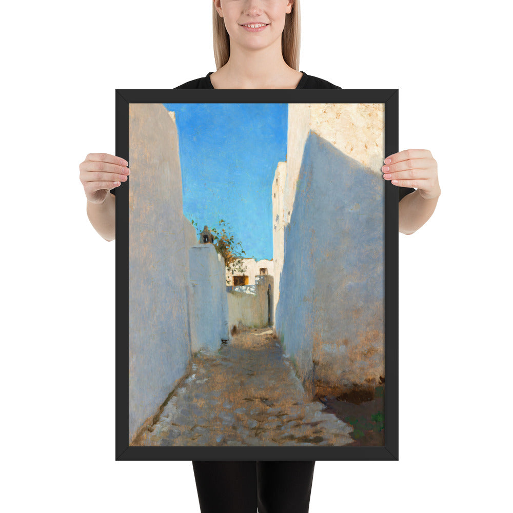 John Singer Sargent’s A Moroccan Street Scene captures the warmth and atmosphere of sunlit walls and narrow passageways with impressionist brilliance. This elegant wall art print brings the charm of Morocco to life, showcasing Sargent’s mastery of light, shadow, and texture. A timeless impressionist artwork, it adds sophistication and a sense of travel-inspired serenity to any space.