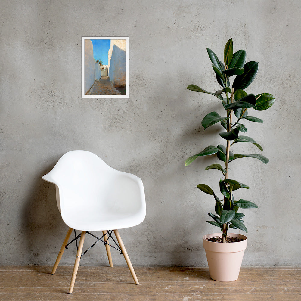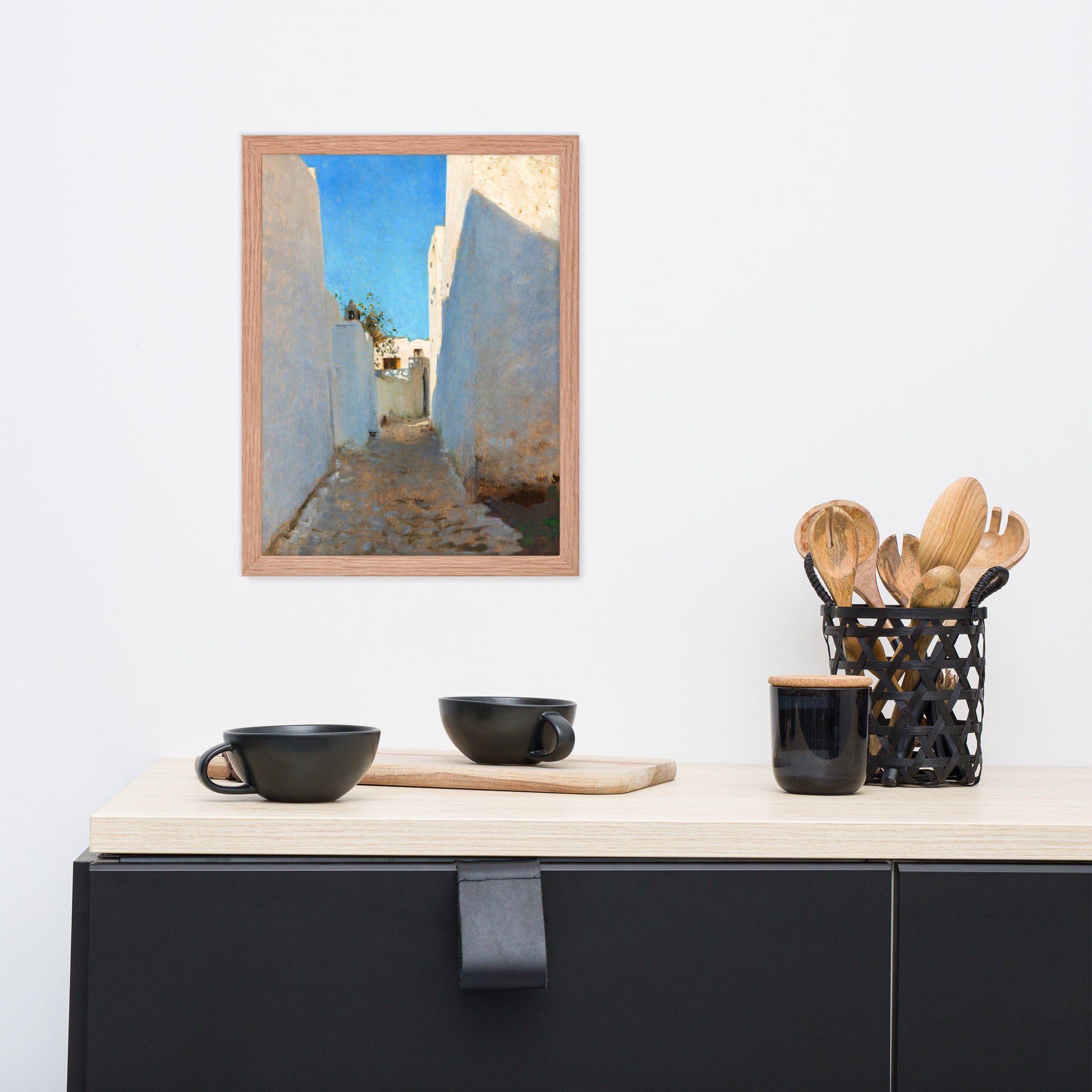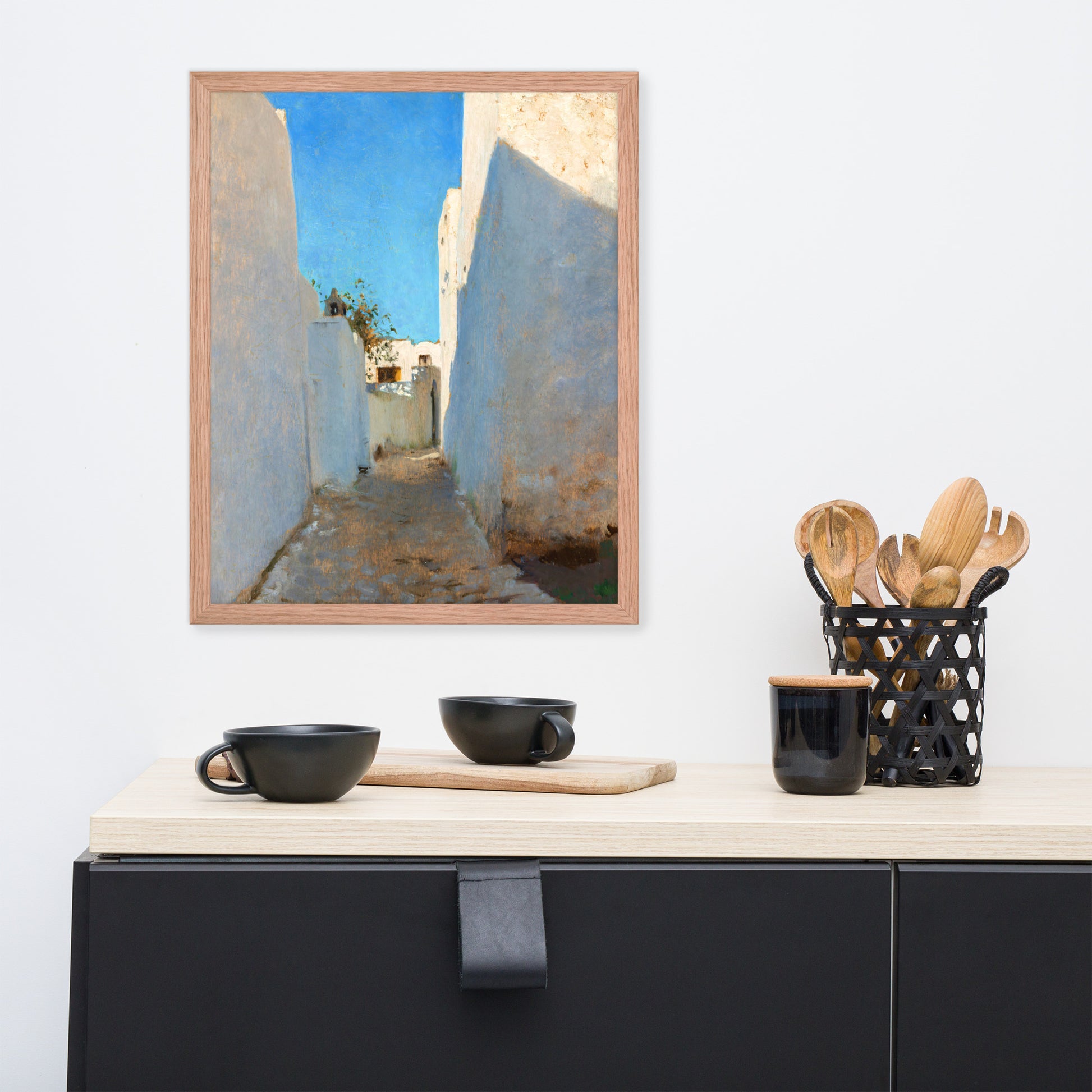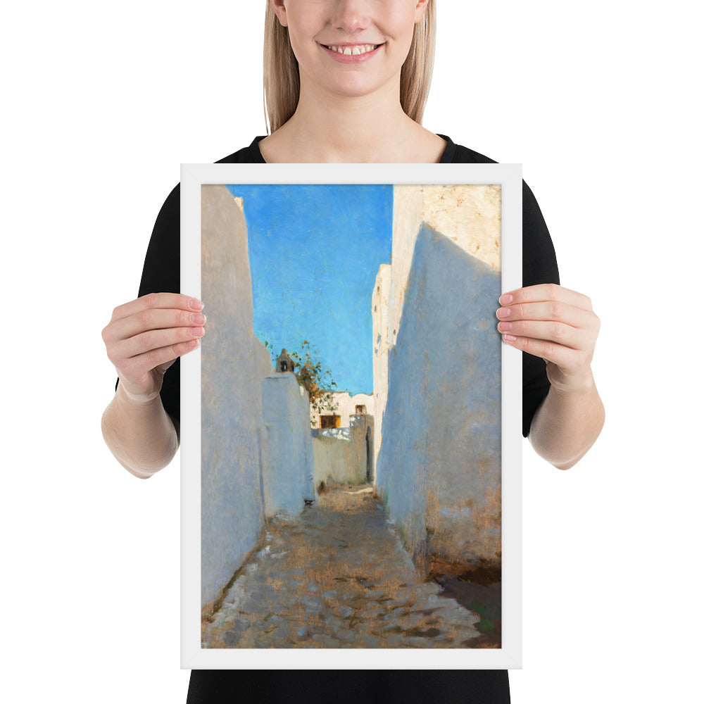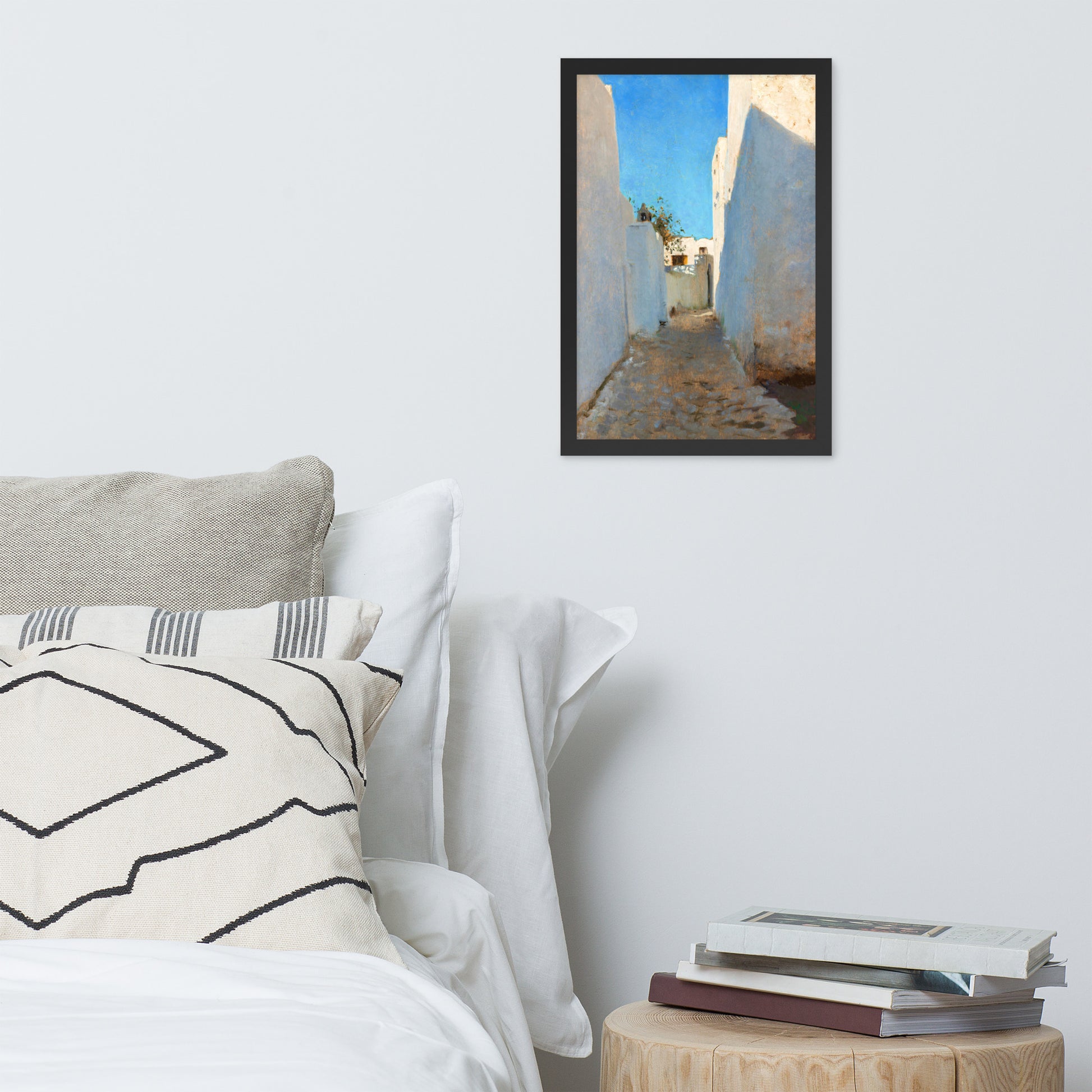John Singer Sargent’s A Moroccan Street Scene captures the warmth and atmosphere of sunlit walls and narrow passageways with impressionist brilliance. This elegant wall art print brings the charm of Morocco to life, showcasing Sargent’s mastery of light, shadow, and texture. A timeless impressionist artwork, it adds sophistication and a sense of travel-inspired serenity to any space.