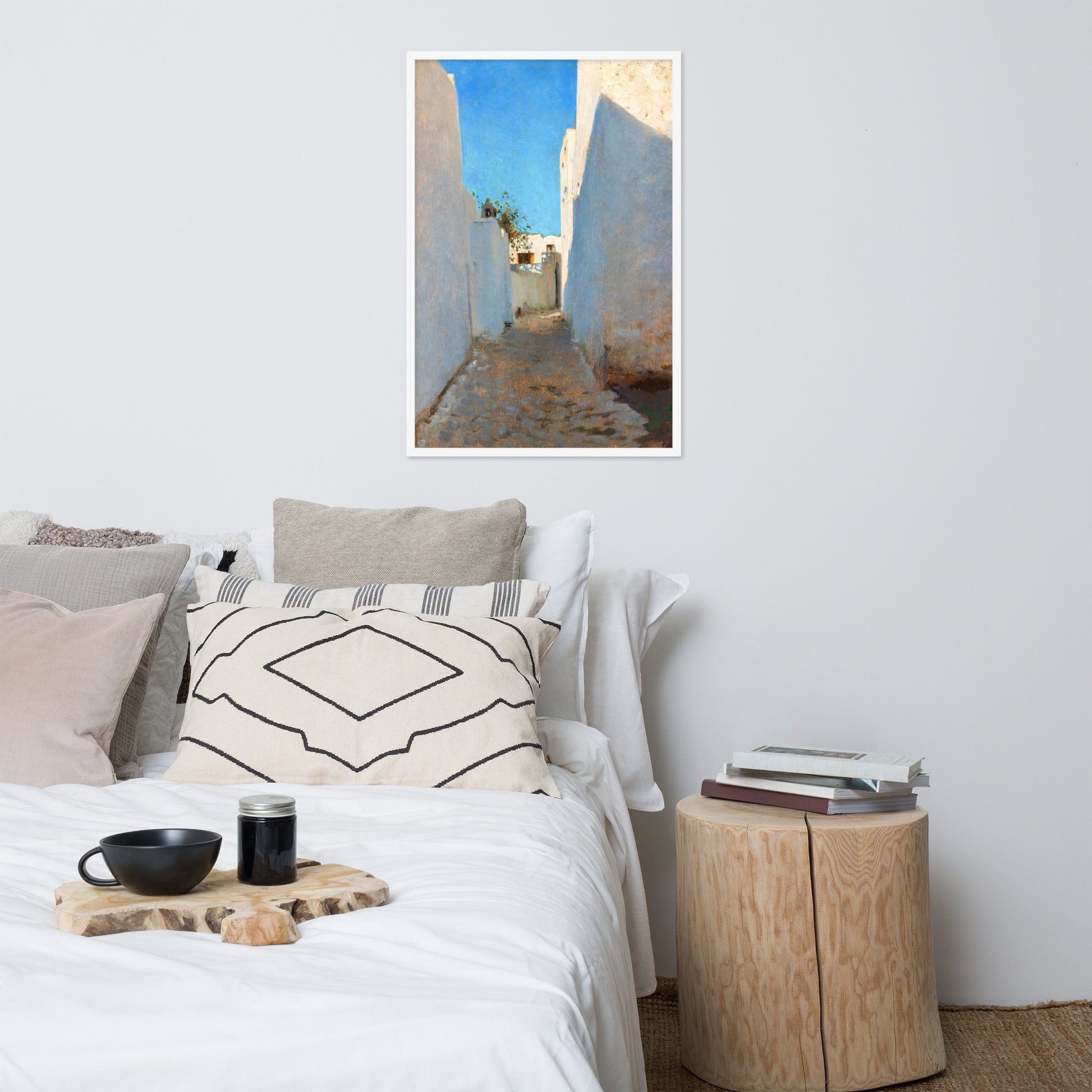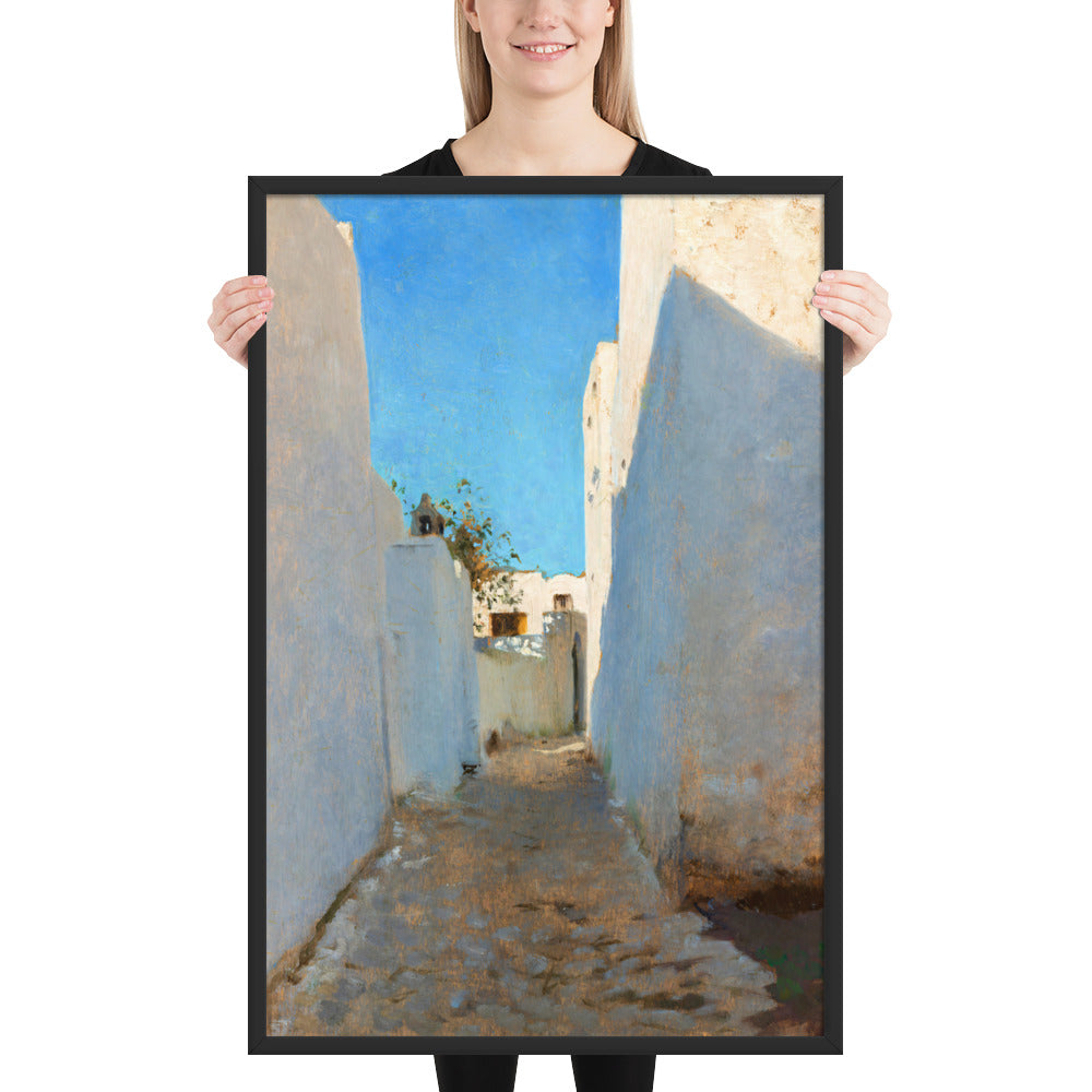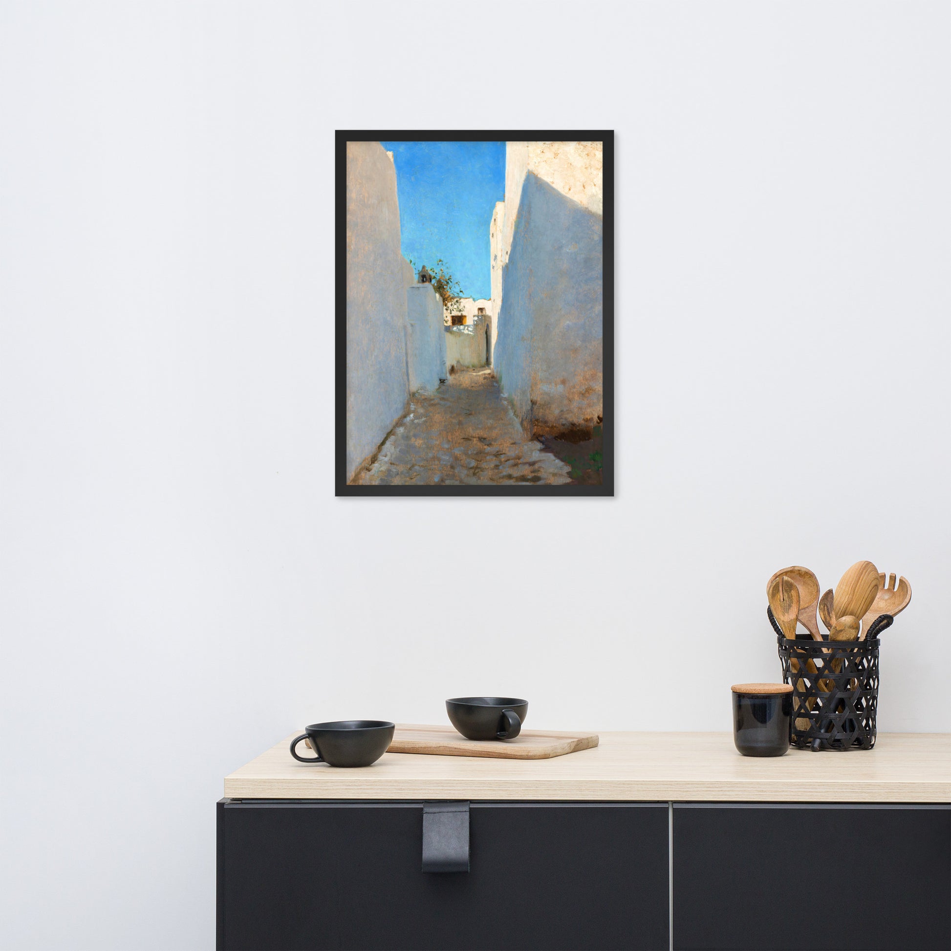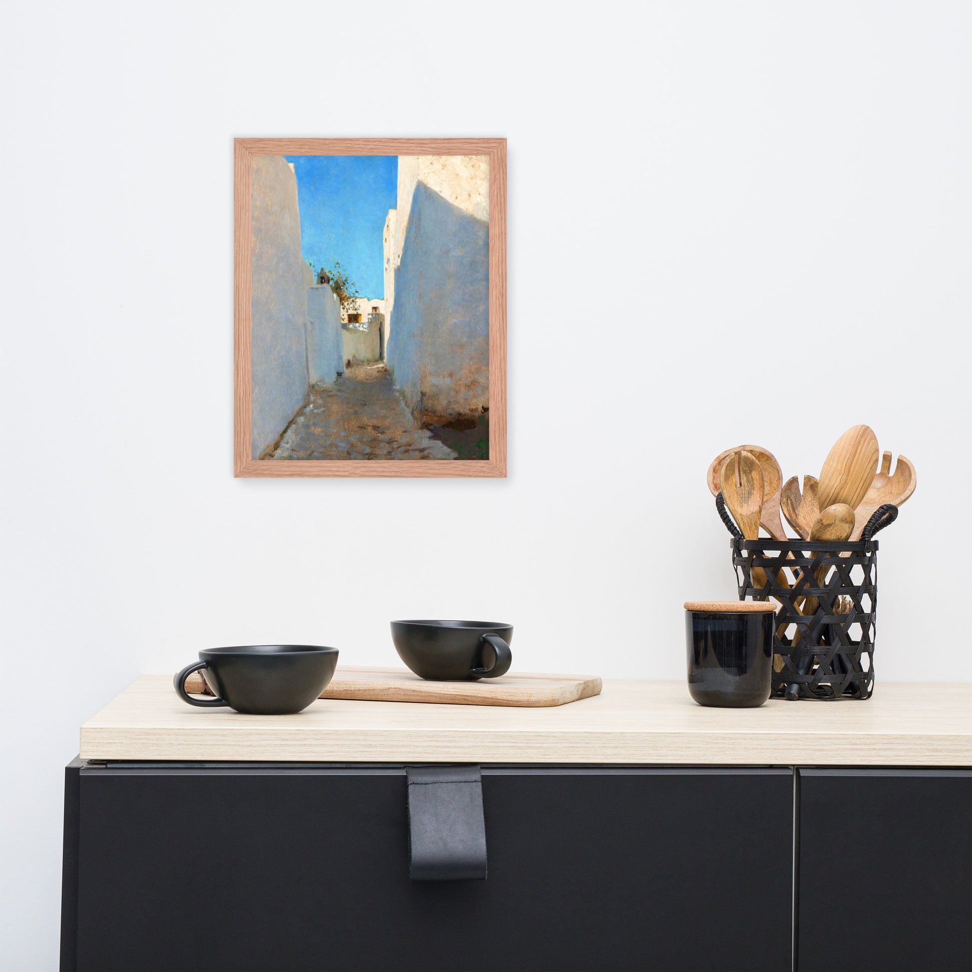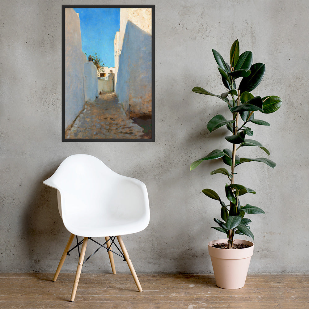 John Singer Sargent’s A Moroccan Street Scene captures the warmth and atmosphere of sunlit walls and narrow passageways with impressionist brilliance. This elegant wall art print brings the charm of Morocco to life, showcasing Sargent’s mastery of light, shadow, and texture. A timeless impressionist artwork, it adds sophistication and a sense of travel-inspired serenity to any space.