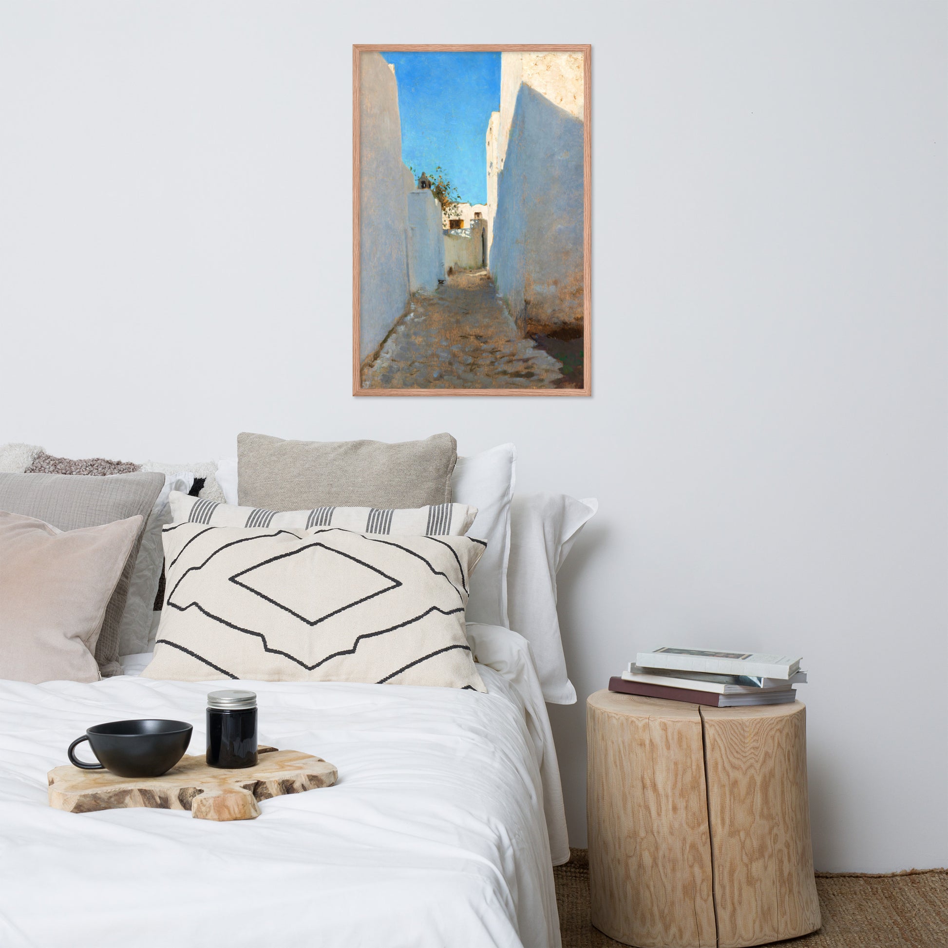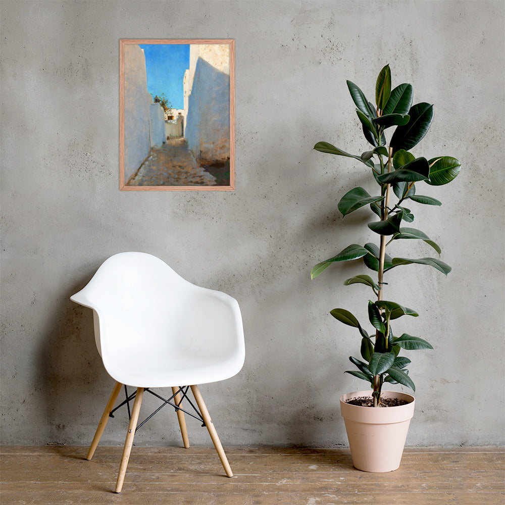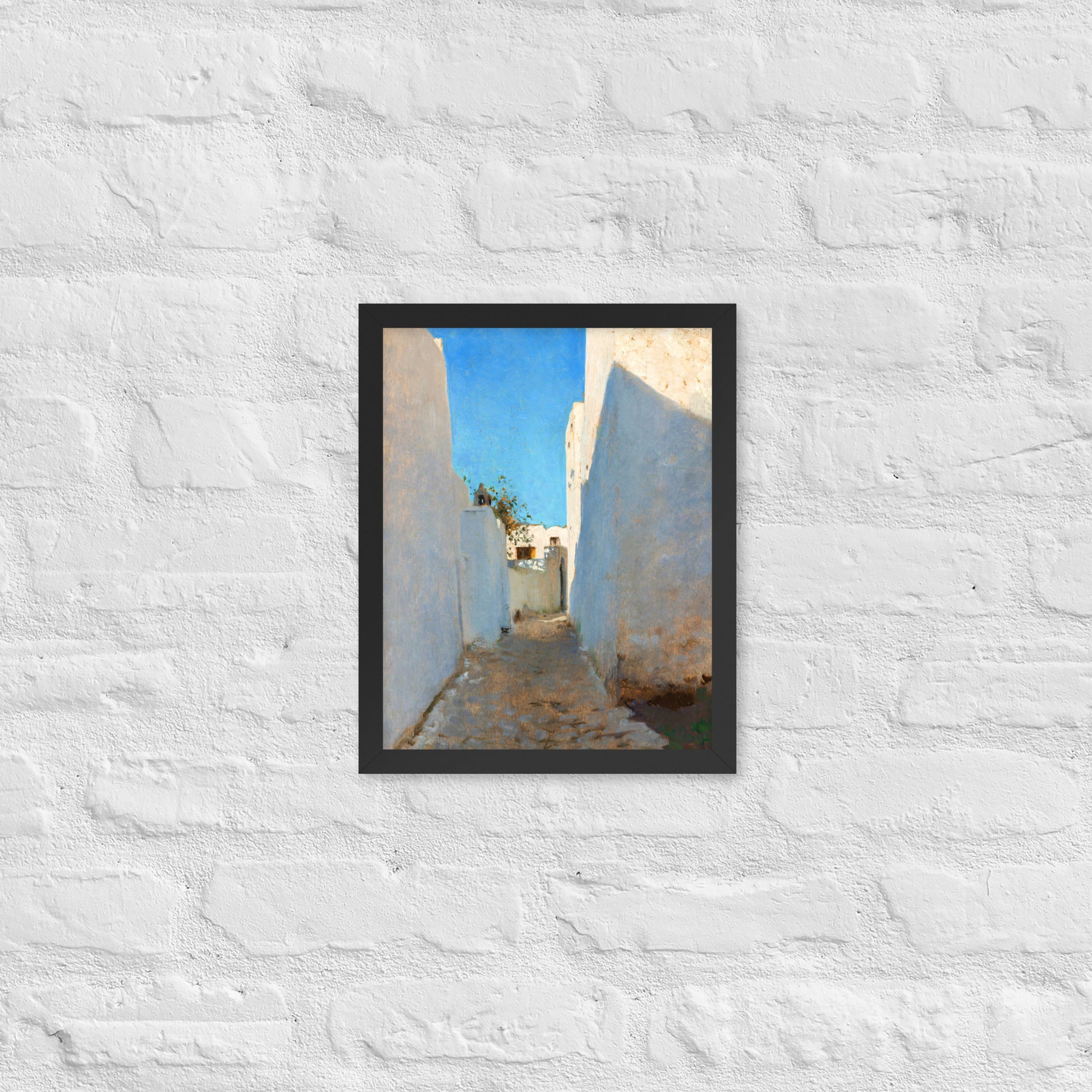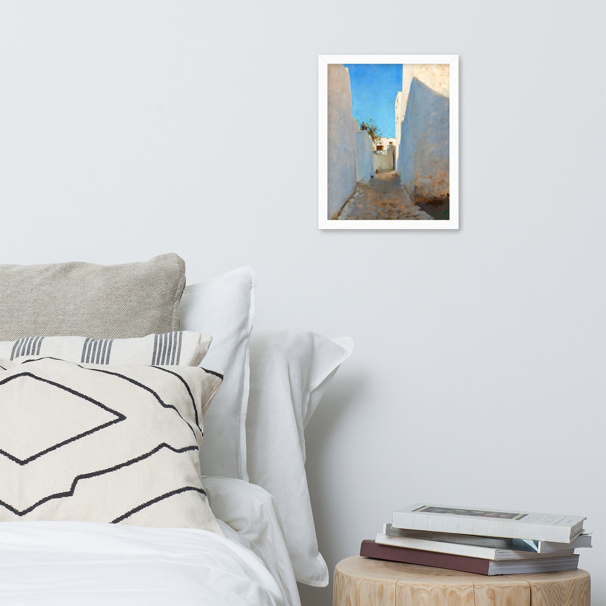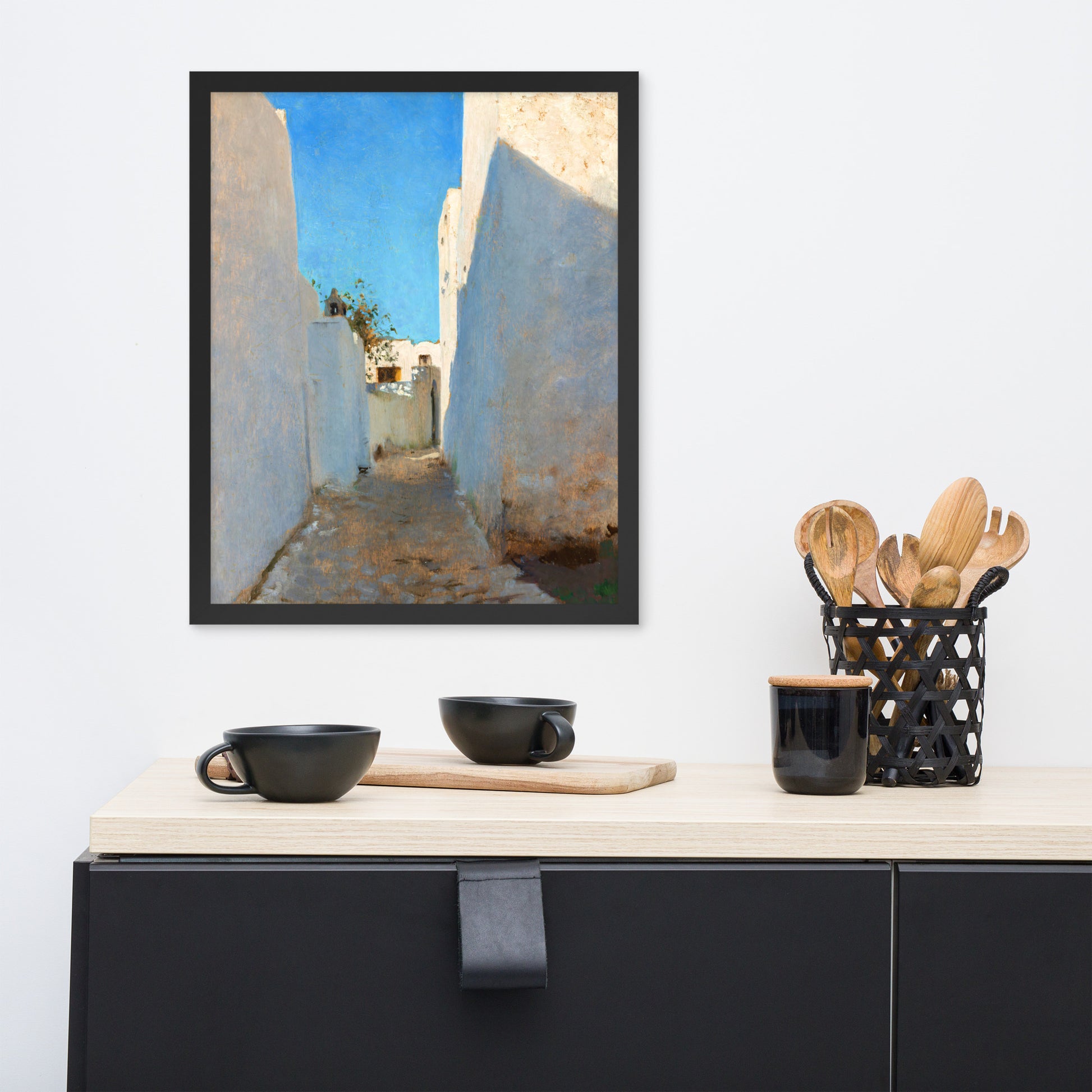 John Singer Sargent’s A Moroccan Street Scene captures the warmth and atmosphere of sunlit walls and narrow passageways with impressionist brilliance. This elegant wall art print brings the charm of Morocco to life, showcasing Sargent’s mastery of light, shadow, and texture. A timeless impressionist artwork, it adds sophistication and a sense of travel-inspired serenity to any space.