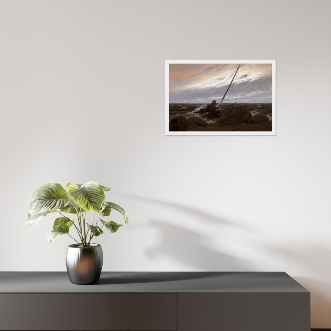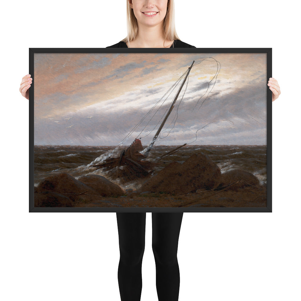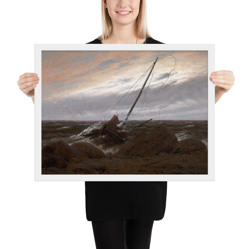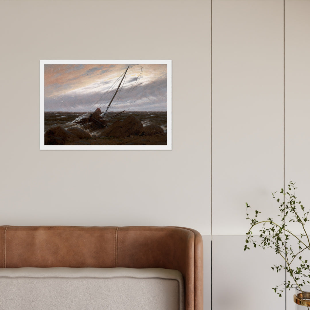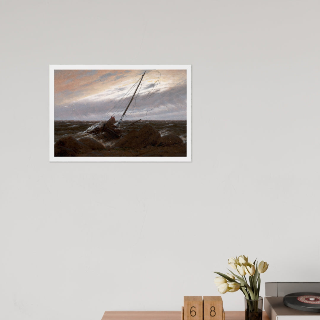 After the Storm by Caspar David Friedrich is a powerful meditation on nature’s fury and the resilience of the human spirit. This Romanticism-era seascape captures the haunting aftermath of a maritime disaster—where jagged rocks, broken masts, and turbulent waters converge beneath a brooding sky. The scene is not just dramatic—it’s deeply symbolic, evoking themes of survival, solitude, and the sublime.