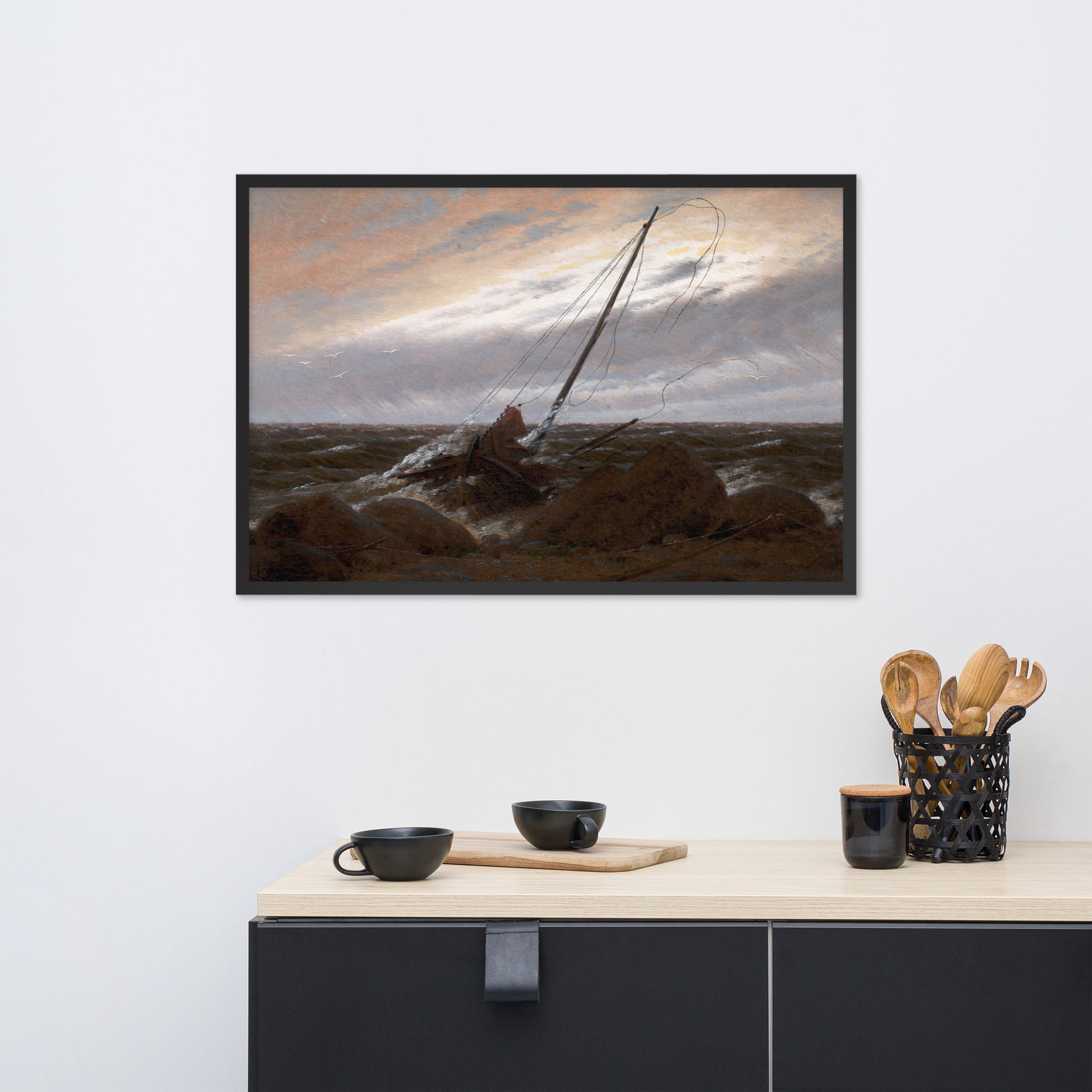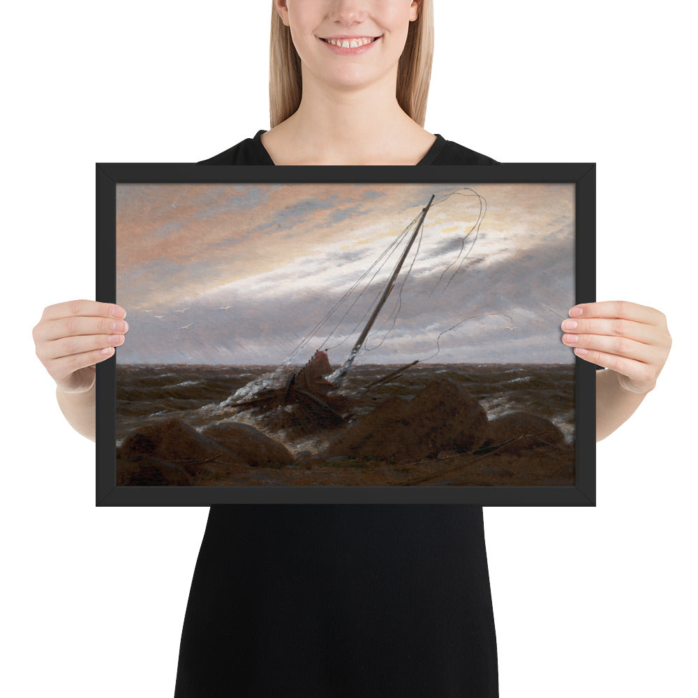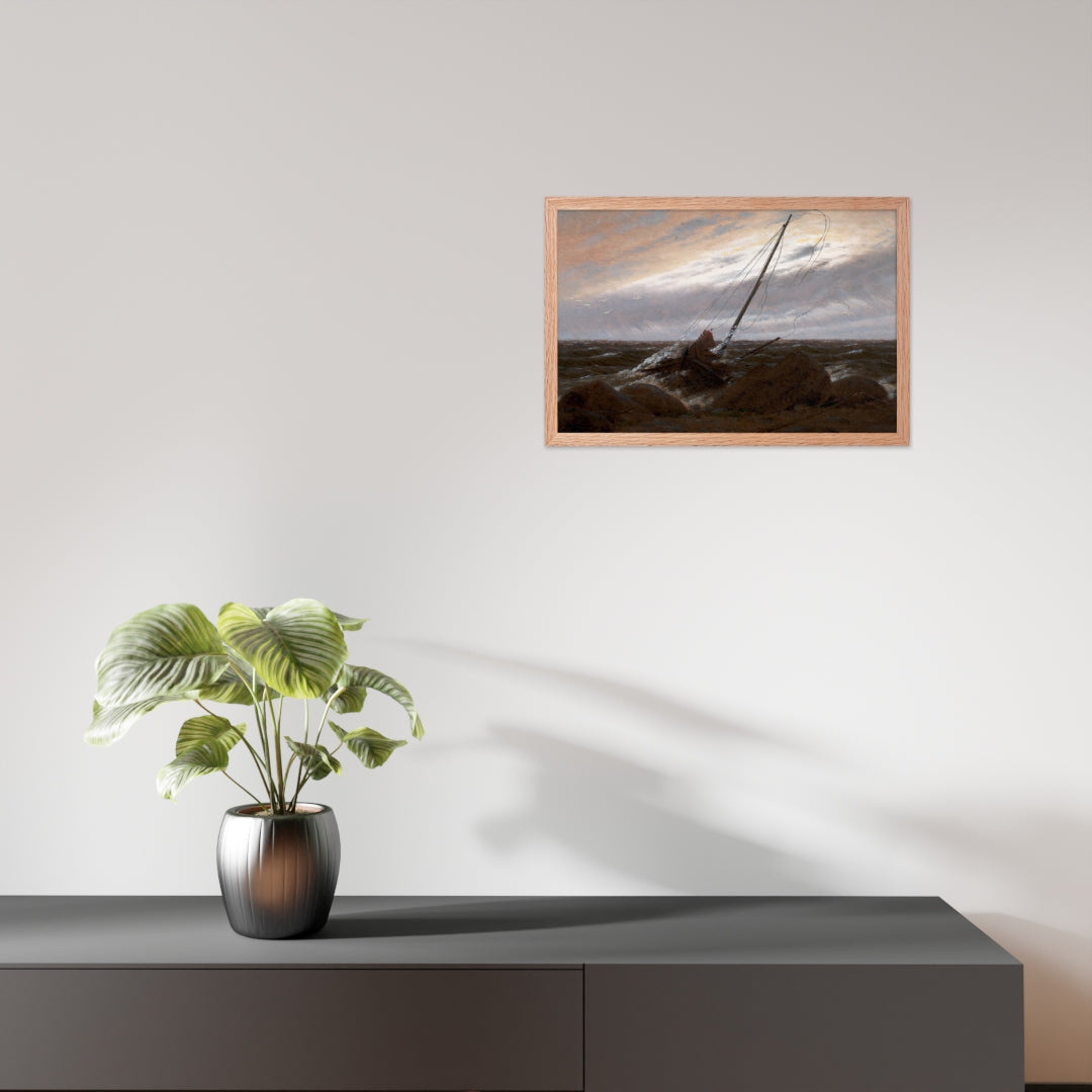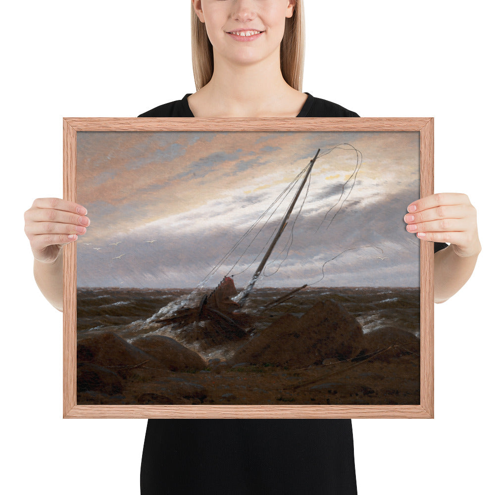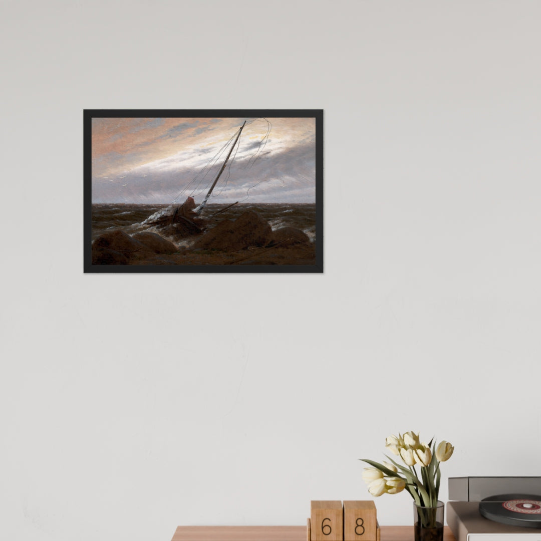After the Storm by Caspar David Friedrich is a powerful meditation on nature’s fury and the resilience of the human spirit. This Romanticism-era seascape captures the haunting aftermath of a maritime disaster—where jagged rocks, broken masts, and turbulent waters converge beneath a brooding sky. The scene is not just dramatic—it’s deeply symbolic, evoking themes of survival, solitude, and the sublime.