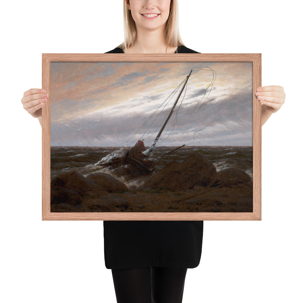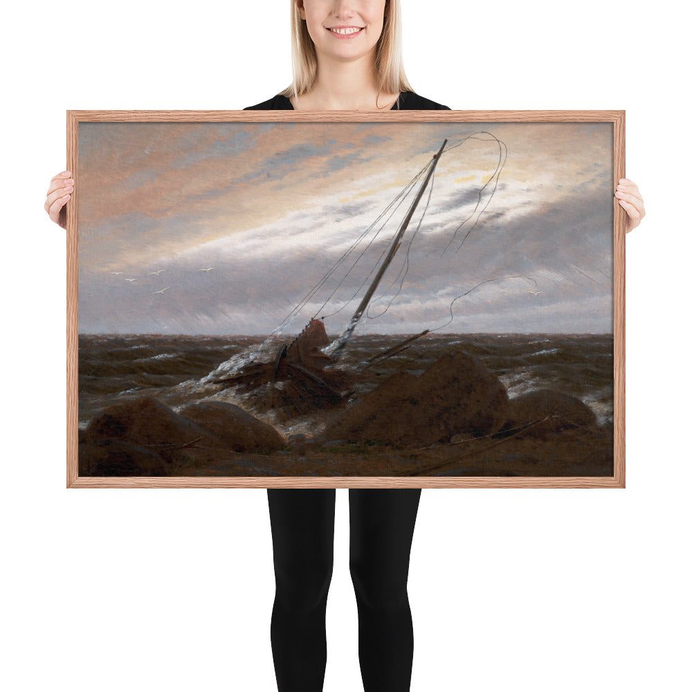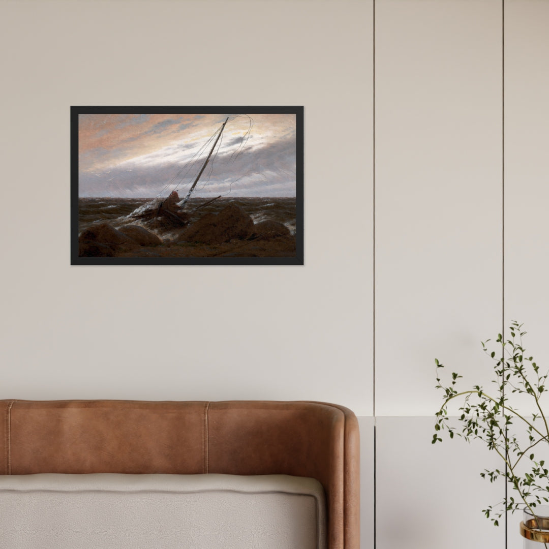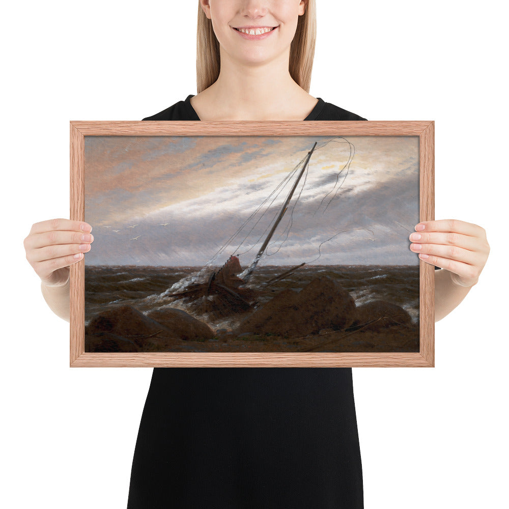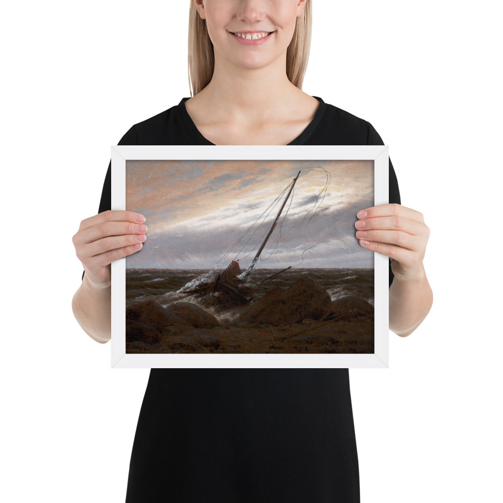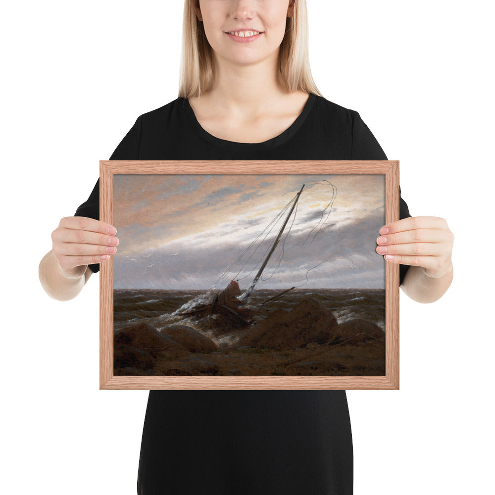 After the Storm by Caspar David Friedrich is a powerful meditation on nature’s fury and the resilience of the human spirit. This Romanticism-era seascape captures the haunting aftermath of a maritime disaster—where jagged rocks, broken masts, and turbulent waters converge beneath a brooding sky. The scene is not just dramatic—it’s deeply symbolic, evoking themes of survival, solitude, and the sublime.