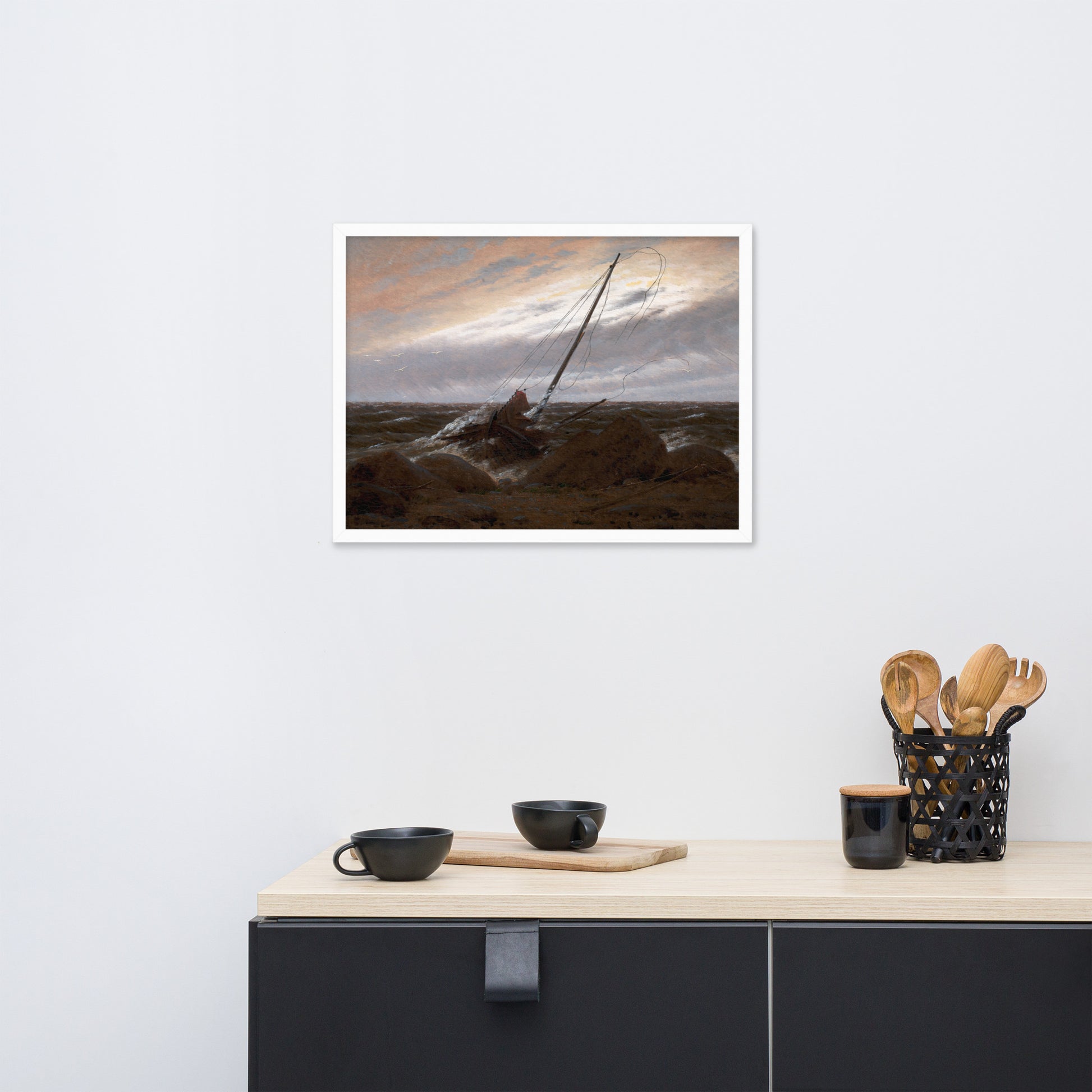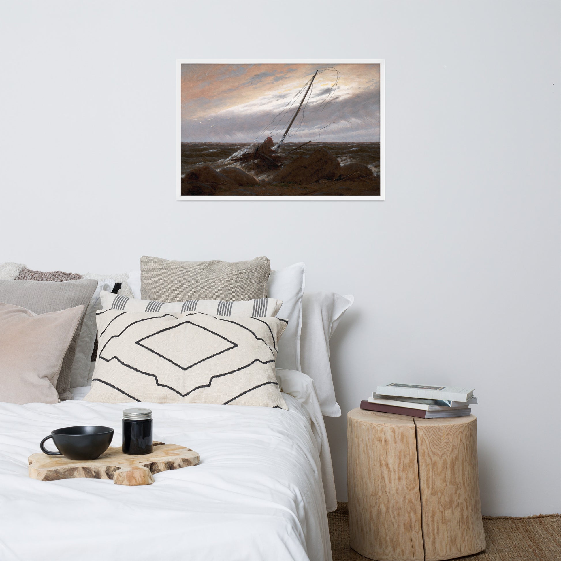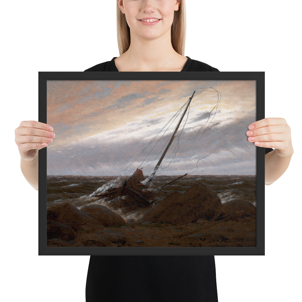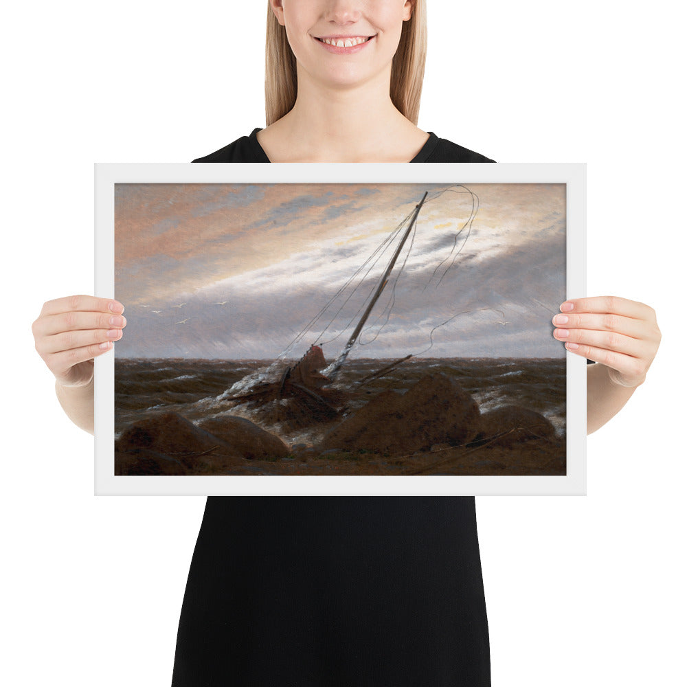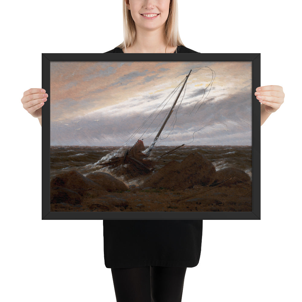 After the Storm by Caspar David Friedrich is a powerful meditation on nature’s fury and the resilience of the human spirit. This Romanticism-era seascape captures the haunting aftermath of a maritime disaster—where jagged rocks, broken masts, and turbulent waters converge beneath a brooding sky. The scene is not just dramatic—it’s deeply symbolic, evoking themes of survival, solitude, and the sublime.