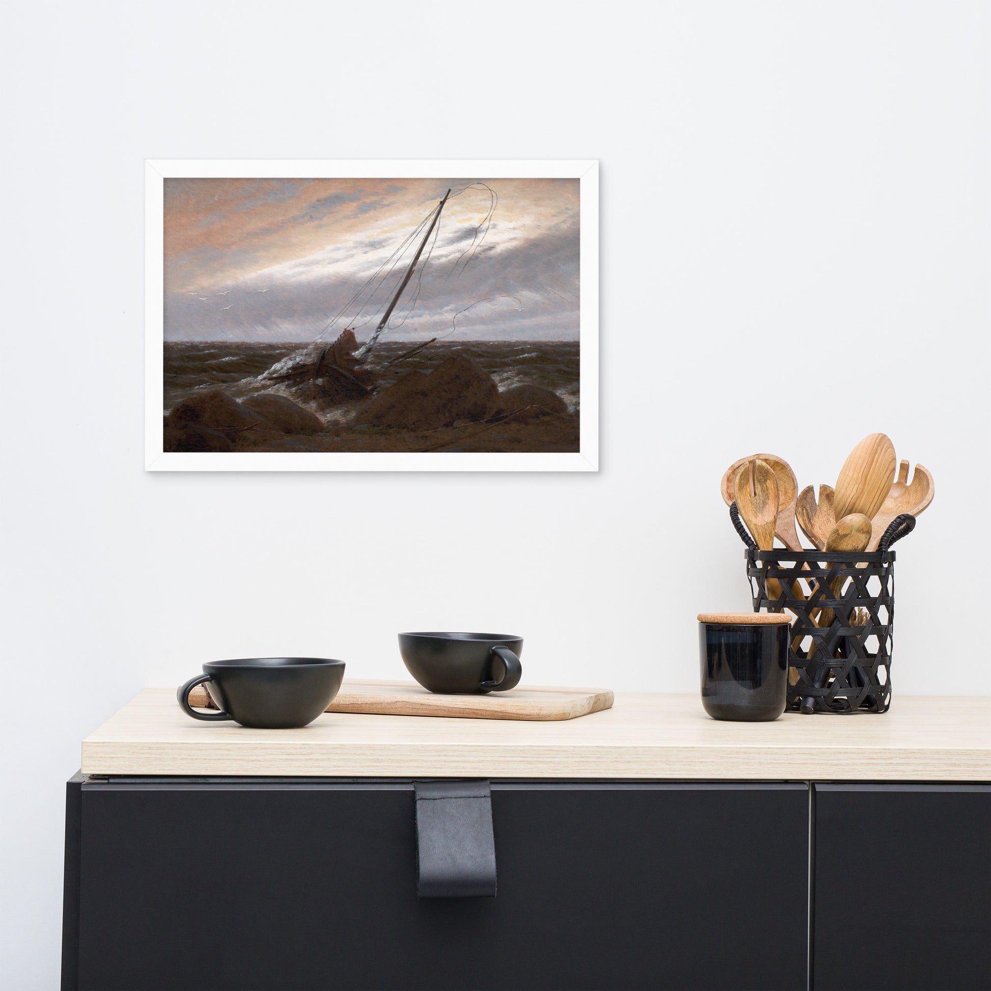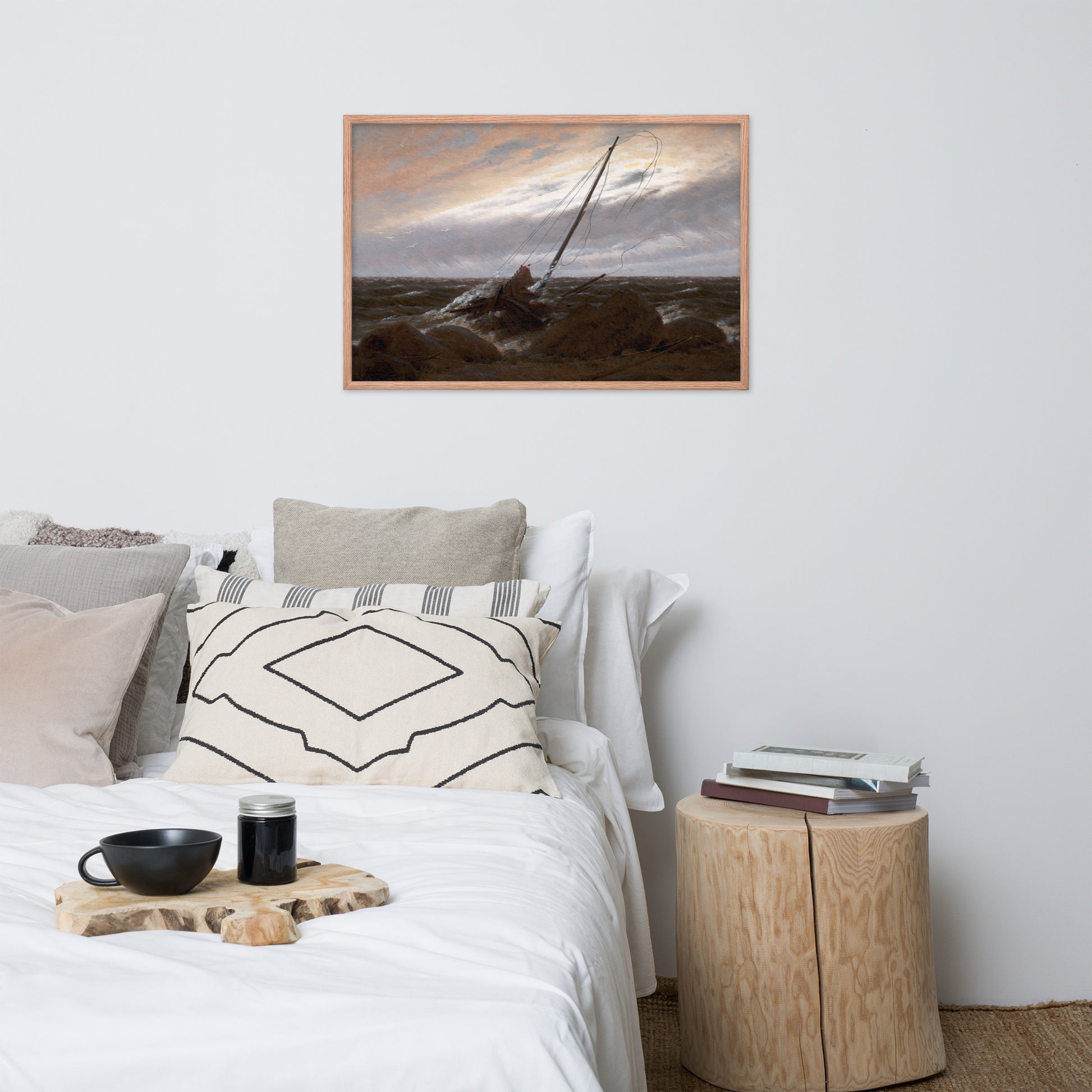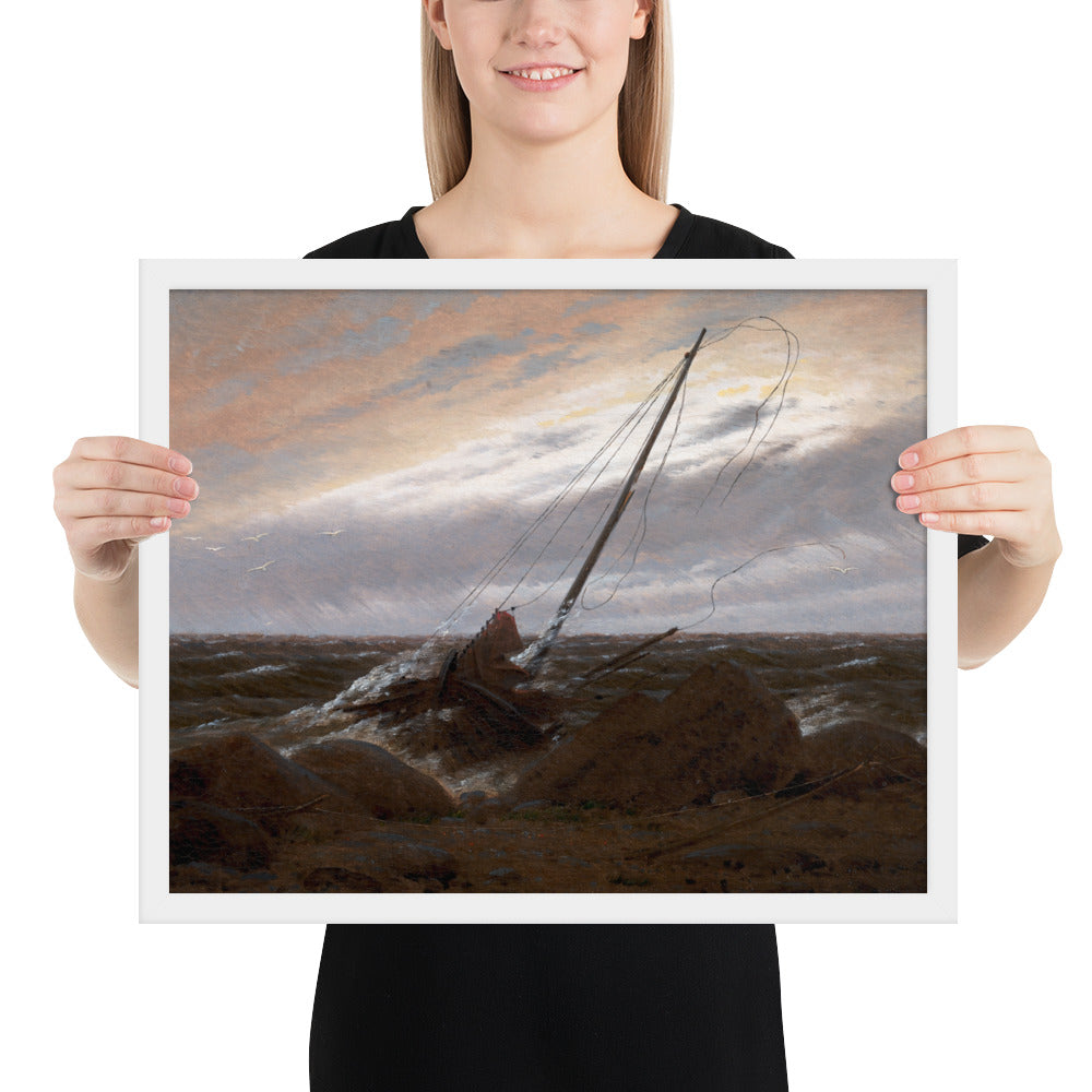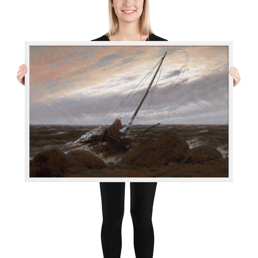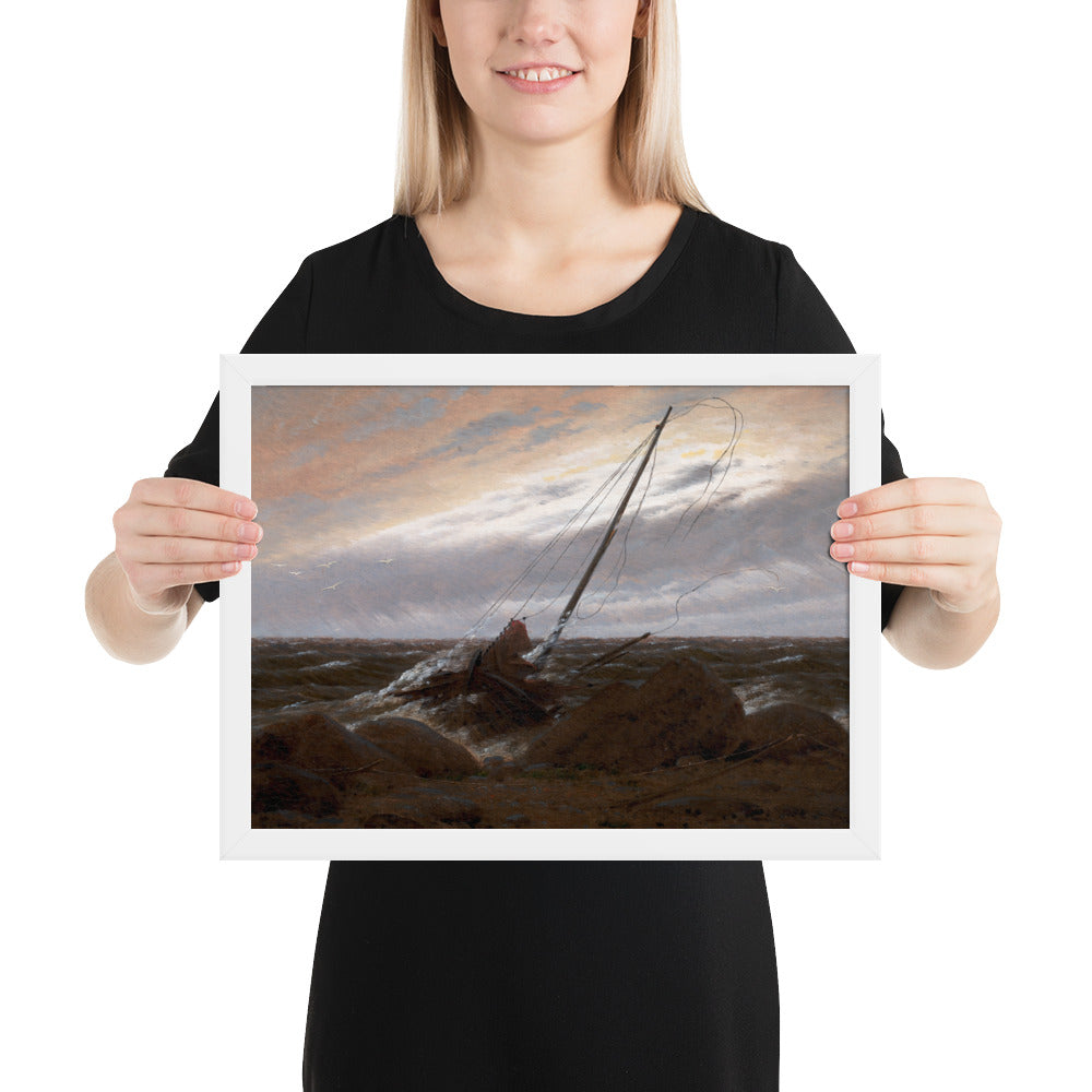 After the Storm by Caspar David Friedrich is a powerful meditation on nature’s fury and the resilience of the human spirit. This Romanticism-era seascape captures the haunting aftermath of a maritime disaster—where jagged rocks, broken masts, and turbulent waters converge beneath a brooding sky. The scene is not just dramatic—it’s deeply symbolic, evoking themes of survival, solitude, and the sublime.