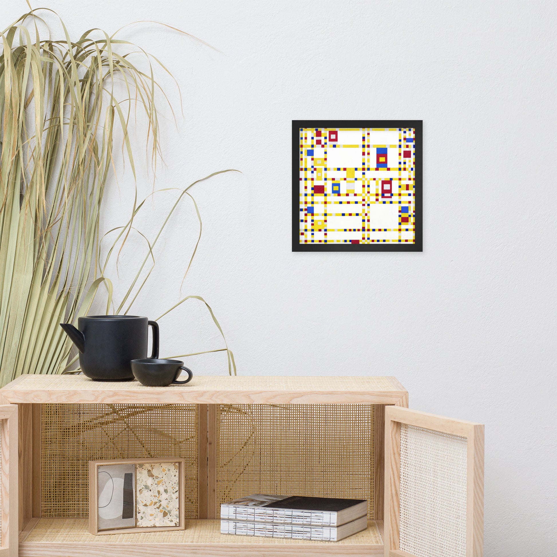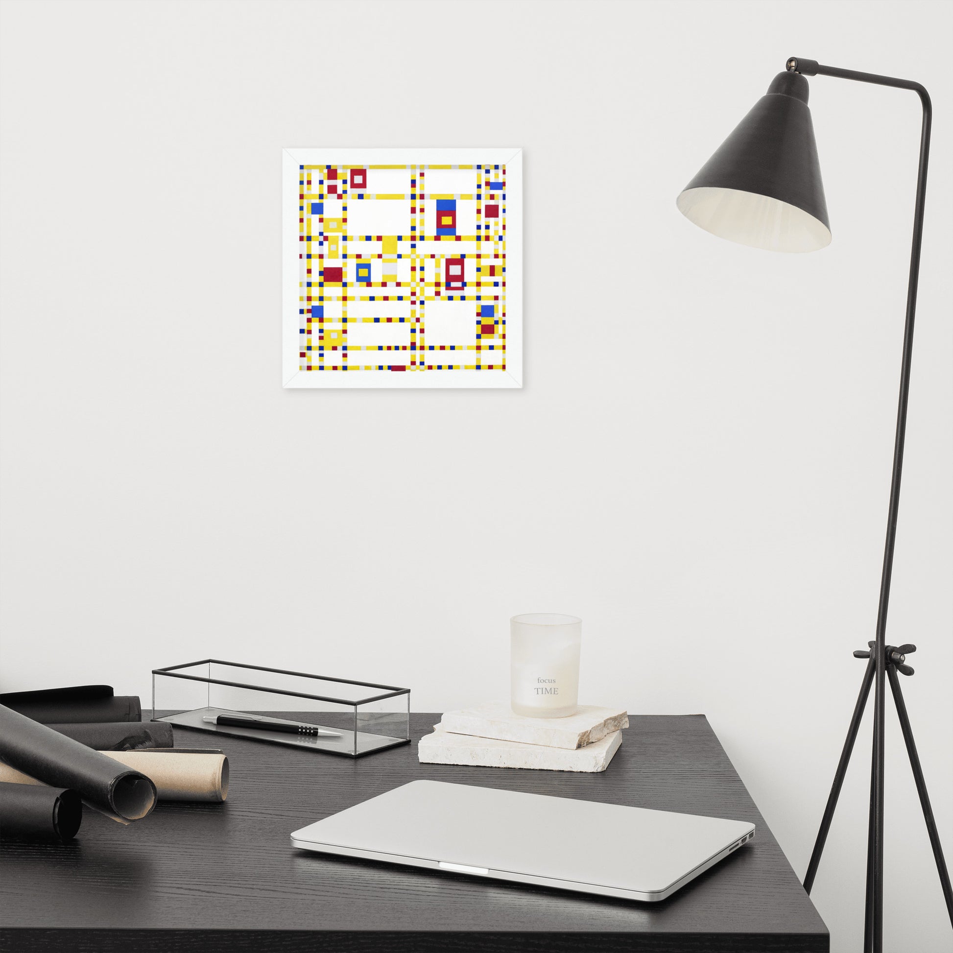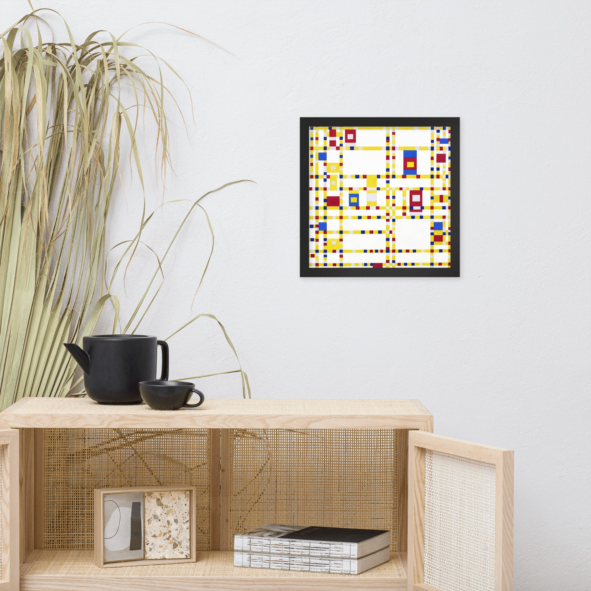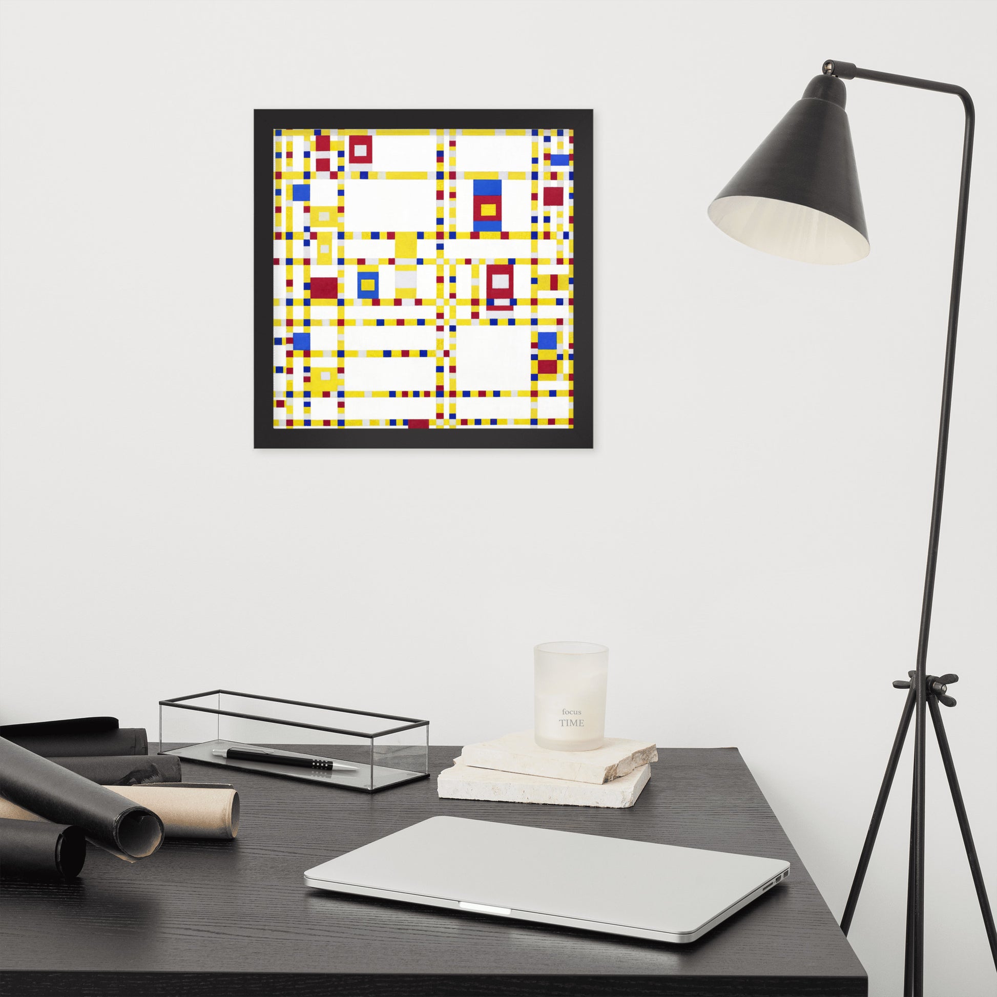 Bring rhythm and energy to your space with Broadway Boogie Woogie, a vibrant abstract composition by Piet Mondrian. Inspired by the dynamic pulse of New York City and the syncopated beats of boogie-woogie jazz, this framed wall print transforms geometric precision into visual music. Mondrian’s iconic grid of red, blue, yellow, and white squares dances across a white canvas, creating a lively interplay of color and form.