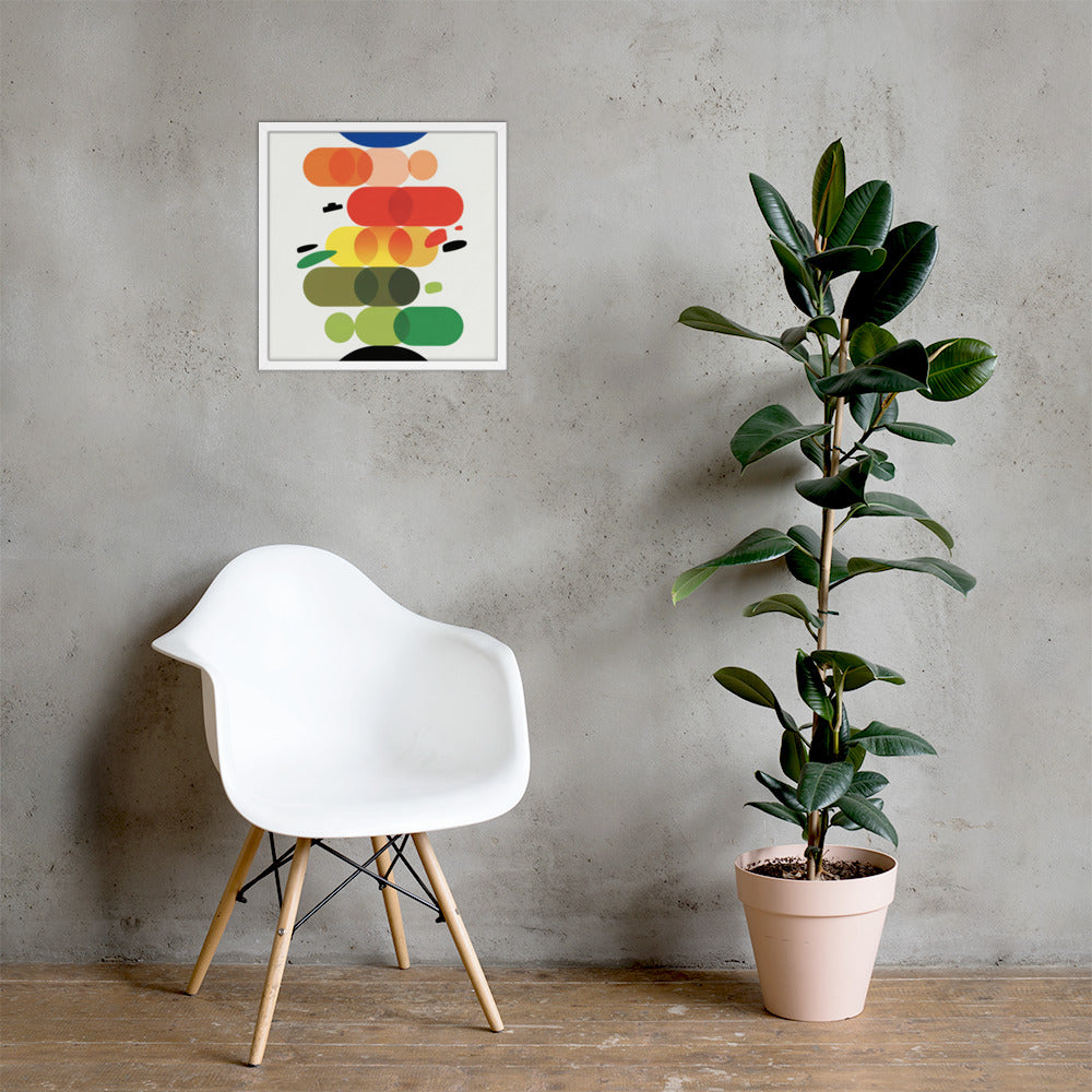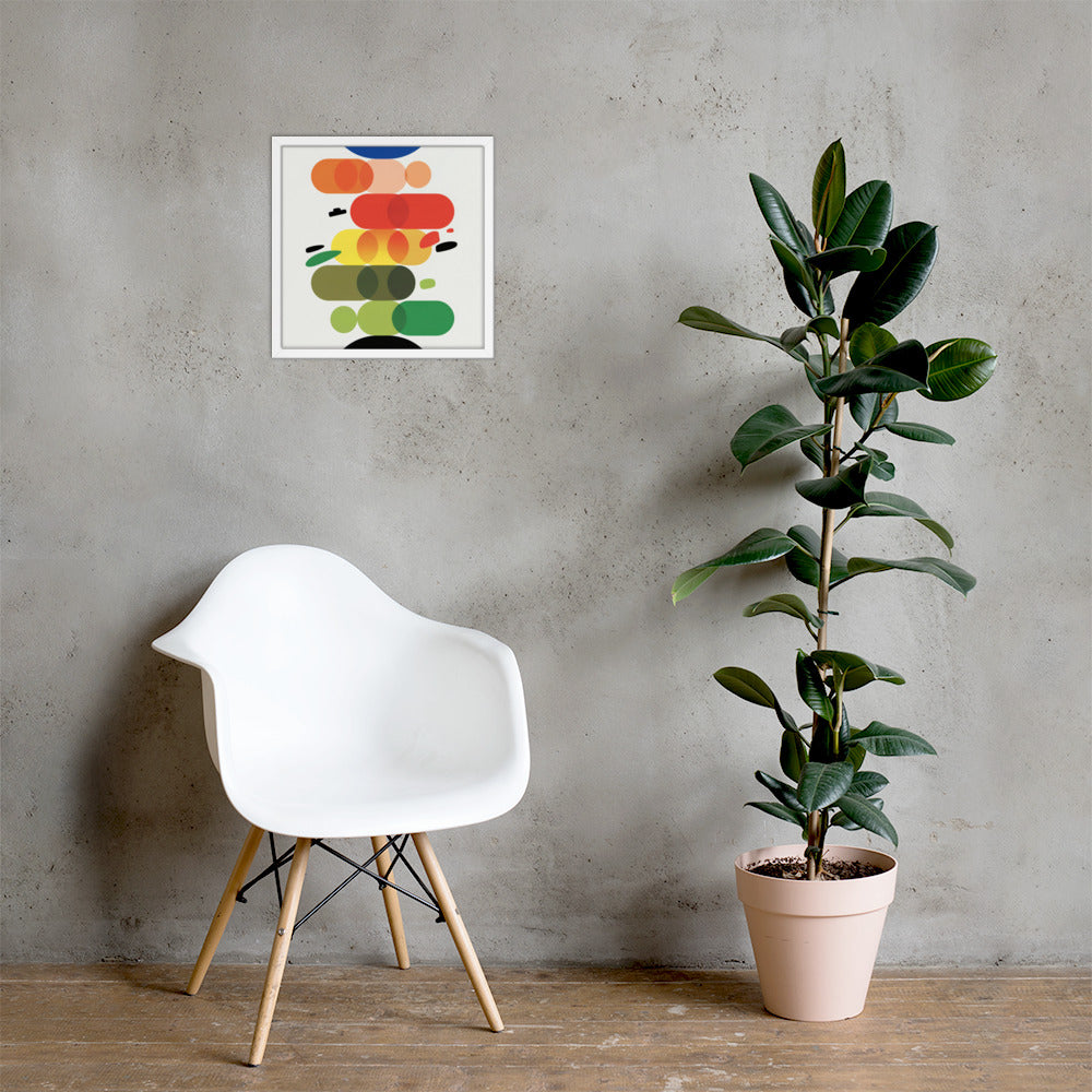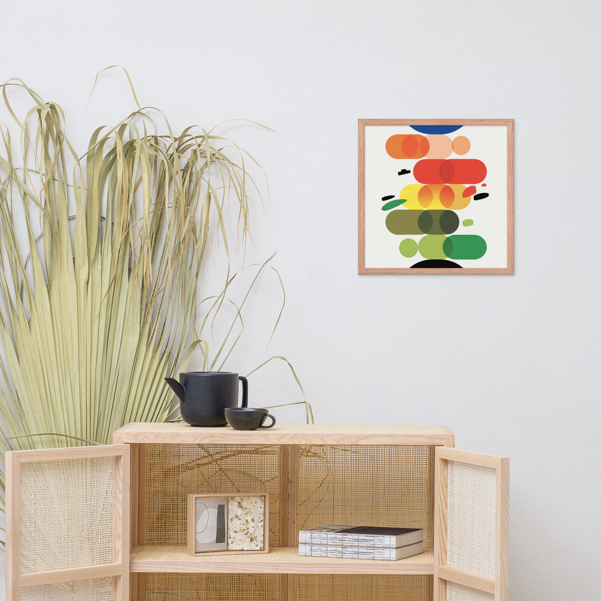 Elevate your space with Chromatic Harmony, a modern abstract art print featuring a mesmerizing cascade of geometric shapes in a rich vertical gradient. Rounded rectangles and circles overlap in warm tones of orange, red, and yellow, transitioning into earthy olive greens and deep blacks—creating a dynamic interplay of color, depth, and symmetry. This minimalist wall art is perfect for contemporary interiors, offering a bold yet balanced aesthetic that complements living rooms, studios, or office spaces. Printed on premium paper and framed for gallery-style presentation, it's a striking choice for lovers of modern design and color theory.