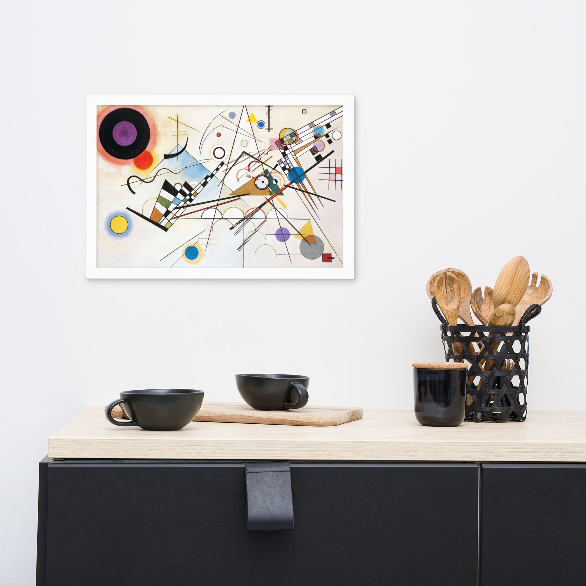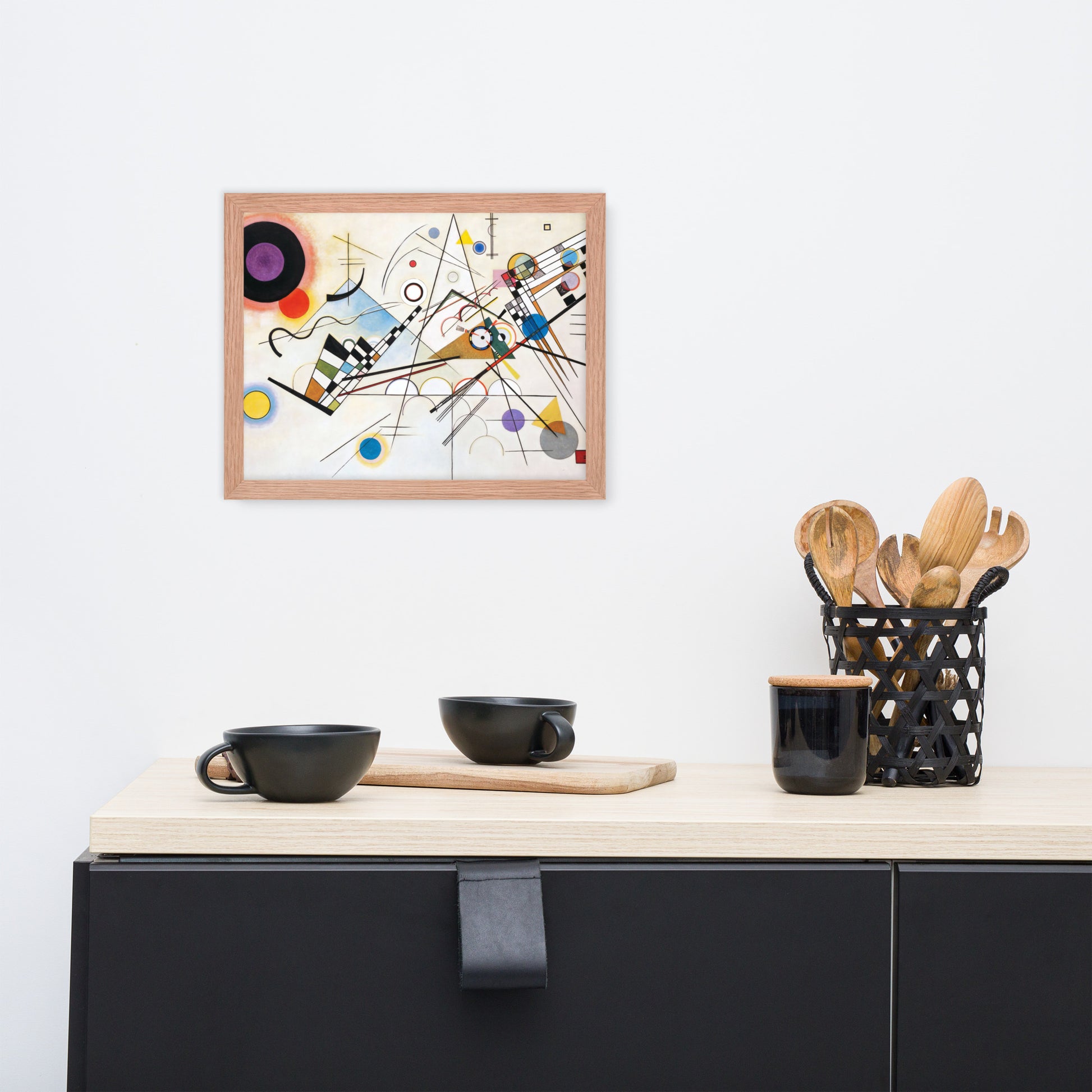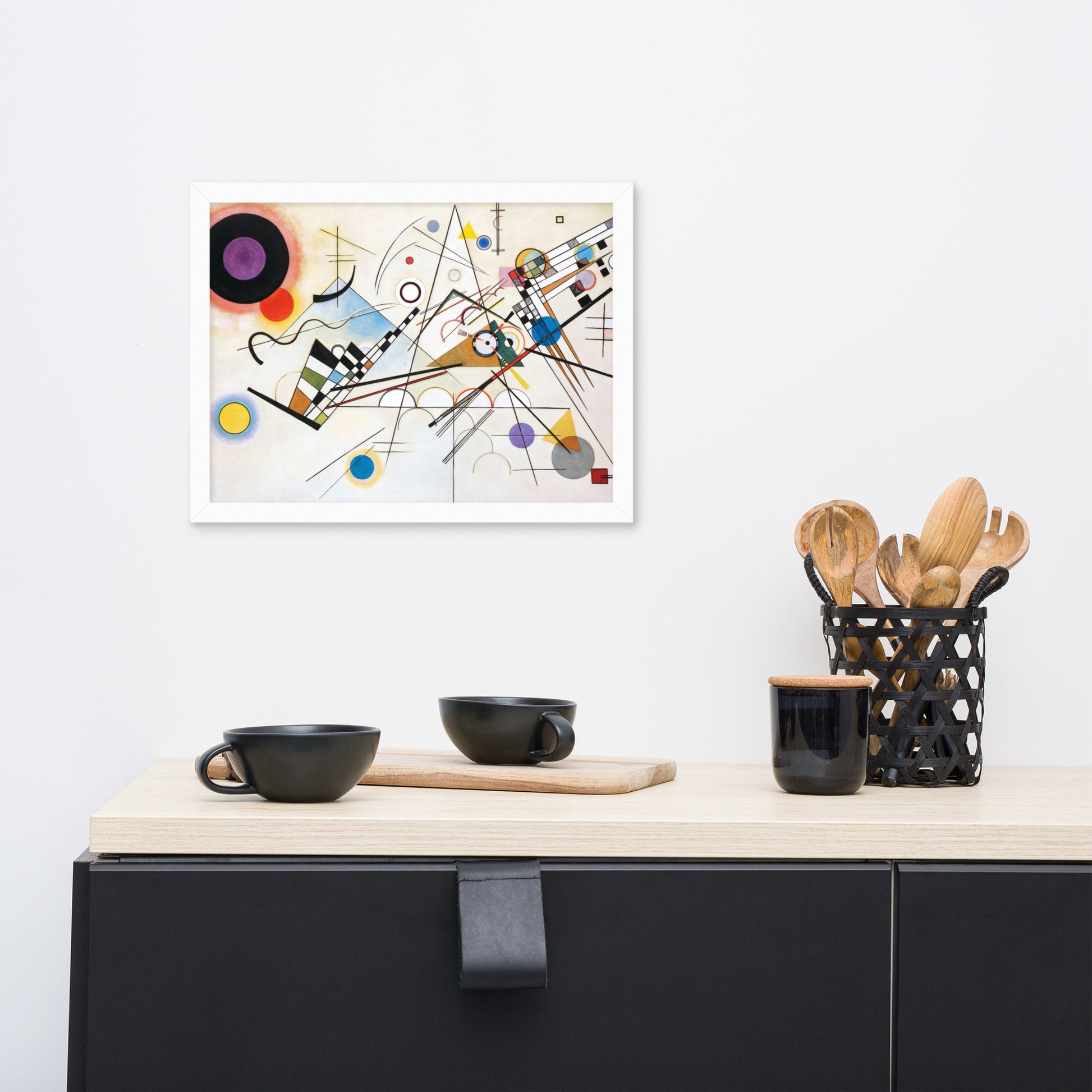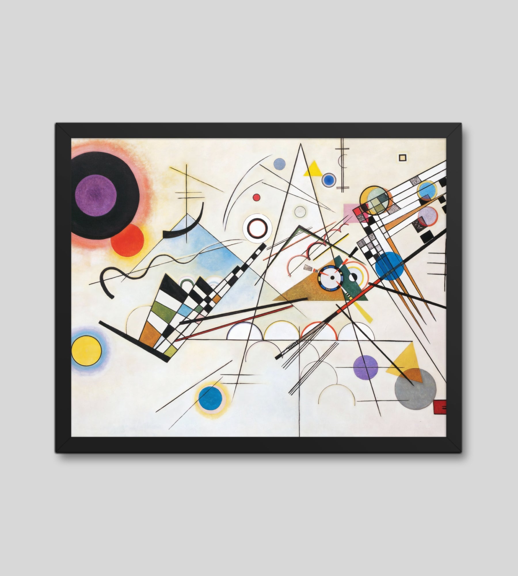 Bring geometric rhythm and vibrant abstraction into your space with Composition VIII by Wassily Kandinsky—a bold framed wall print that celebrates the harmony of shape, line, and color. Originally painted in 1923, this iconic abstract artwork showcases Kandinsky’s shift toward structured composition, blending circles, triangles, and intersecting vectors into a symphony of visual motion.