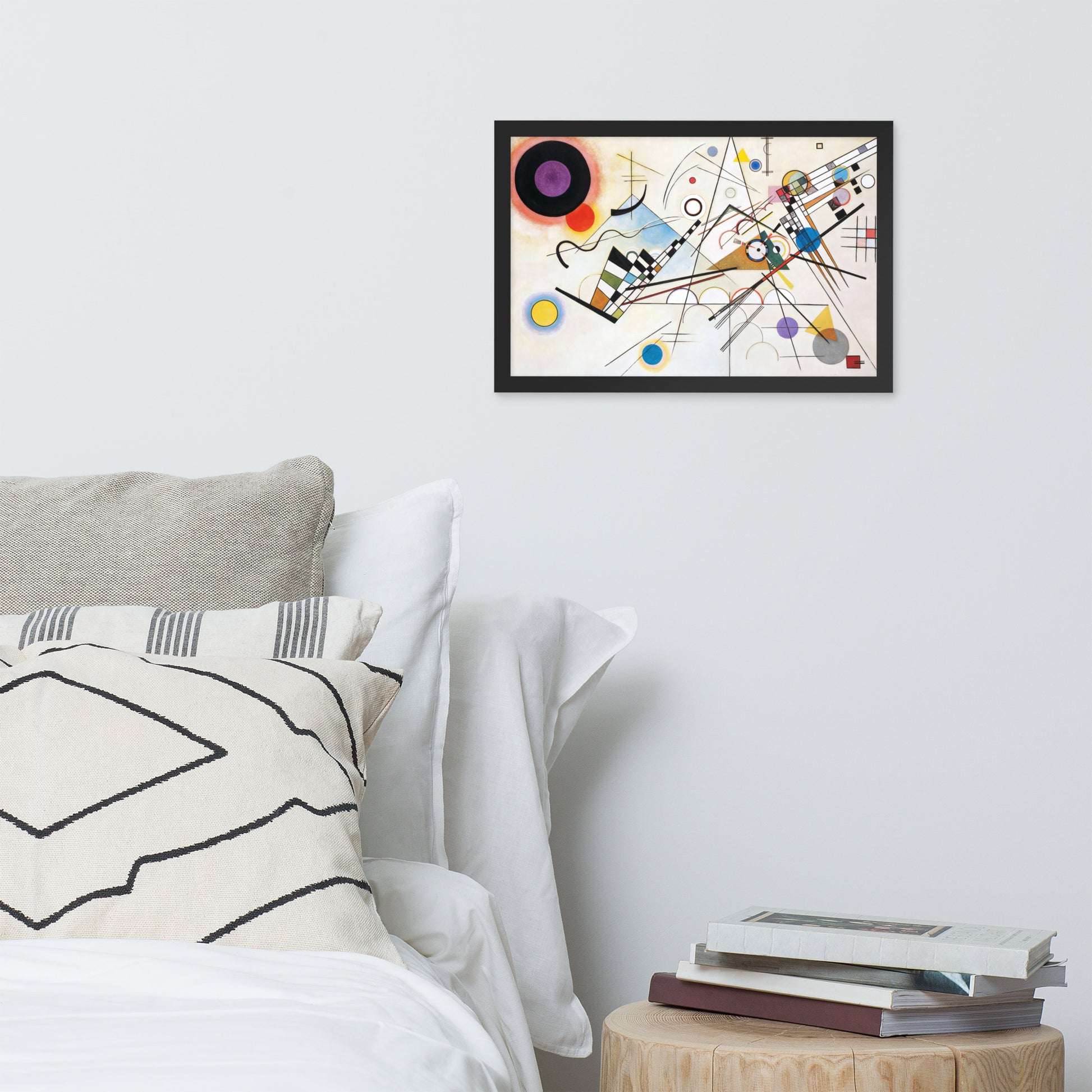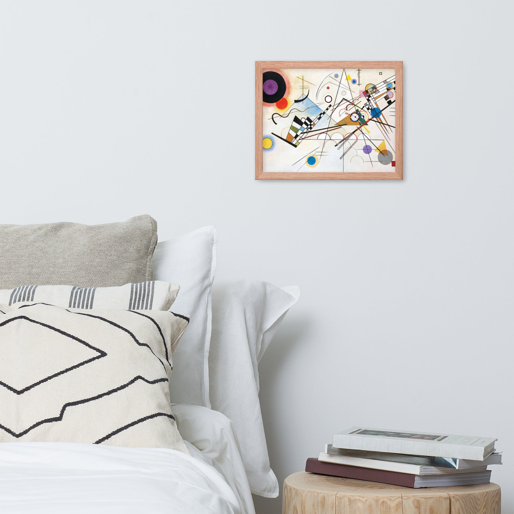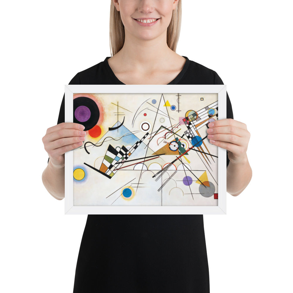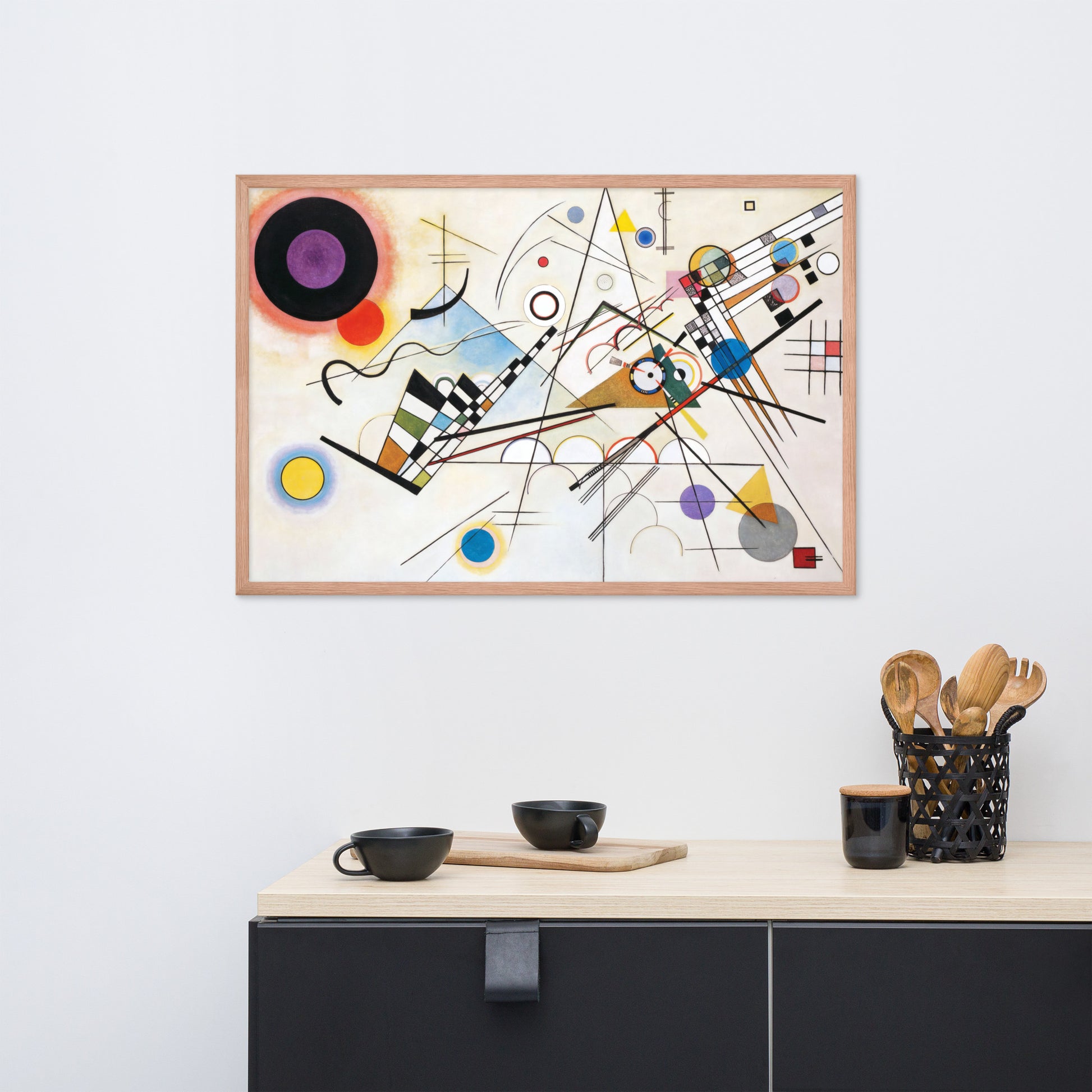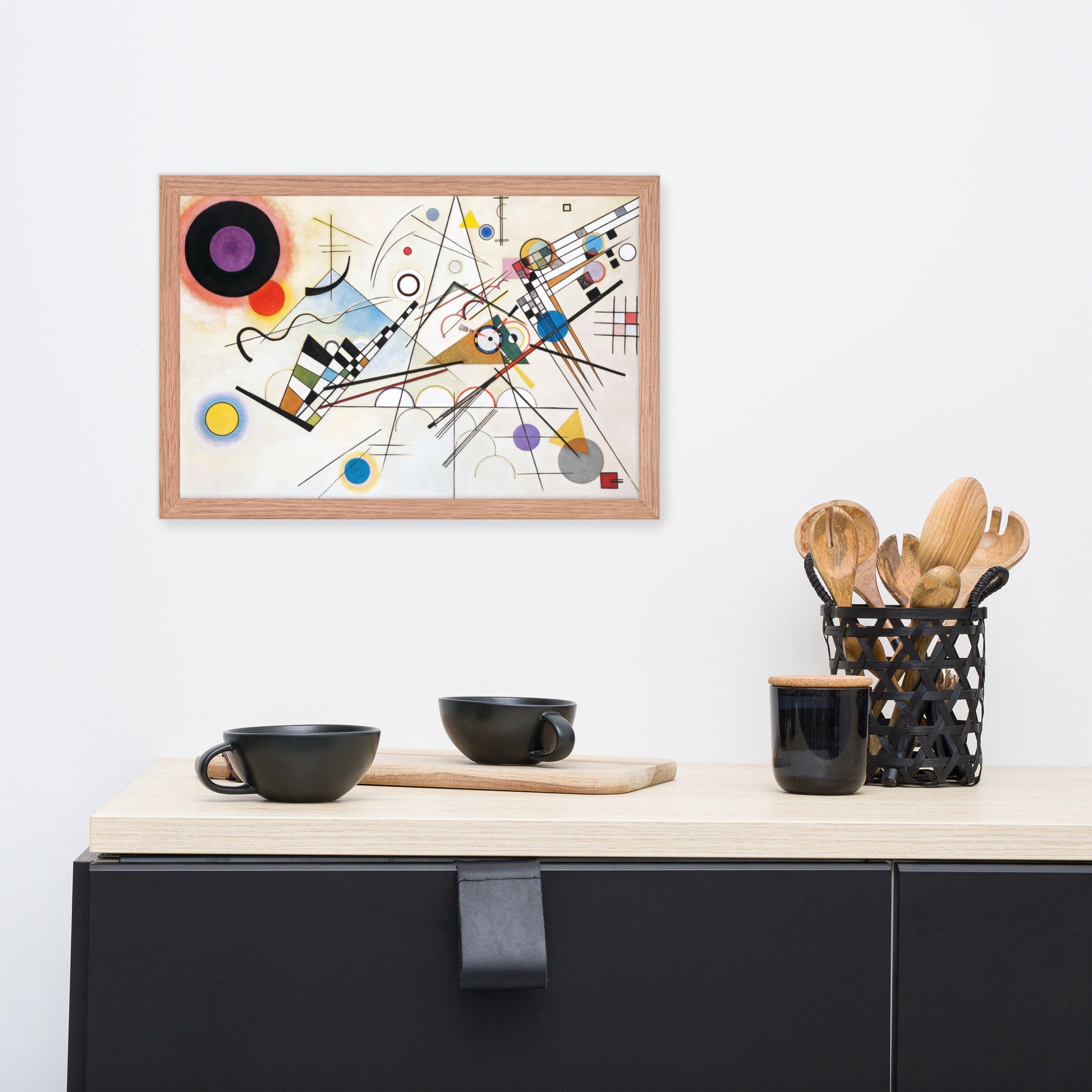 Bring geometric rhythm and vibrant abstraction into your space with Composition VIII by Wassily Kandinsky—a bold framed wall print that celebrates the harmony of shape, line, and color. Originally painted in 1923, this iconic abstract artwork showcases Kandinsky’s shift toward structured composition, blending circles, triangles, and intersecting vectors into a symphony of visual motion.