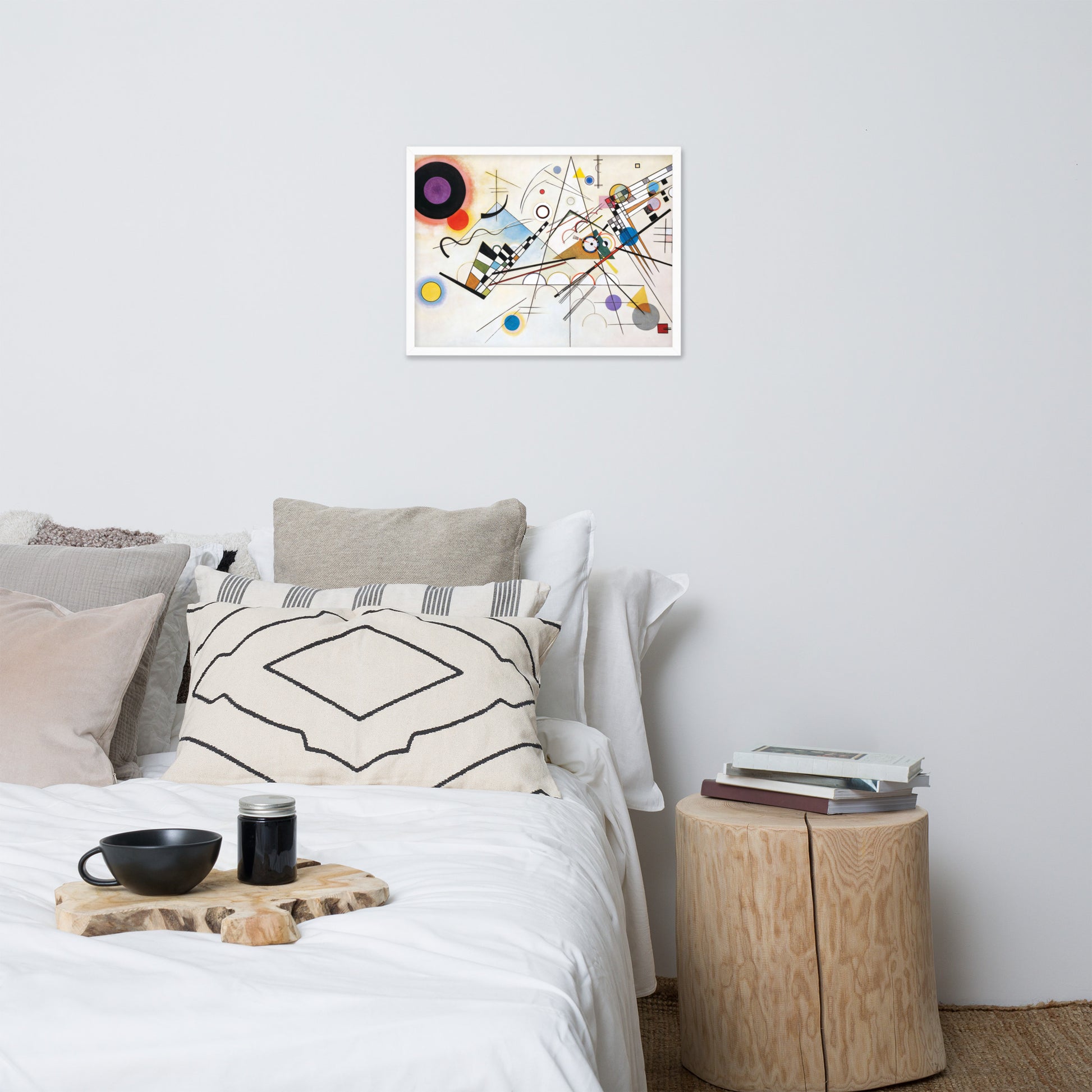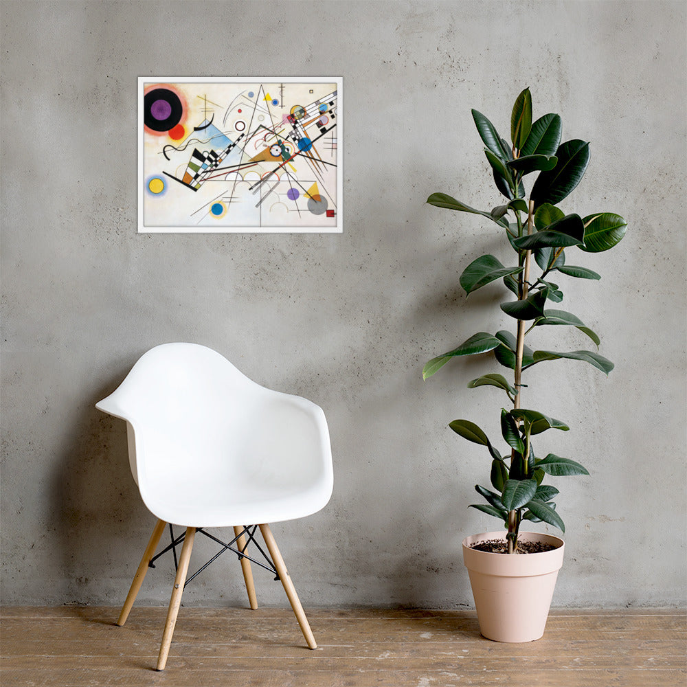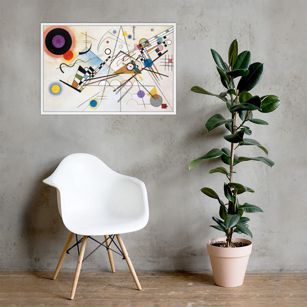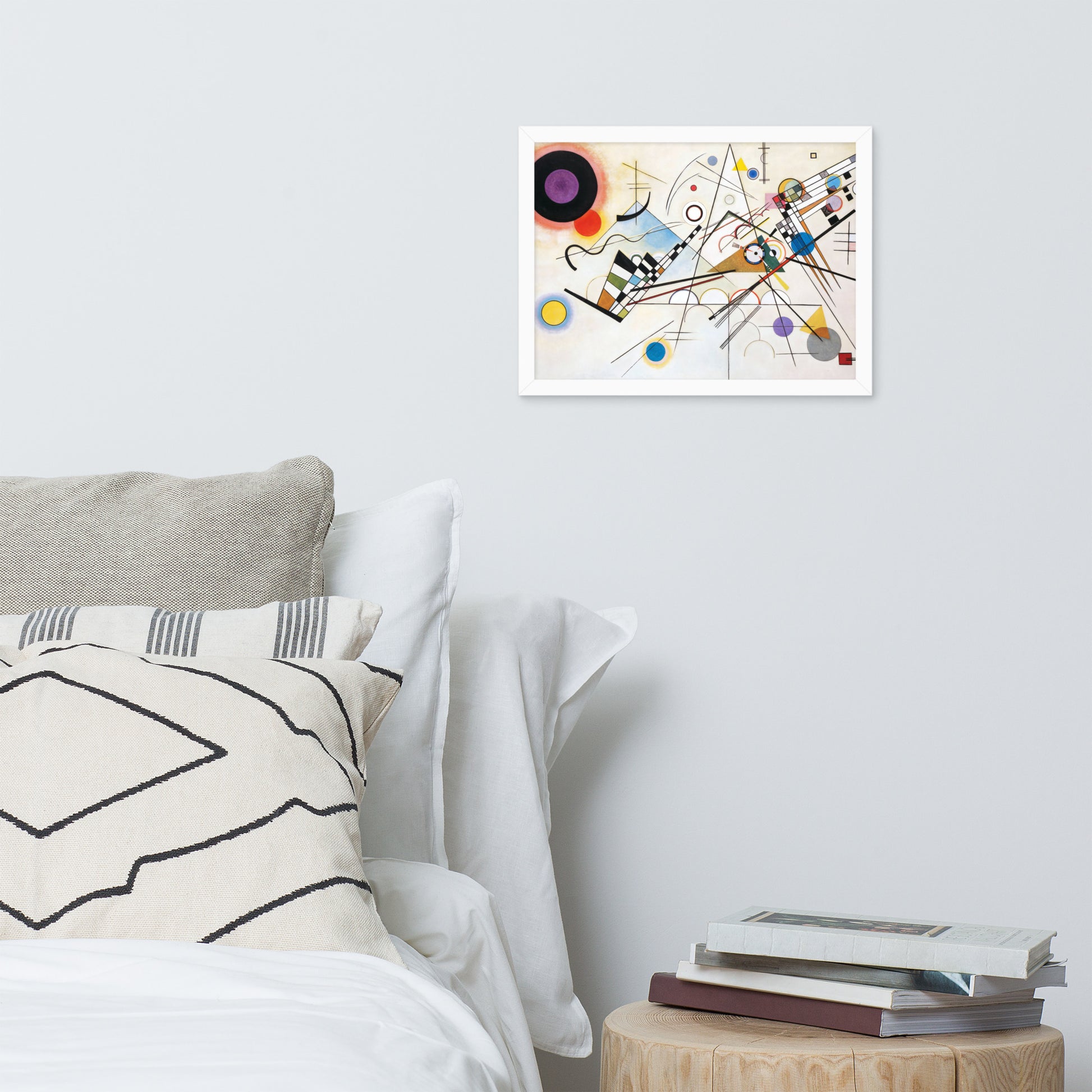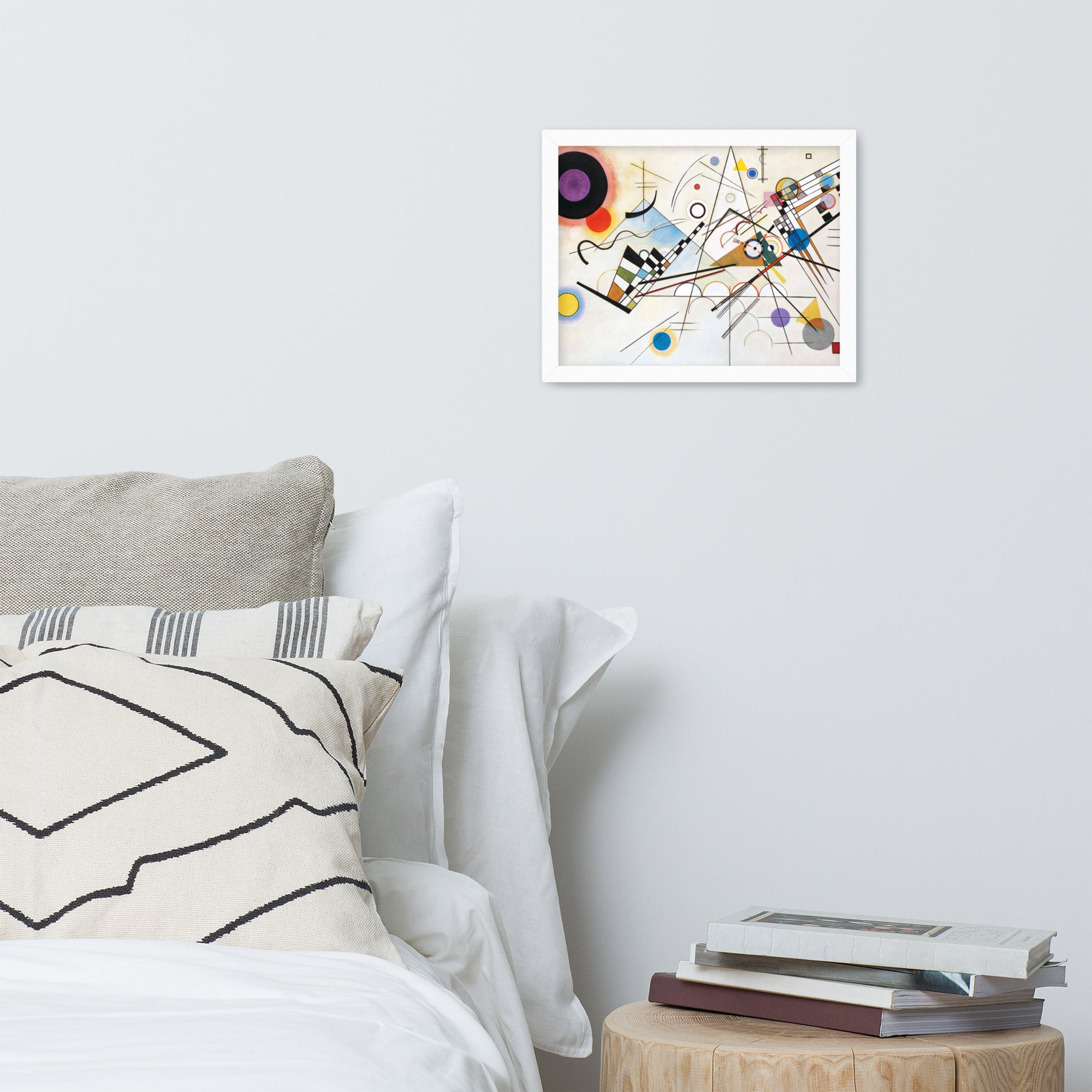 Bring geometric rhythm and vibrant abstraction into your space with Composition VIII by Wassily Kandinsky—a bold framed wall print that celebrates the harmony of shape, line, and color. Originally painted in 1923, this iconic abstract artwork showcases Kandinsky’s shift toward structured composition, blending circles, triangles, and intersecting vectors into a symphony of visual motion.