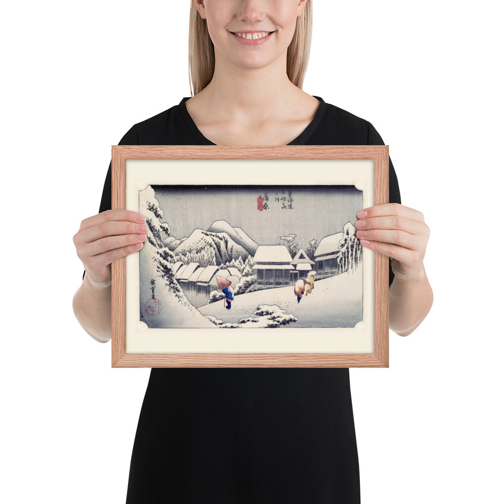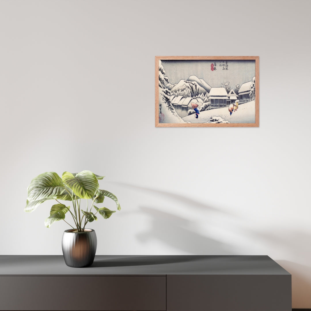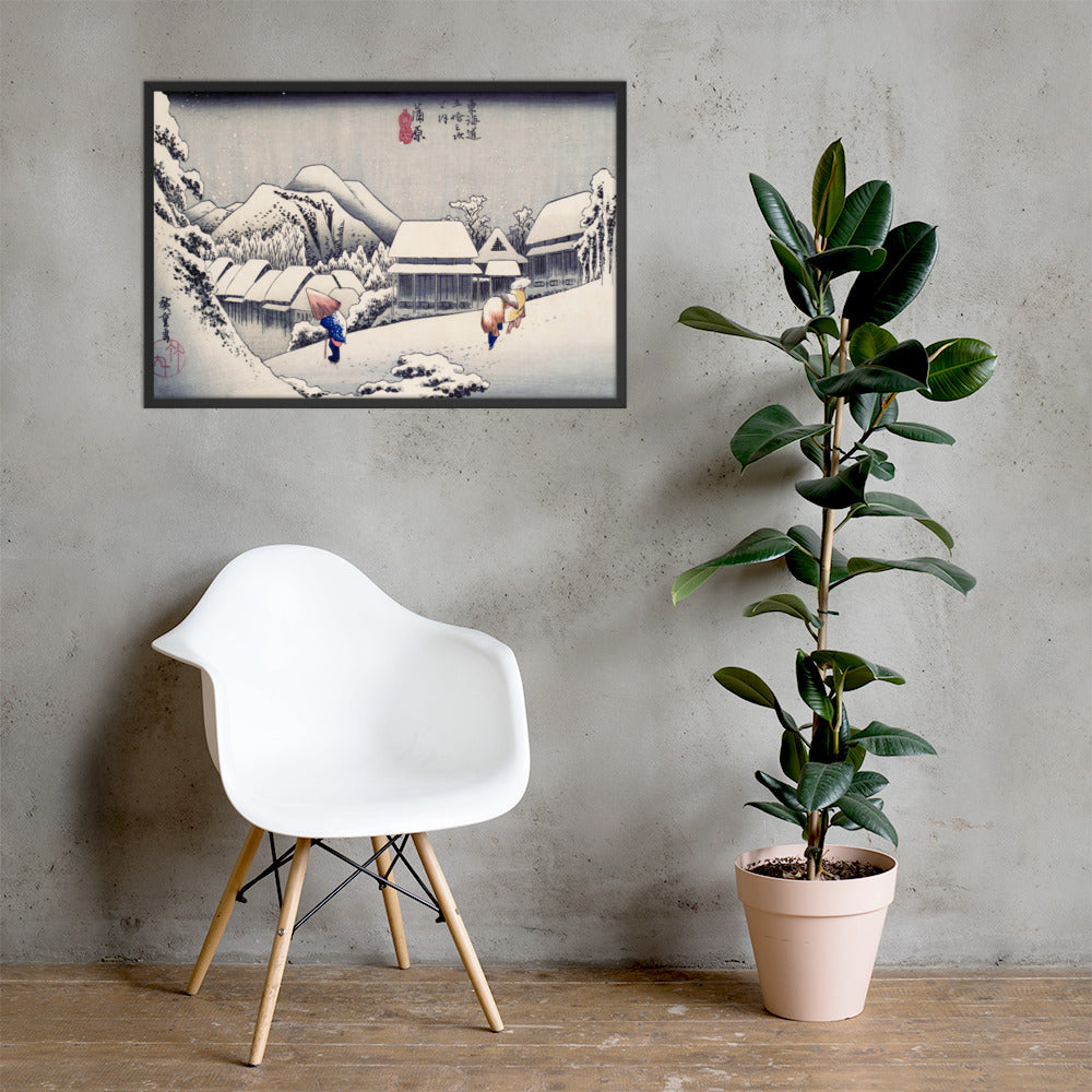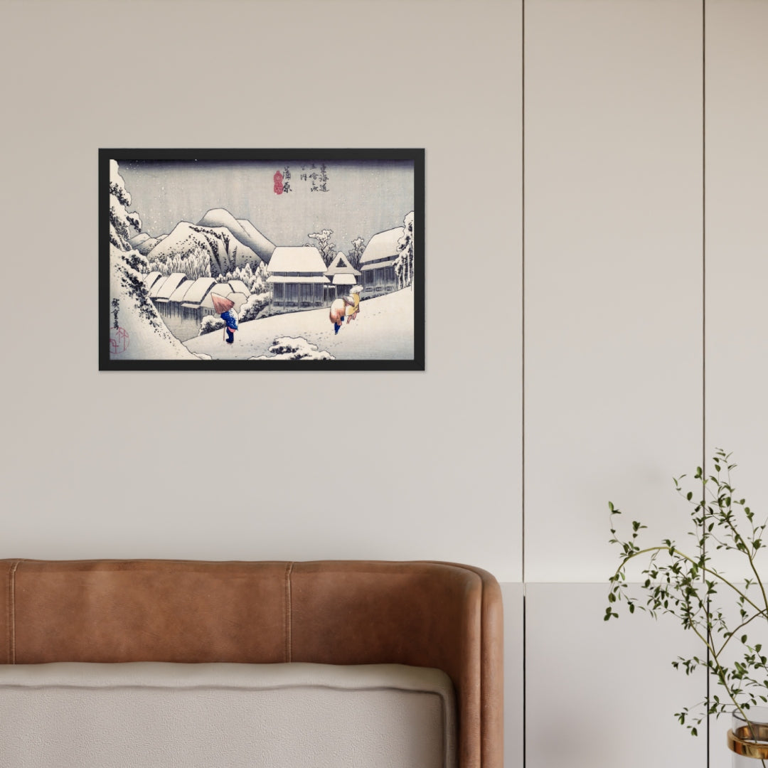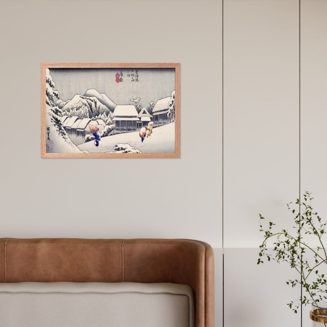 Ideal for minimalist interiors or spaces that celebrate cultural nuance, this print brings a sense of calm and seasonal beauty to any room. The framing enhances the depth and texture of the scene, making it a compelling focal point for living rooms, reading nooks, or curated gallery walls. Whether you're drawn to Japanese aesthetics, nature-inspired decor, or historical storytelling through art, this piece offers a contemplative escape into Edo-period Japan.