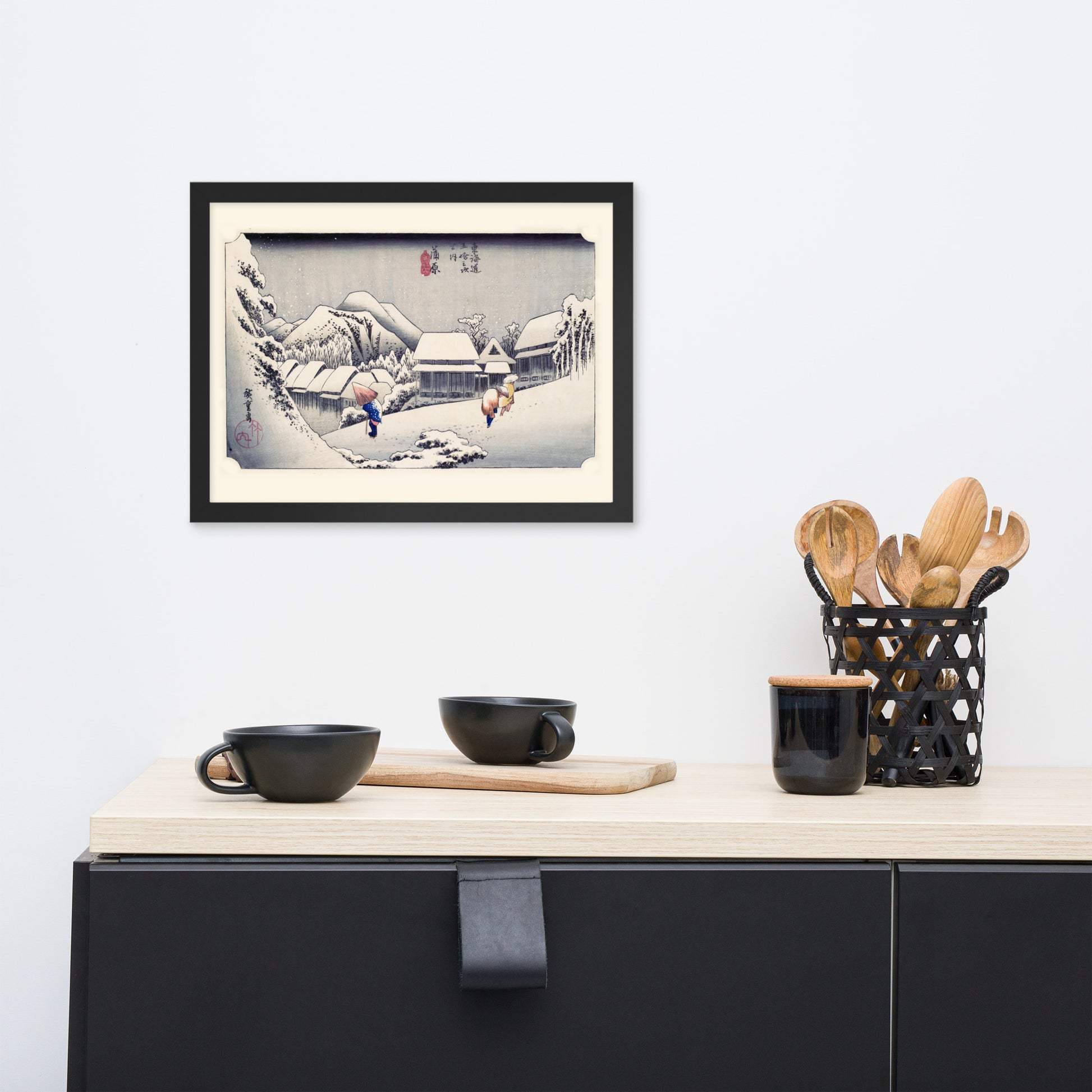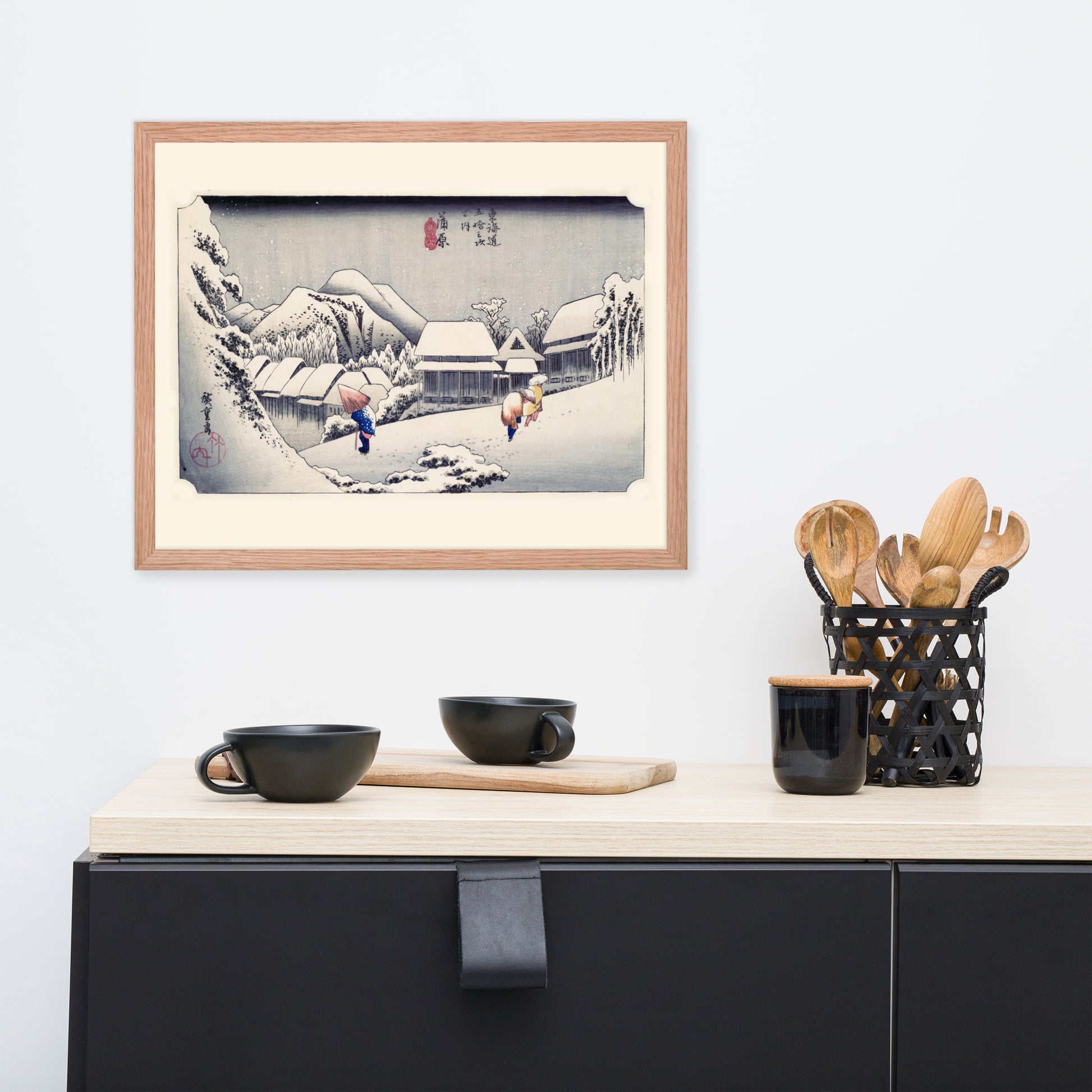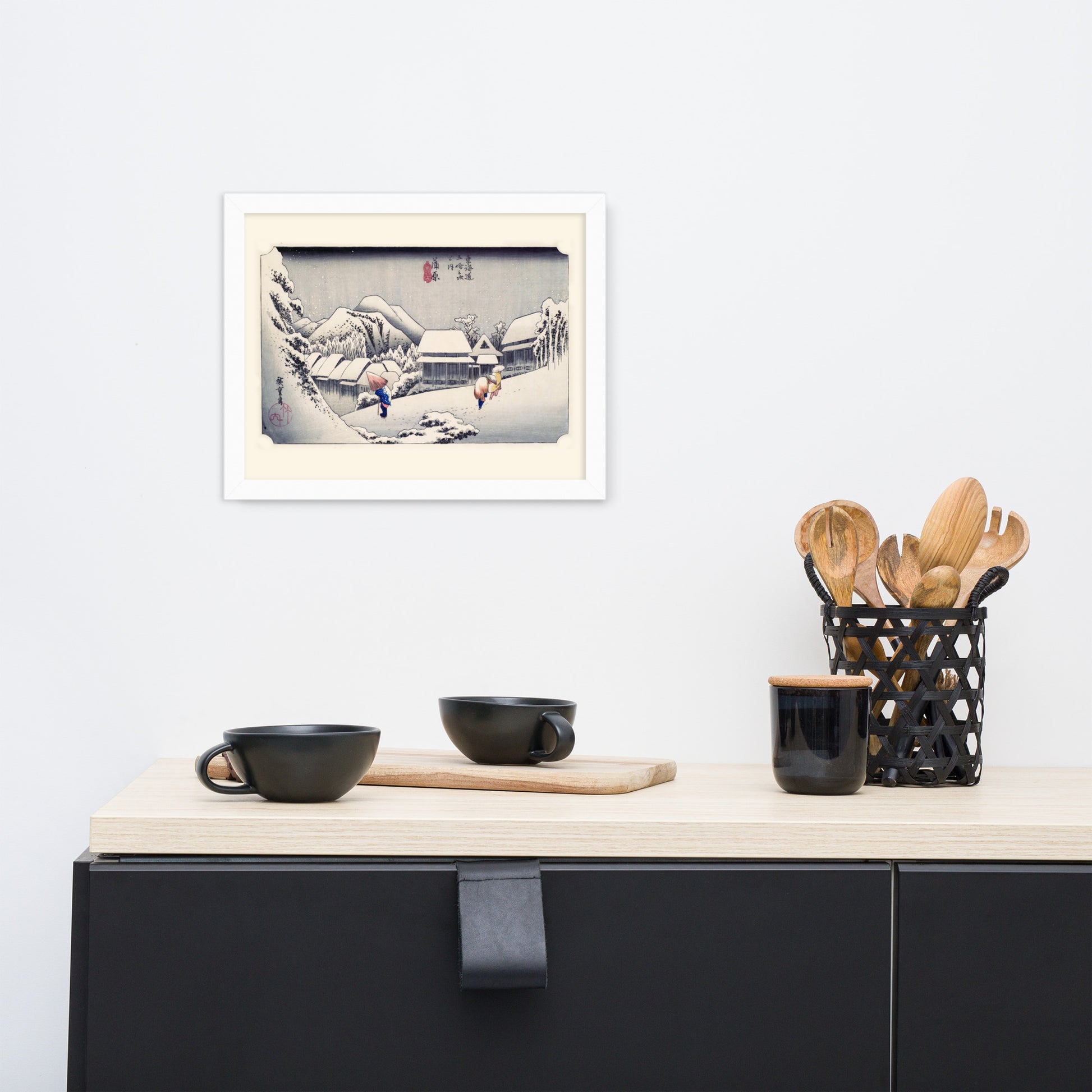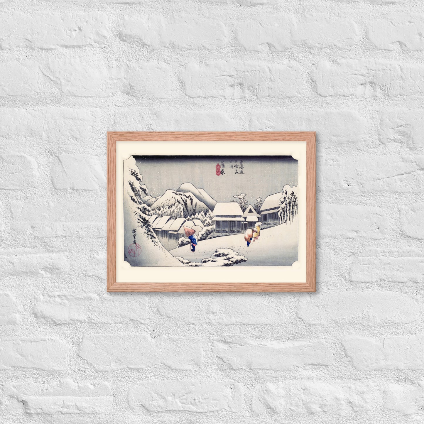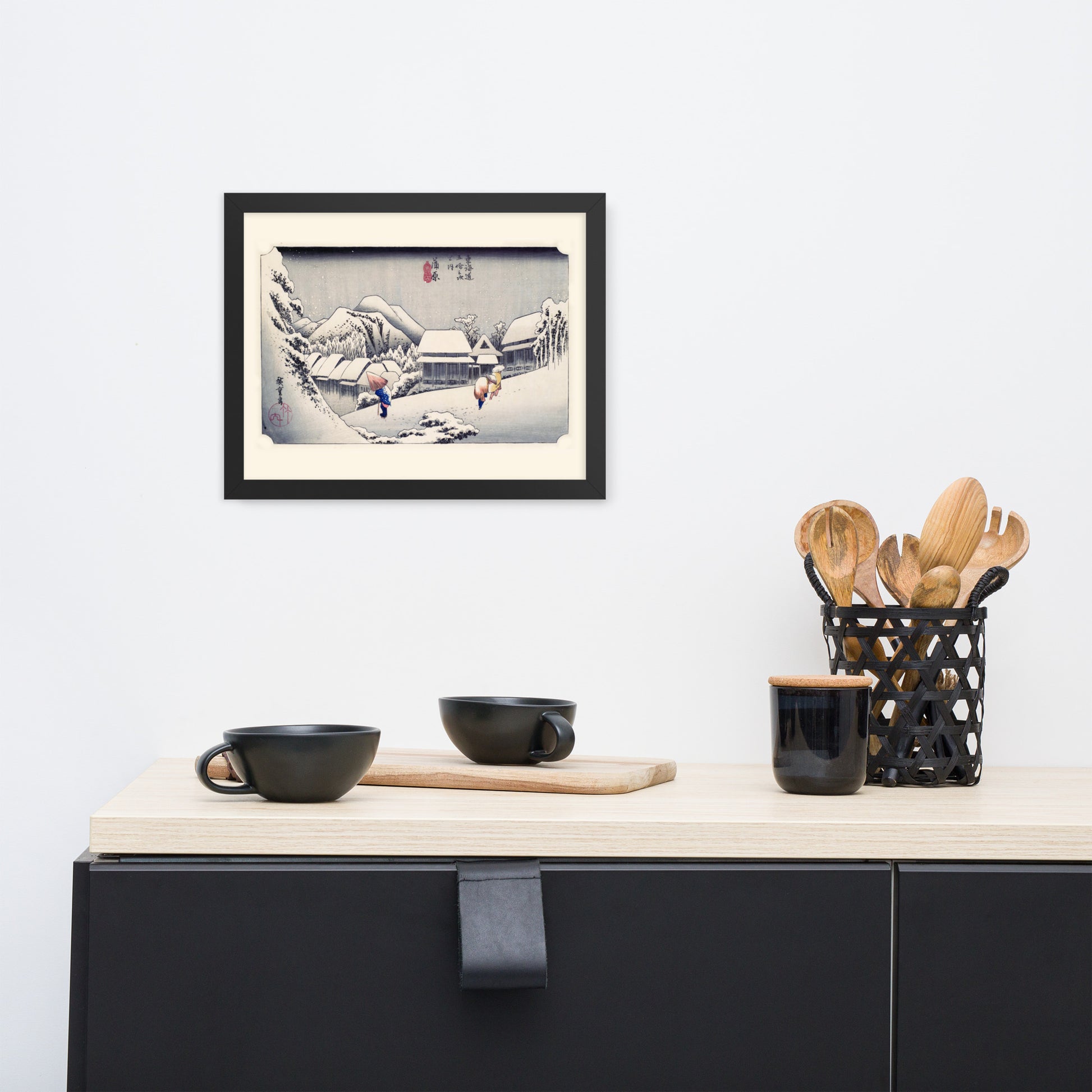 Ideal for minimalist interiors or spaces that celebrate cultural nuance, this print brings a sense of calm and seasonal beauty to any room. The framing enhances the depth and texture of the scene, making it a compelling focal point for living rooms, reading nooks, or curated gallery walls. Whether you're drawn to Japanese aesthetics, nature-inspired decor, or historical storytelling through art, this piece offers a contemplative escape into Edo-period Japan.