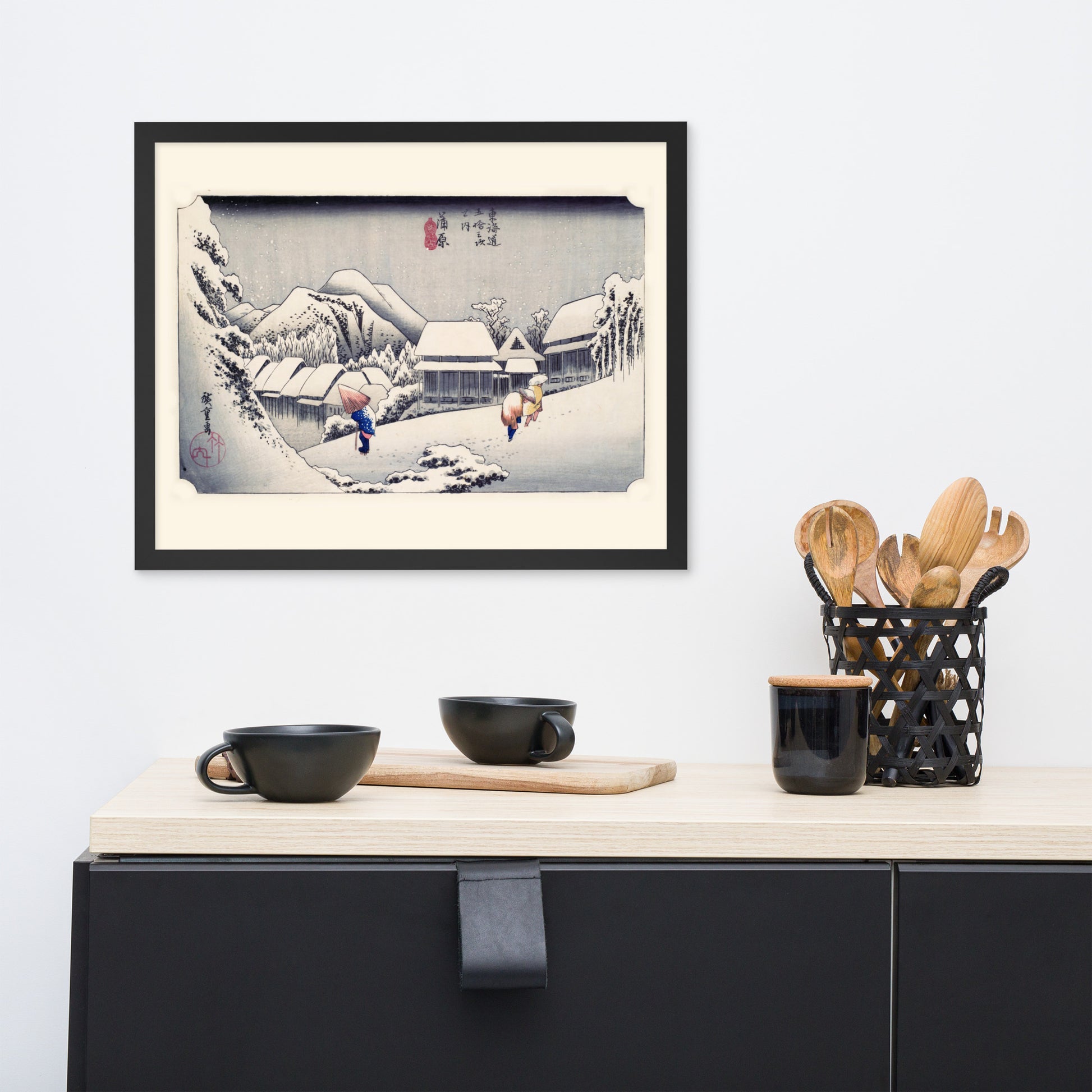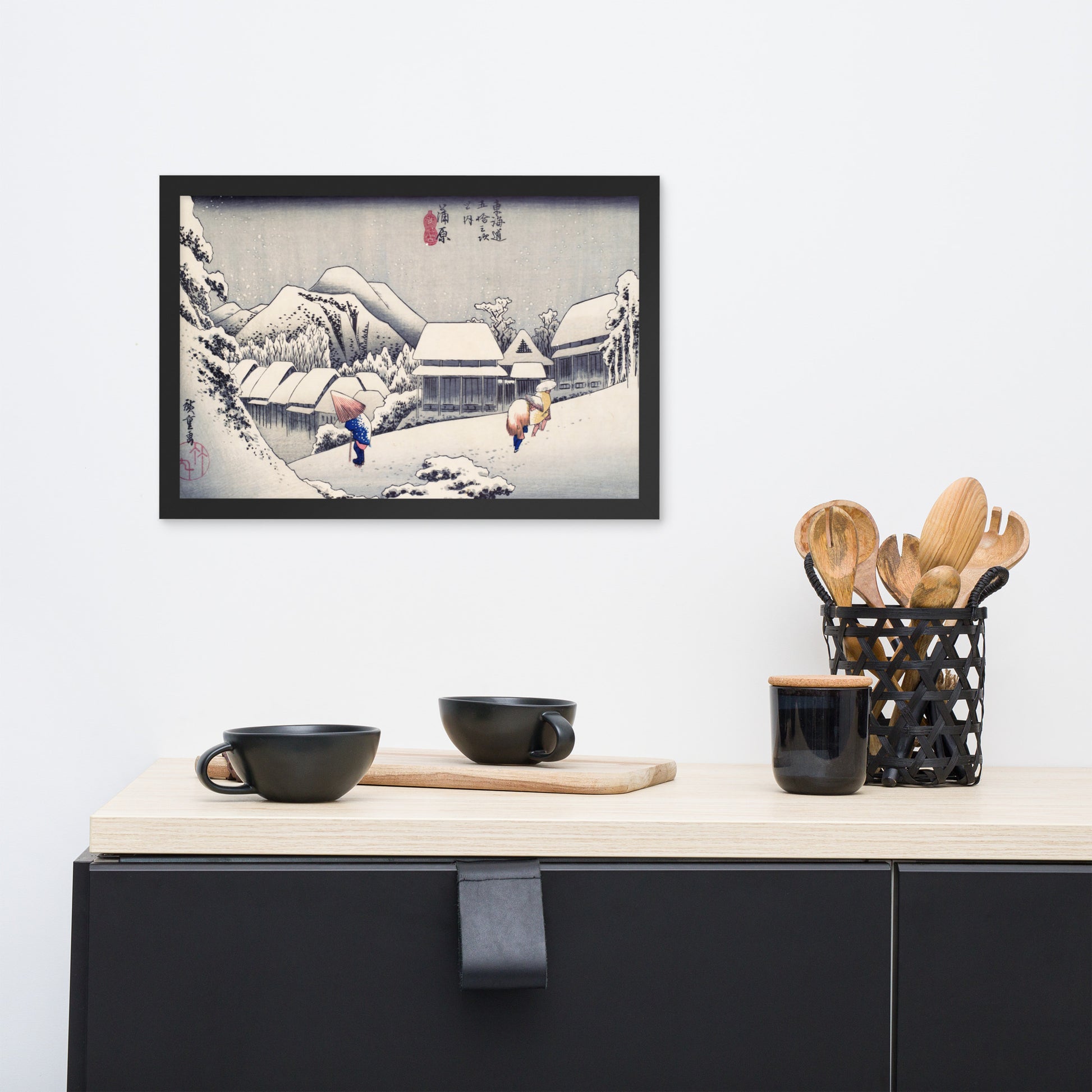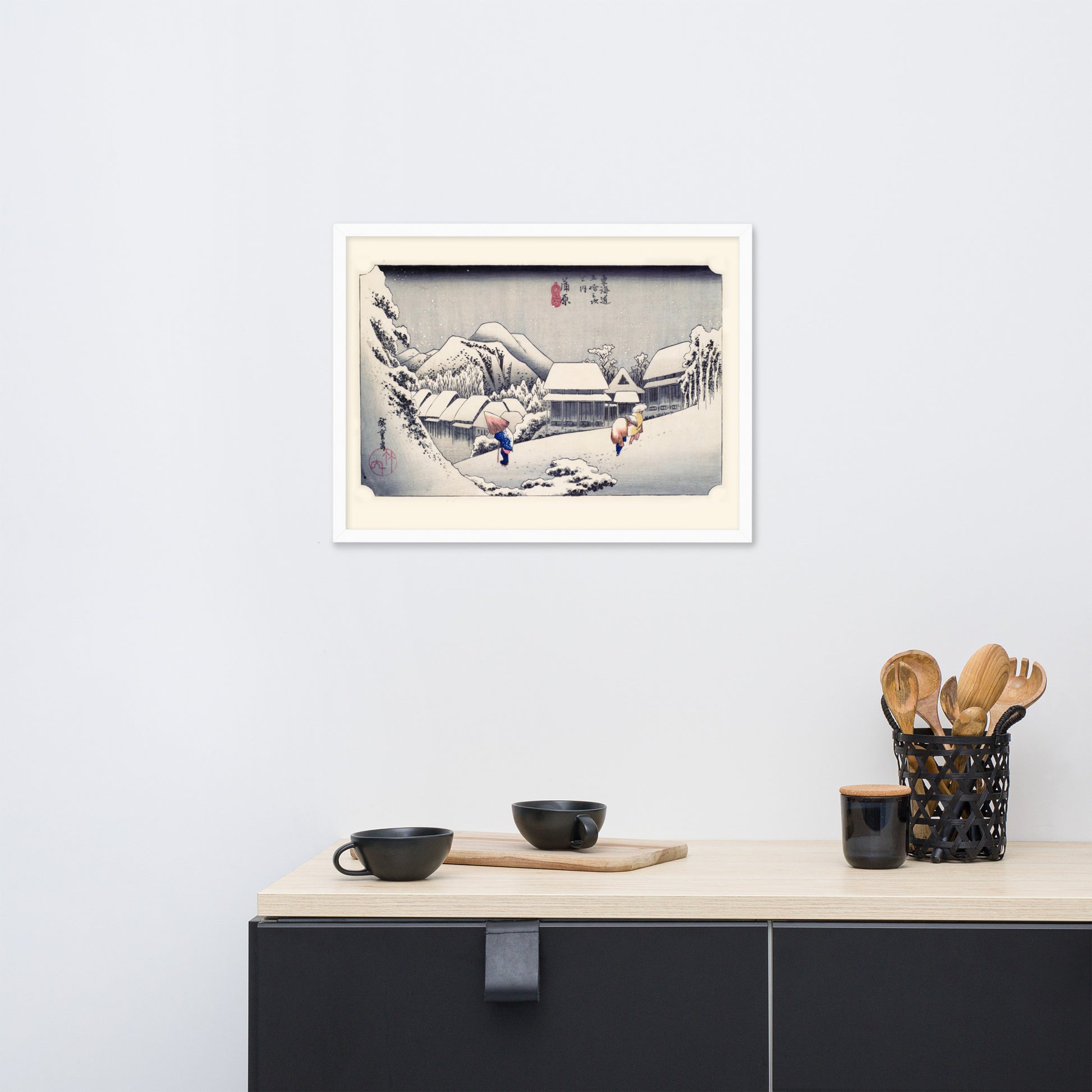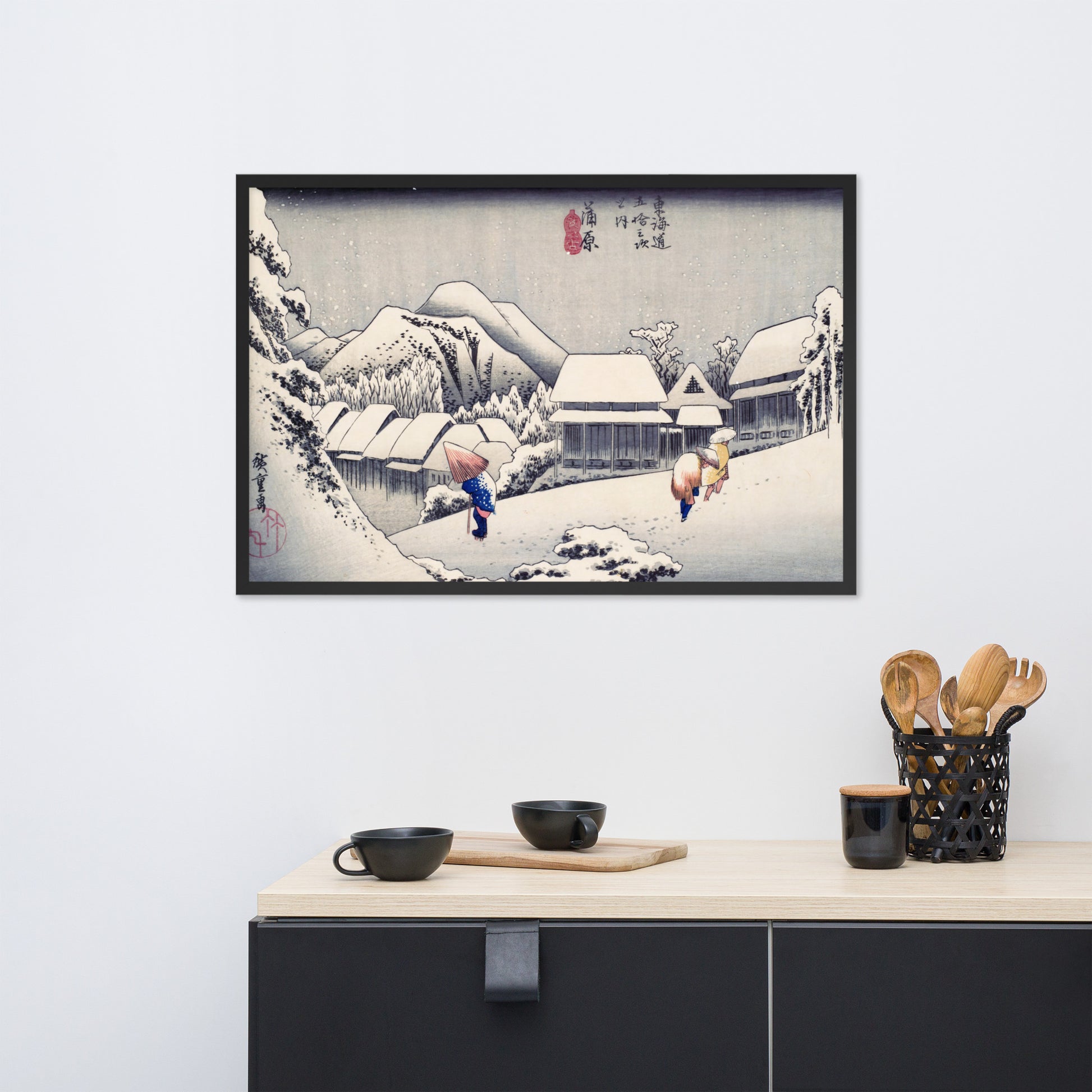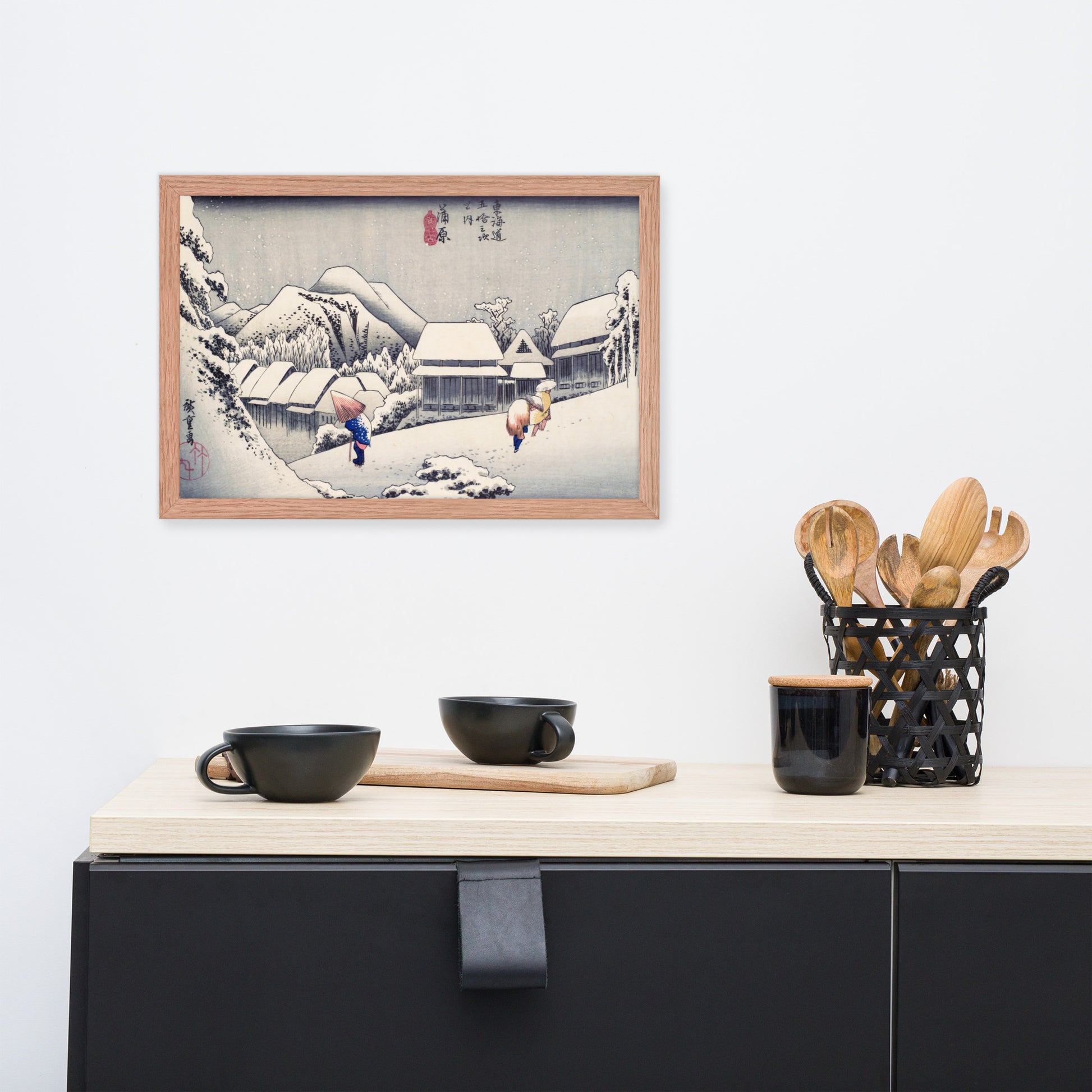 Ideal for minimalist interiors or spaces that celebrate cultural nuance, this print brings a sense of calm and seasonal beauty to any room. The framing enhances the depth and texture of the scene, making it a compelling focal point for living rooms, reading nooks, or curated gallery walls. Whether you're drawn to Japanese aesthetics, nature-inspired decor, or historical storytelling through art, this piece offers a contemplative escape into Edo-period Japan.