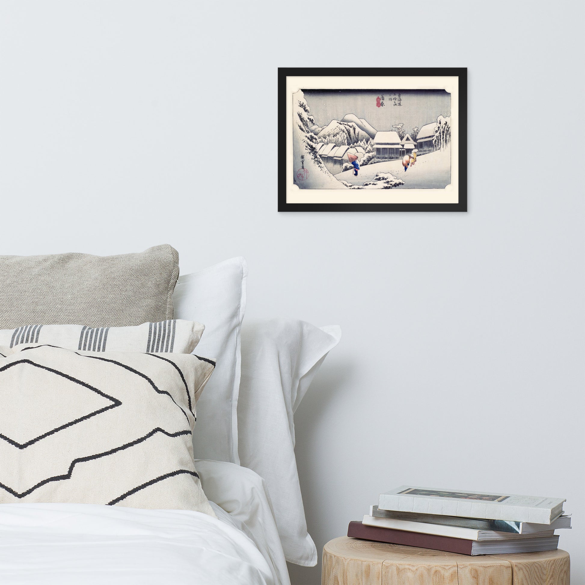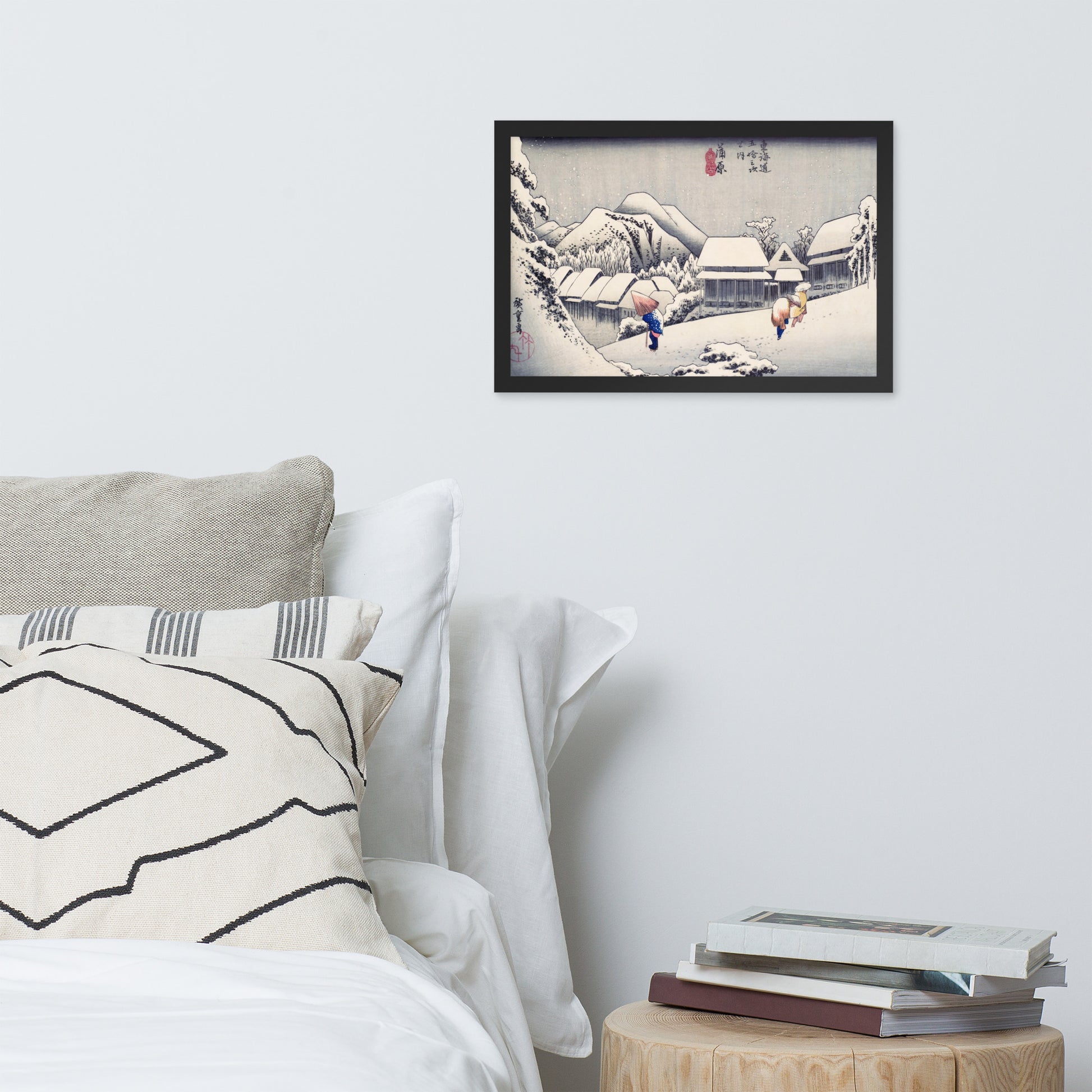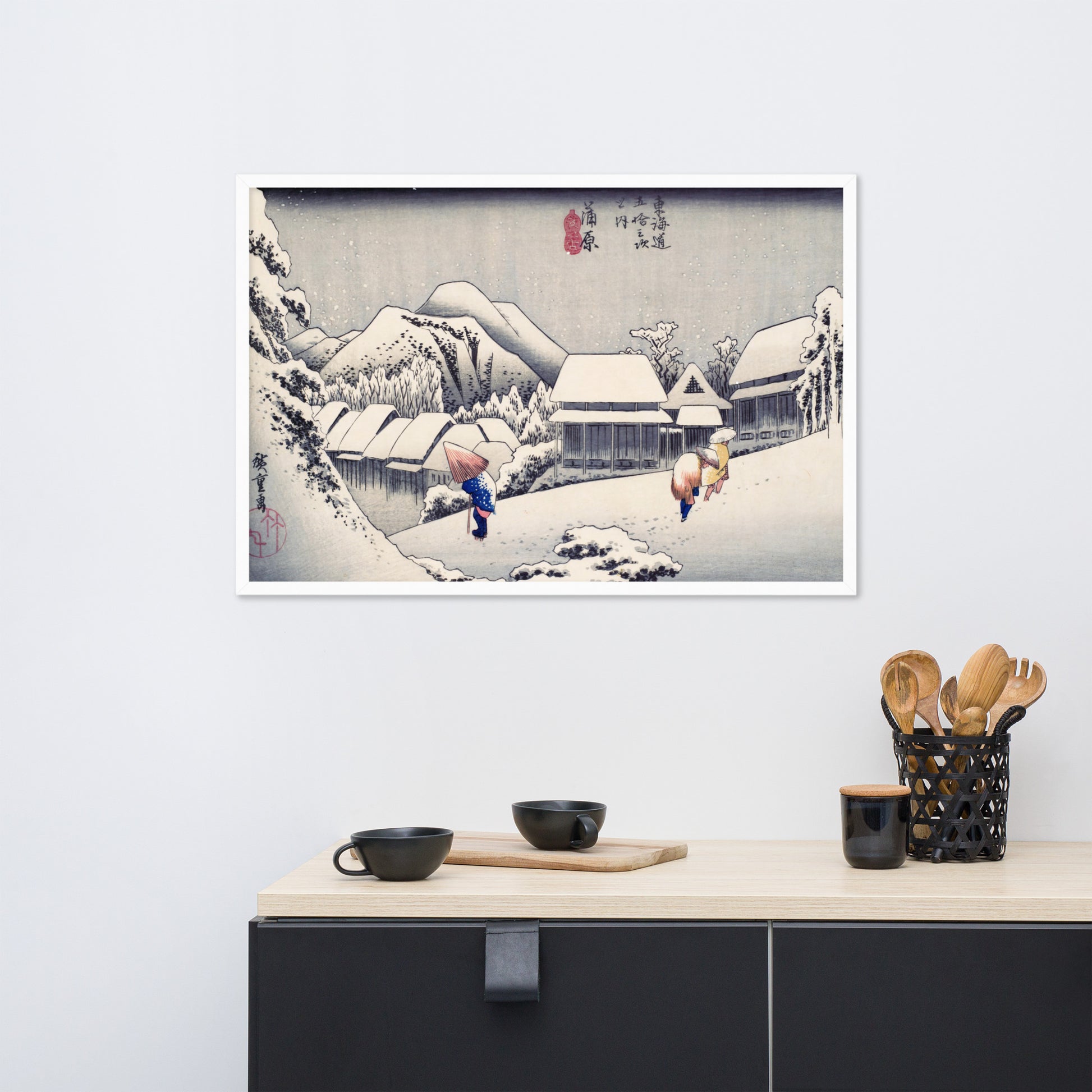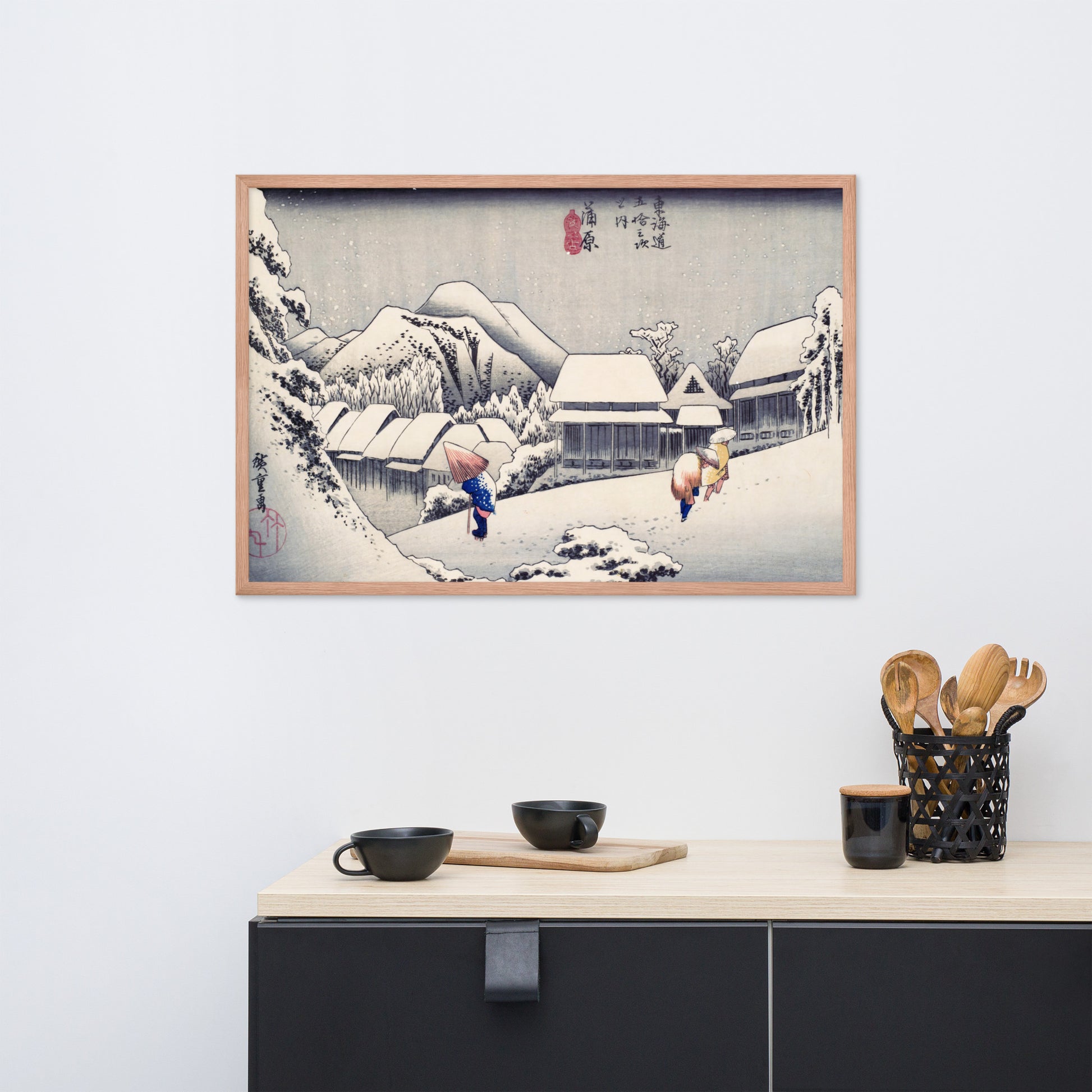 Ideal for minimalist interiors or spaces that celebrate cultural nuance, this print brings a sense of calm and seasonal beauty to any room. The framing enhances the depth and texture of the scene, making it a compelling focal point for living rooms, reading nooks, or curated gallery walls. Whether you're drawn to Japanese aesthetics, nature-inspired decor, or historical storytelling through art, this piece offers a contemplative escape into Edo-period Japan.