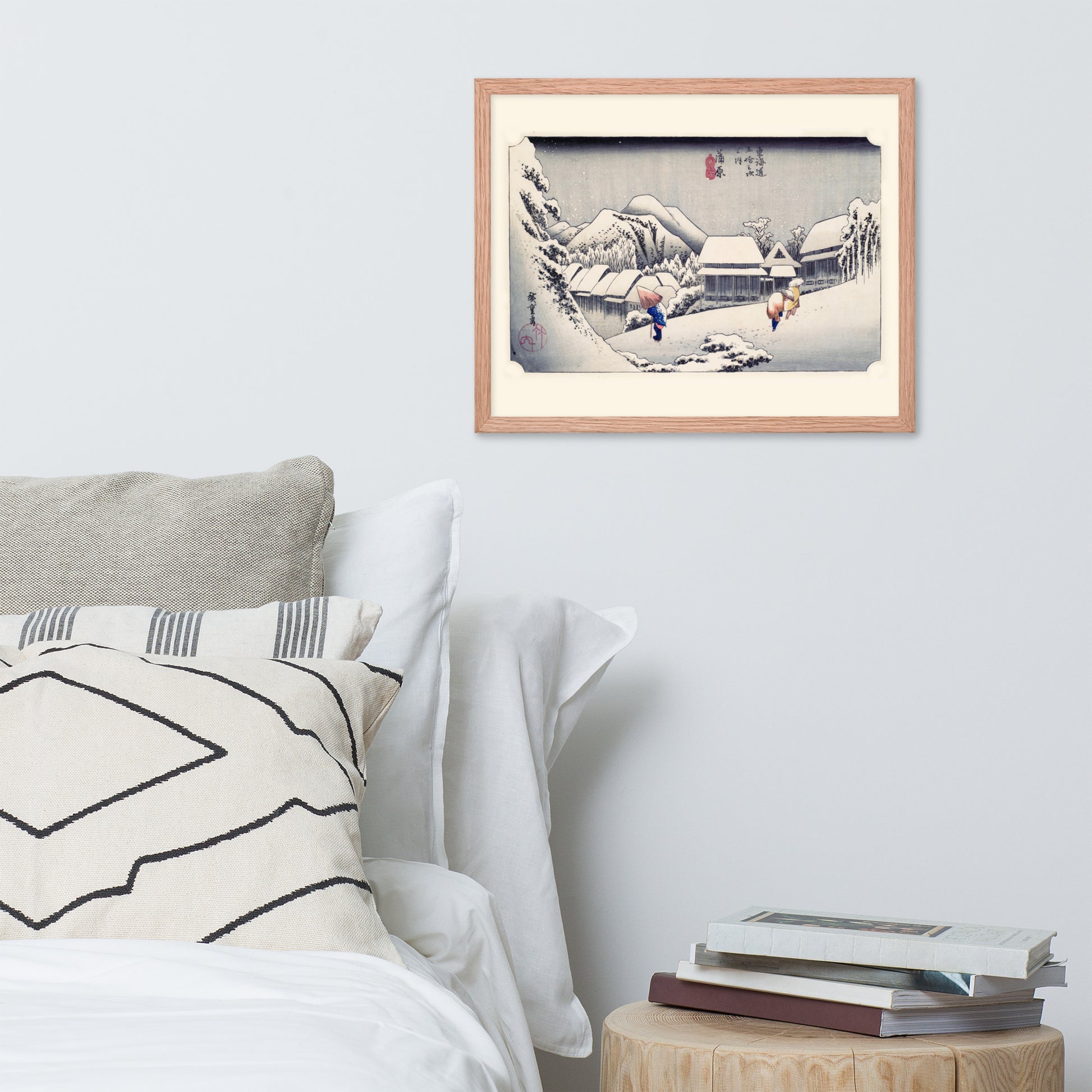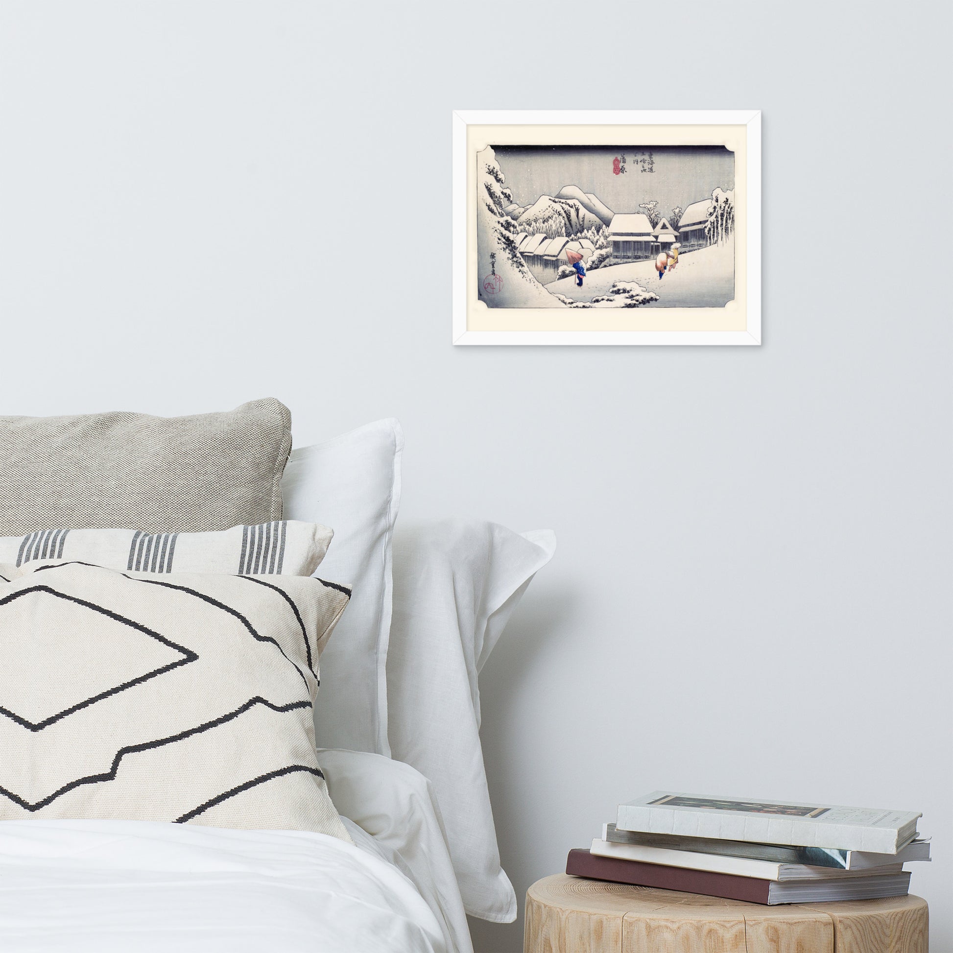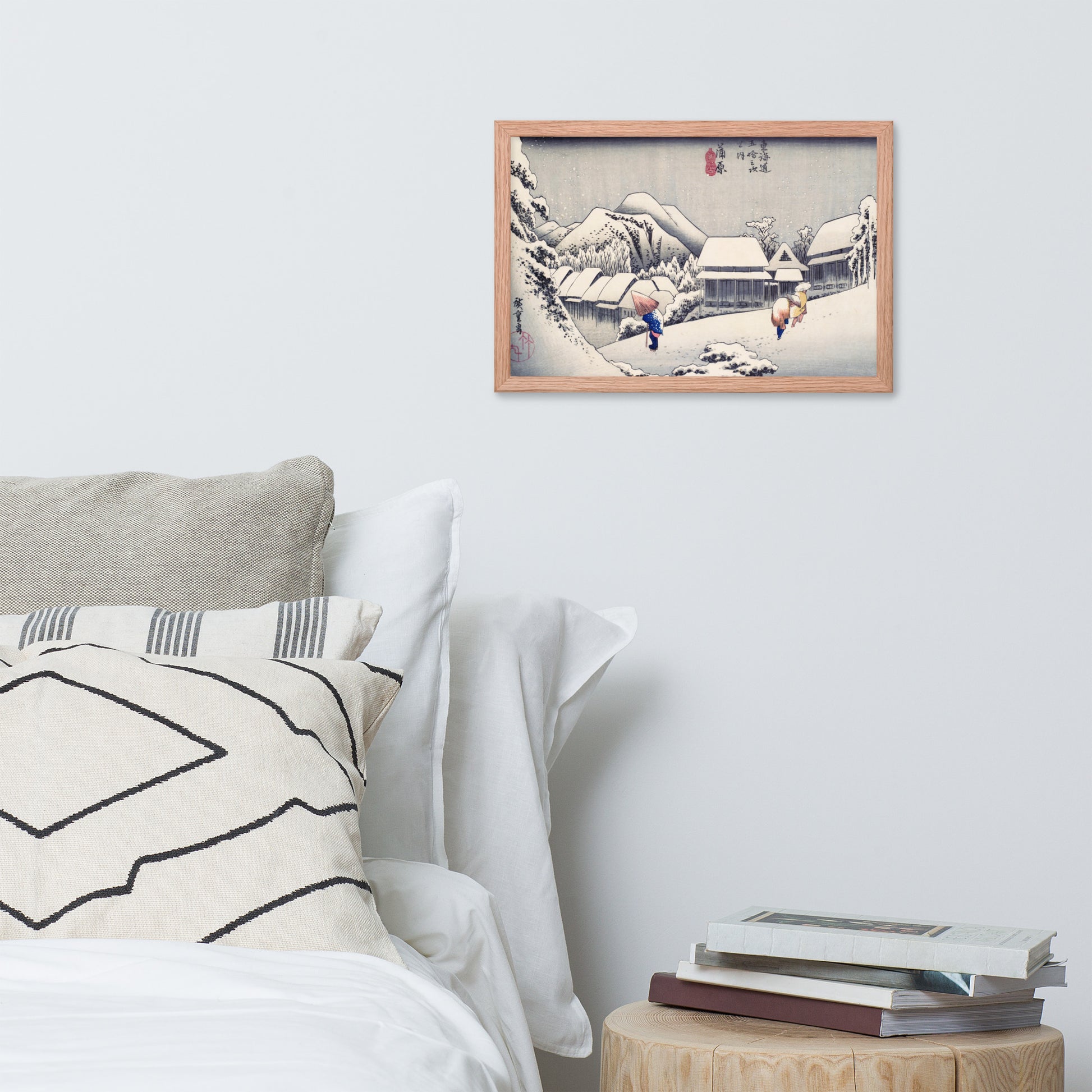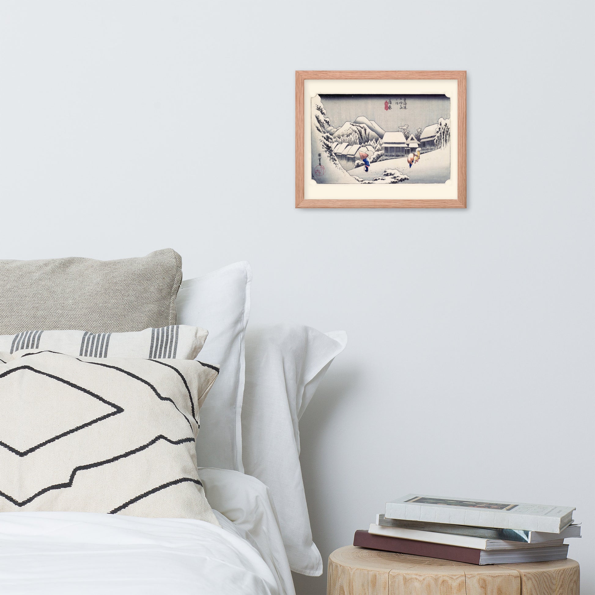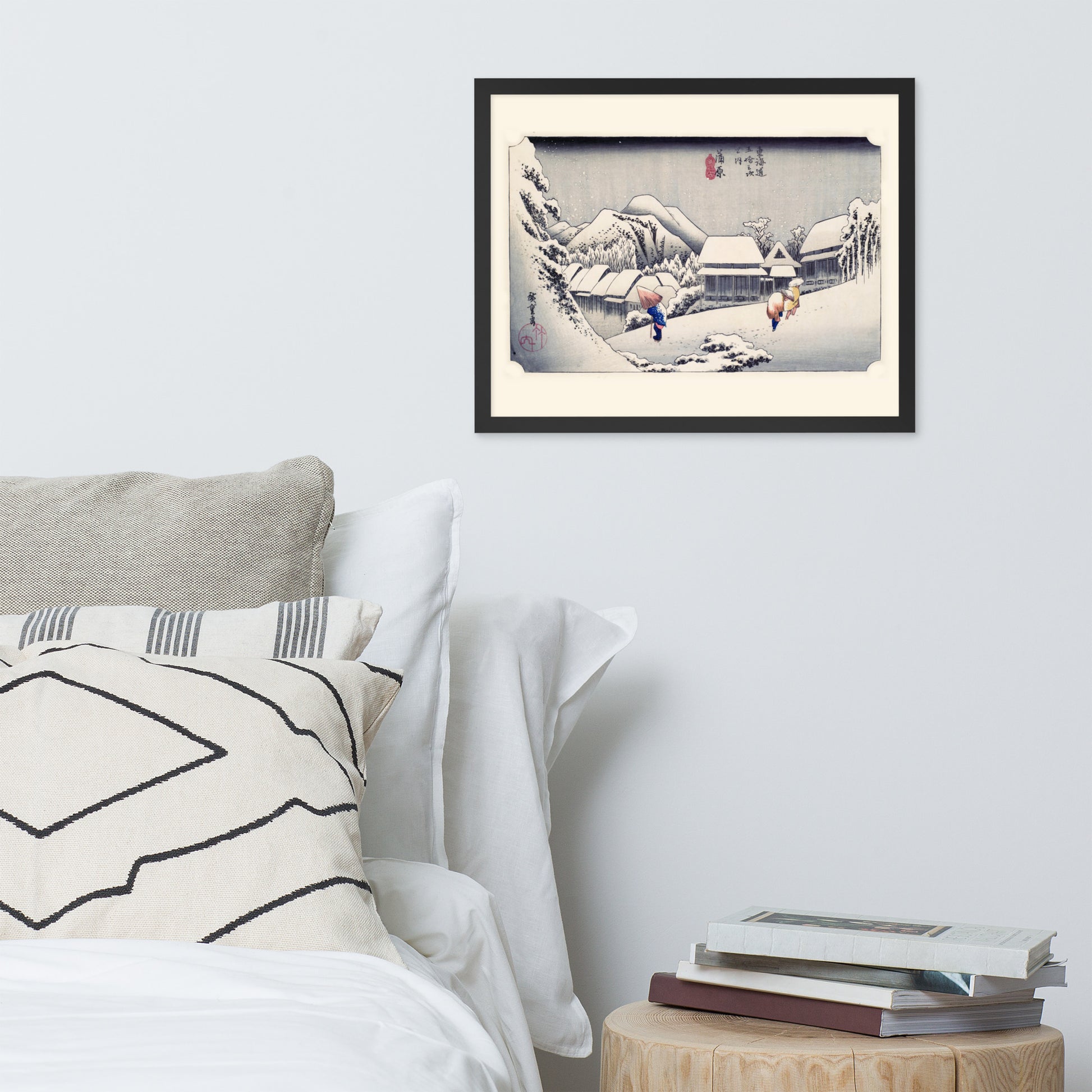 Ideal for minimalist interiors or spaces that celebrate cultural nuance, this print brings a sense of calm and seasonal beauty to any room. The framing enhances the depth and texture of the scene, making it a compelling focal point for living rooms, reading nooks, or curated gallery walls. Whether you're drawn to Japanese aesthetics, nature-inspired decor, or historical storytelling through art, this piece offers a contemplative escape into Edo-period Japan.