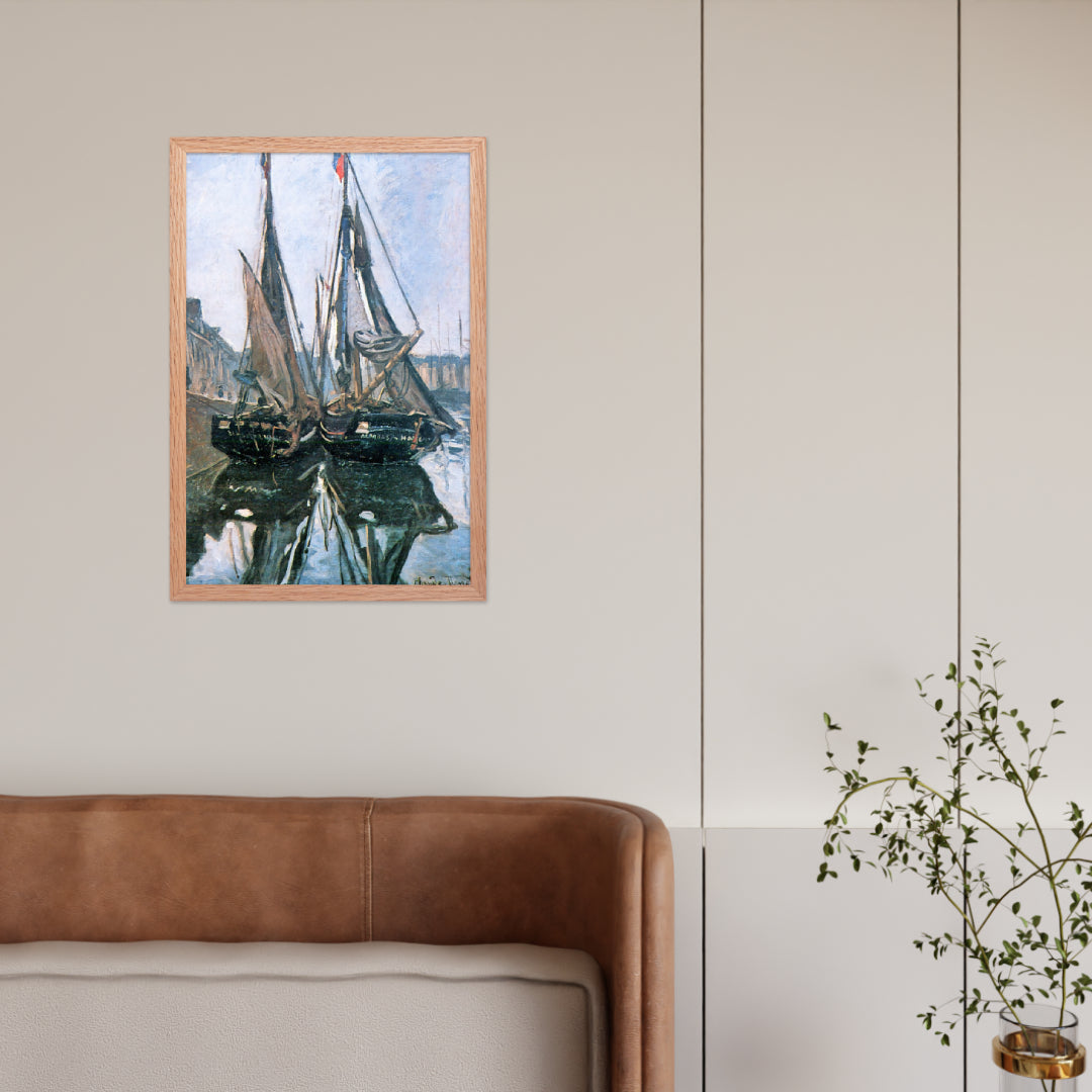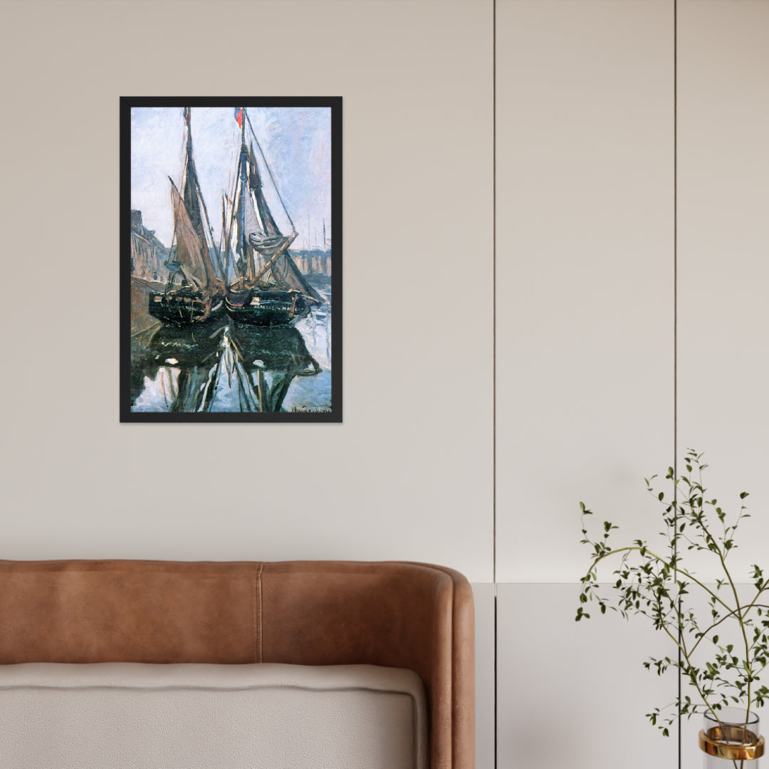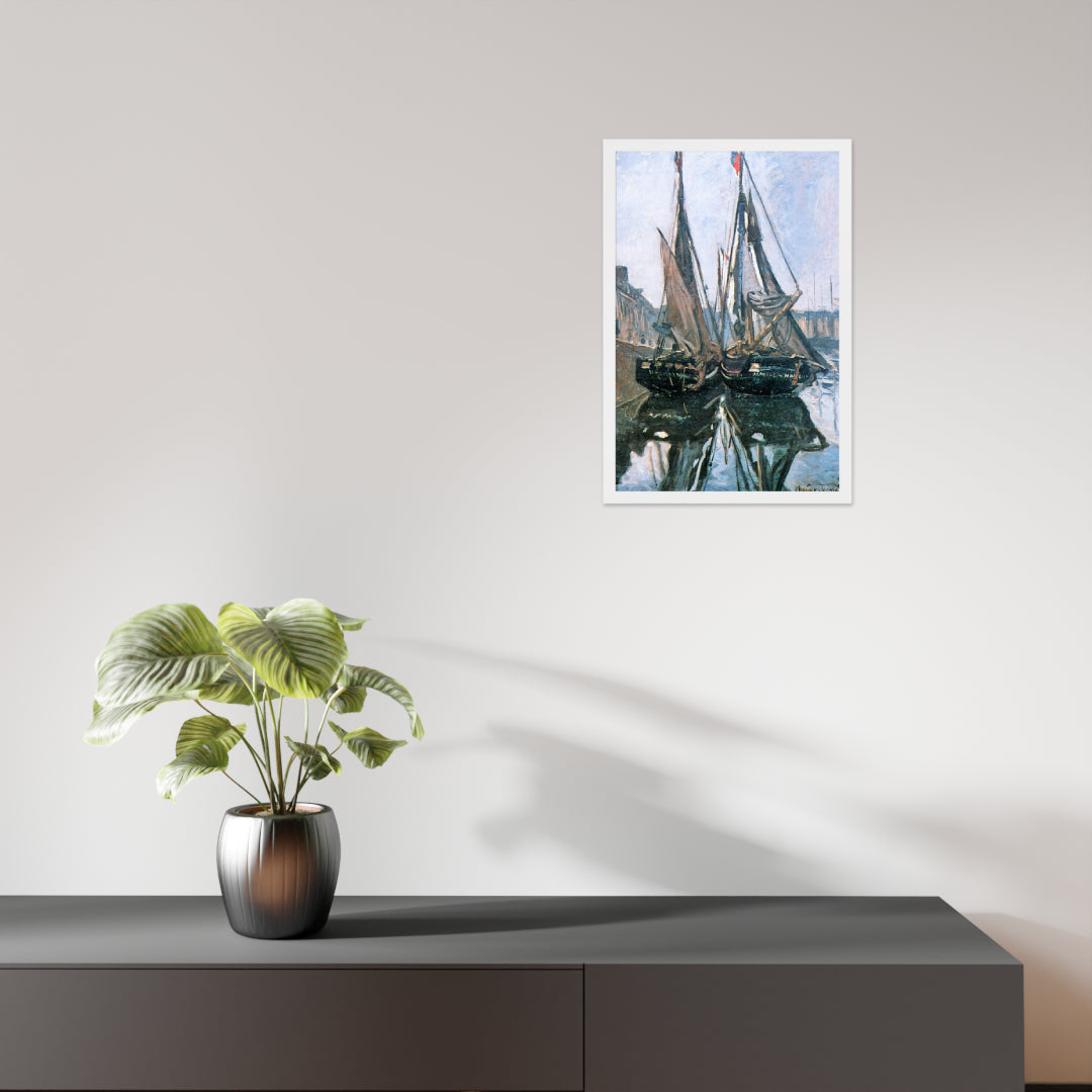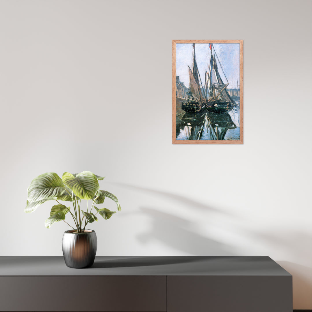 Bring the tranquility of coastal France into your space with Fishing Boats at Honfleur by Claude Monet. This impressionist masterpiece captures the soft light and gentle reflections of a harbor scene, rendered in Monet’s signature brushwork. Perfect for lovers of serene landscapes and timeless art, this framed wall print adds a touch of elegance and calm to any interior. Ideal for living rooms, studios, or curated gallery walls, it evokes the poetic stillness of early morning waters.