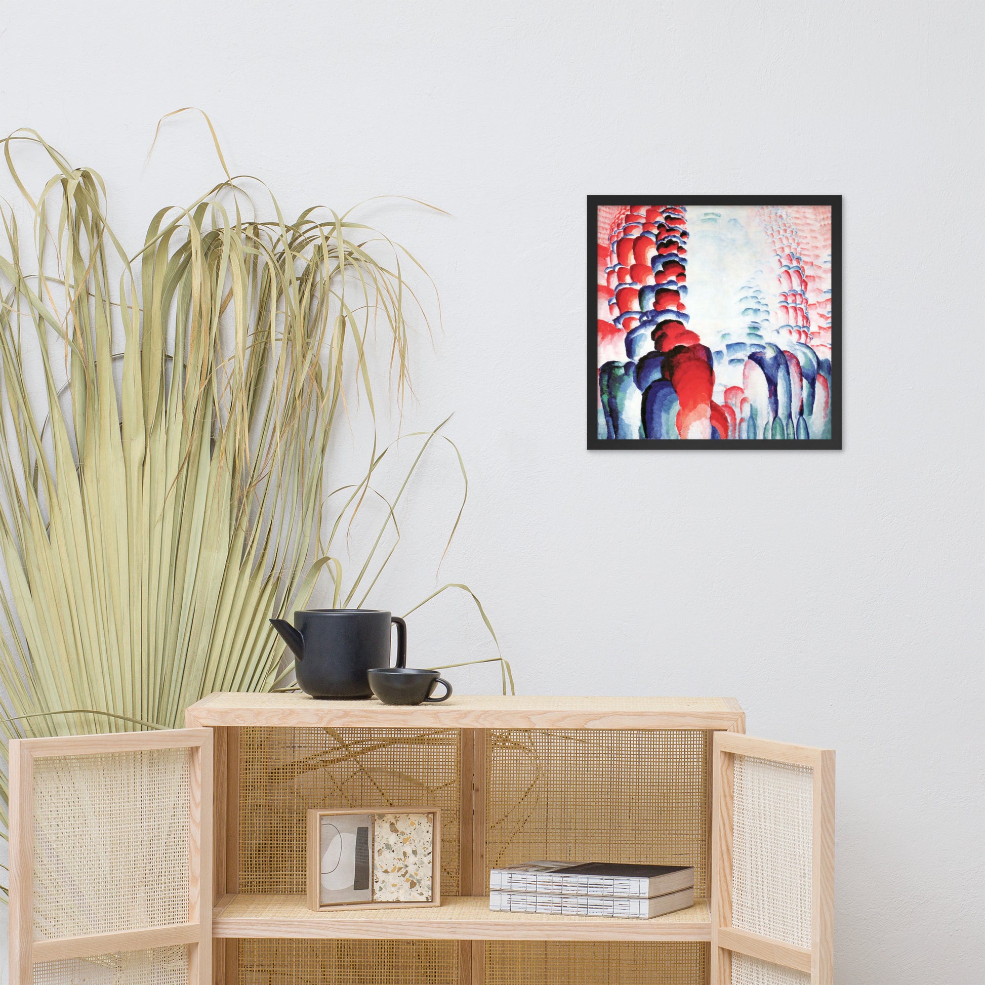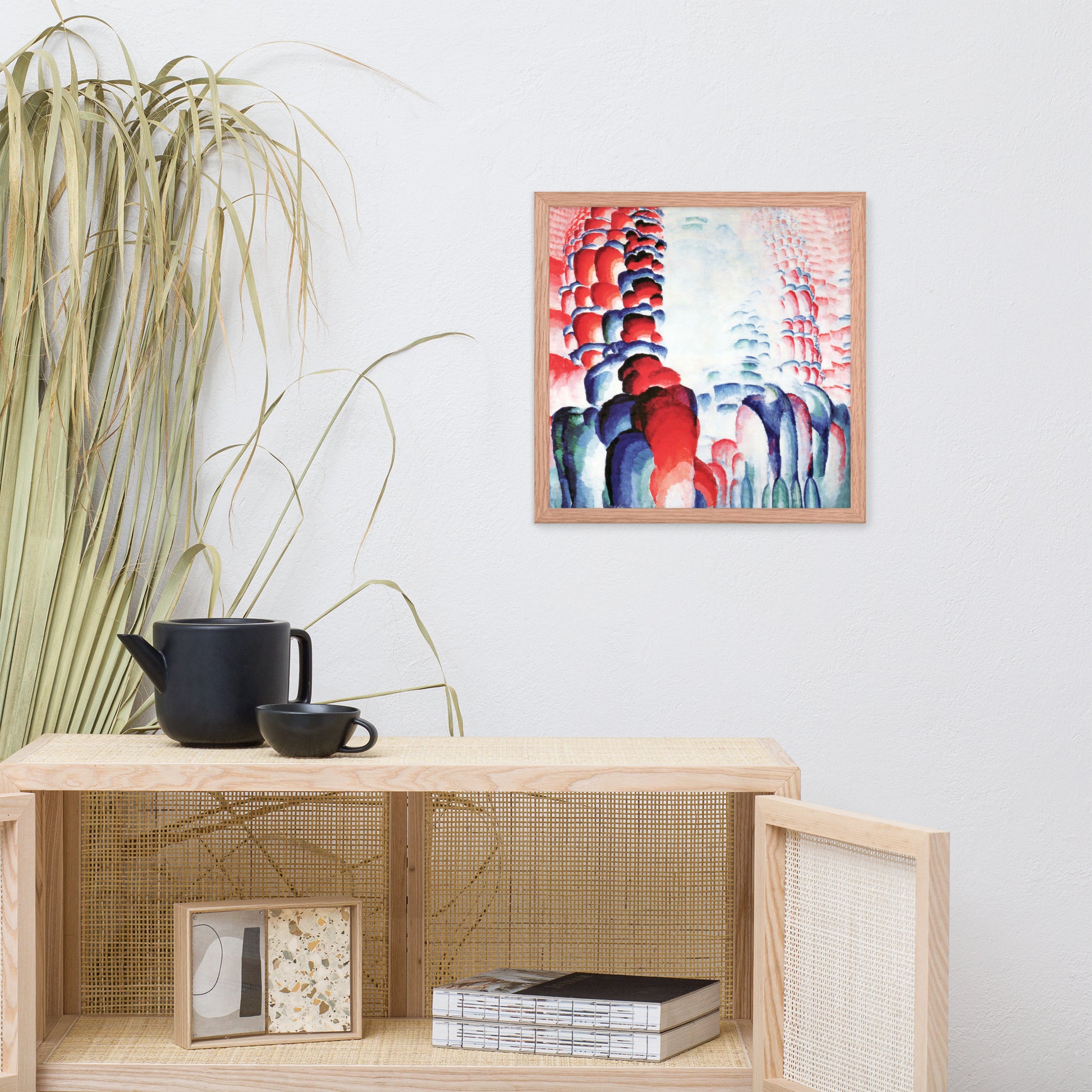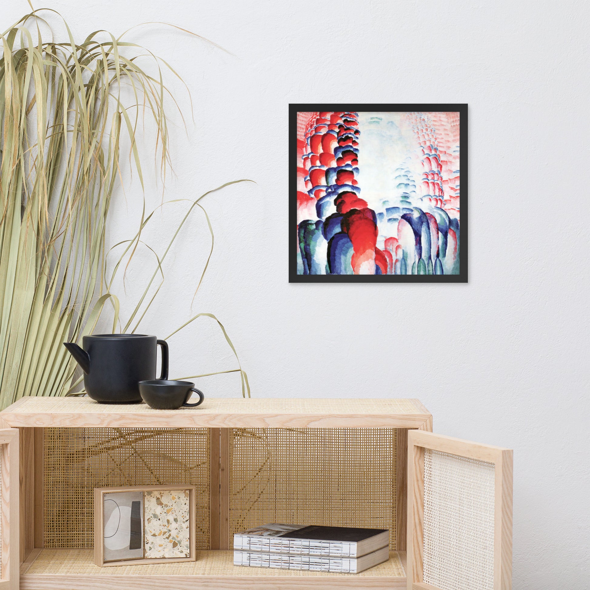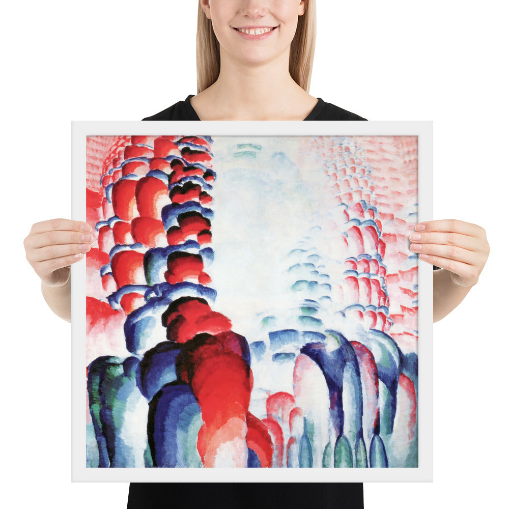 Infuse your space with vibrant energy and meditative rhythm through Hindu Motif, or Graduated Red by František Kupka—now available as a premium framed abstract wall print. This captivating composition features cascading forms in rich reds, blues, and purples, flowing symmetrically toward a luminous center. Kupka’s mastery of color gradients and repetition creates a visual mantra—an abstract homage to spiritual resonance and cosmic motion.