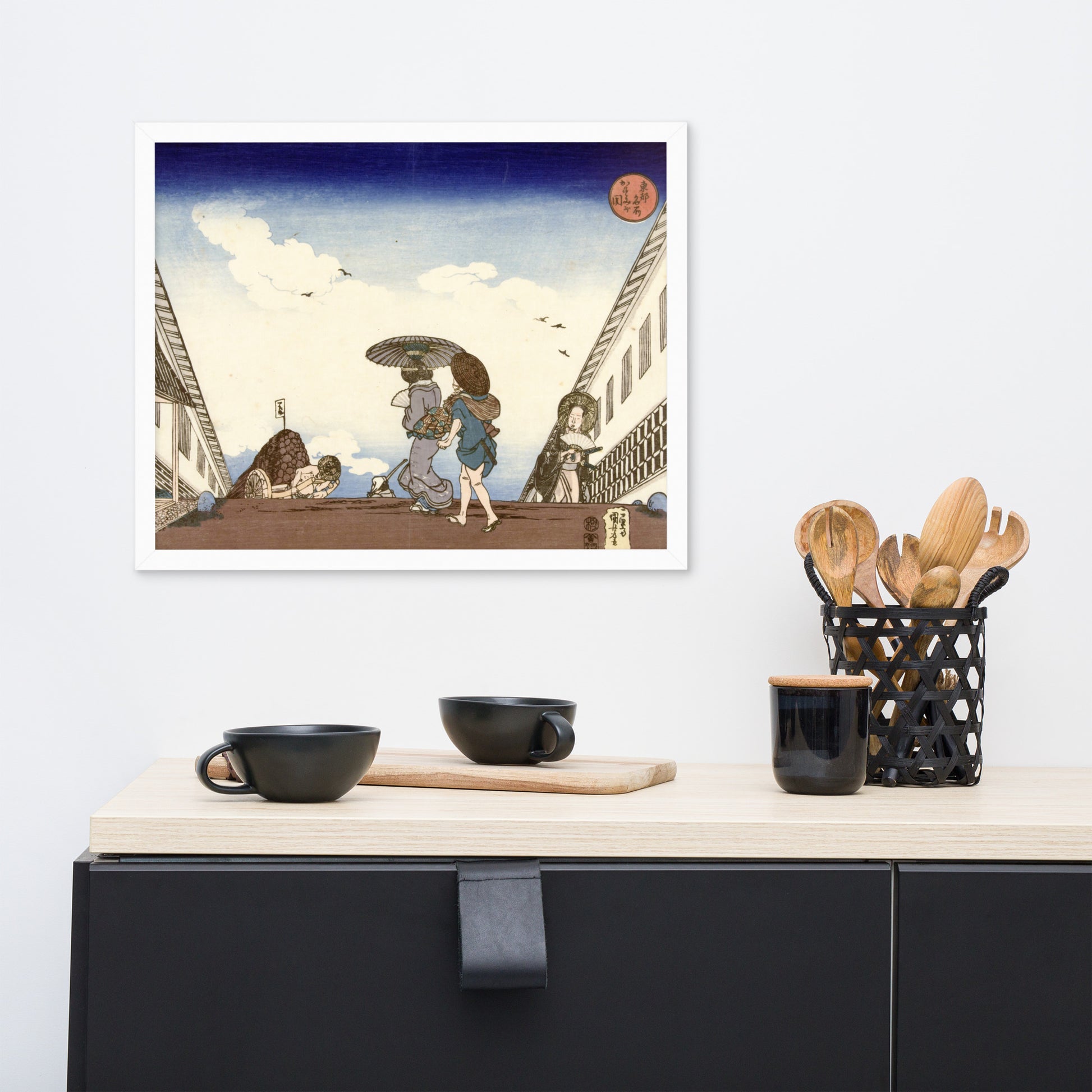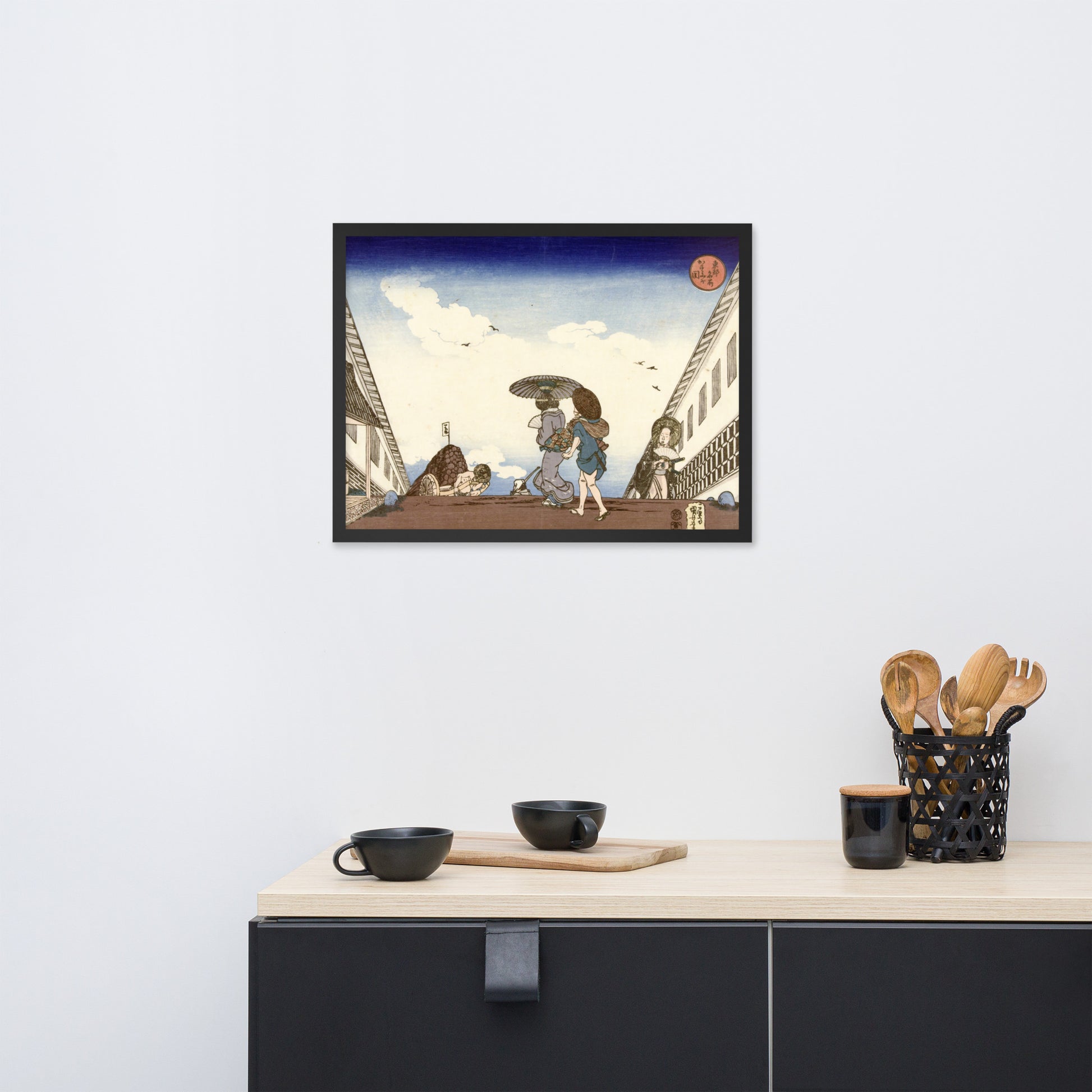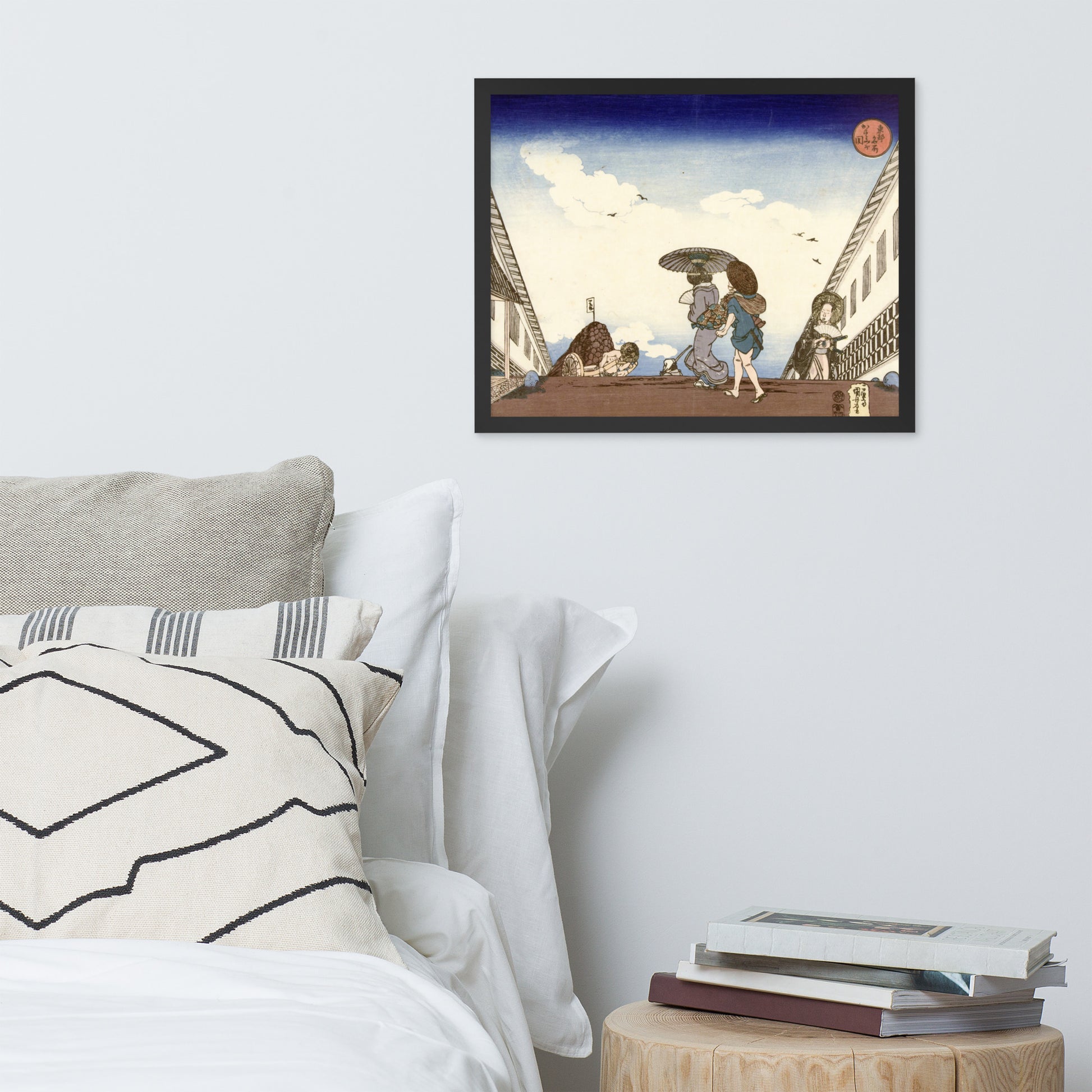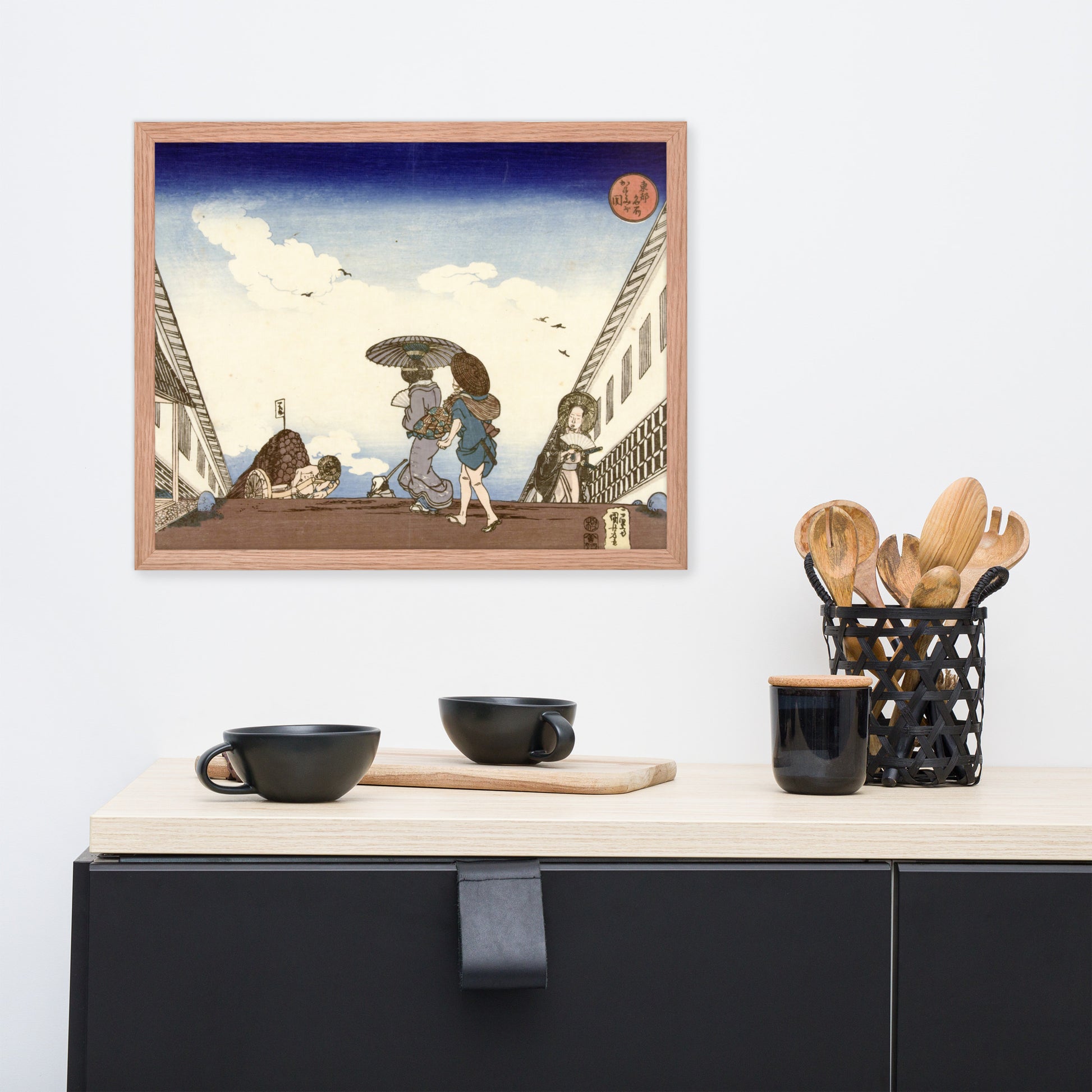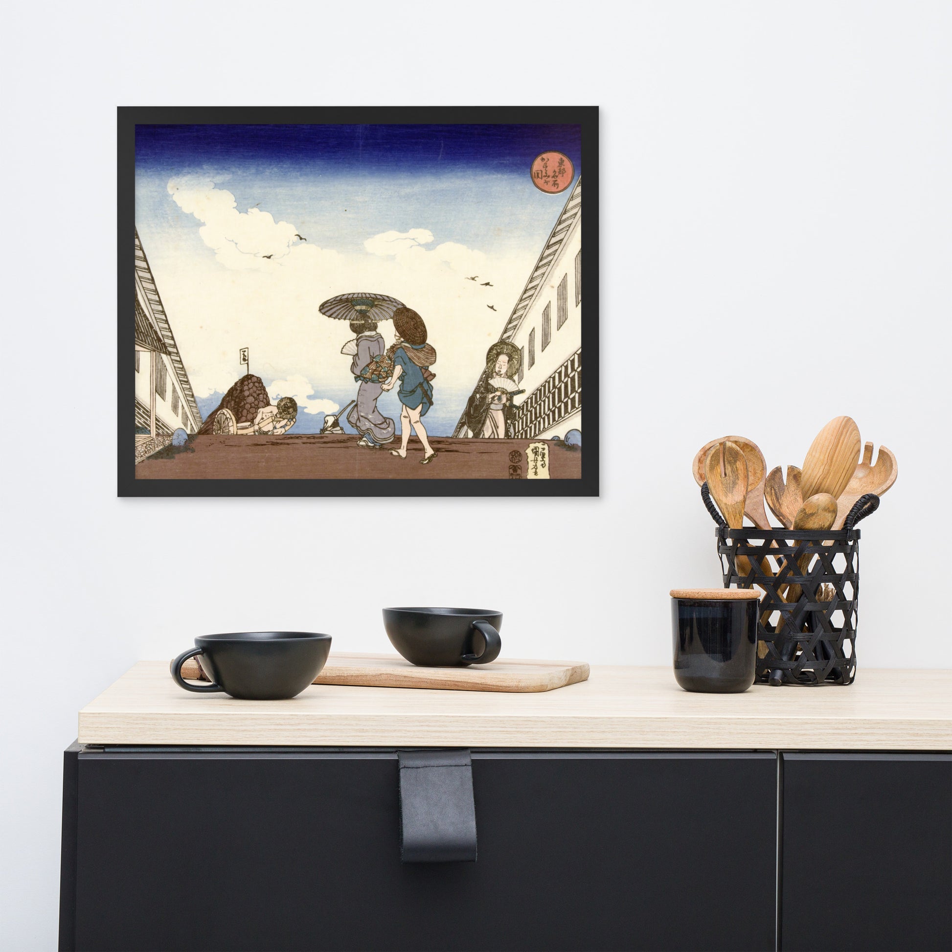 Kuniyoshi’s masterful use of perspective and color brings depth and warmth to the composition, making it a compelling choice for interiors that celebrate cultural heritage or refined minimalism. Professionally printed and framed for lasting impact, this piece adds a touch of storytelling and sophistication to any wall—whether in a home, studio, or curated gallery wall.