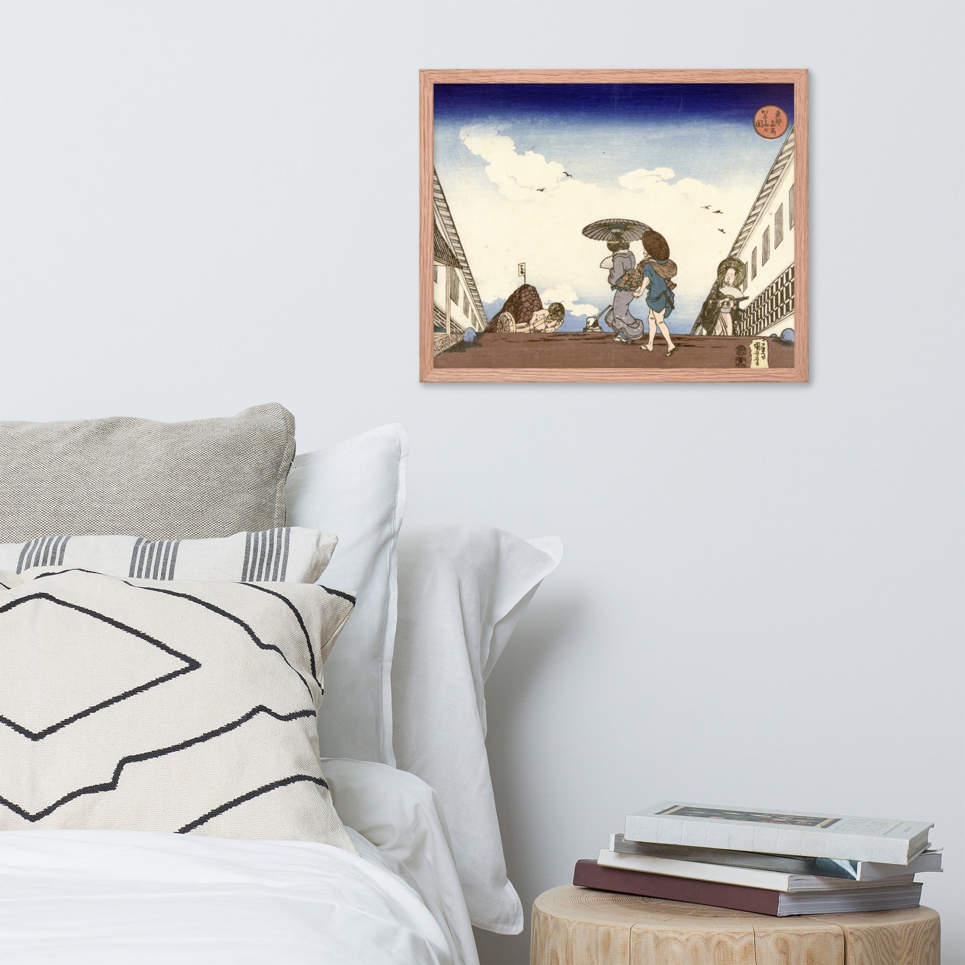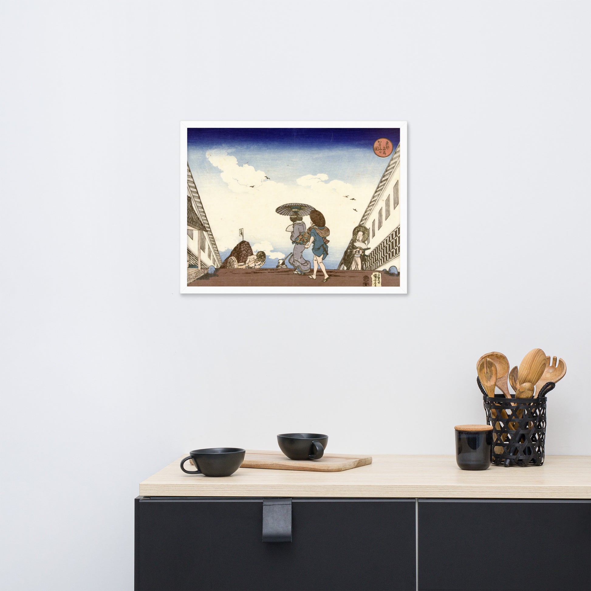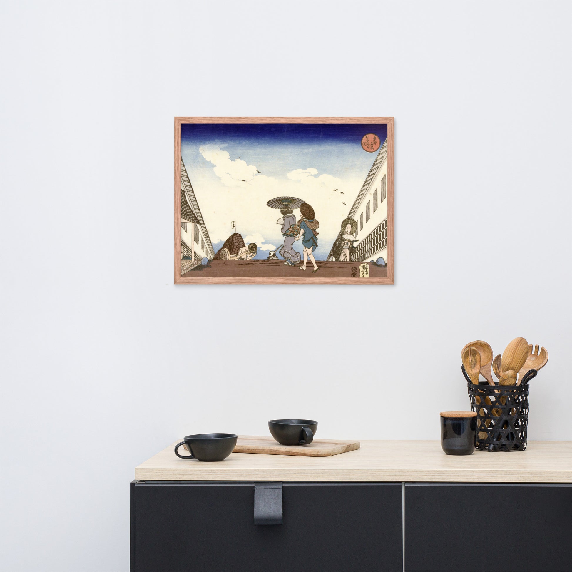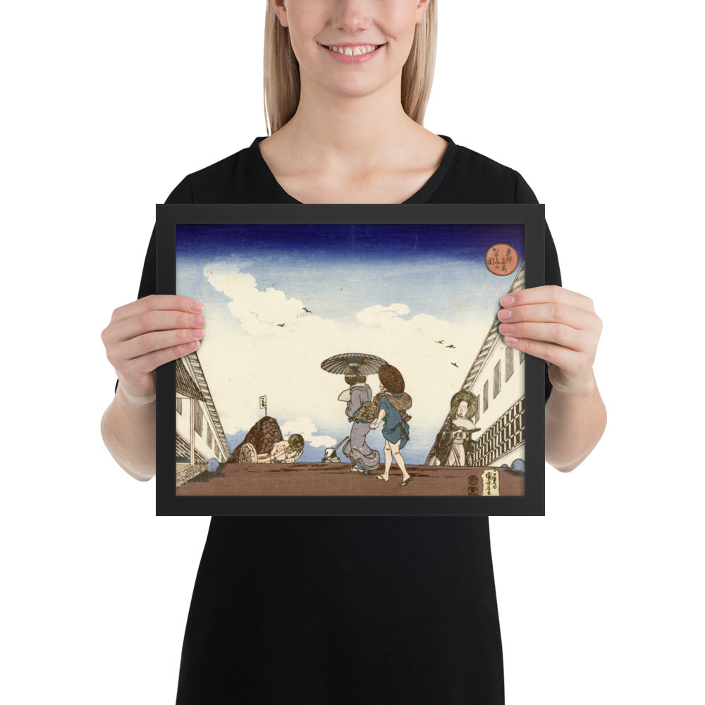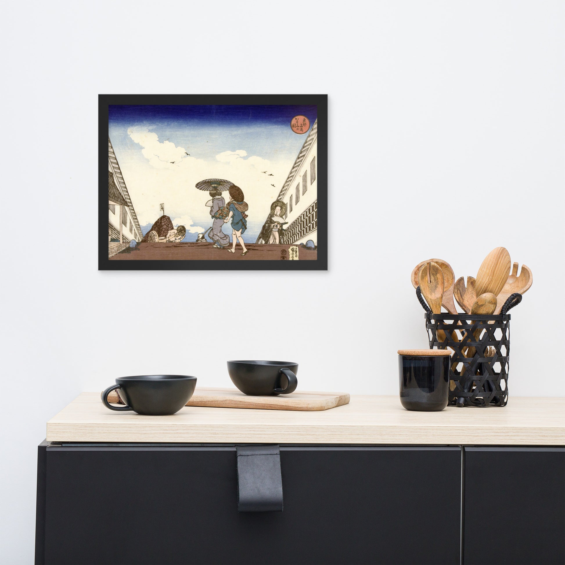 Kuniyoshi’s masterful use of perspective and color brings depth and warmth to the composition, making it a compelling choice for interiors that celebrate cultural heritage or refined minimalism. Professionally printed and framed for lasting impact, this piece adds a touch of storytelling and sophistication to any wall—whether in a home, studio, or curated gallery wall.