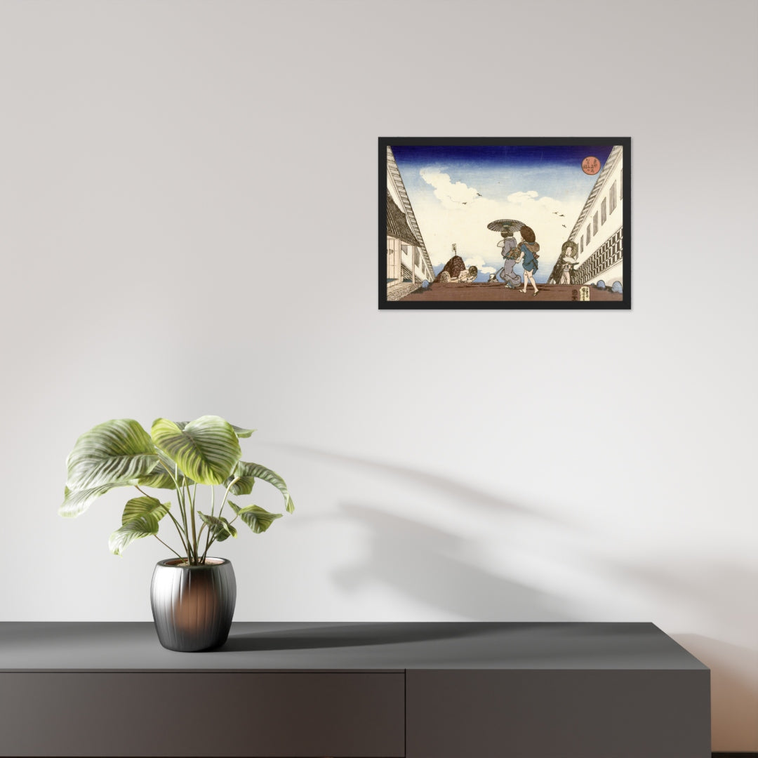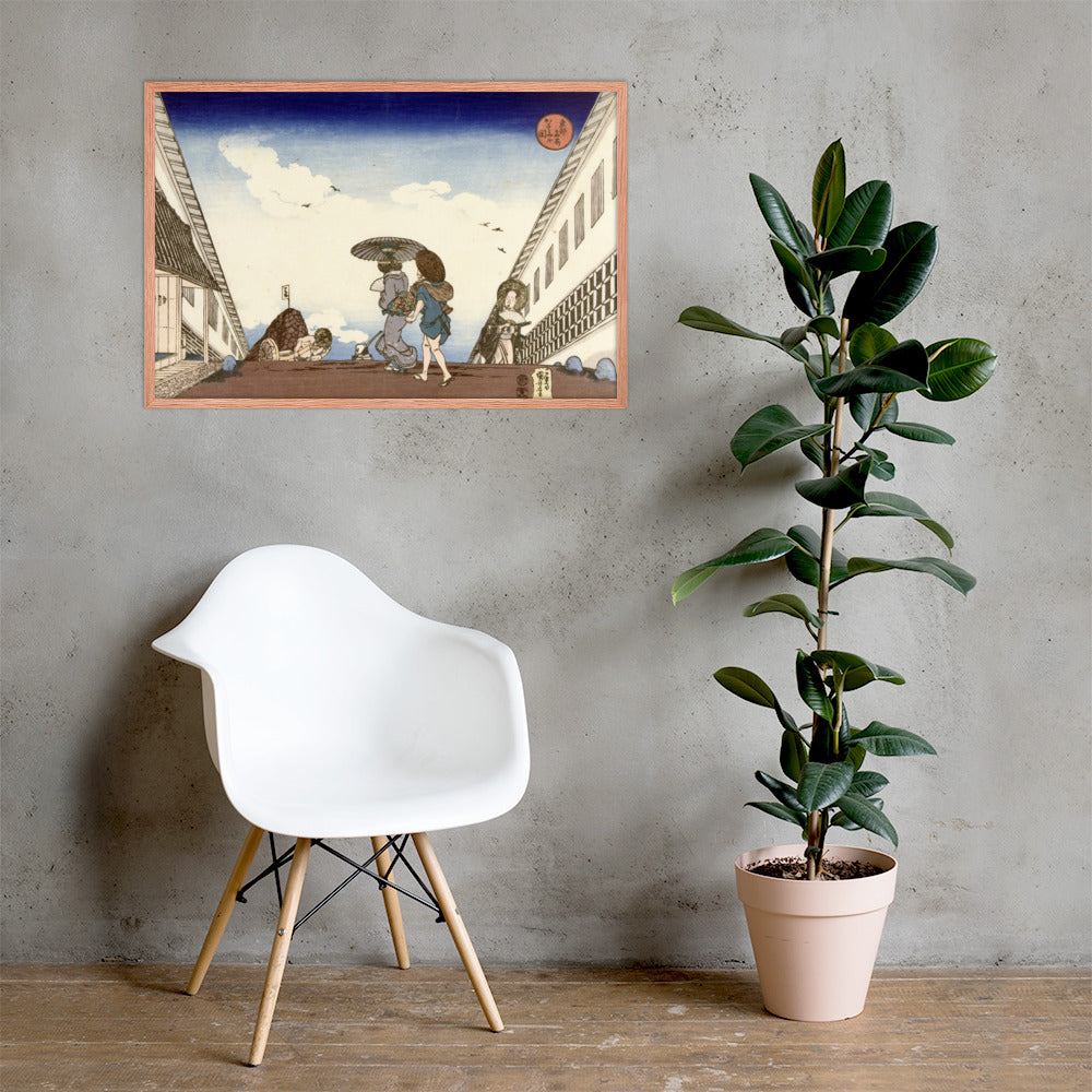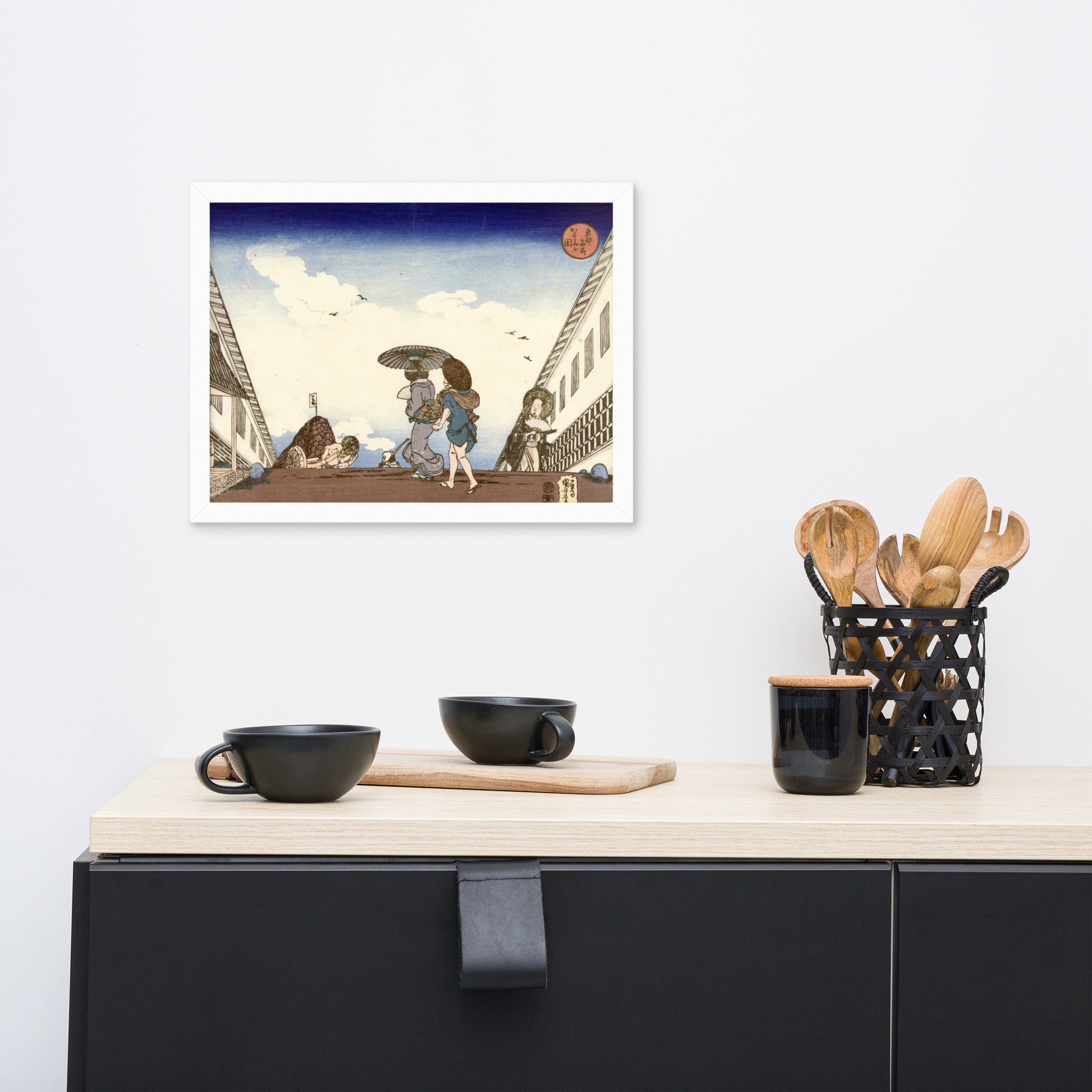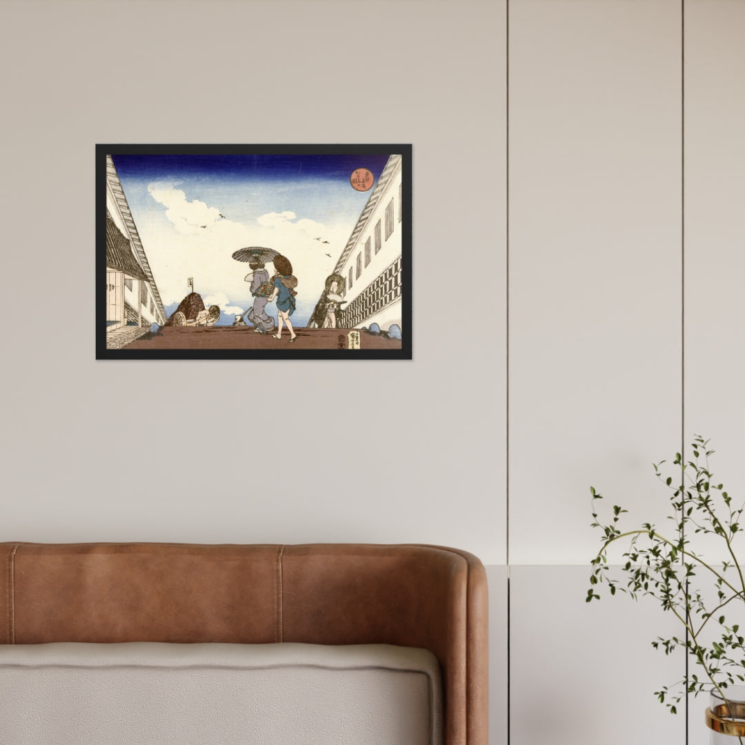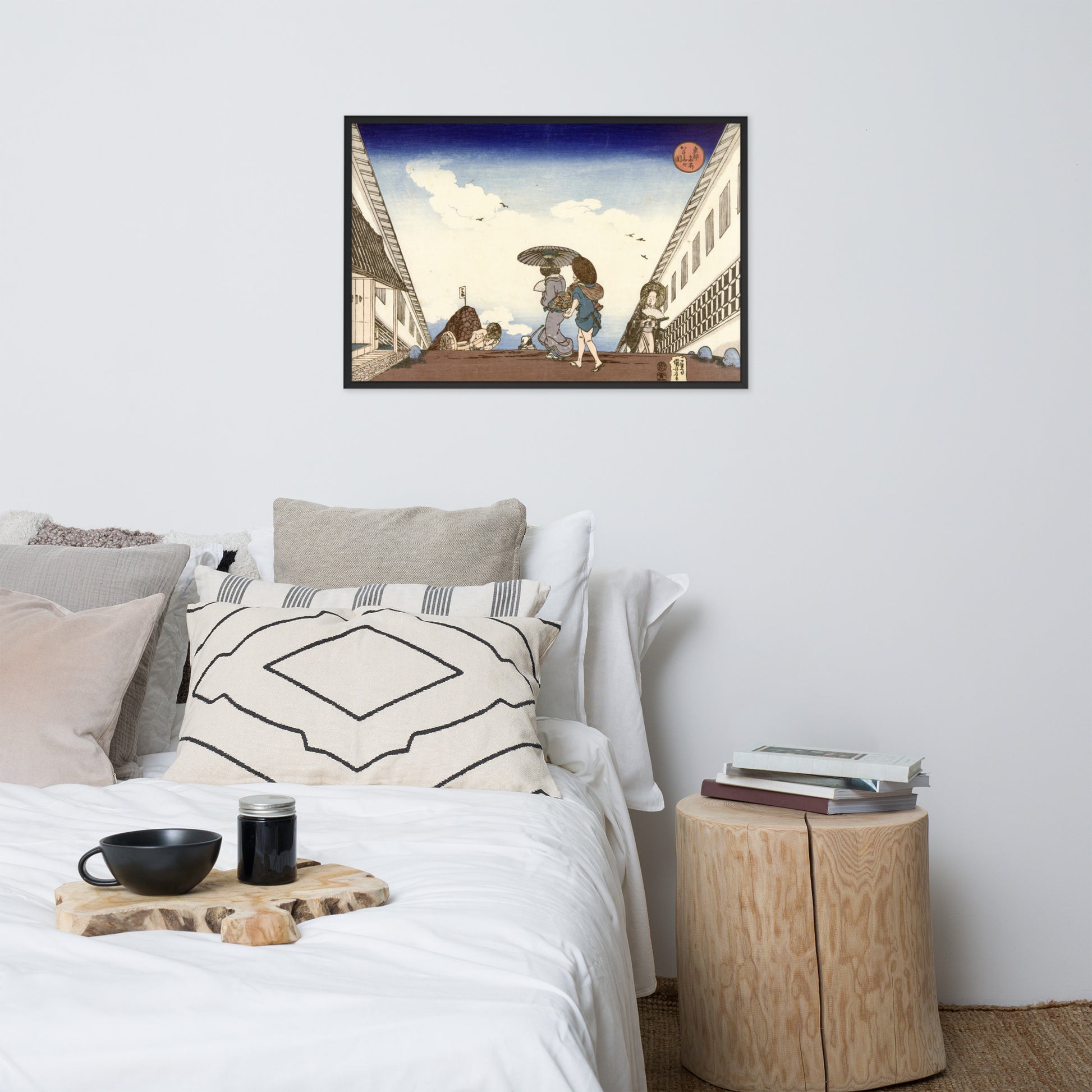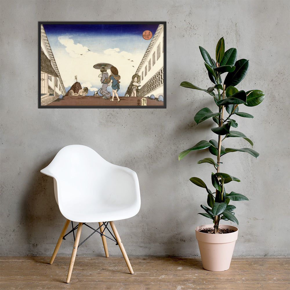 Kuniyoshi’s masterful use of perspective and color brings depth and warmth to the composition, making it a compelling choice for interiors that celebrate cultural heritage or refined minimalism. Professionally printed and framed for lasting impact, this piece adds a touch of storytelling and sophistication to any wall—whether in a home, studio, or curated gallery wall.