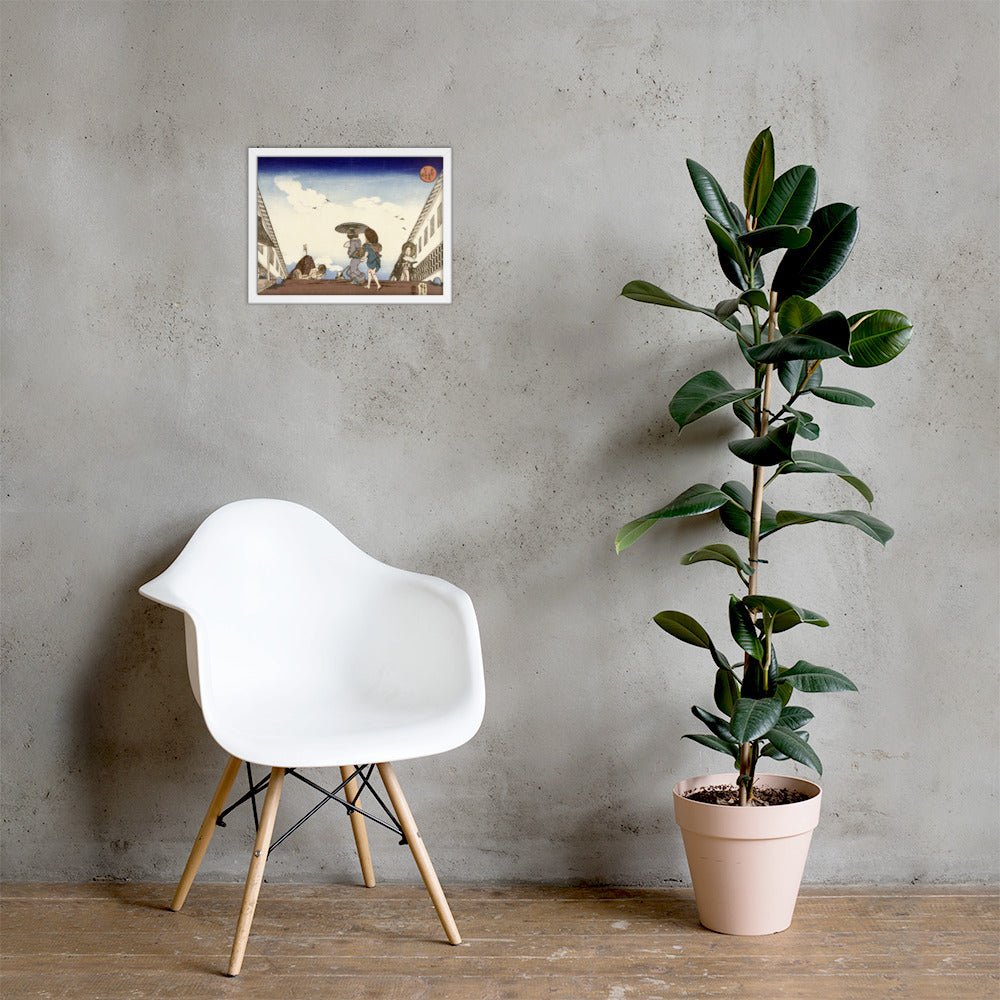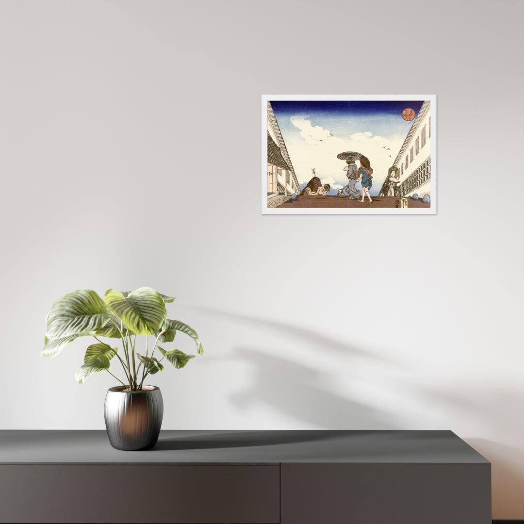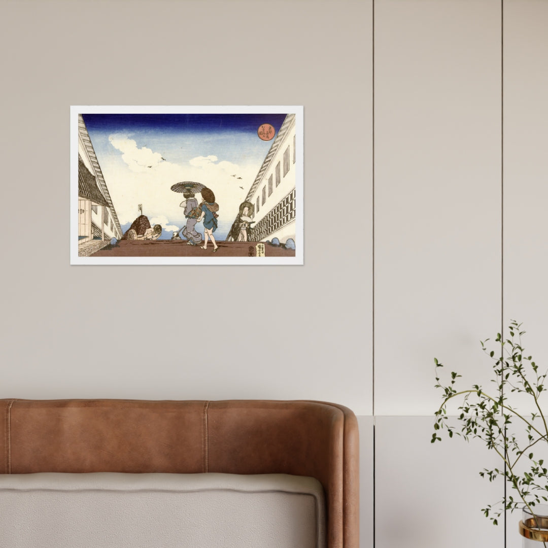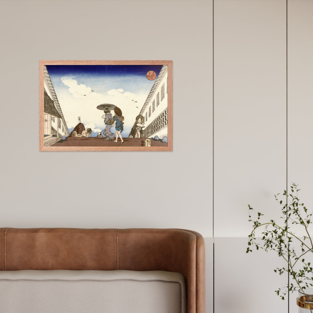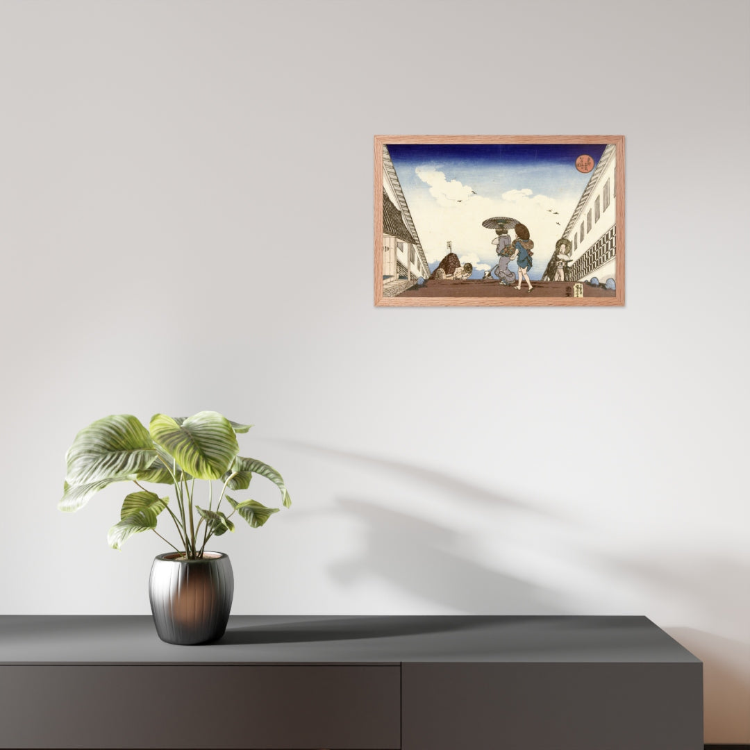Kuniyoshi’s masterful use of perspective and color brings depth and warmth to the composition, making it a compelling choice for interiors that celebrate cultural heritage or refined minimalism. Professionally printed and framed for lasting impact, this piece adds a touch of storytelling and sophistication to any wall—whether in a home, studio, or curated gallery wall.