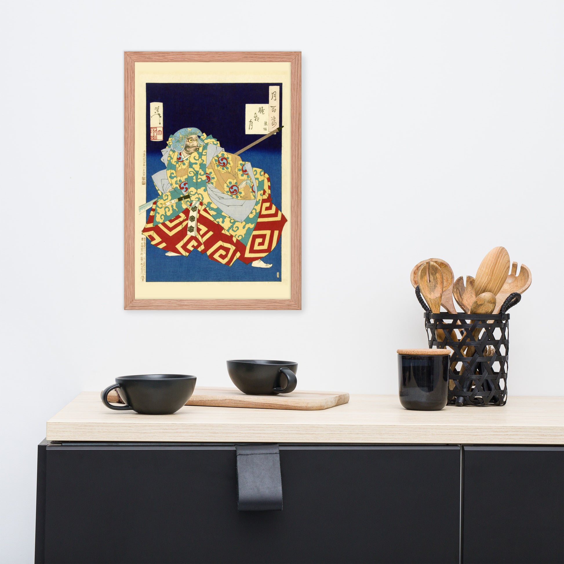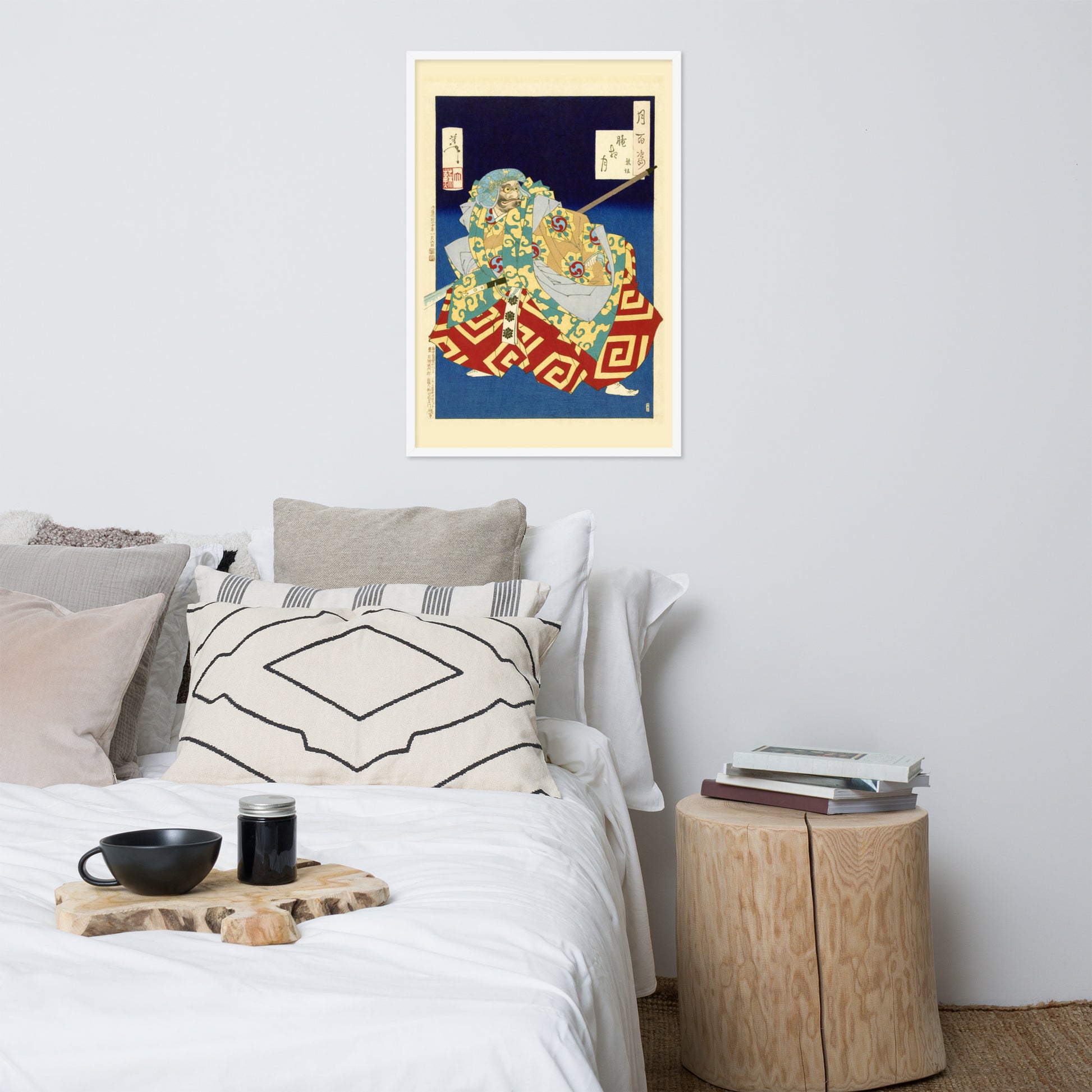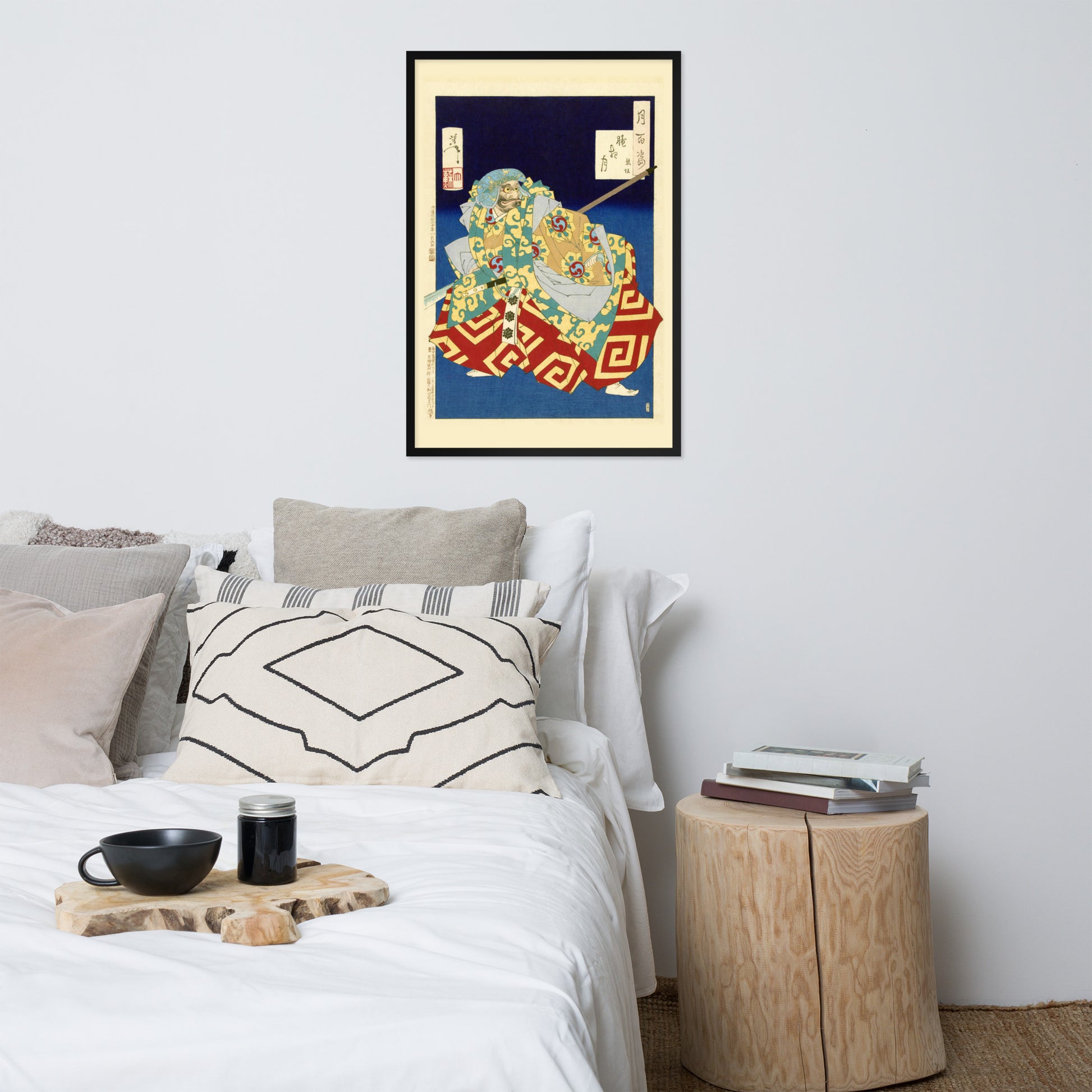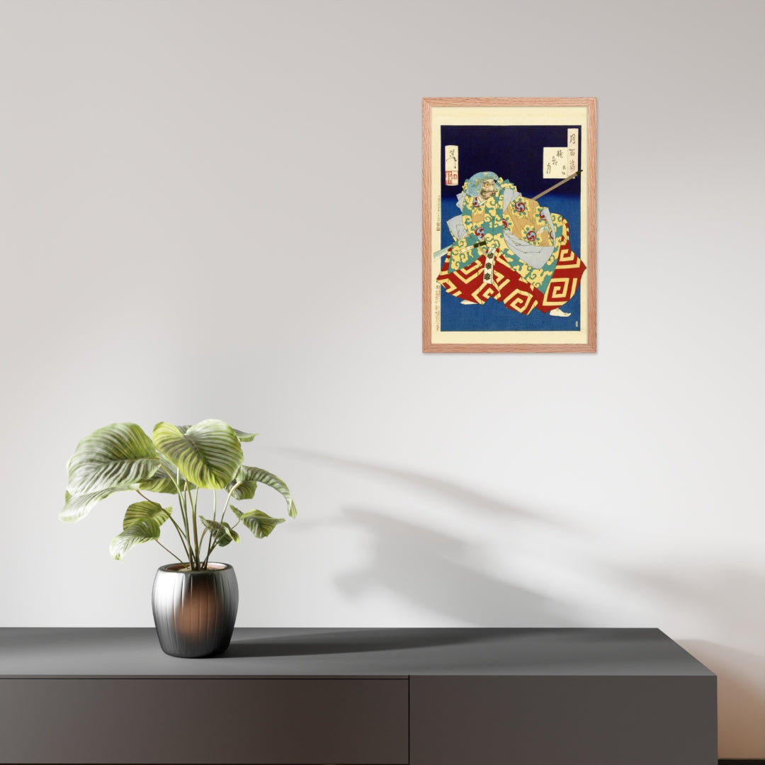 Yoshitoshi’s expressive style brings the warrior’s determination to life—his intense gaze and powerful posture echoing tales of resistance and honor from Japanese folklore. The bold colors and detailed textures make this piece a striking focal point, ideal for interiors that celebrate strength, heritage, and visual storytelling.