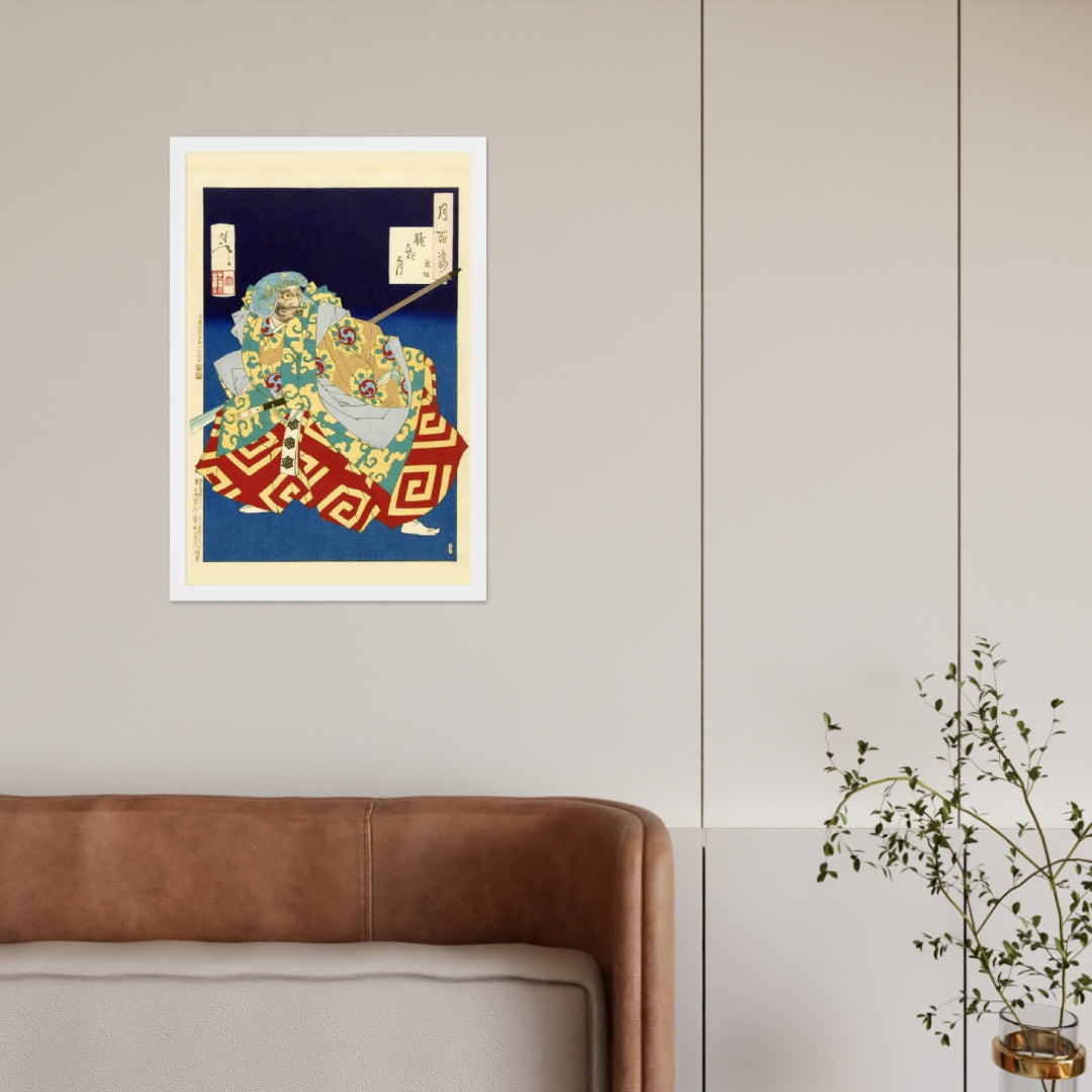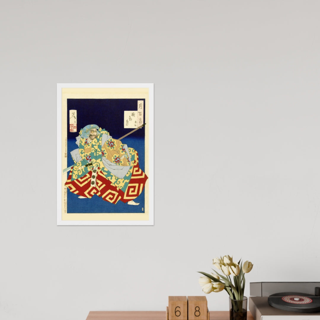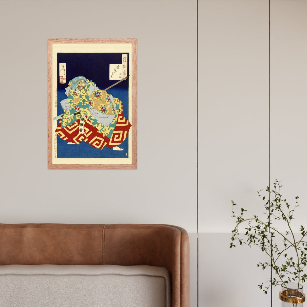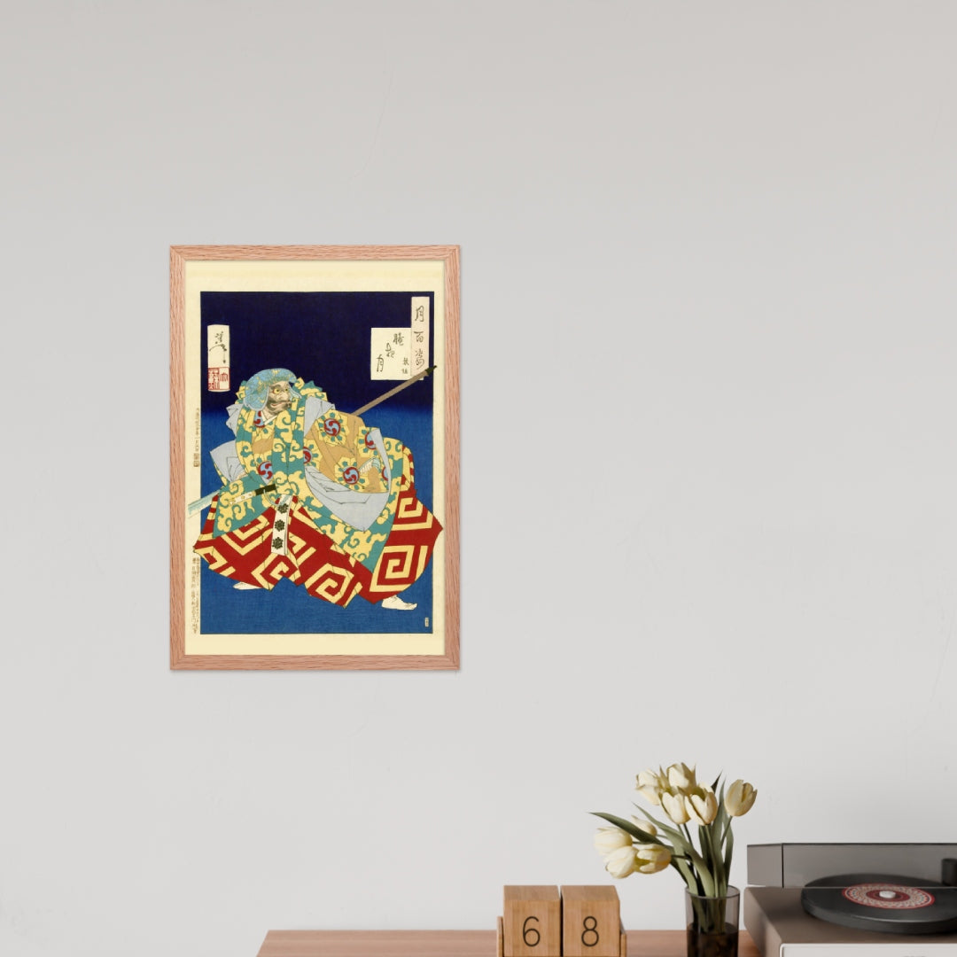 Yoshitoshi’s expressive style brings the warrior’s determination to life—his intense gaze and powerful posture echoing tales of resistance and honor from Japanese folklore. The bold colors and detailed textures make this piece a striking focal point, ideal for interiors that celebrate strength, heritage, and visual storytelling.