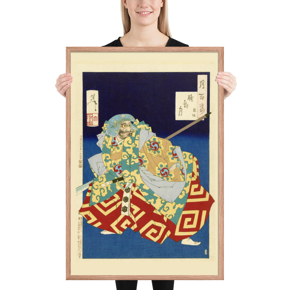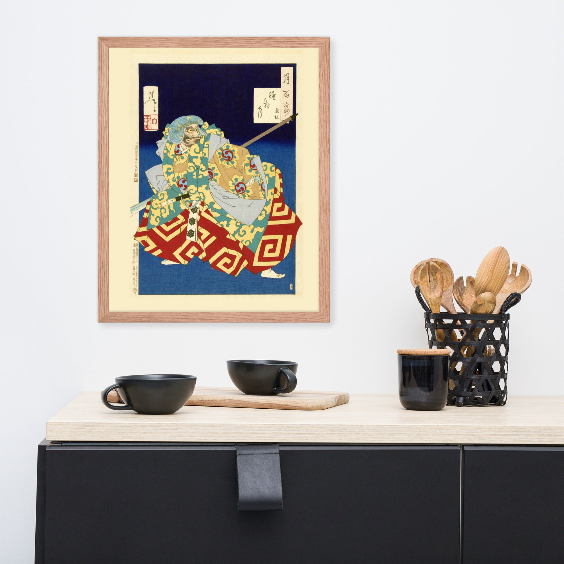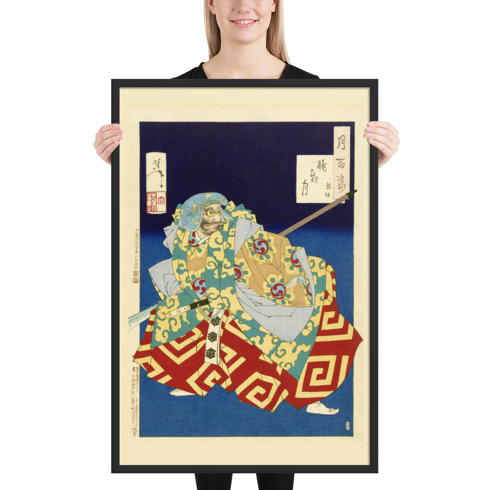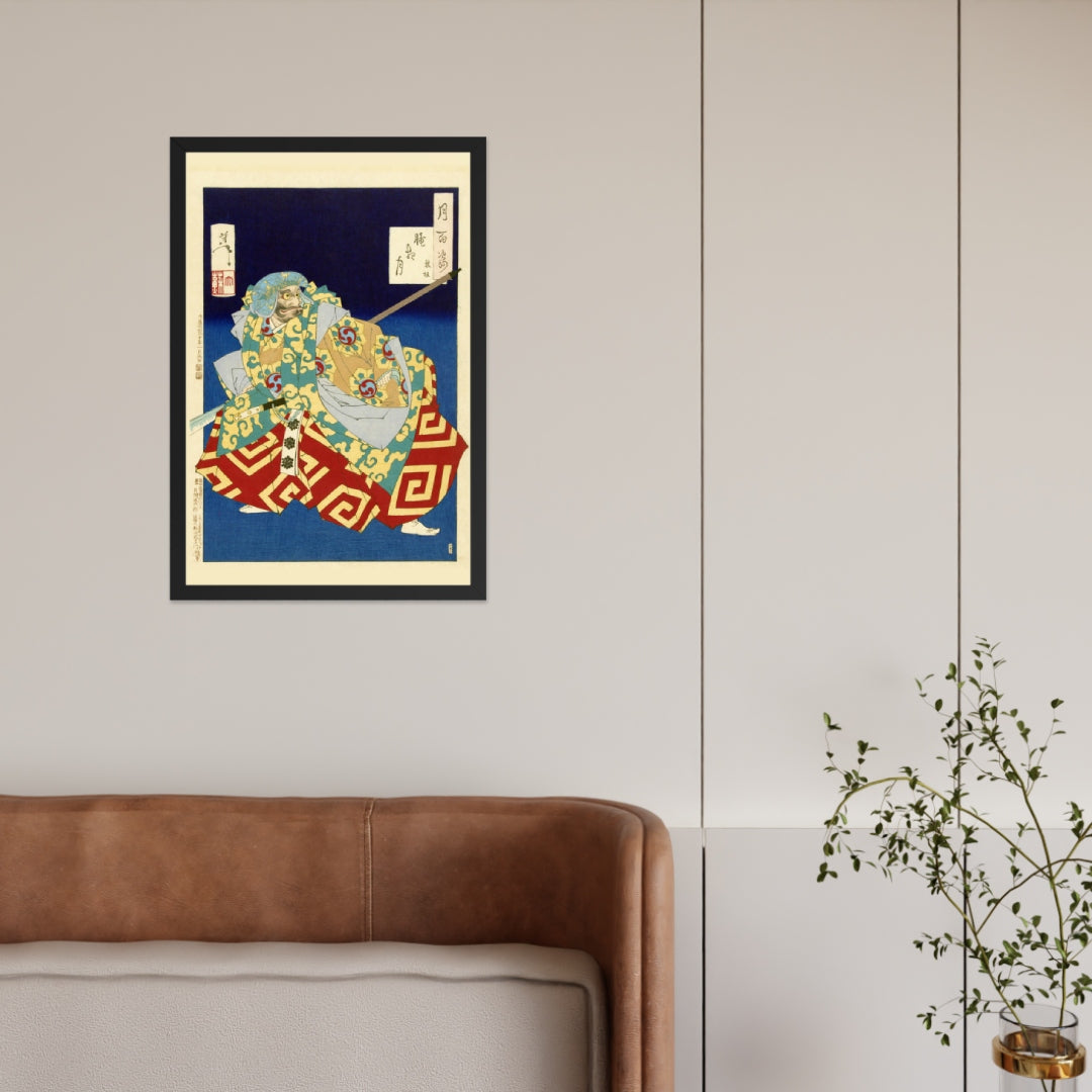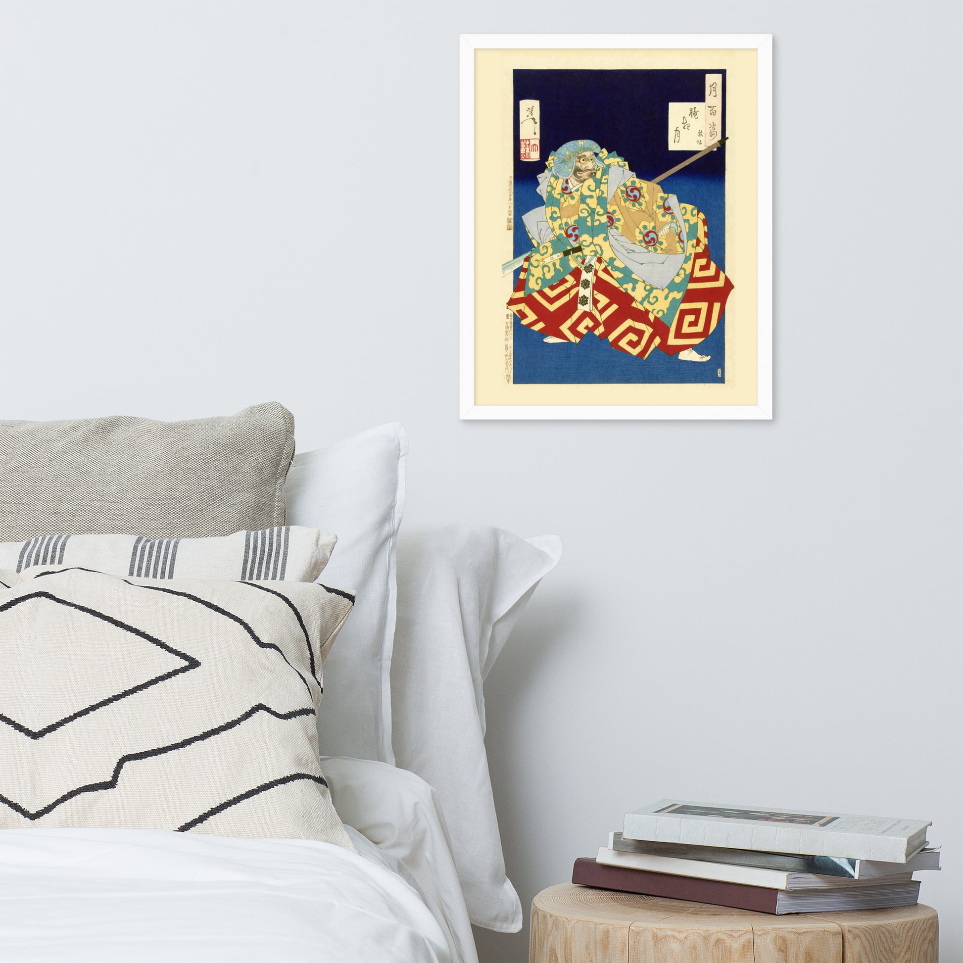 Yoshitoshi’s expressive style brings the warrior’s determination to life—his intense gaze and powerful posture echoing tales of resistance and honor from Japanese folklore. The bold colors and detailed textures make this piece a striking focal point, ideal for interiors that celebrate strength, heritage, and visual storytelling.