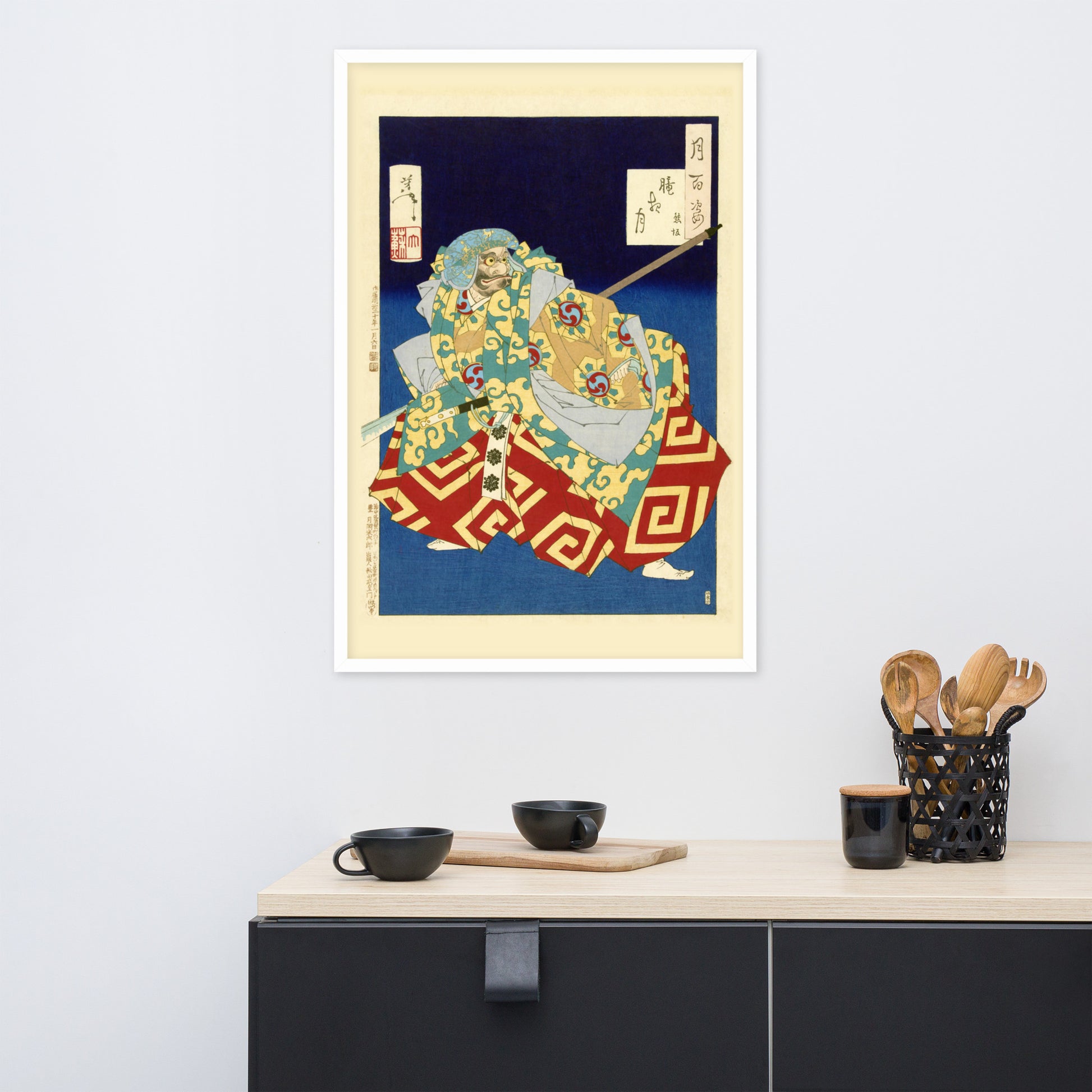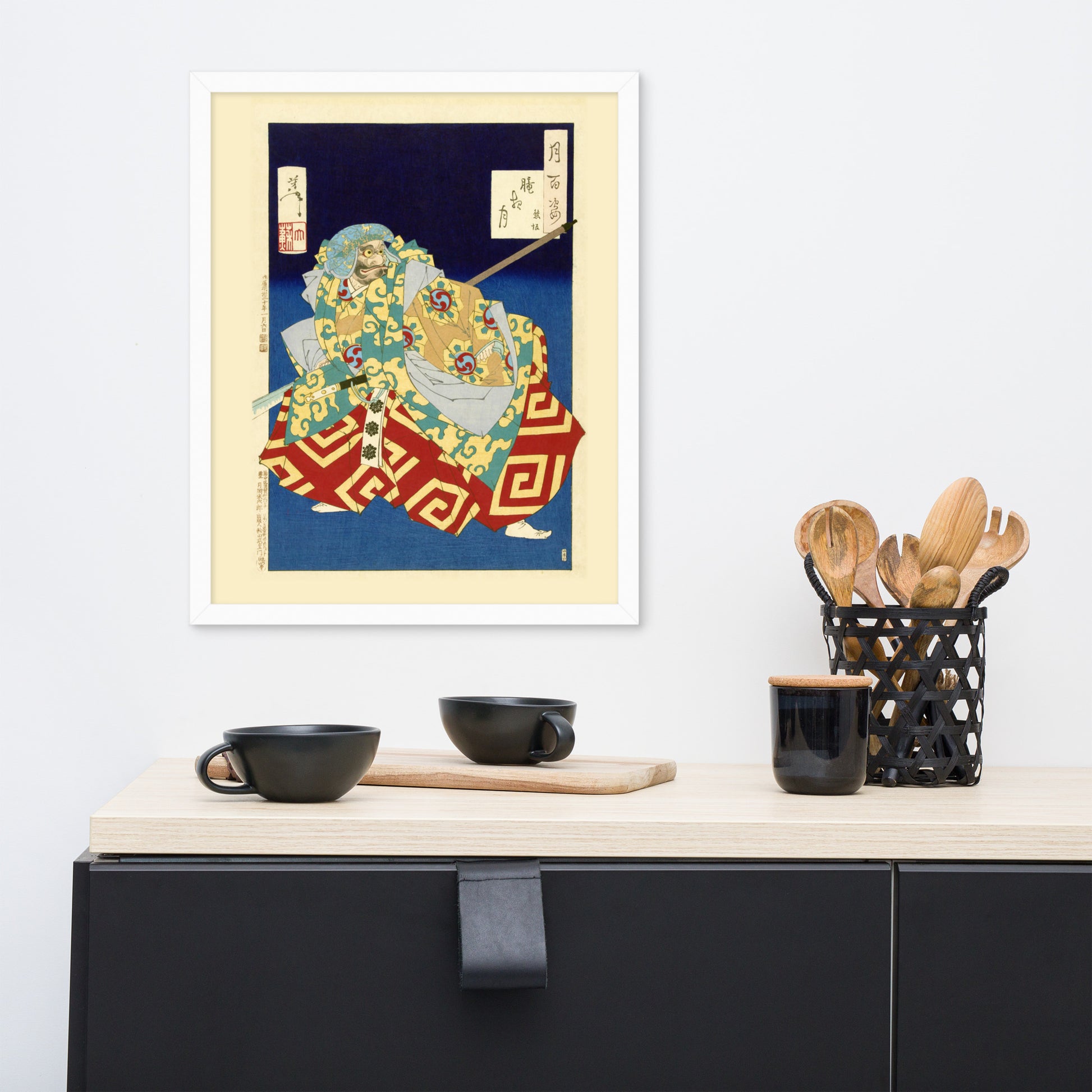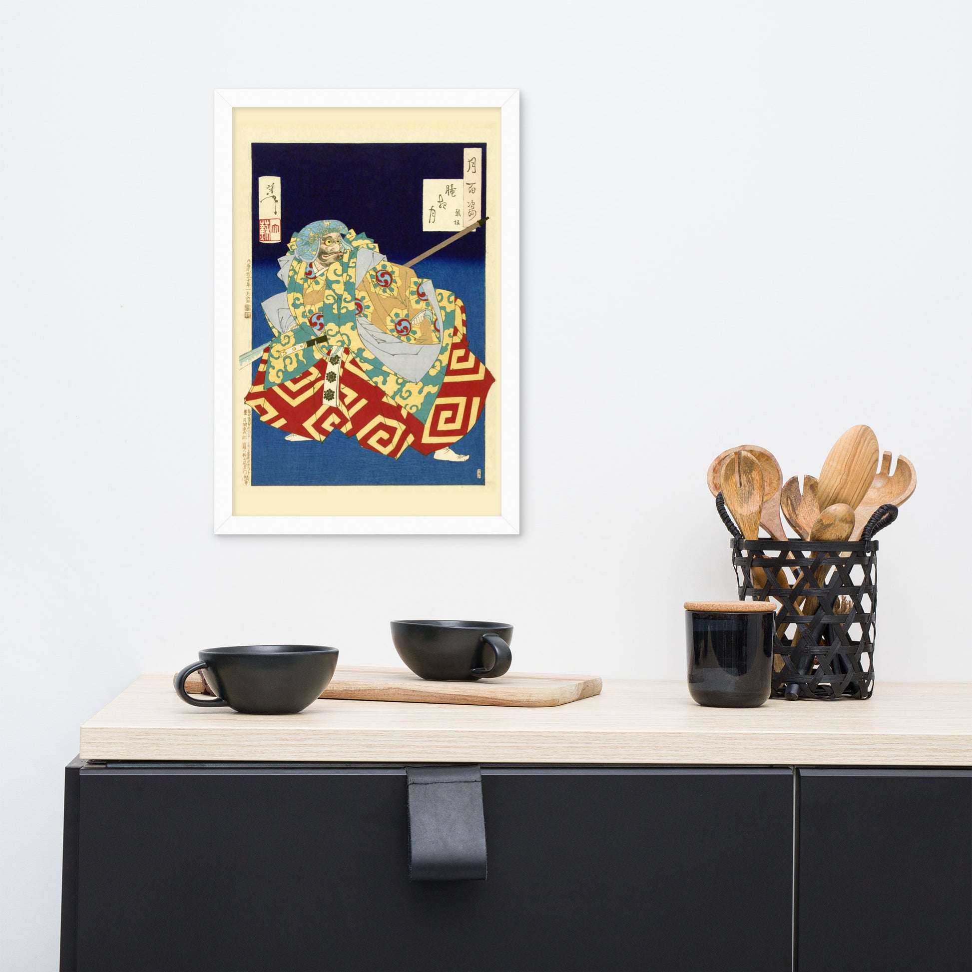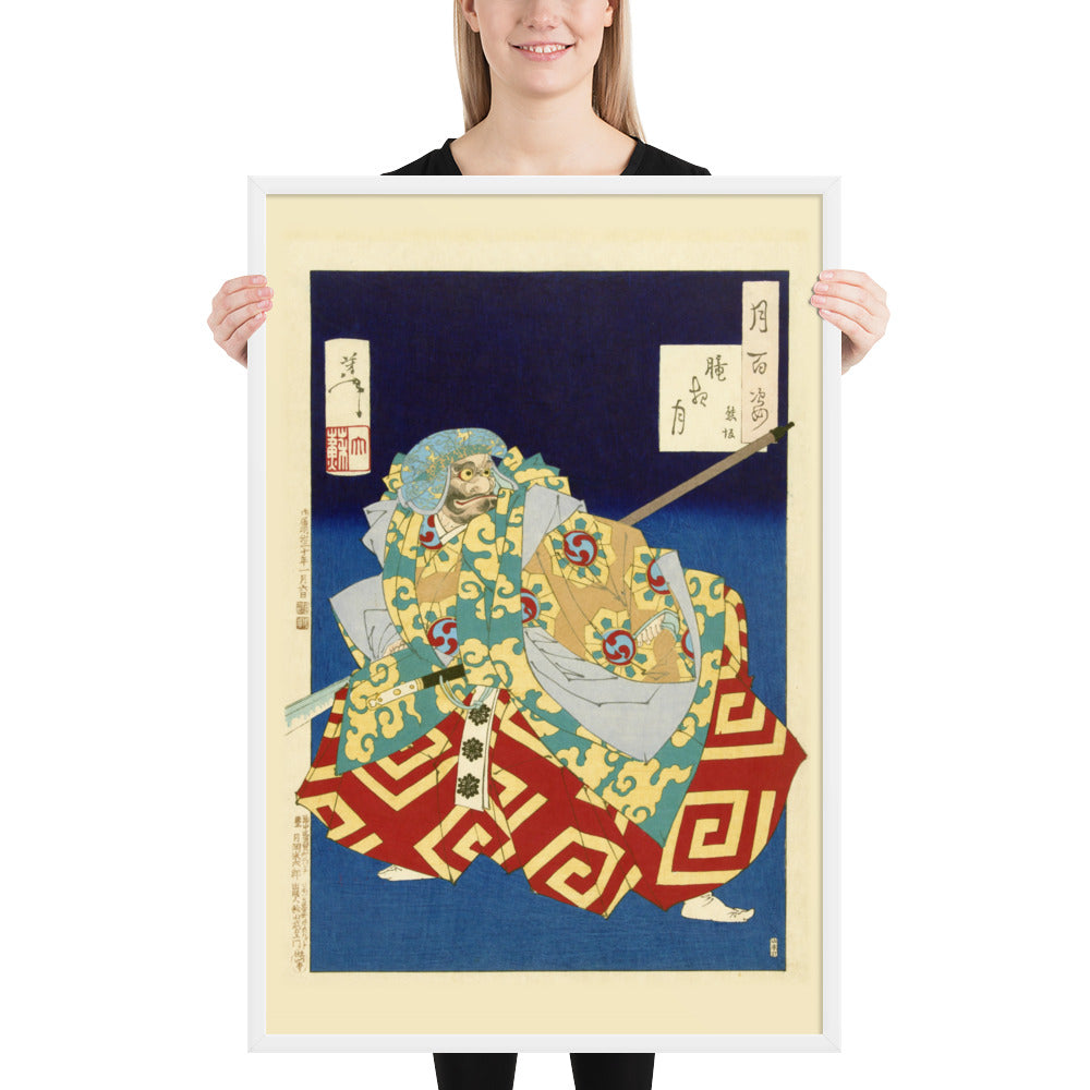 Yoshitoshi’s expressive style brings the warrior’s determination to life—his intense gaze and powerful posture echoing tales of resistance and honor from Japanese folklore. The bold colors and detailed textures make this piece a striking focal point, ideal for interiors that celebrate strength, heritage, and visual storytelling.