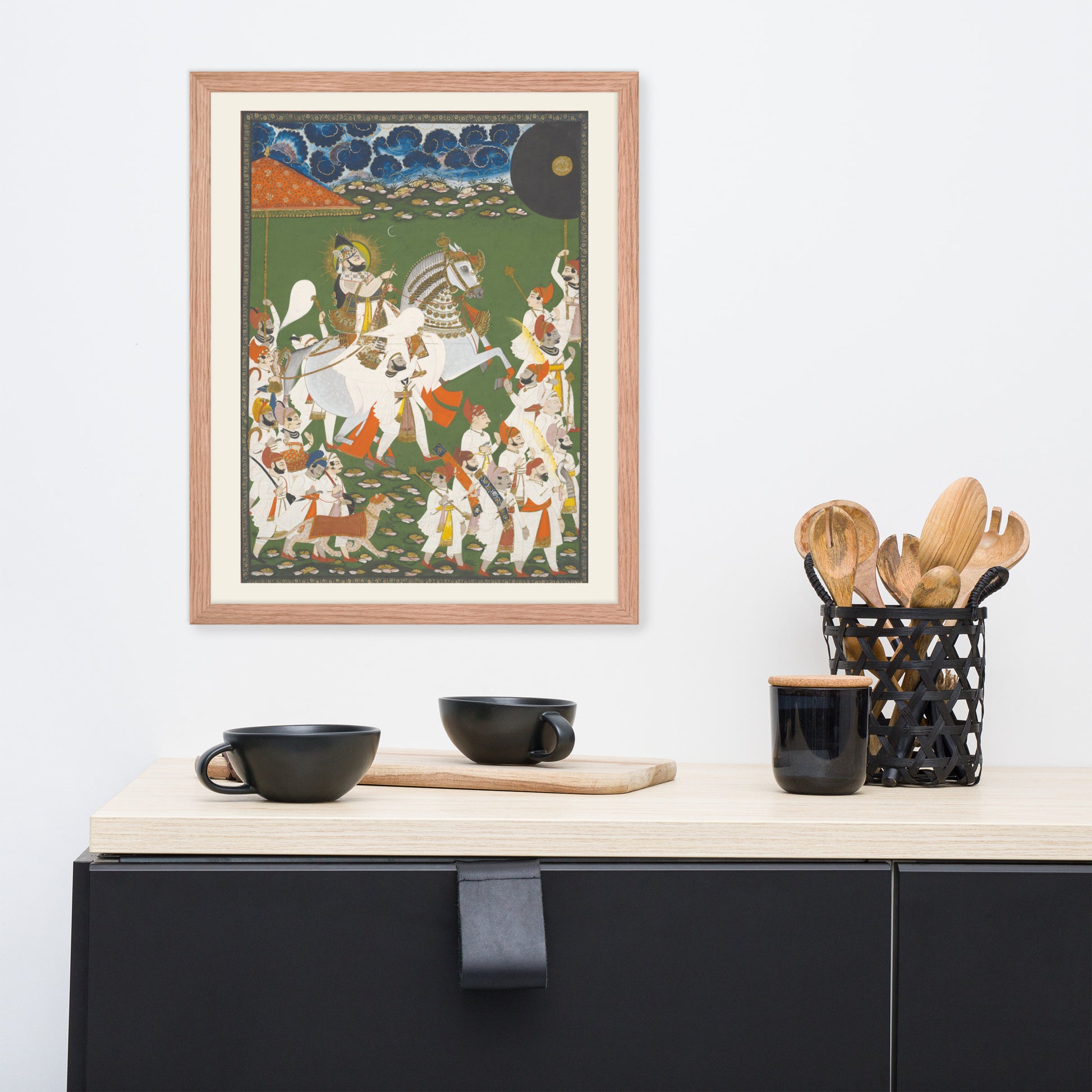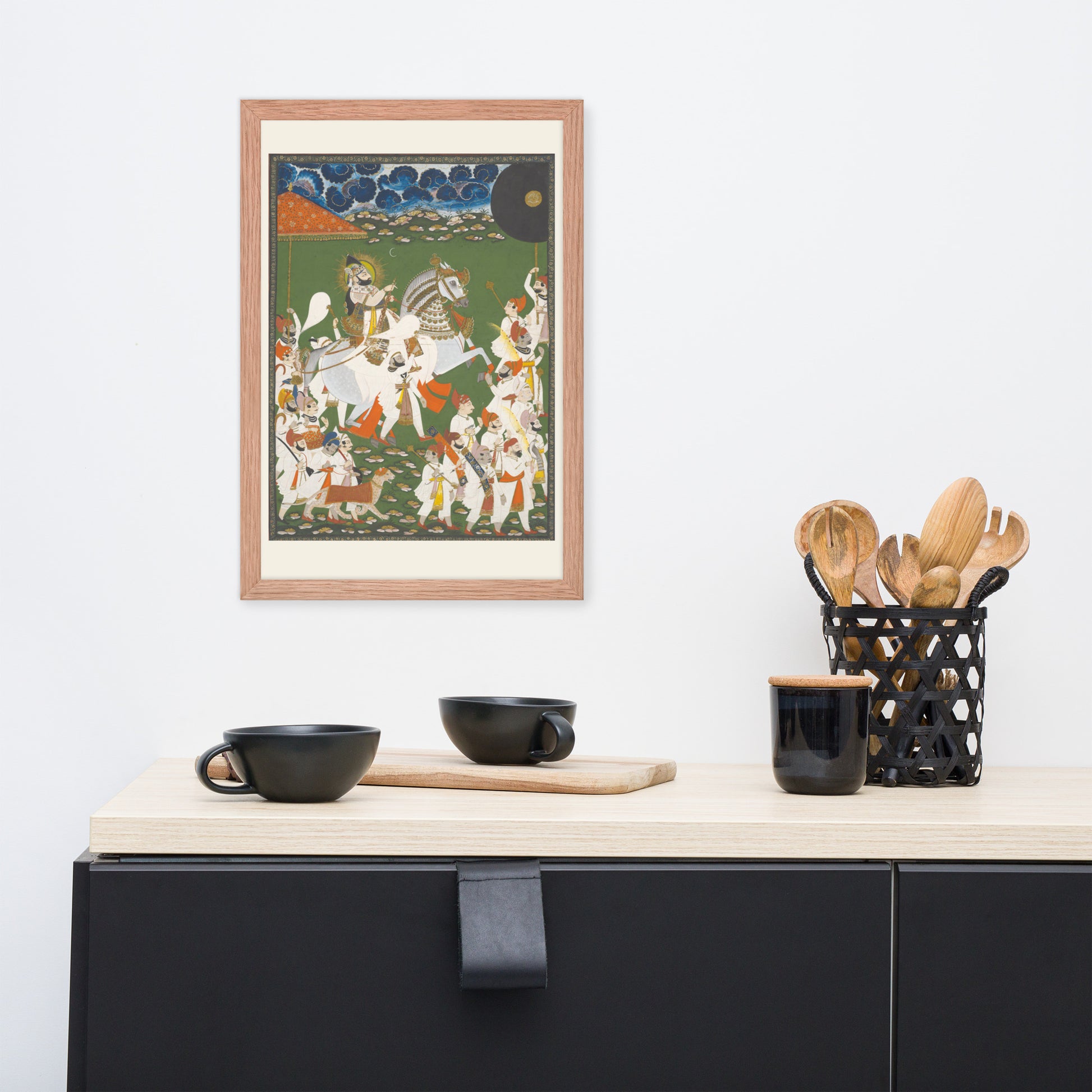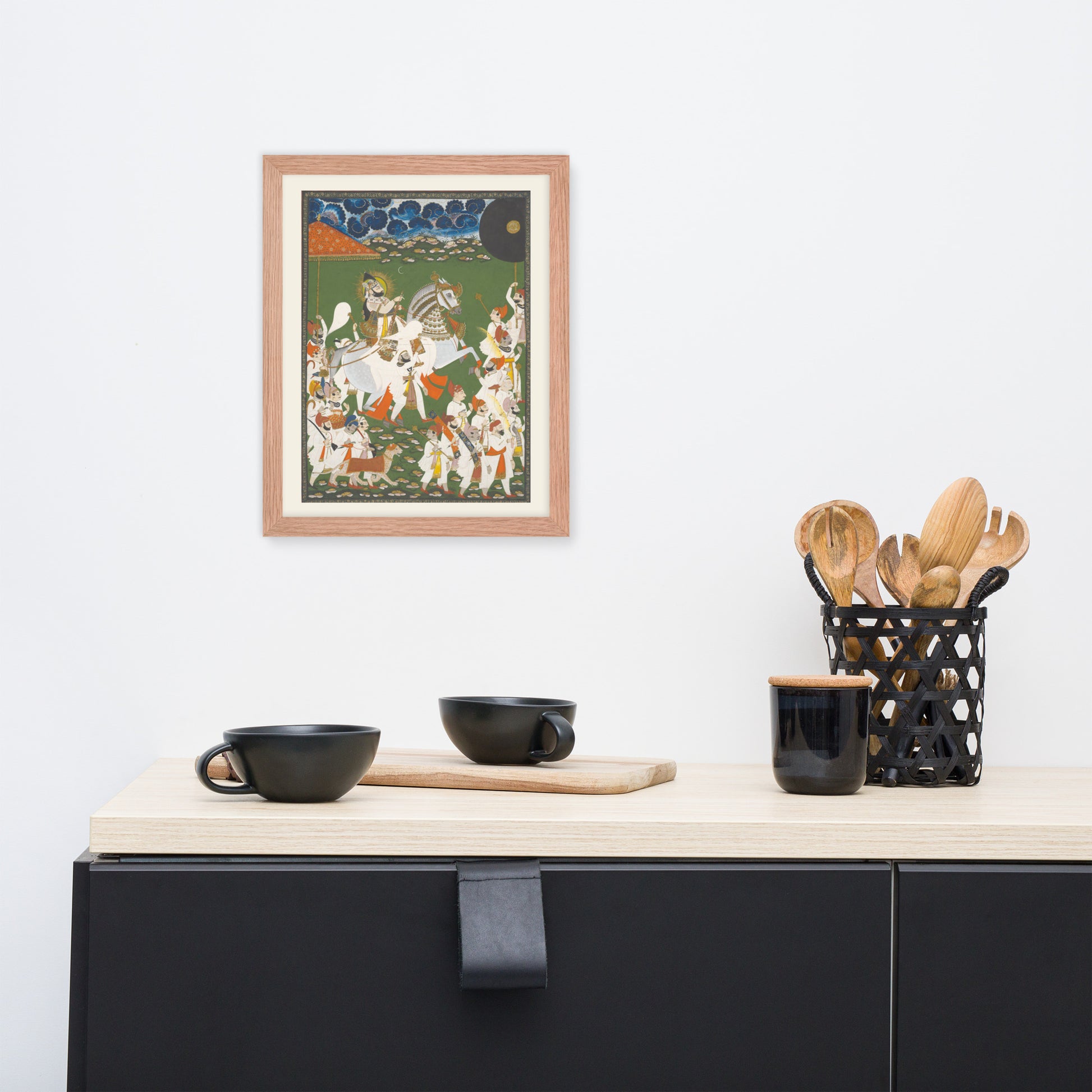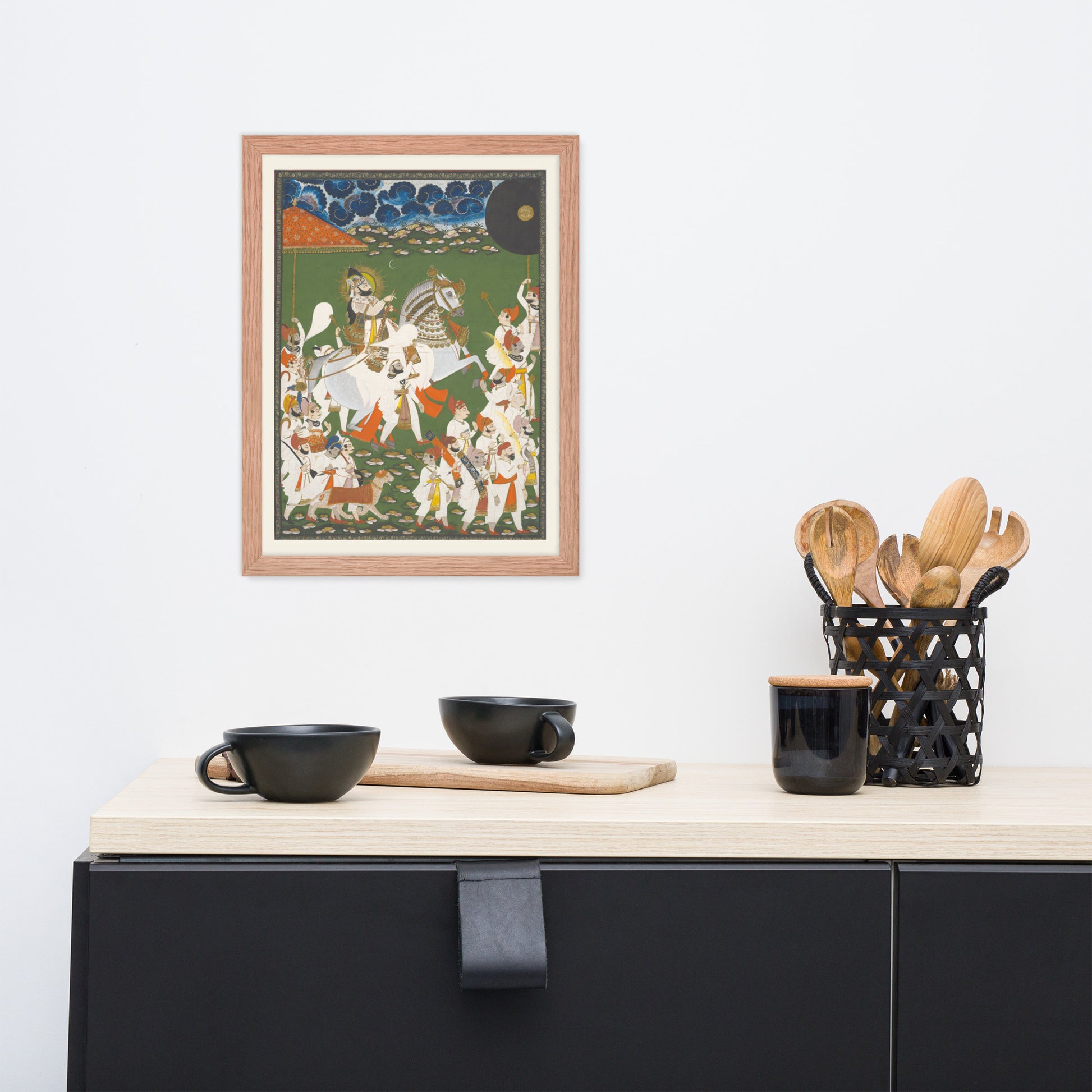 Printed with archival inks and elegantly framed, this piece transforms any space into a gallery of timeless tradition and layered symbolism.