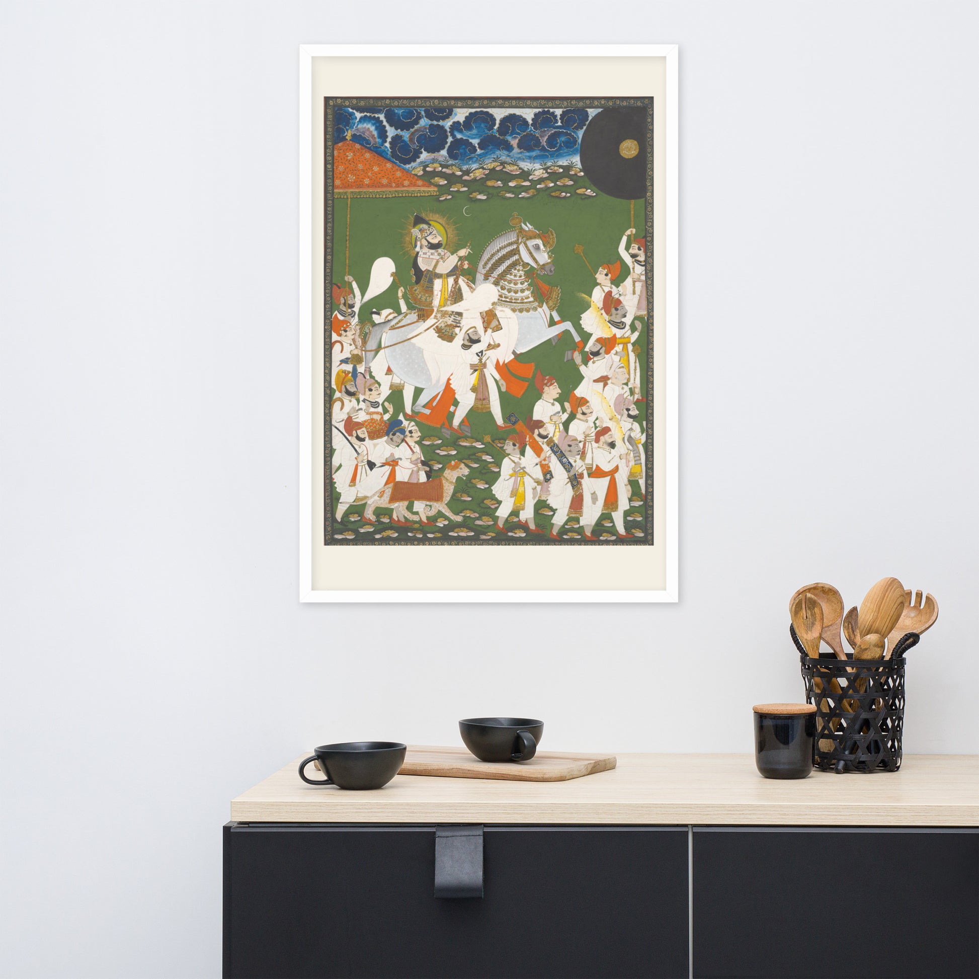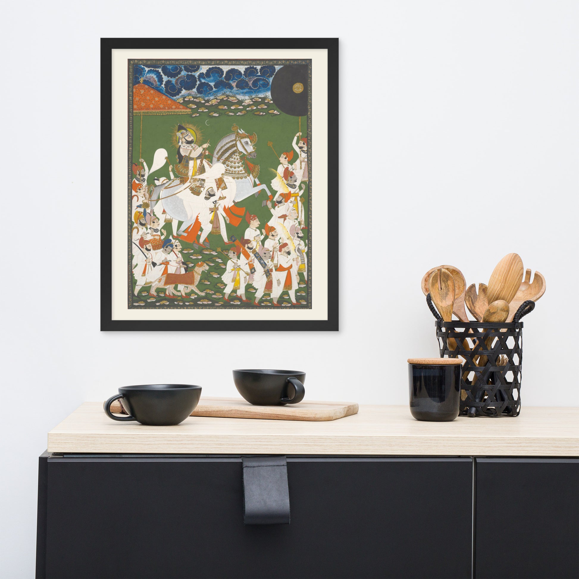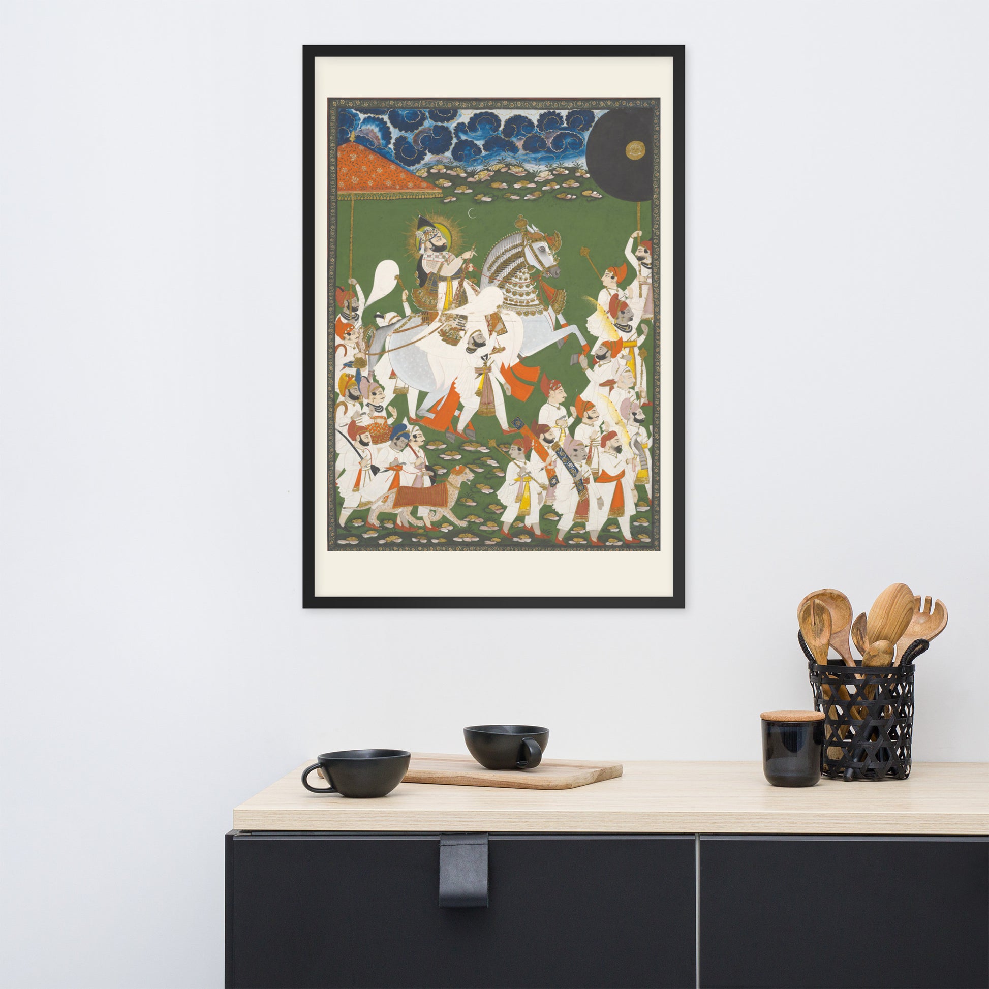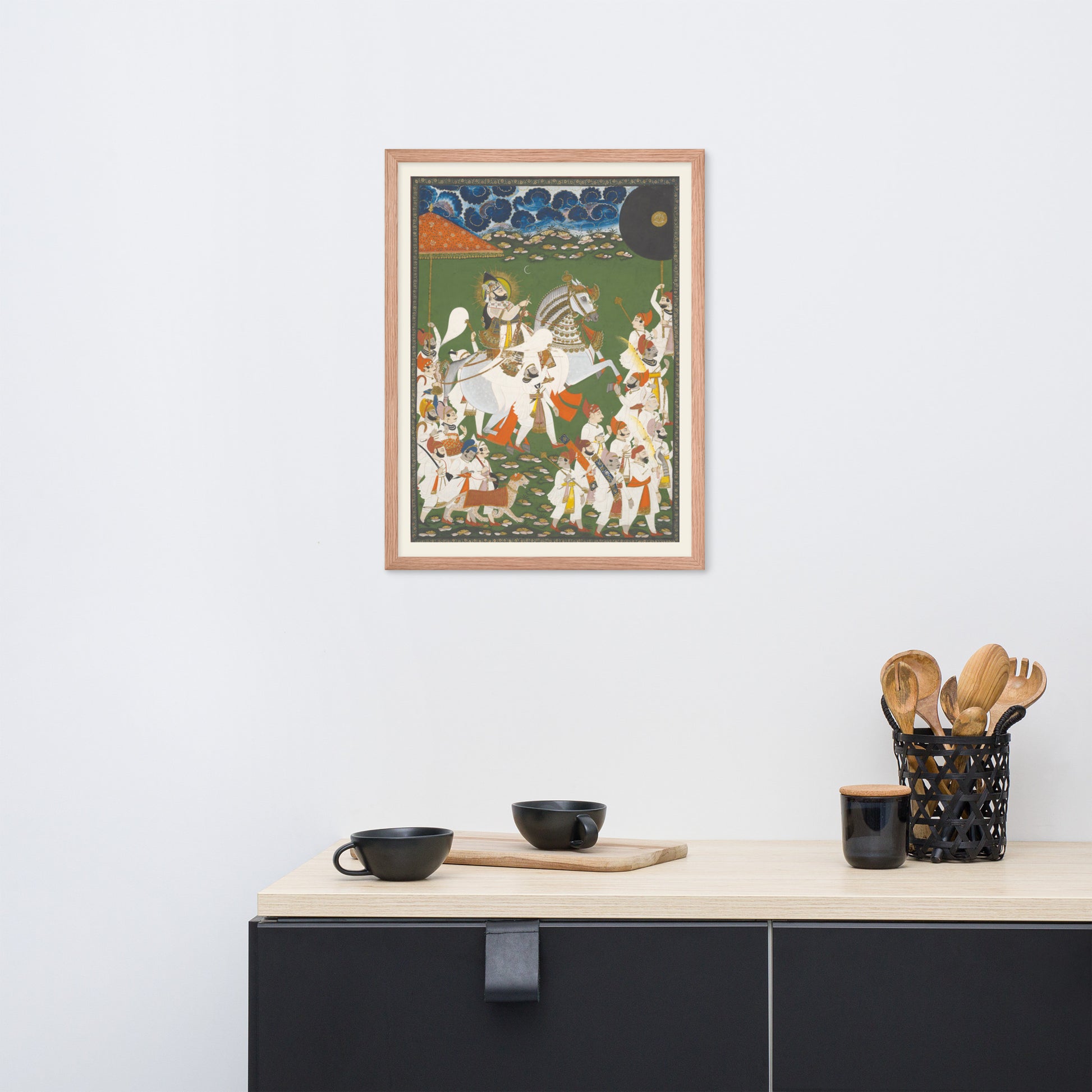 Printed with archival inks and elegantly framed, this piece transforms any space into a gallery of timeless tradition and layered symbolism.