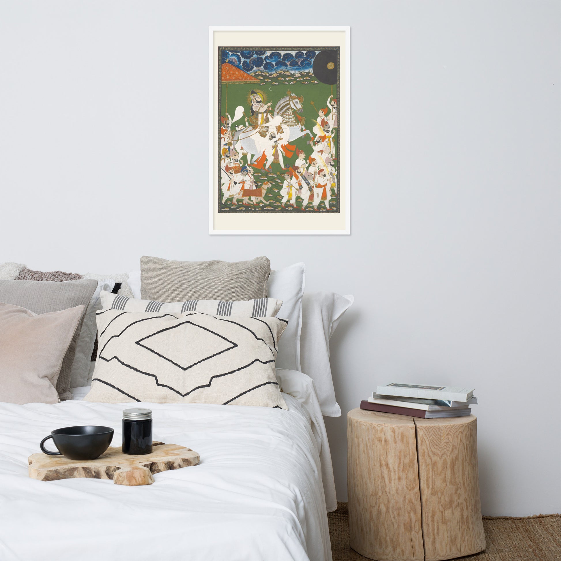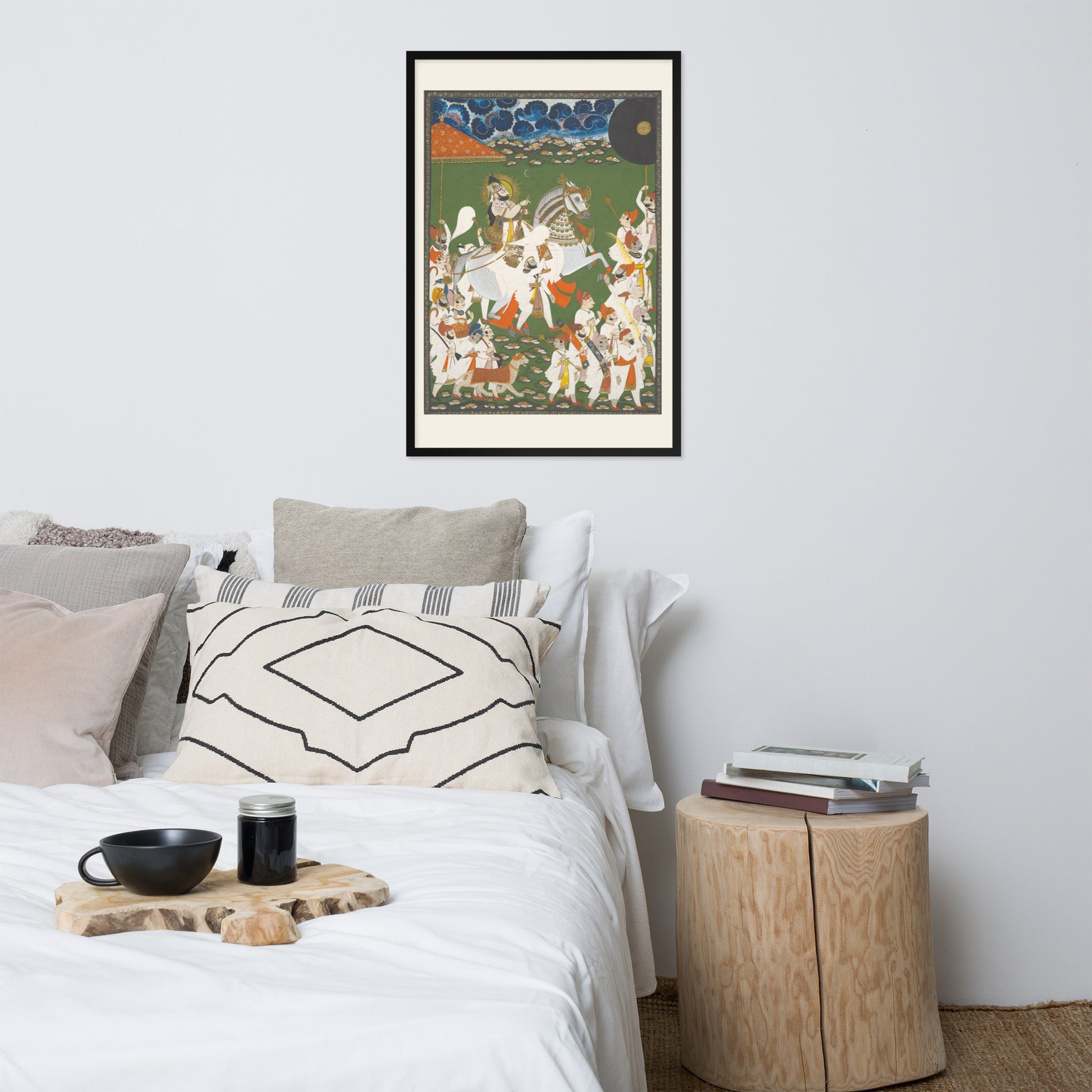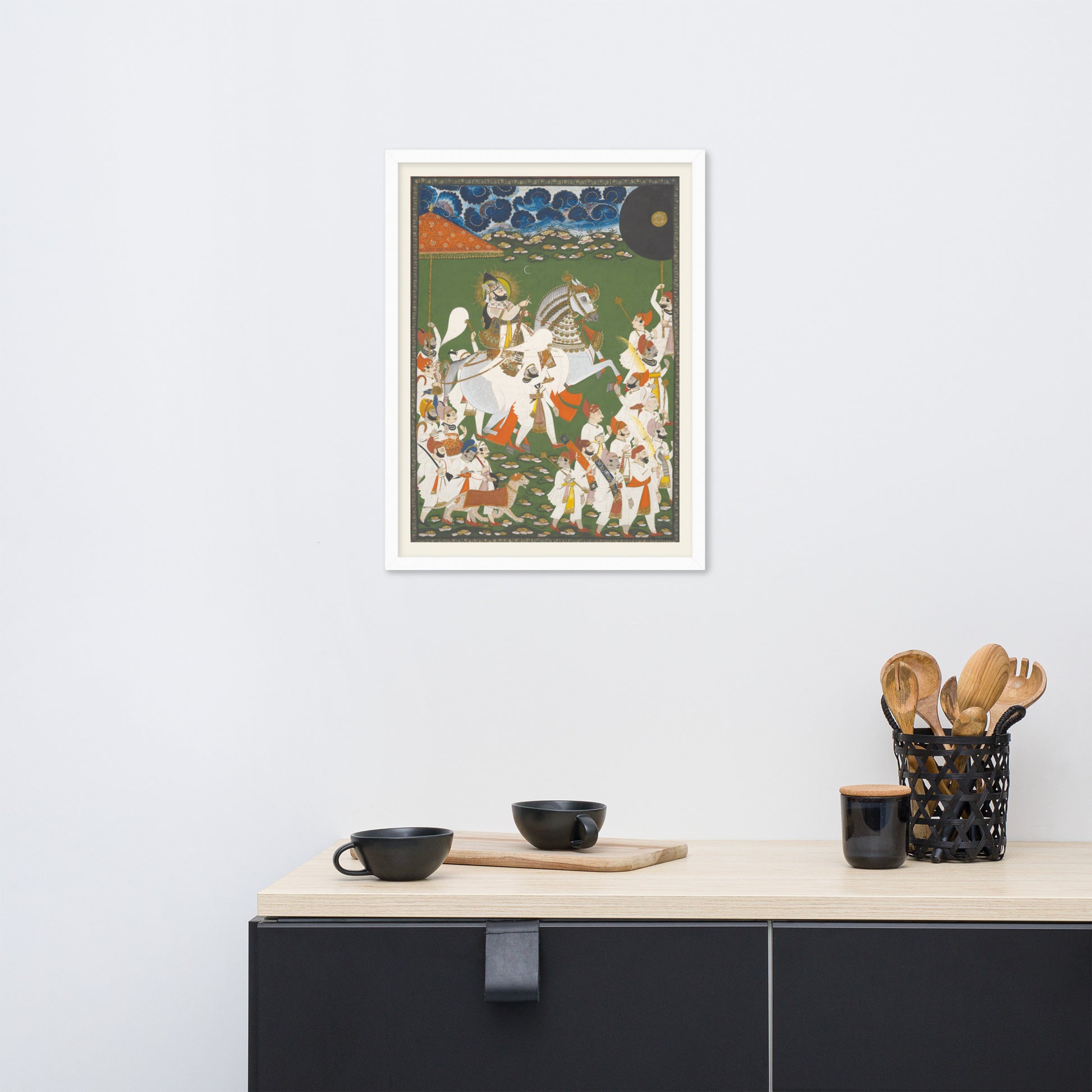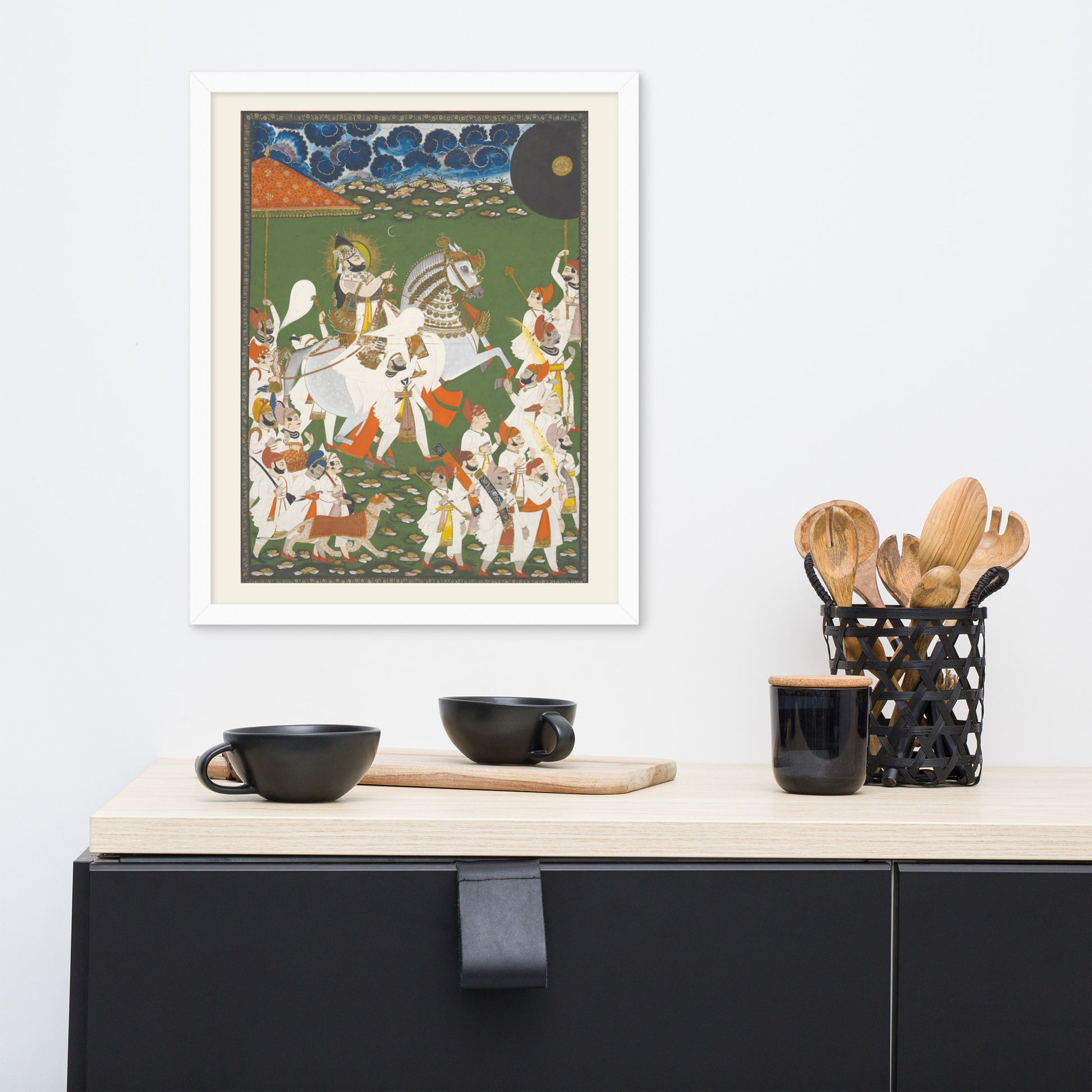 Printed with archival inks and elegantly framed, this piece transforms any space into a gallery of timeless tradition and layered symbolism.
