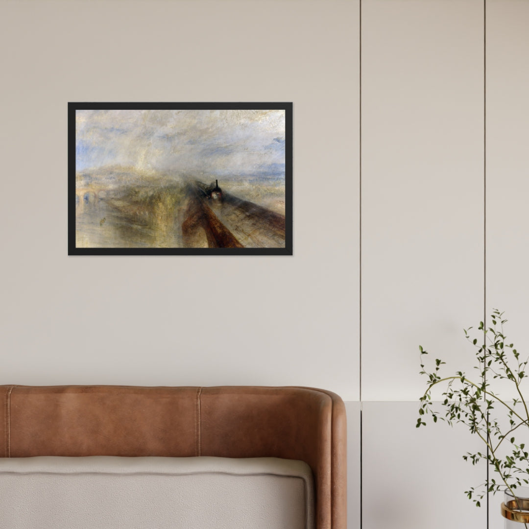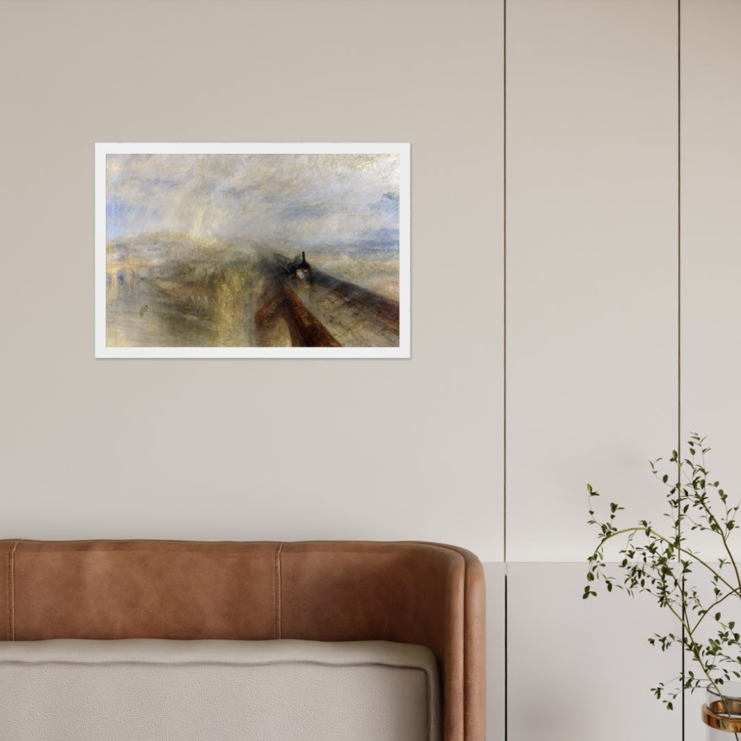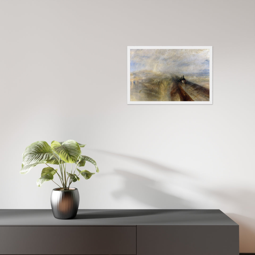 Turner's expressive brushwork and luminous palette convey more than just a train in transit; they evoke the spirit of progress, the tension between man and nature, and the poetic beauty of transformation. Ideal for modern interiors seeking a touch of historical depth and emotional resonance, this print brings timeless energy to any space.