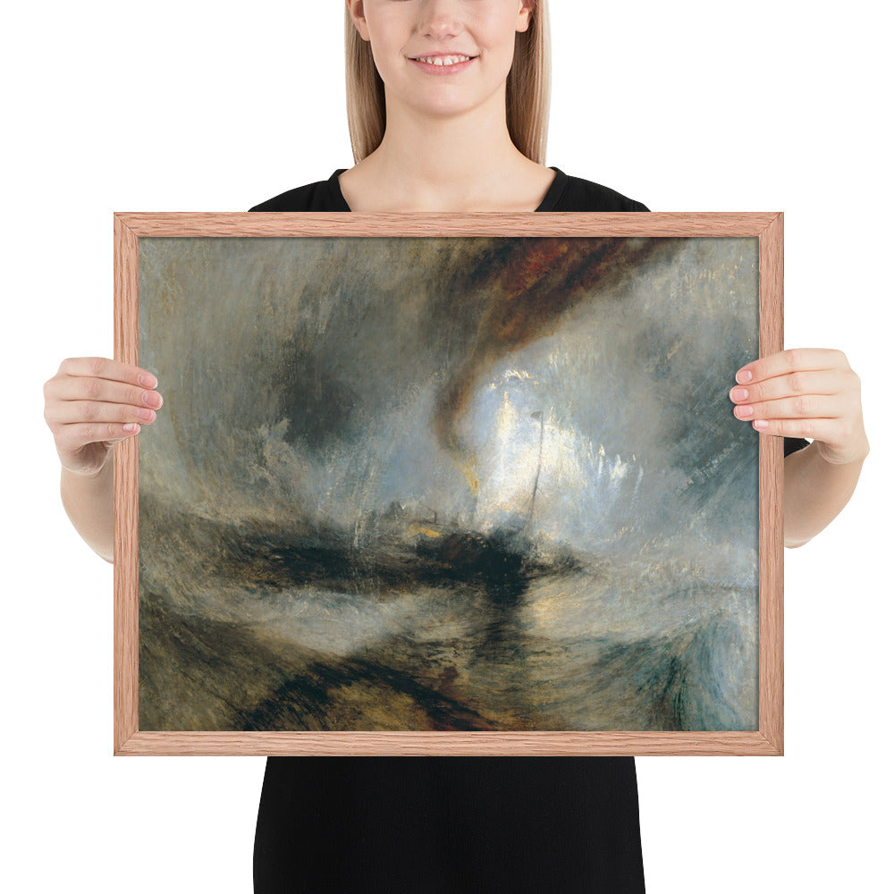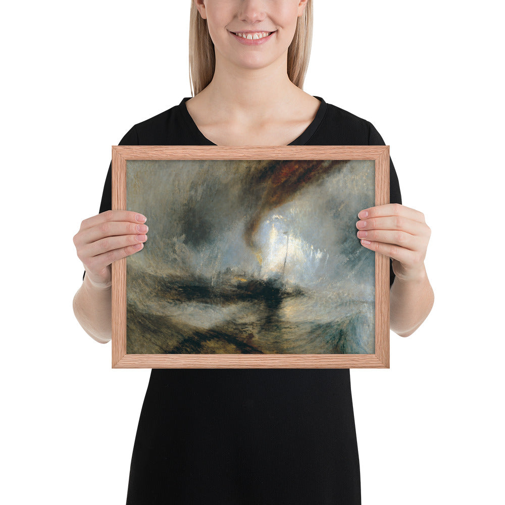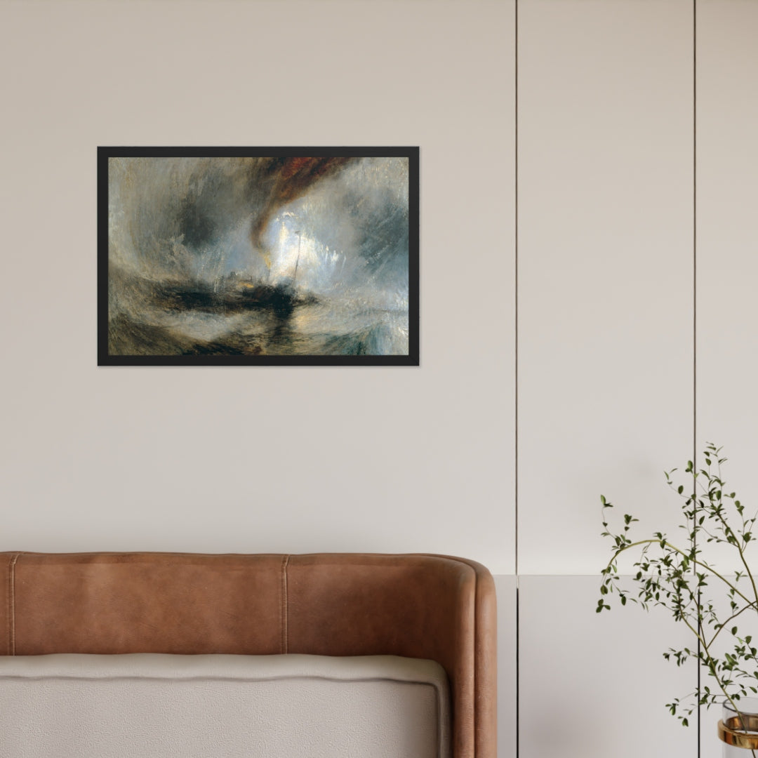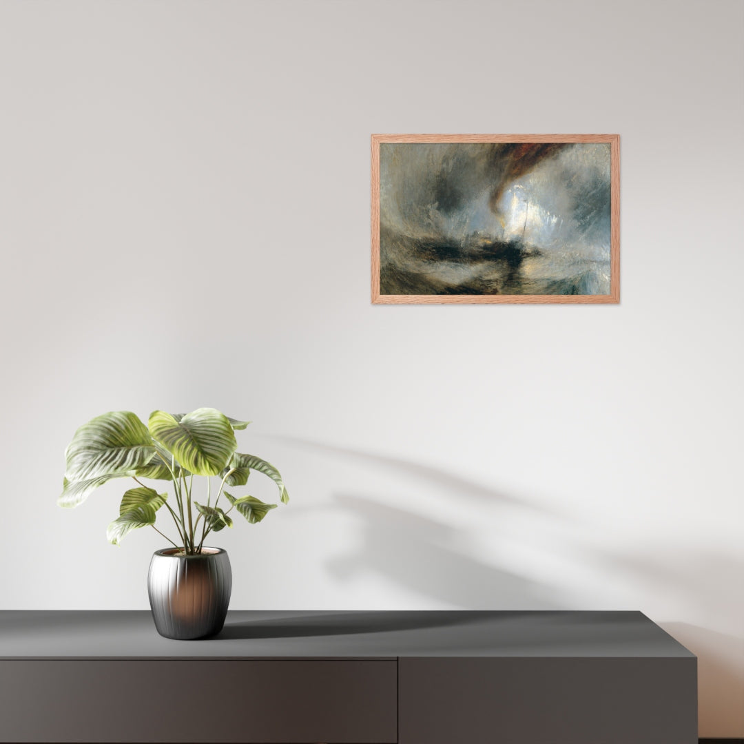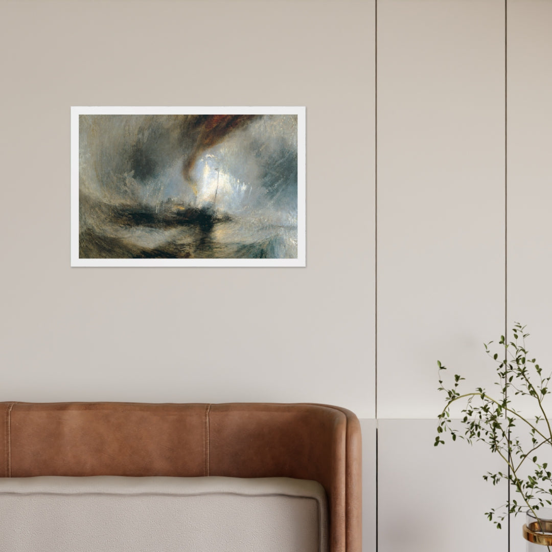 Immerse your space in the raw power and poetic turbulence of Snow Storm – Steam Boat off a Harbour’s Mouth by J.M.W. Turner. This framed wall print captures the essence of Romanticism, where nature’s fury meets human resilience in a swirling storm of sea, sky, and steam. Turner’s masterful brushwork conjures a visceral sense of motion and chaos, as a lone steamship battles the elements—illuminated by a fleeting shaft of light that pierces the tempest.