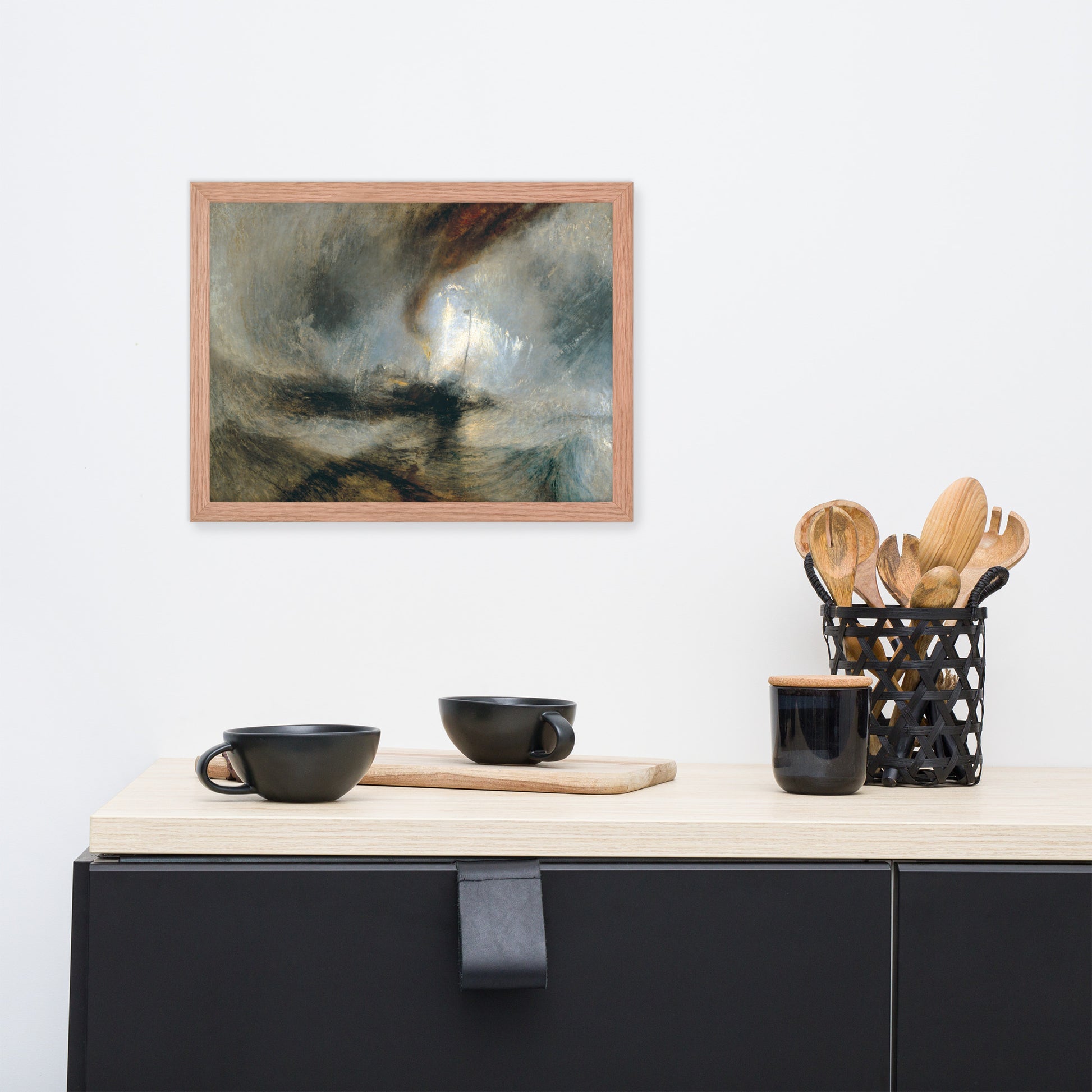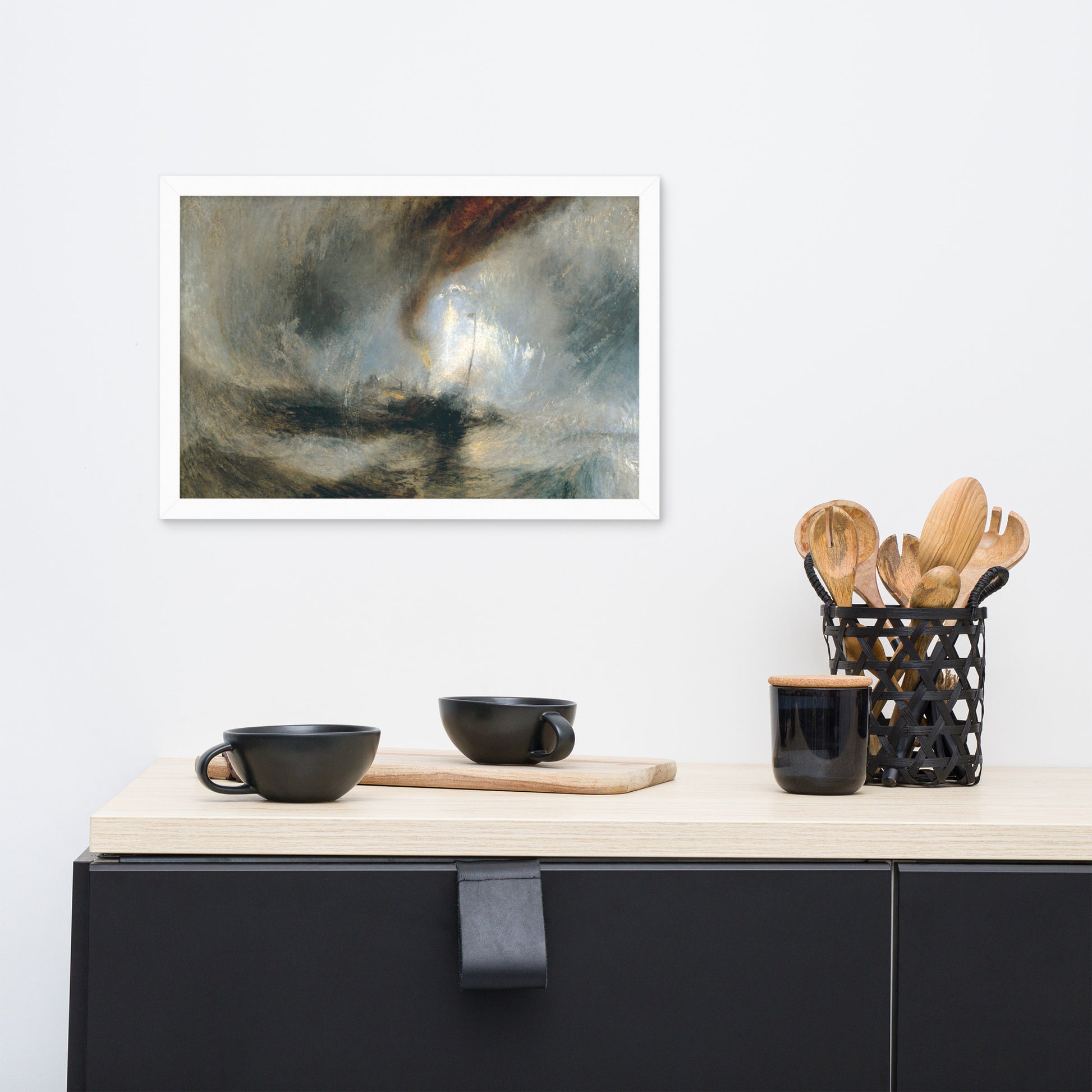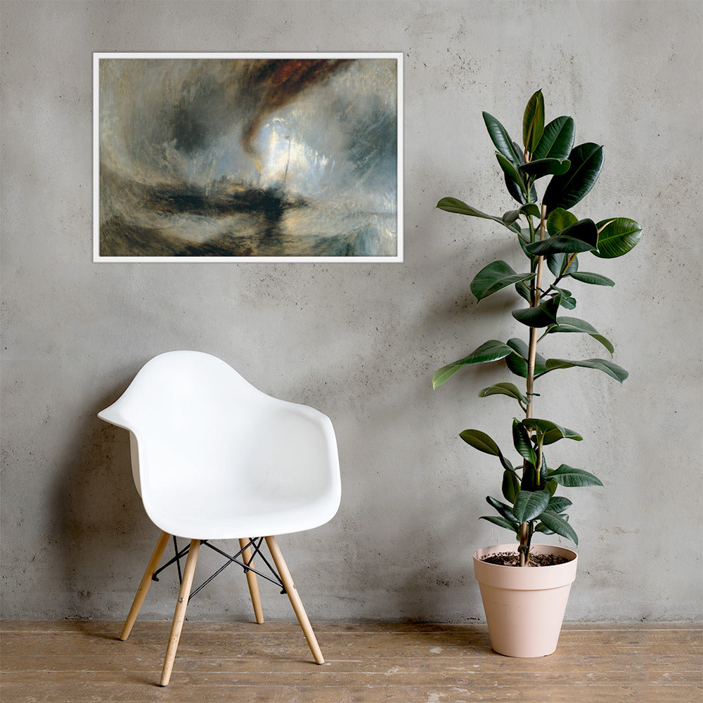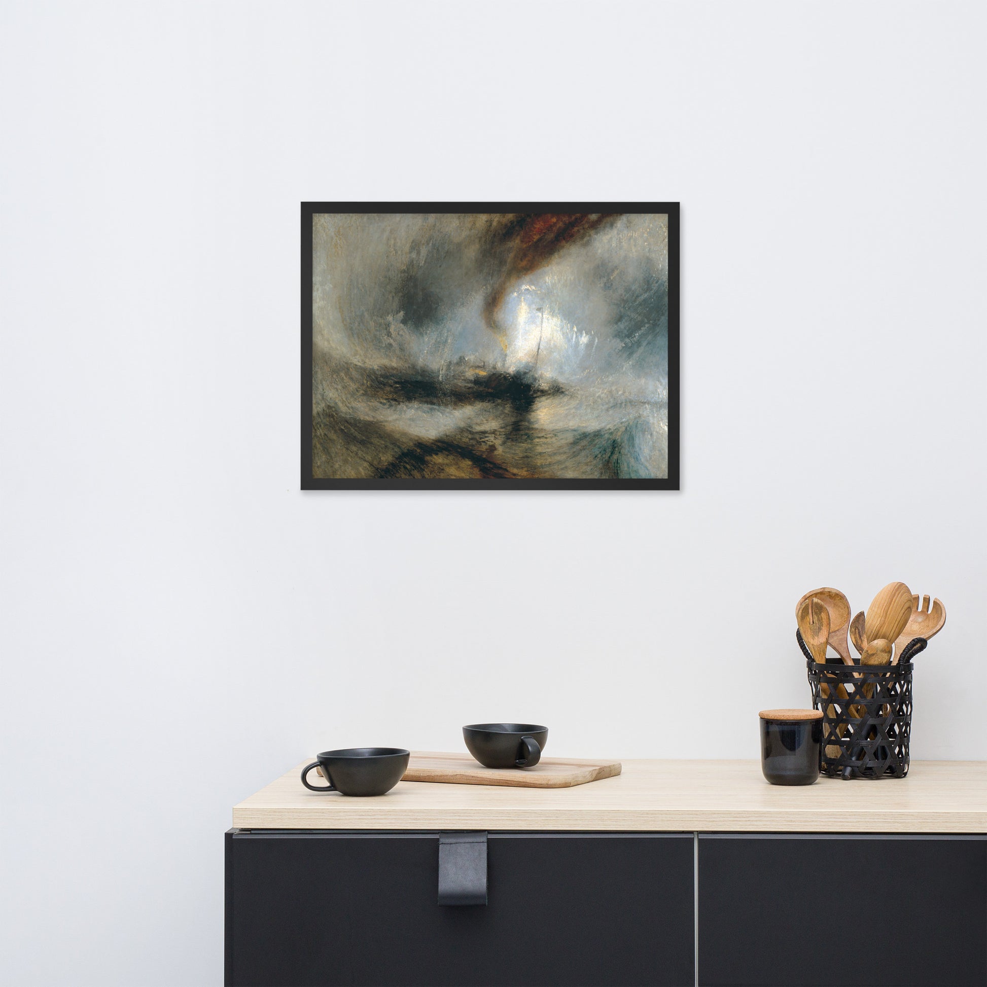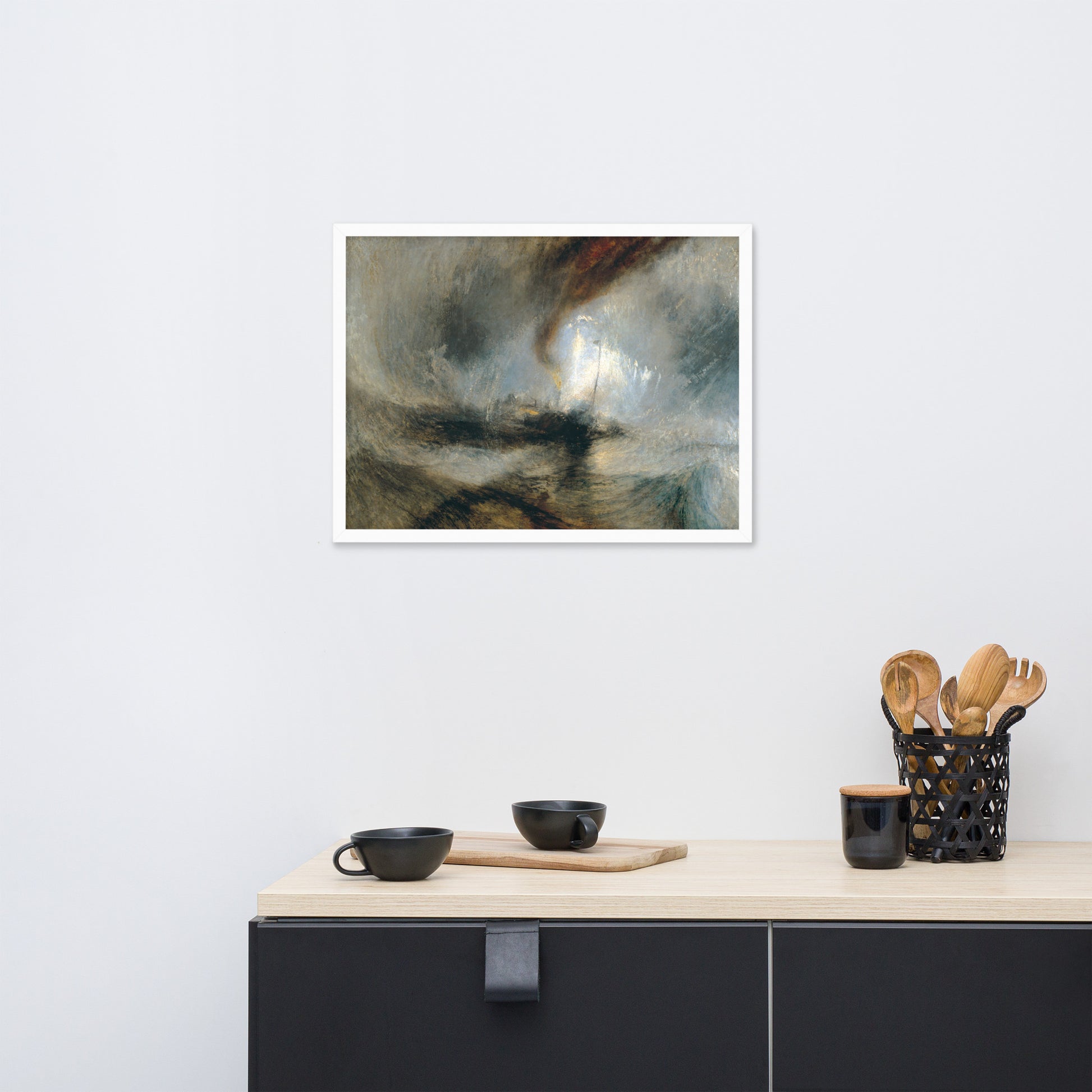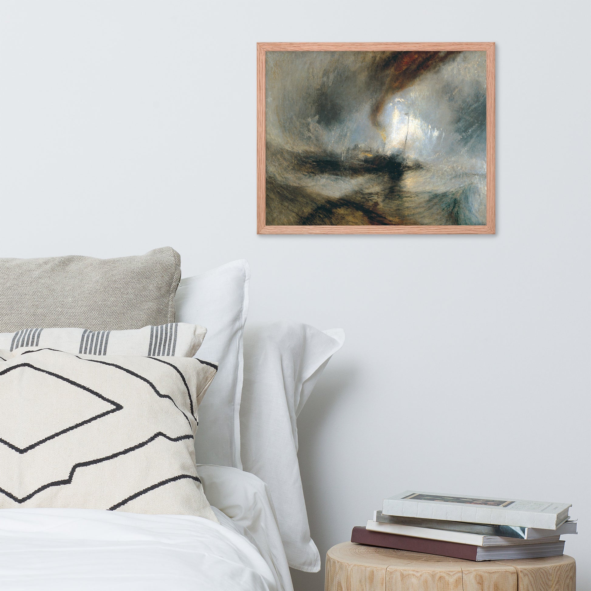 Immerse your space in the raw power and poetic turbulence of Snow Storm – Steam Boat off a Harbour’s Mouth by J.M.W. Turner. This framed wall print captures the essence of Romanticism, where nature’s fury meets human resilience in a swirling storm of sea, sky, and steam. Turner’s masterful brushwork conjures a visceral sense of motion and chaos, as a lone steamship battles the elements—illuminated by a fleeting shaft of light that pierces the tempest.