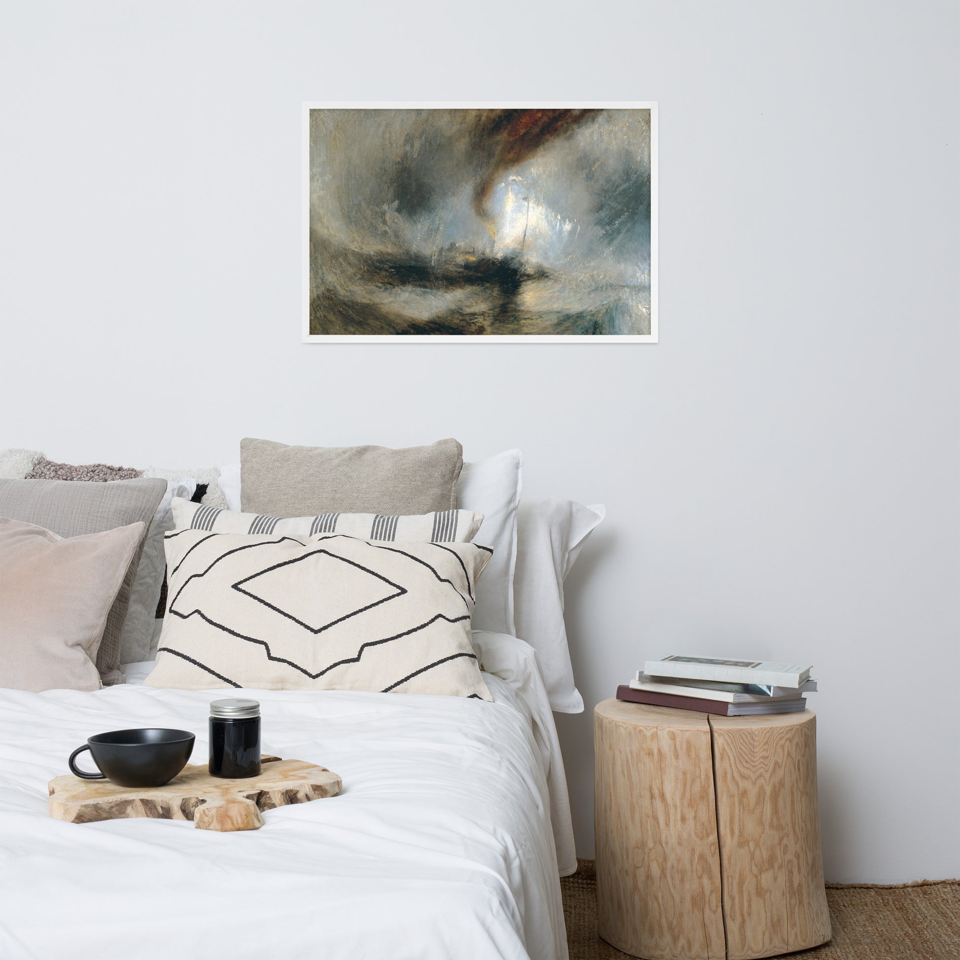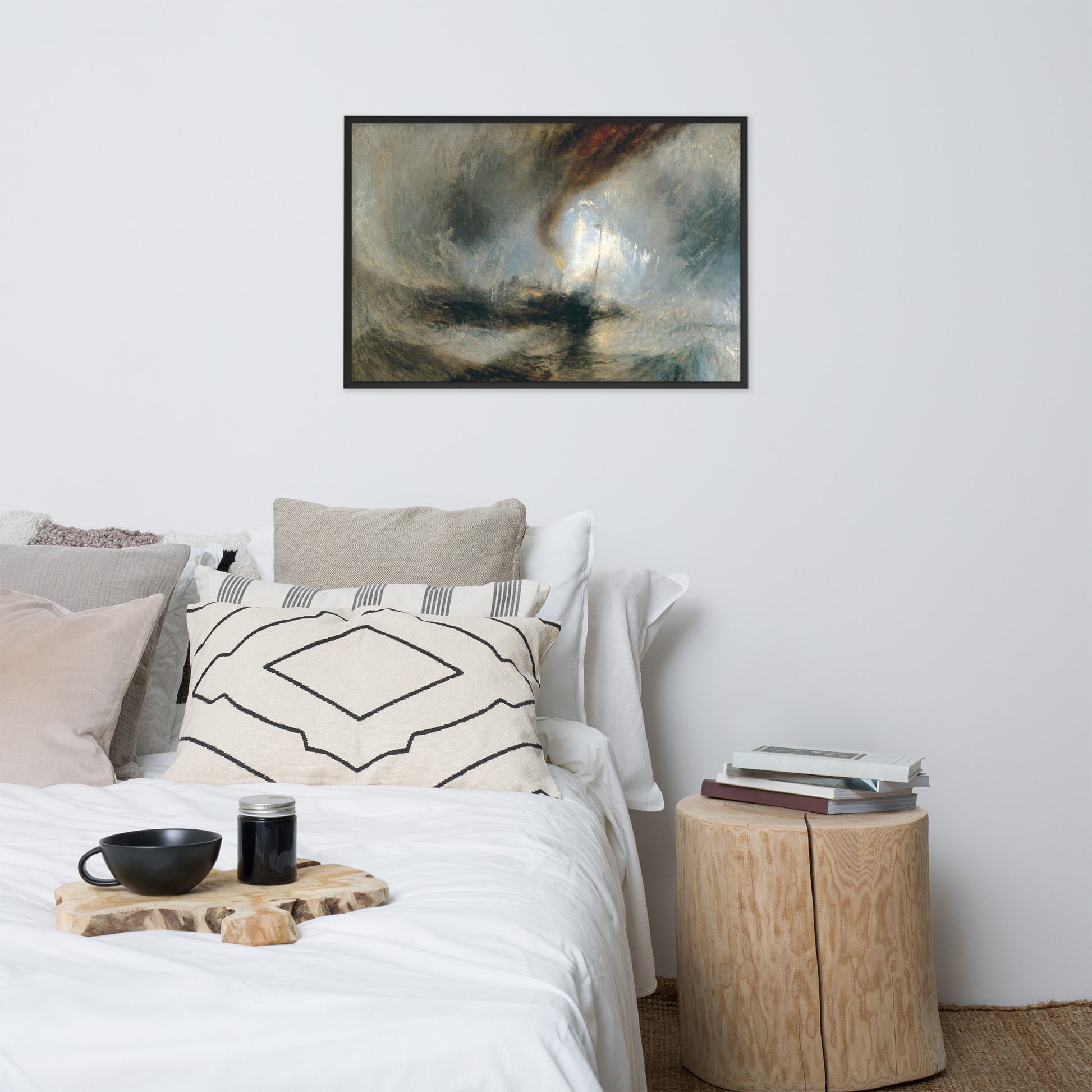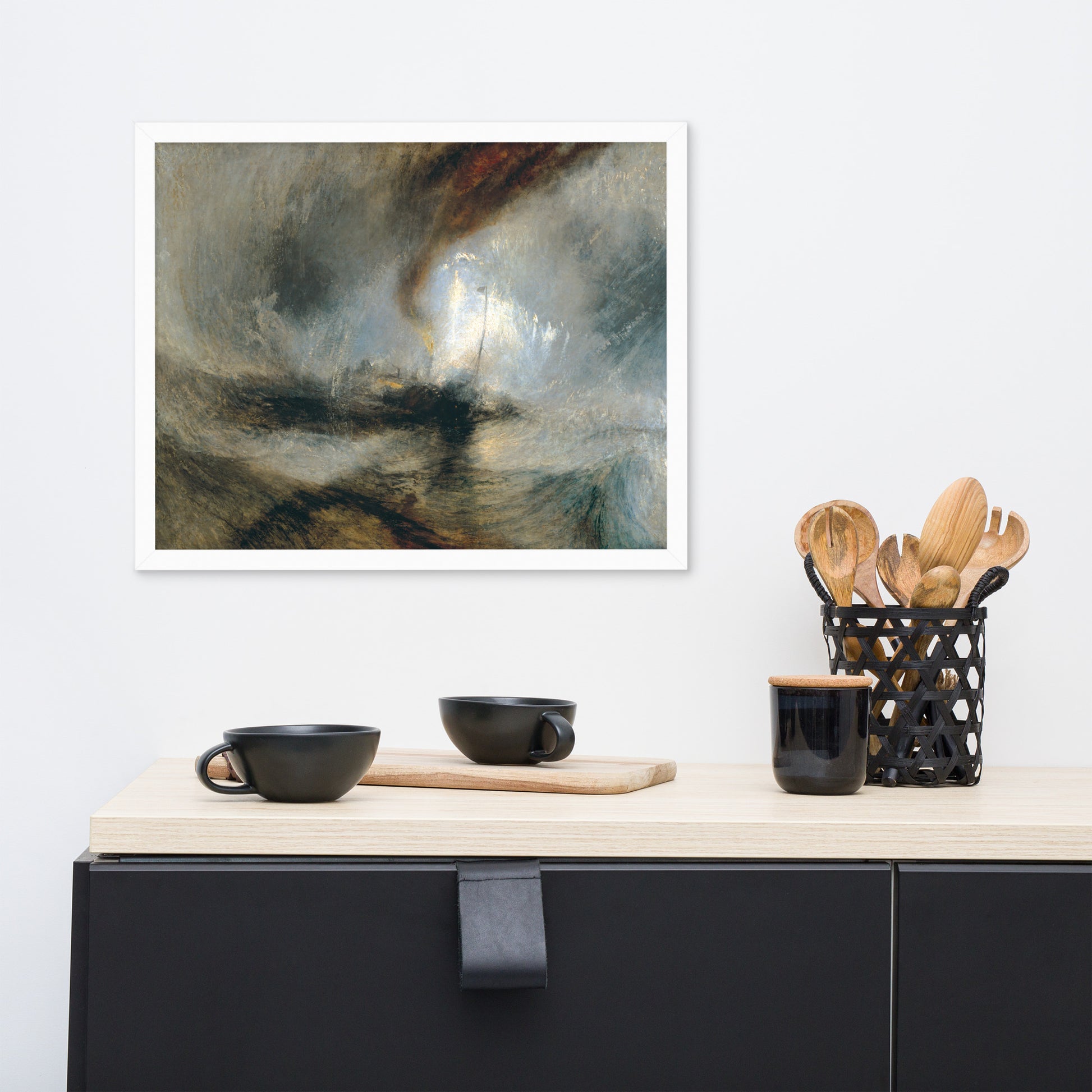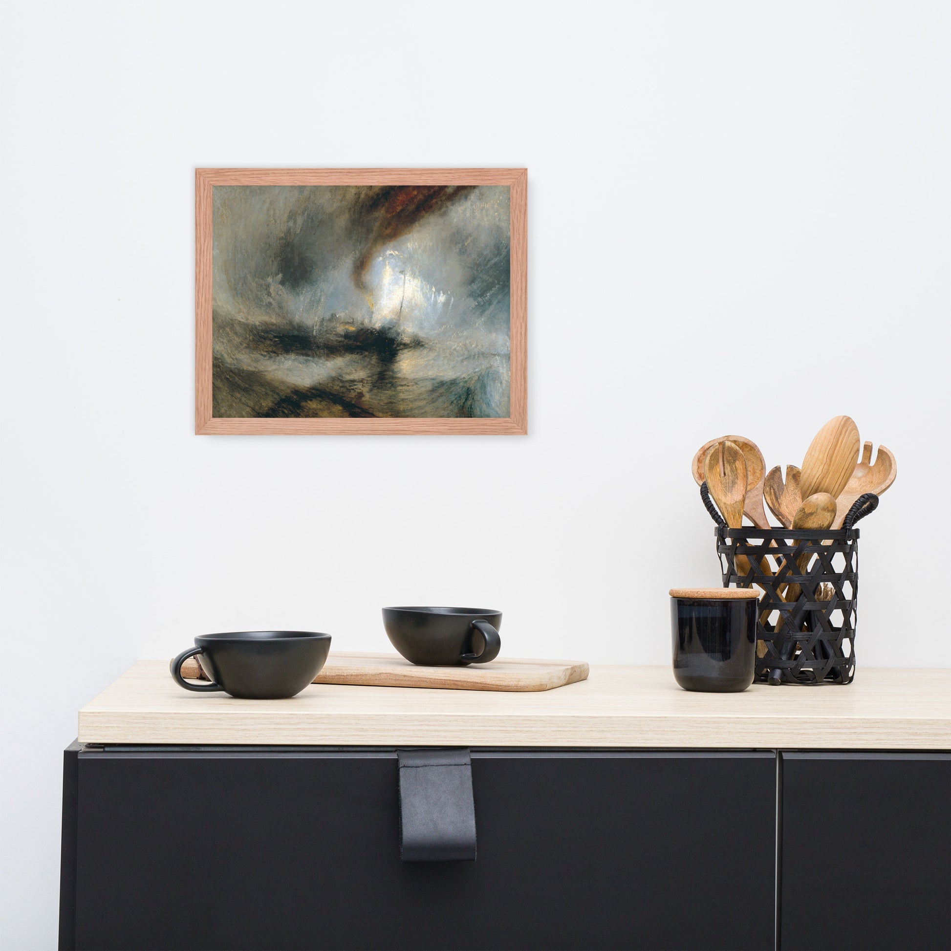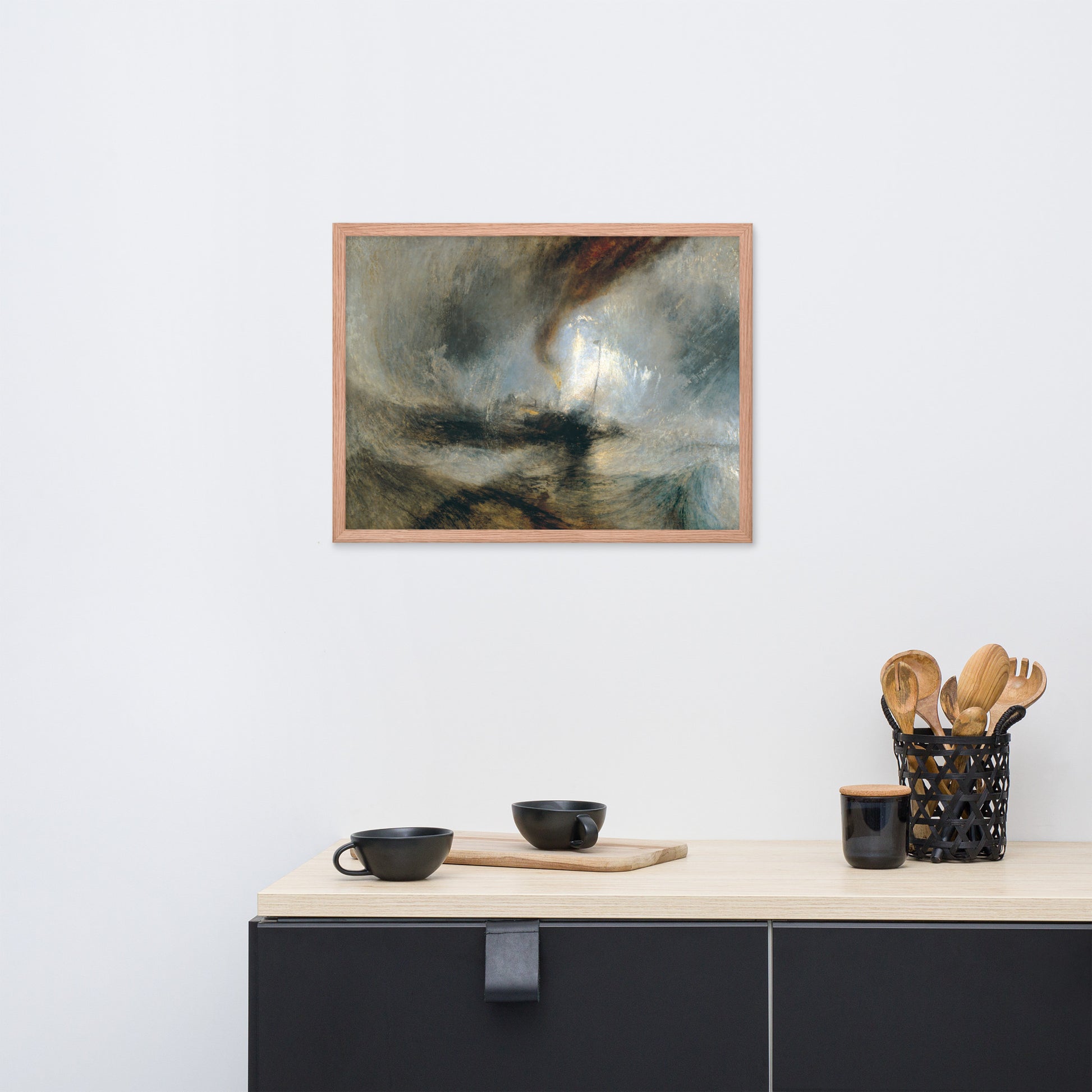 Immerse your space in the raw power and poetic turbulence of Snow Storm – Steam Boat off a Harbour’s Mouth by J.M.W. Turner. This framed wall print captures the essence of Romanticism, where nature’s fury meets human resilience in a swirling storm of sea, sky, and steam. Turner’s masterful brushwork conjures a visceral sense of motion and chaos, as a lone steamship battles the elements—illuminated by a fleeting shaft of light that pierces the tempest.