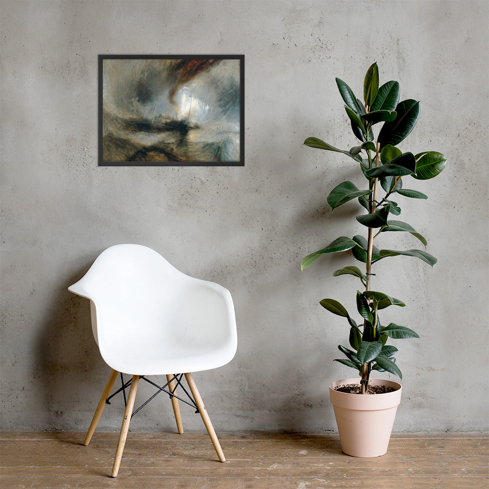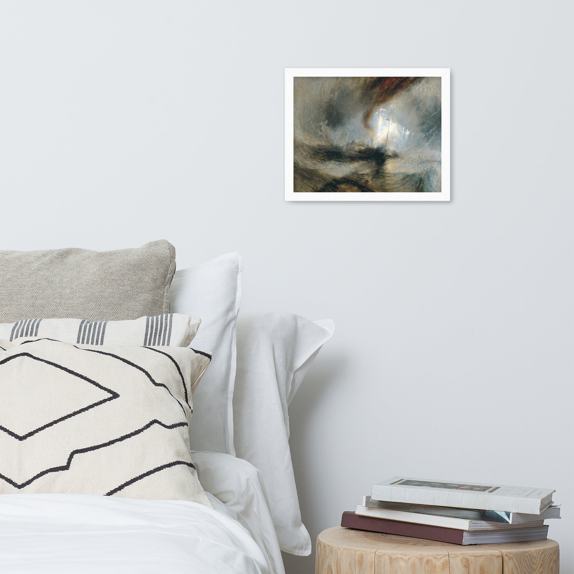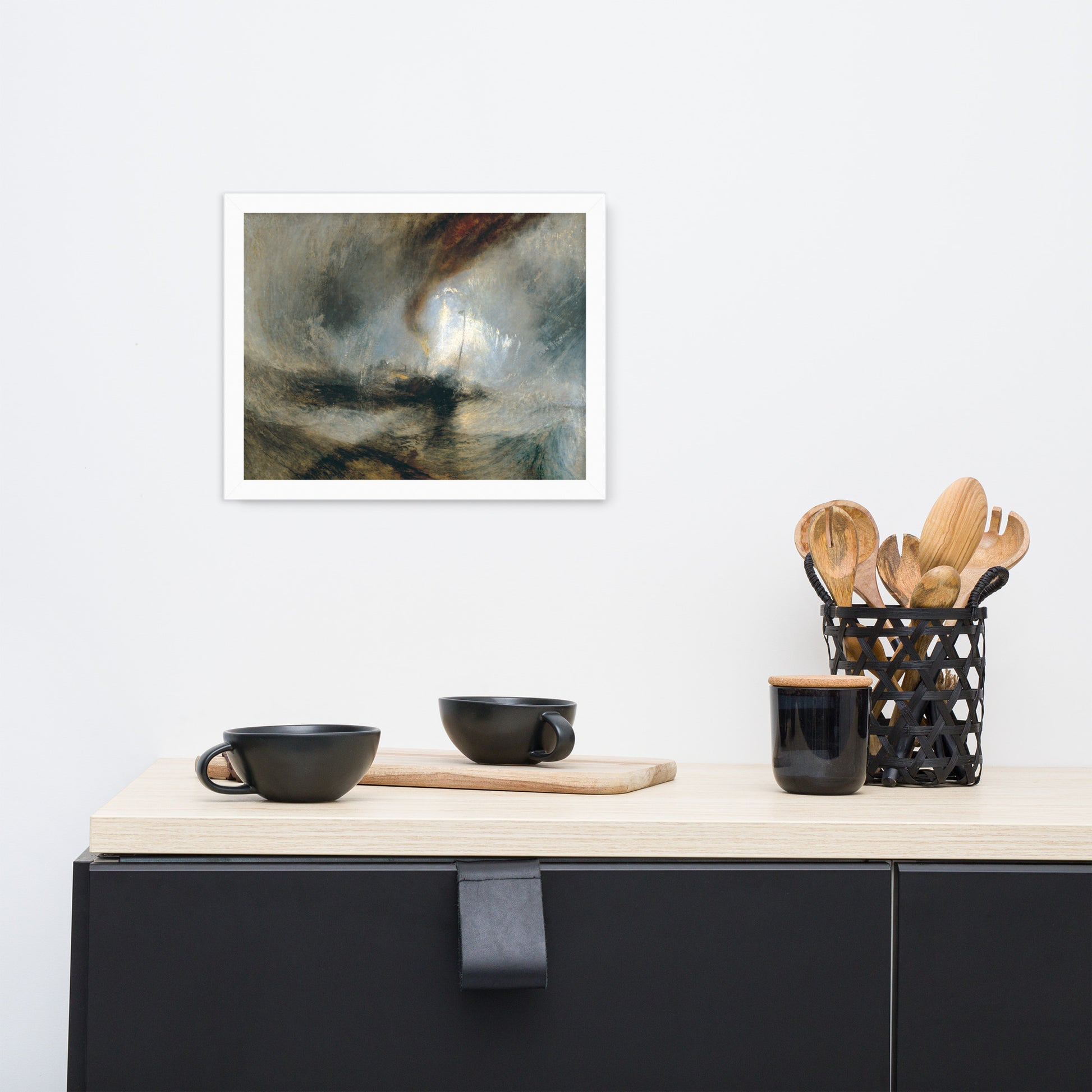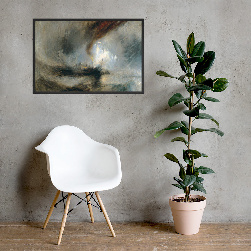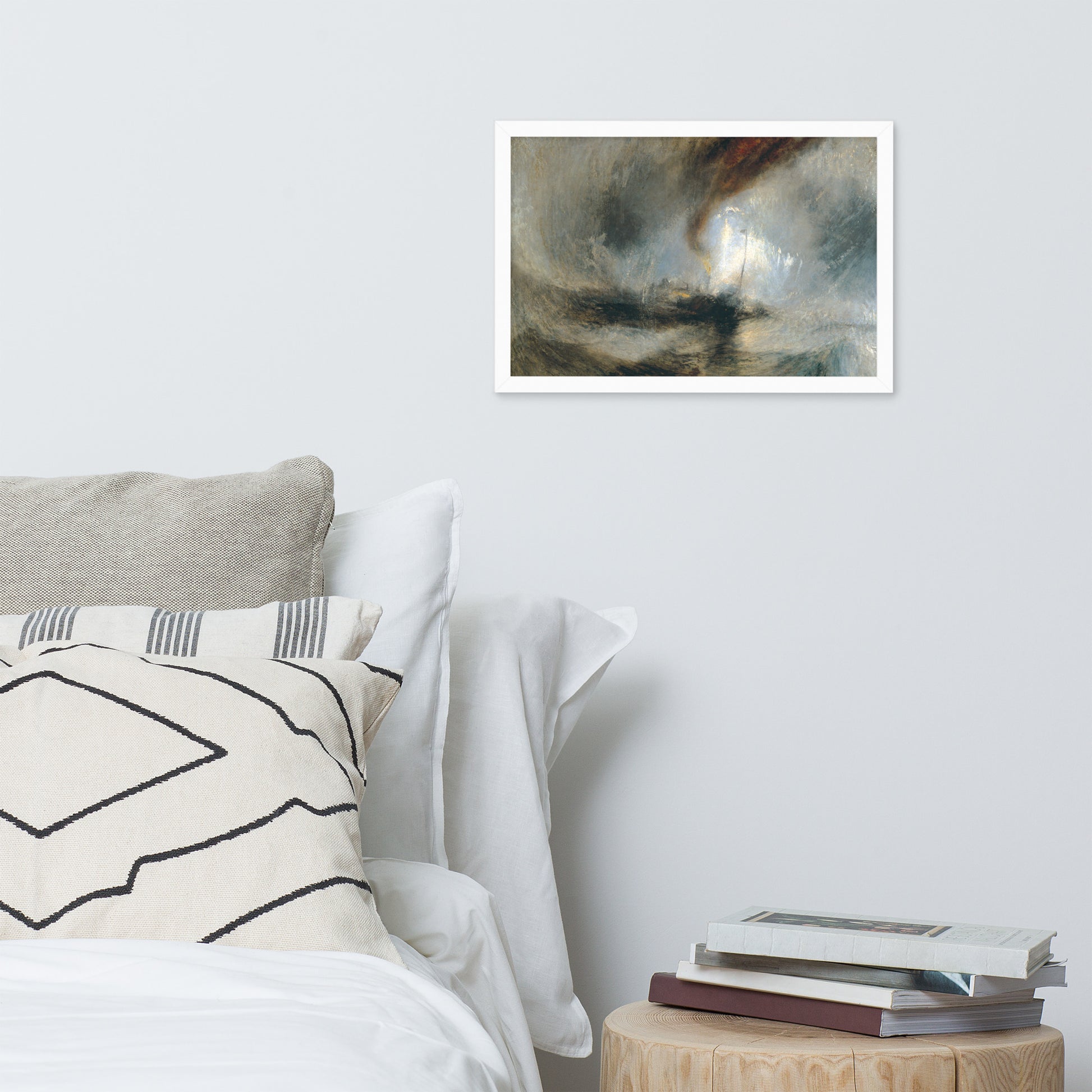 Immerse your space in the raw power and poetic turbulence of Snow Storm – Steam Boat off a Harbour’s Mouth by J.M.W. Turner. This framed wall print captures the essence of Romanticism, where nature’s fury meets human resilience in a swirling storm of sea, sky, and steam. Turner’s masterful brushwork conjures a visceral sense of motion and chaos, as a lone steamship battles the elements—illuminated by a fleeting shaft of light that pierces the tempest.