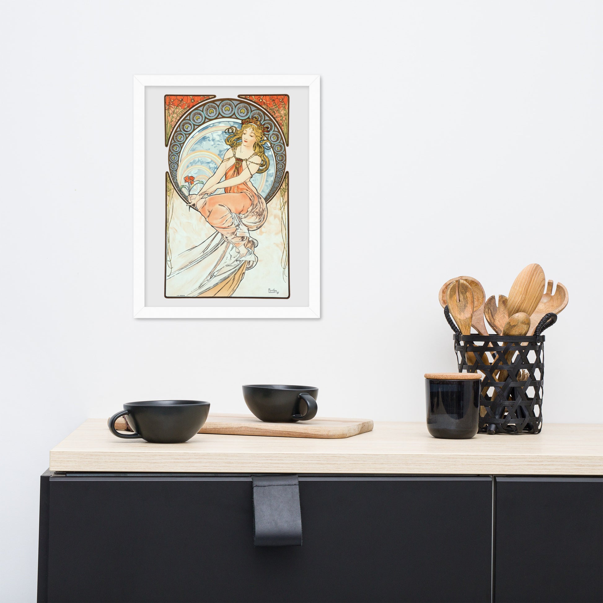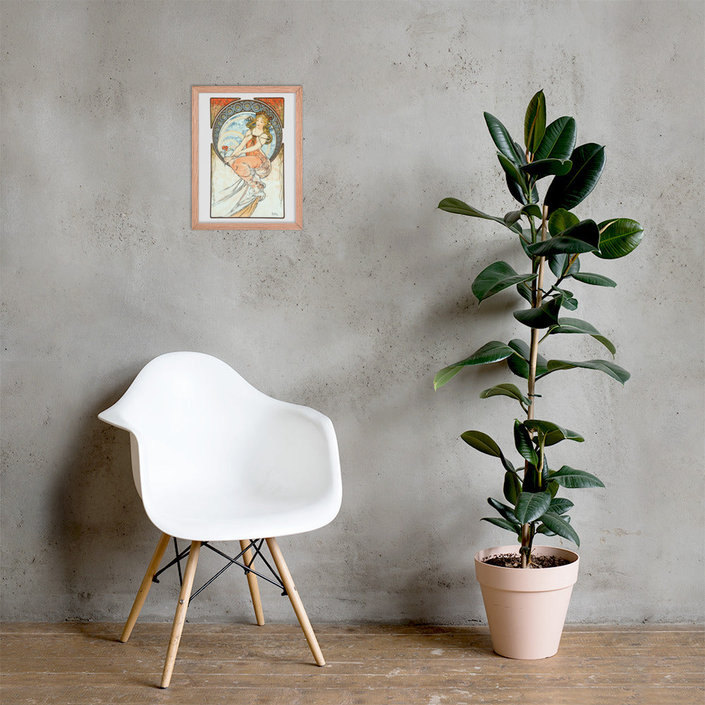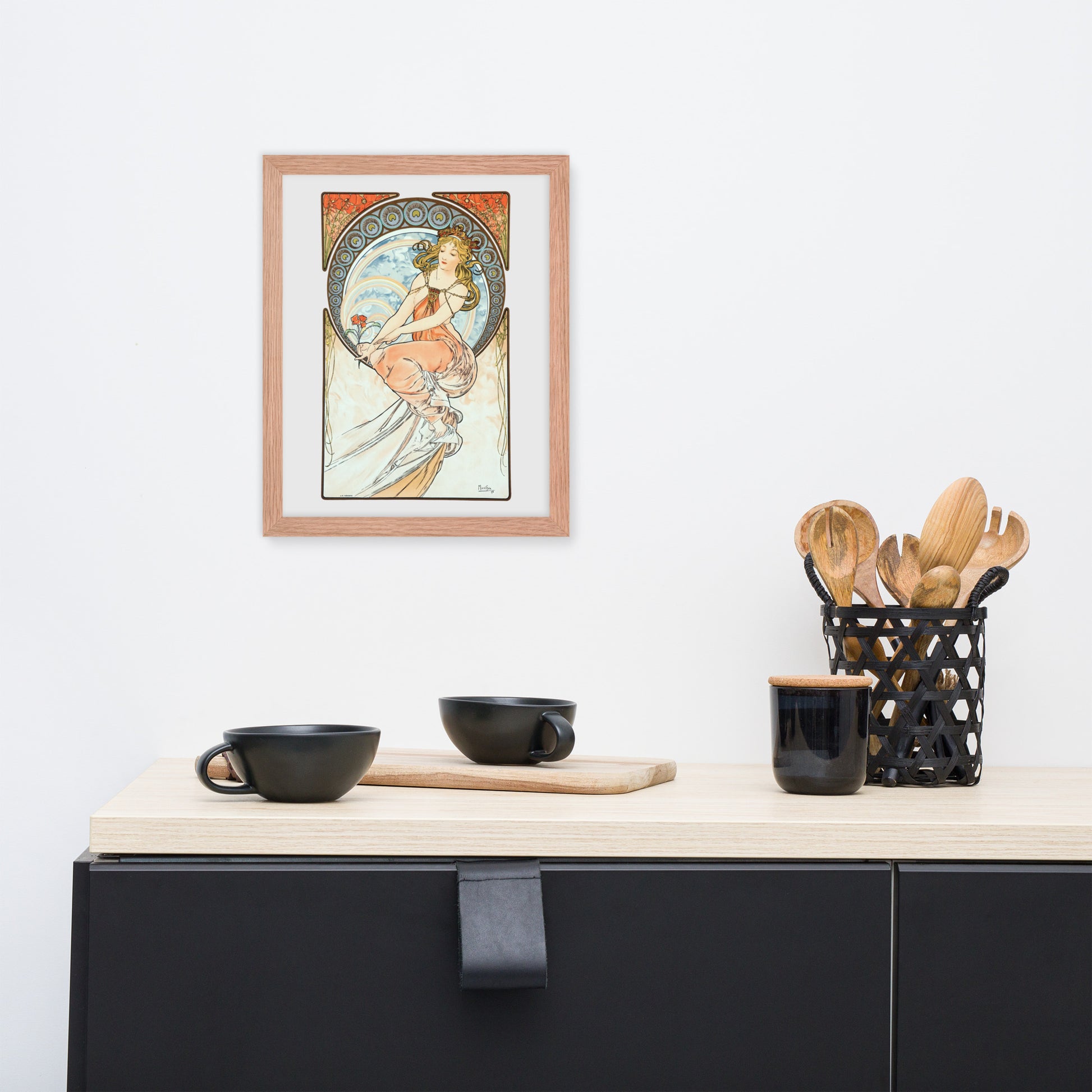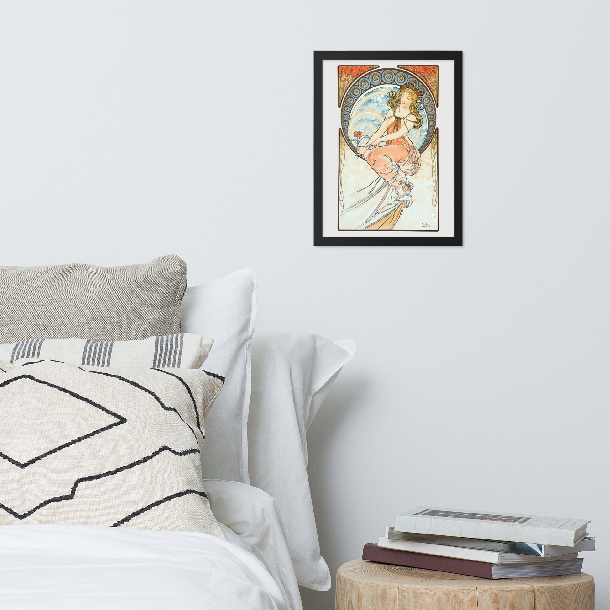 Printed with high-quality materials and professionally framed, this piece offers a gallery-inspired presentation without the need for museum-grade or archival inks. Ideal for collectors, design enthusiasts, and anyone drawn to the romantic allure of Art Nouveau.