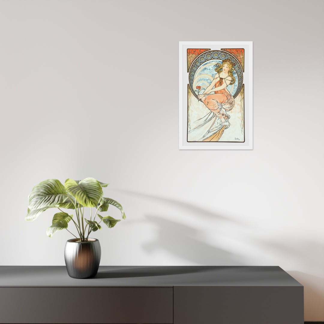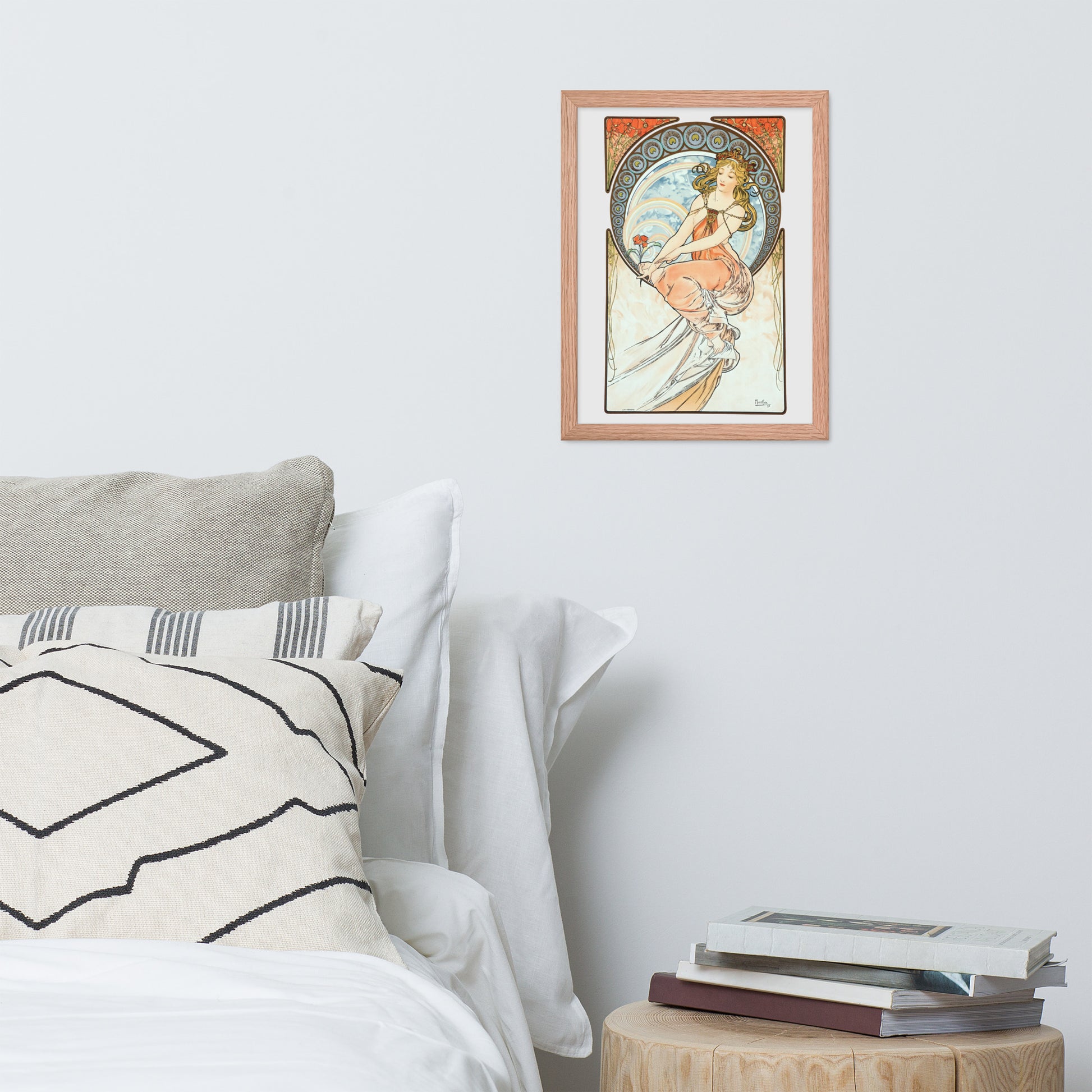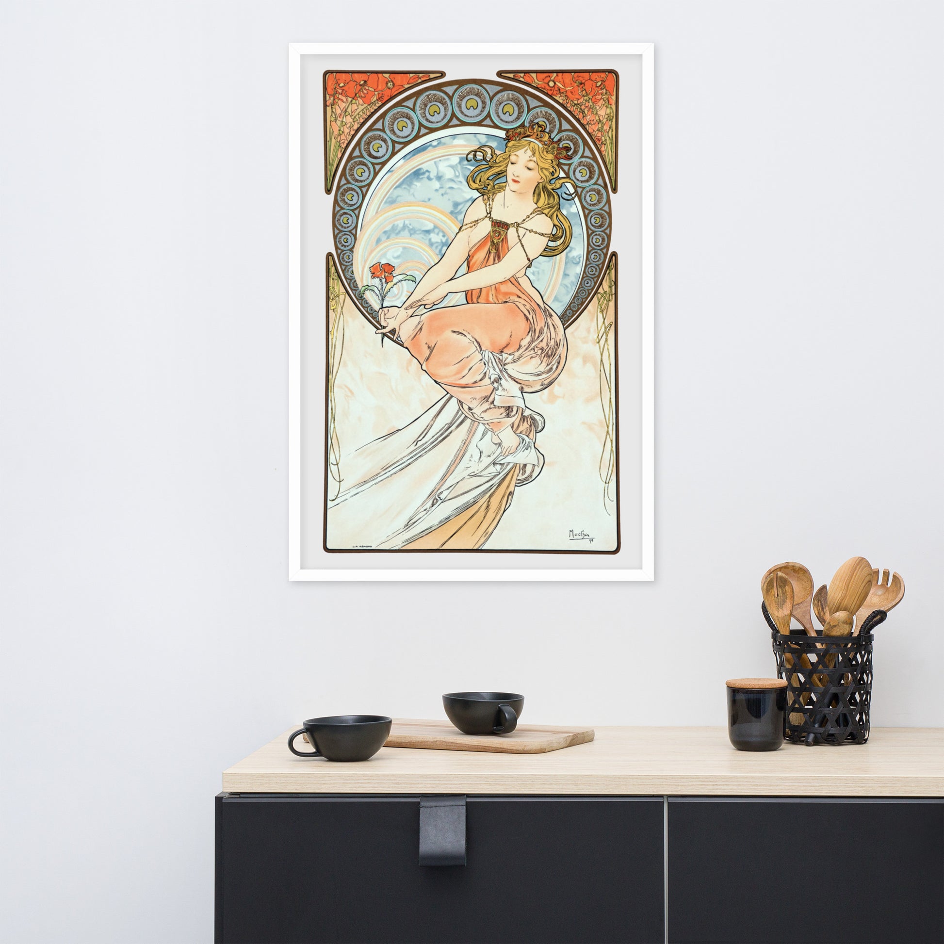 Printed with high-quality materials and professionally framed, this piece offers a gallery-inspired presentation without the need for museum-grade or archival inks. Ideal for collectors, design enthusiasts, and anyone drawn to the romantic allure of Art Nouveau.