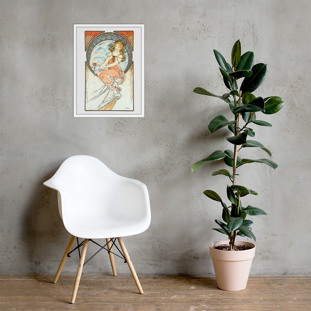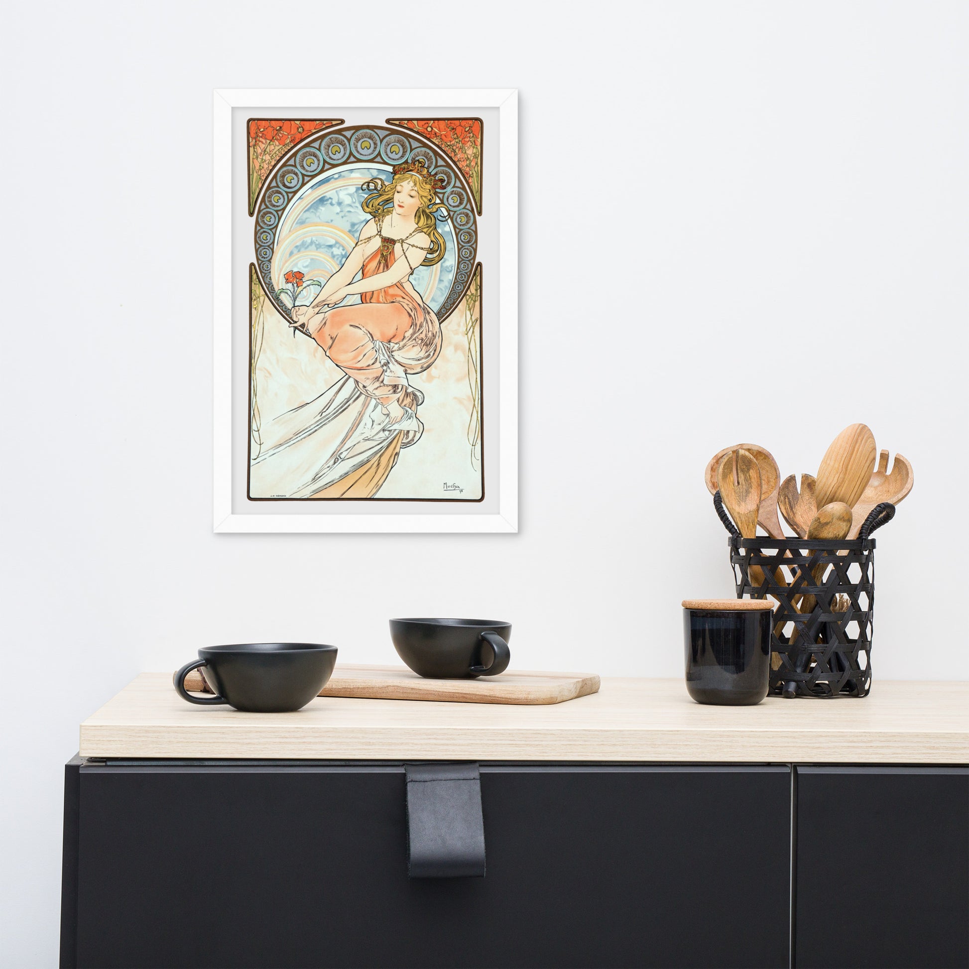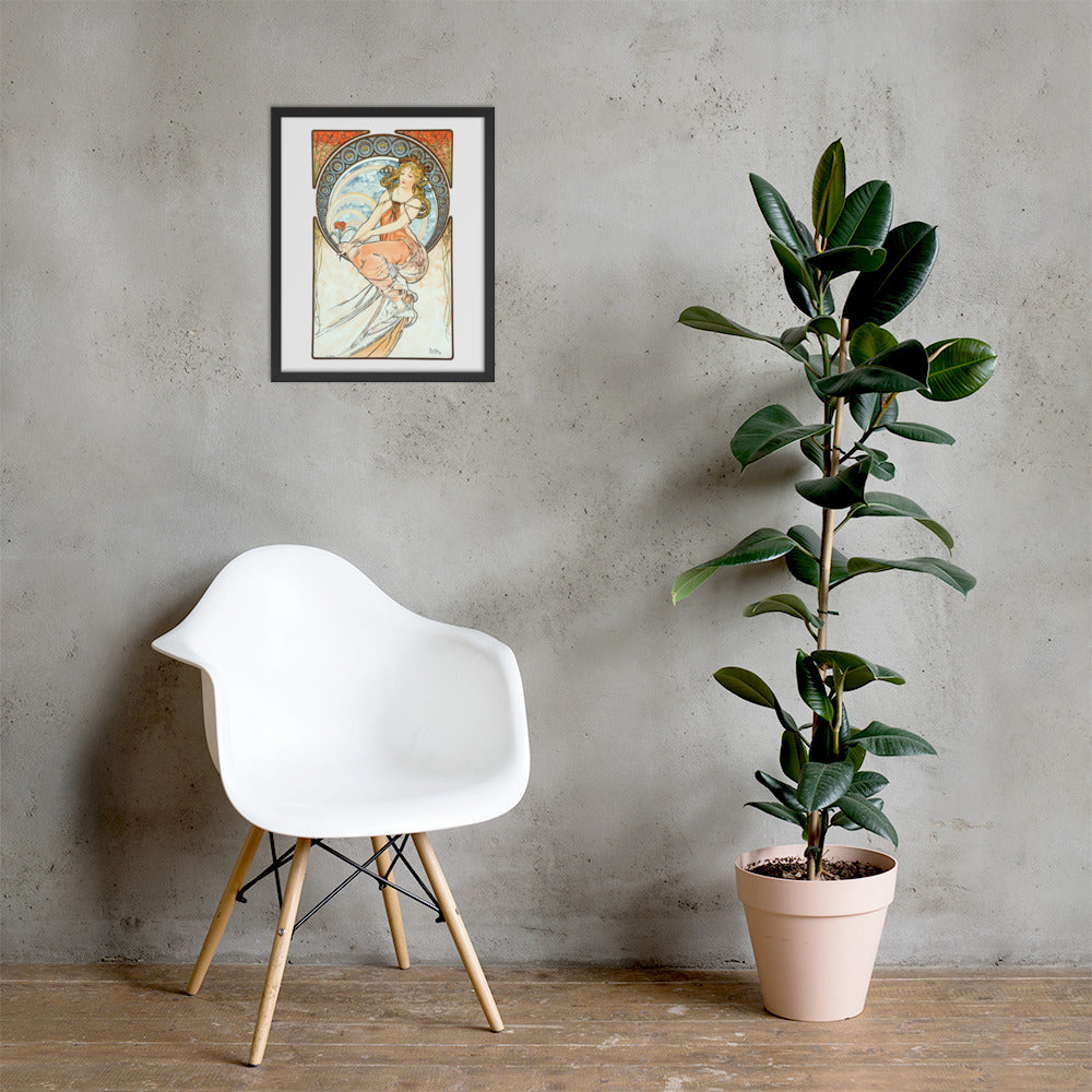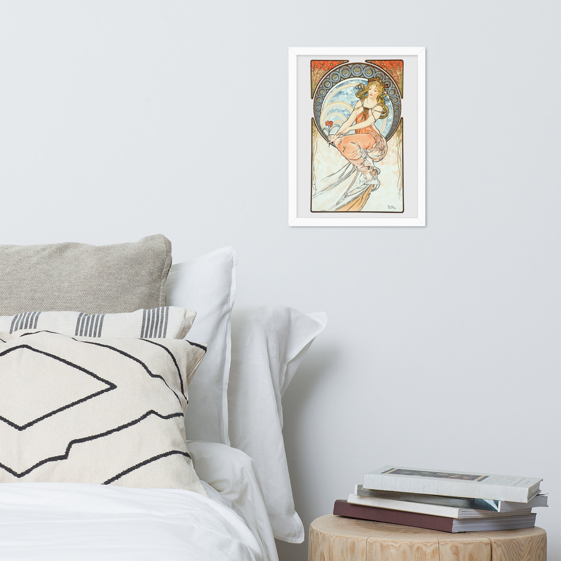 Printed with high-quality materials and professionally framed, this piece offers a gallery-inspired presentation without the need for museum-grade or archival inks. Ideal for collectors, design enthusiasts, and anyone drawn to the romantic allure of Art Nouveau.