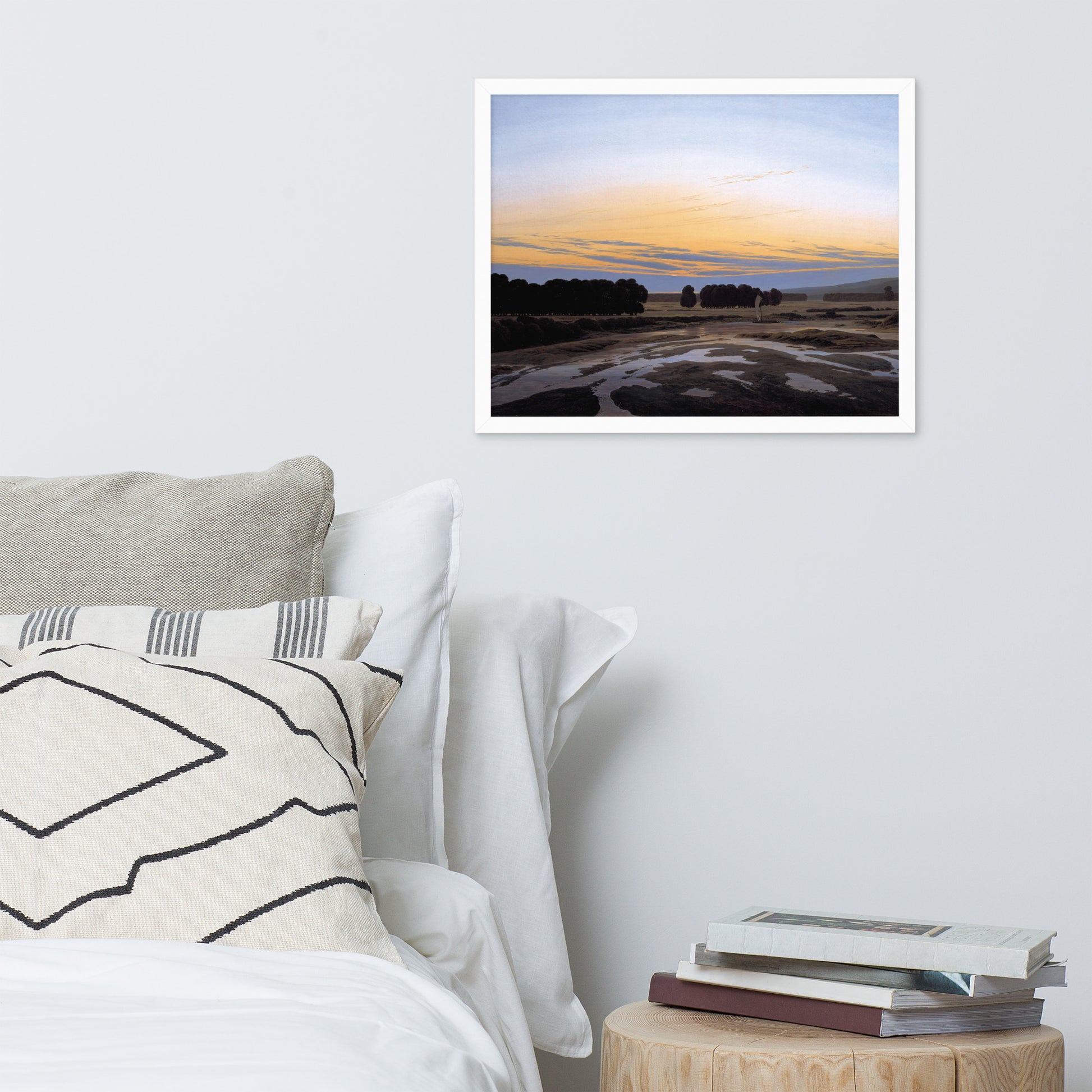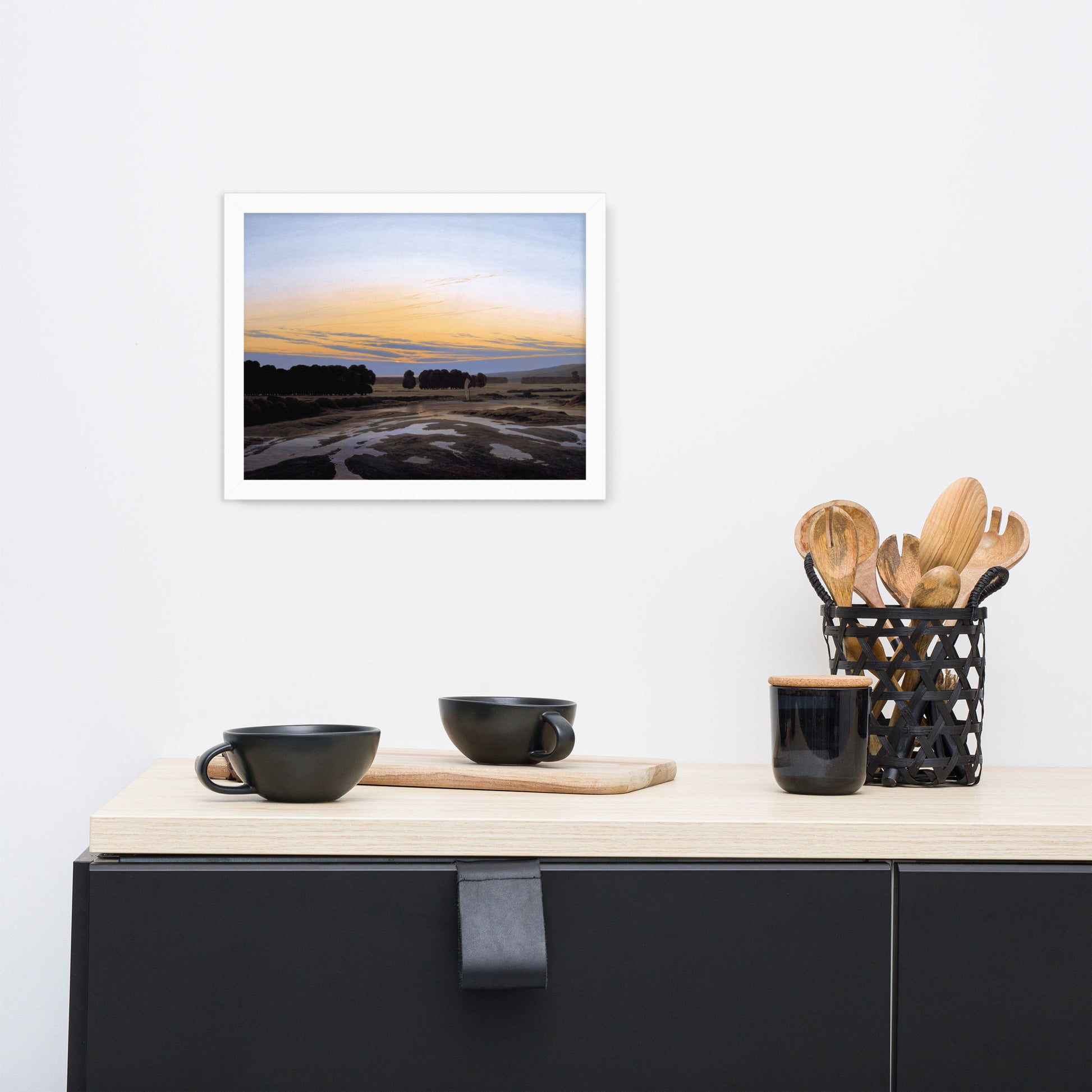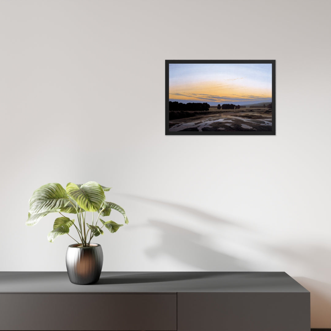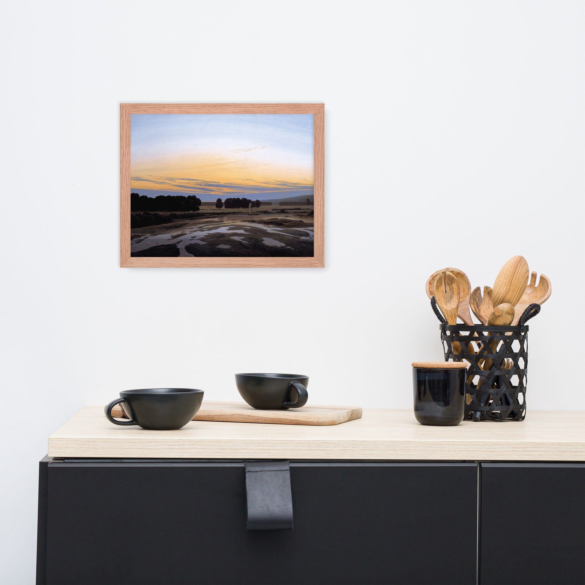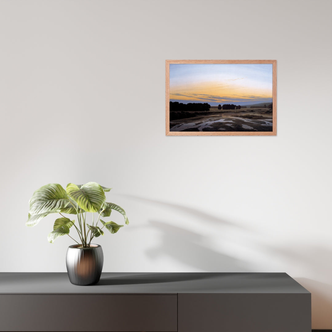 Offered as a premium framed wall print, this artwork brings a sense of poetic calm to modern interiors. Its muted palette and expansive horizon make it ideal for minimalist, nature-inspired, or meditative spaces. Whether displayed in a reading nook, studio, or gallery wall, The Great Enclosure offers a timeless escape into the sublime.