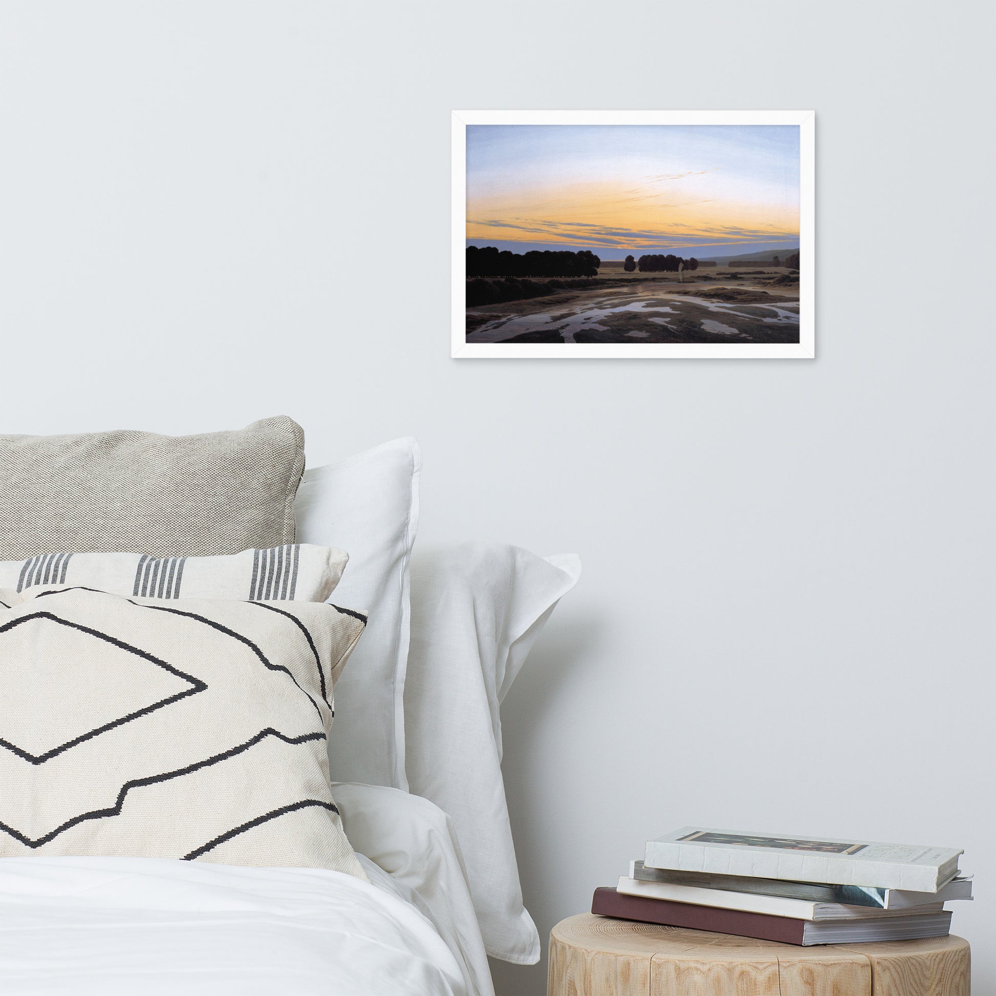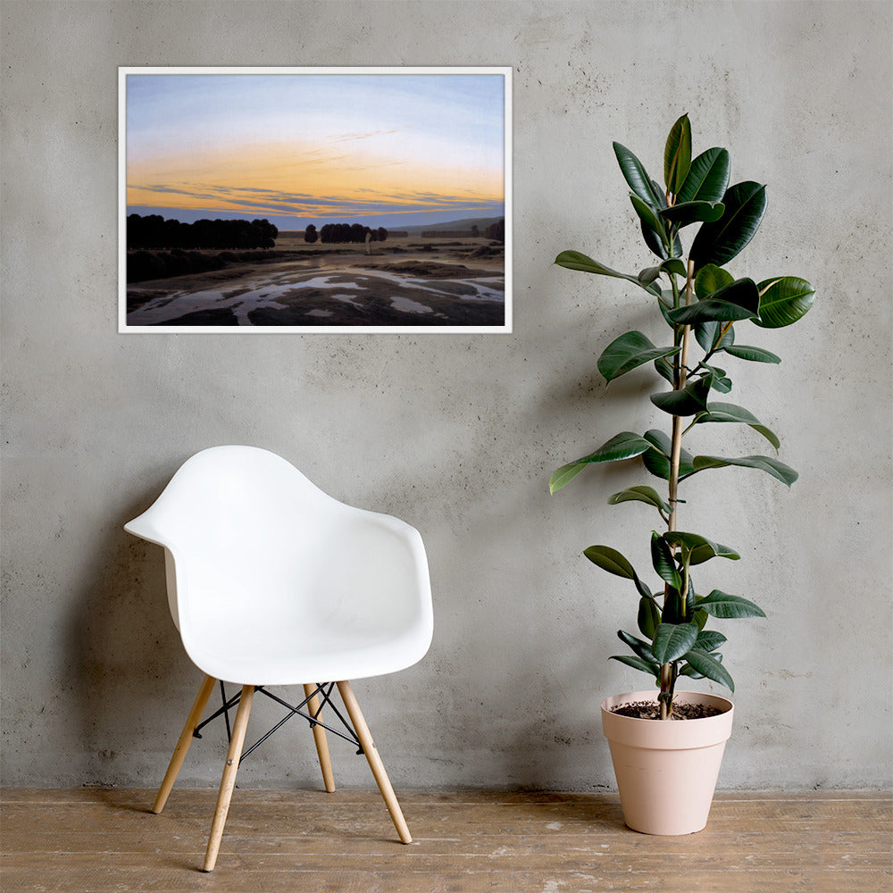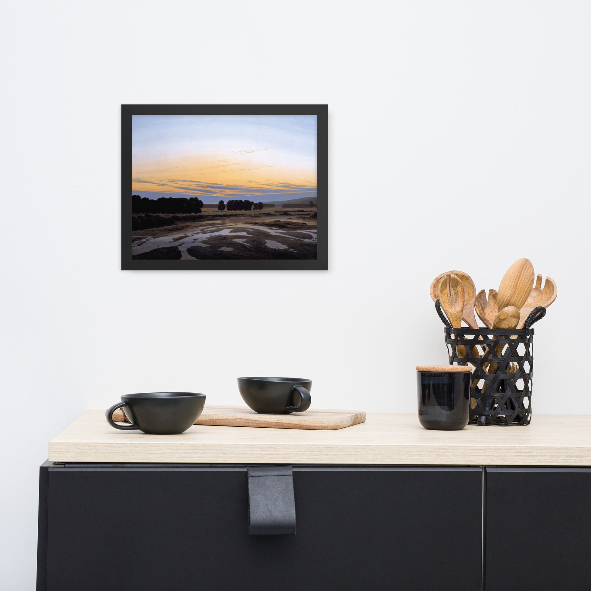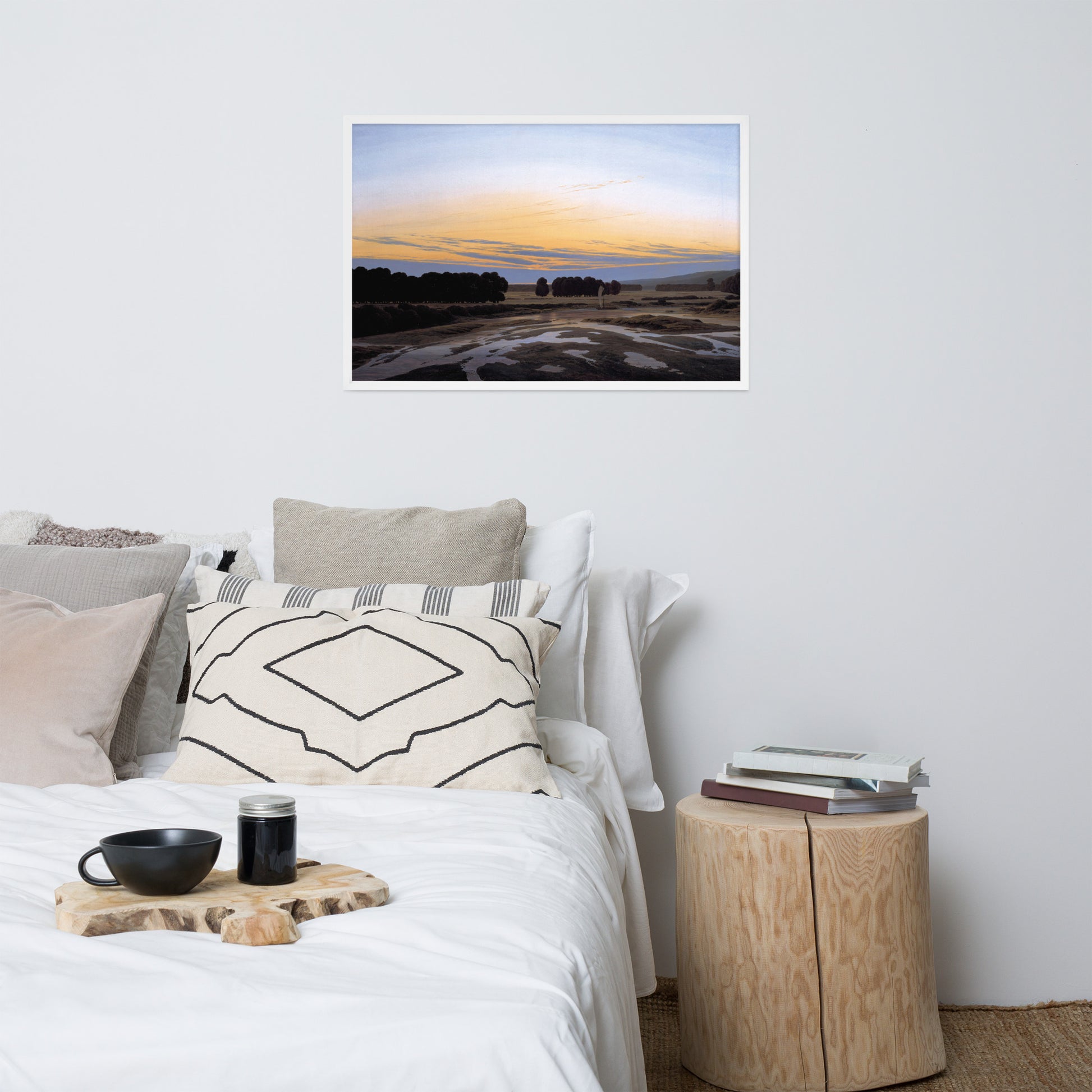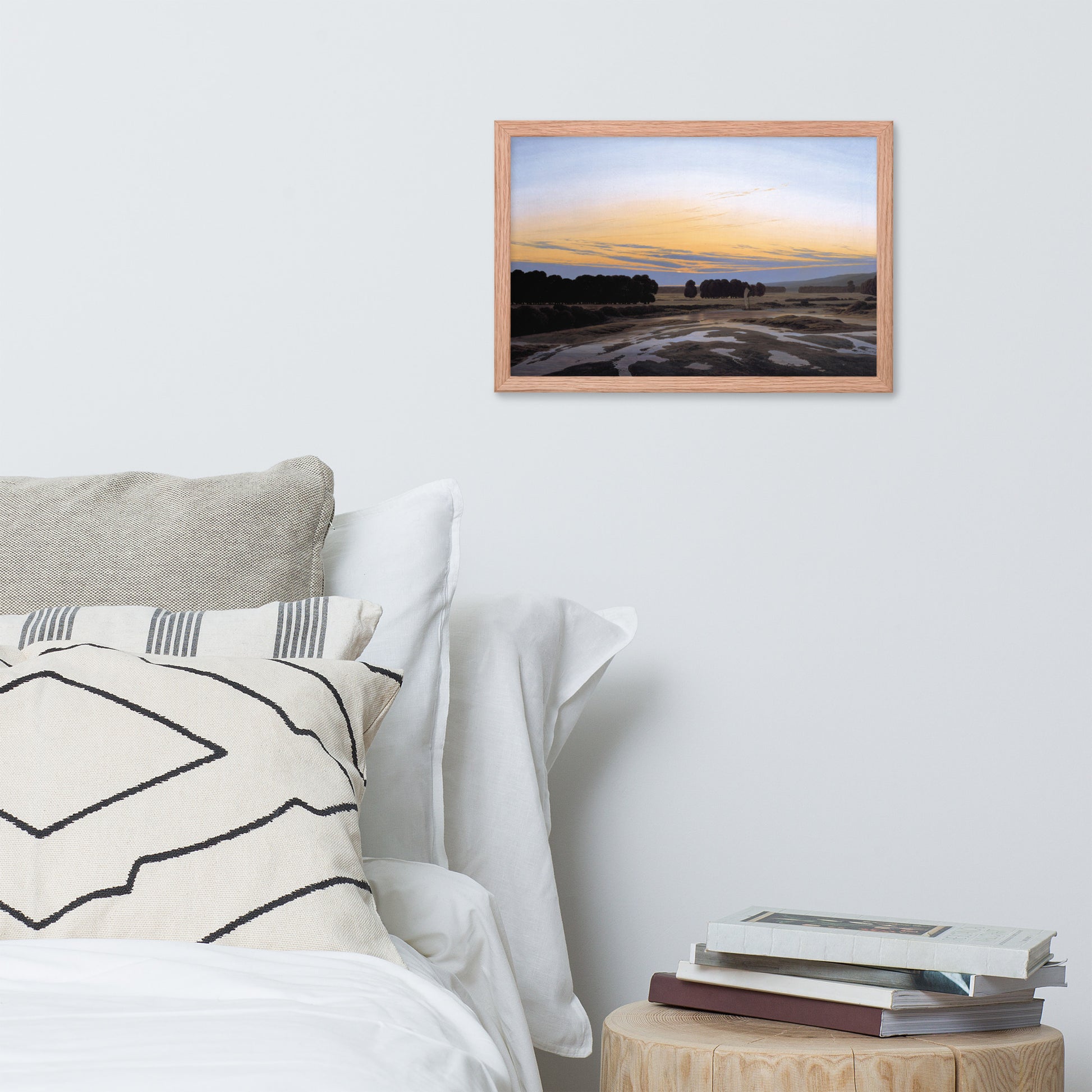 Offered as a premium framed wall print, this artwork brings a sense of poetic calm to modern interiors. Its muted palette and expansive horizon make it ideal for minimalist, nature-inspired, or meditative spaces. Whether displayed in a reading nook, studio, or gallery wall, The Great Enclosure offers a timeless escape into the sublime.