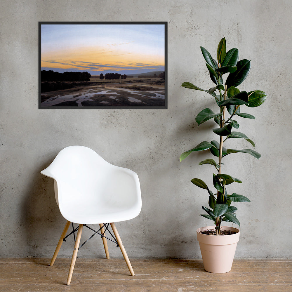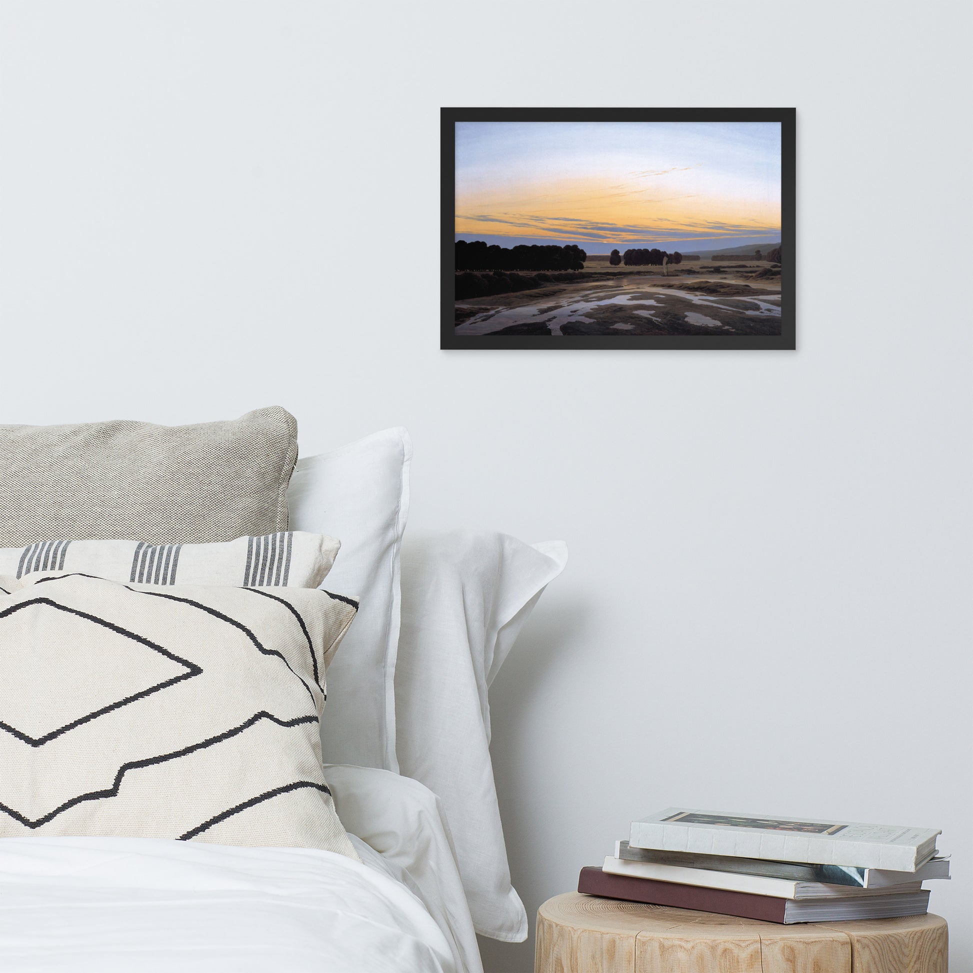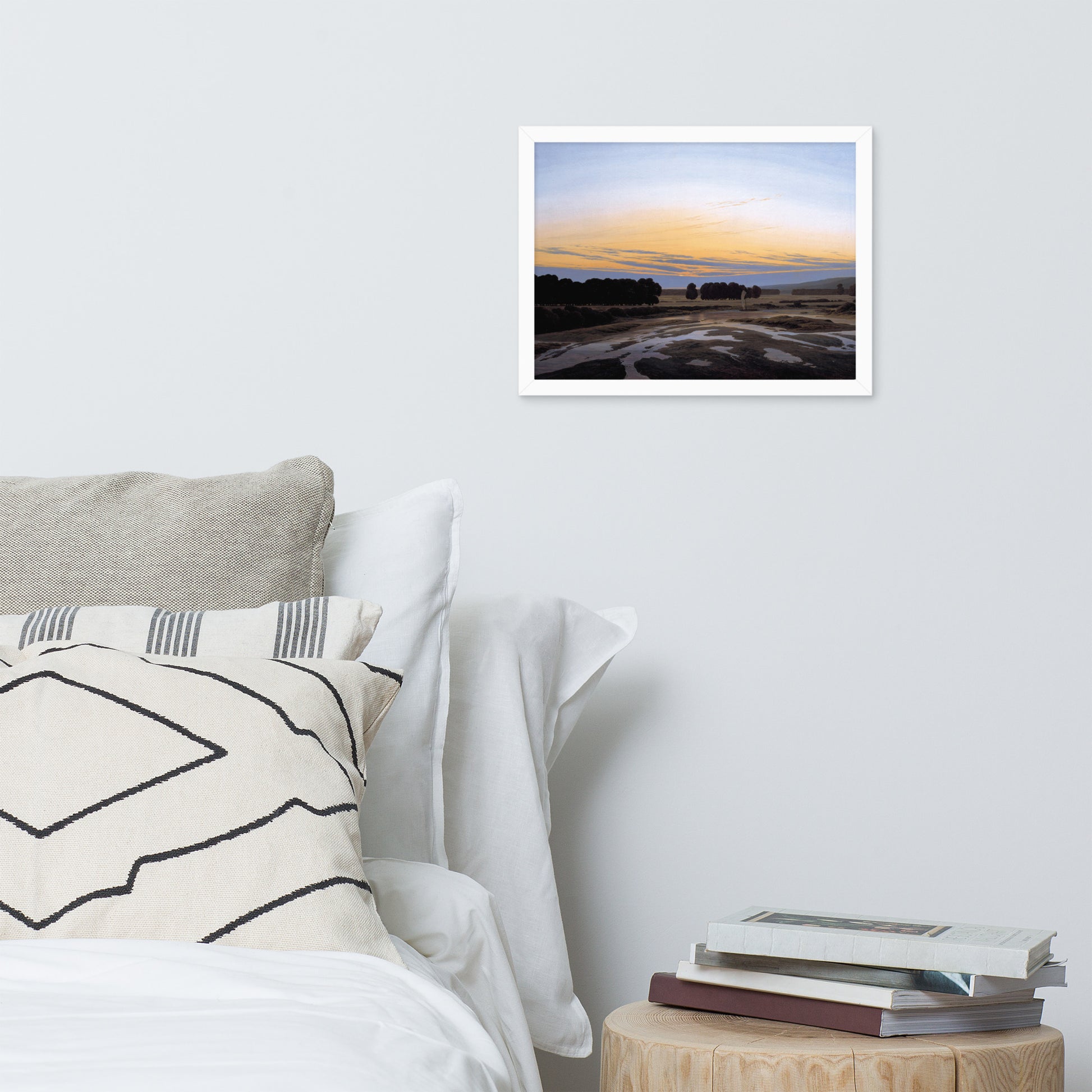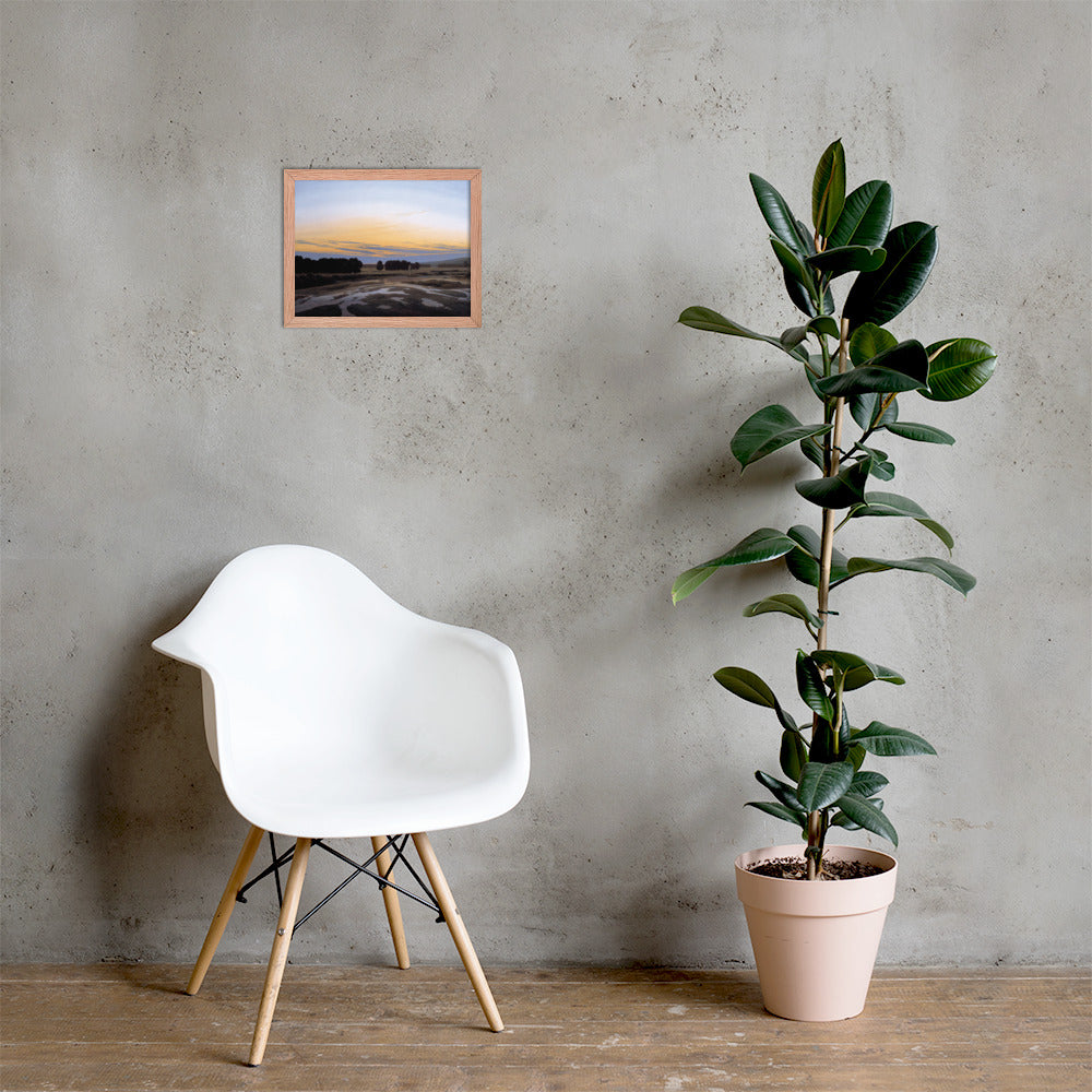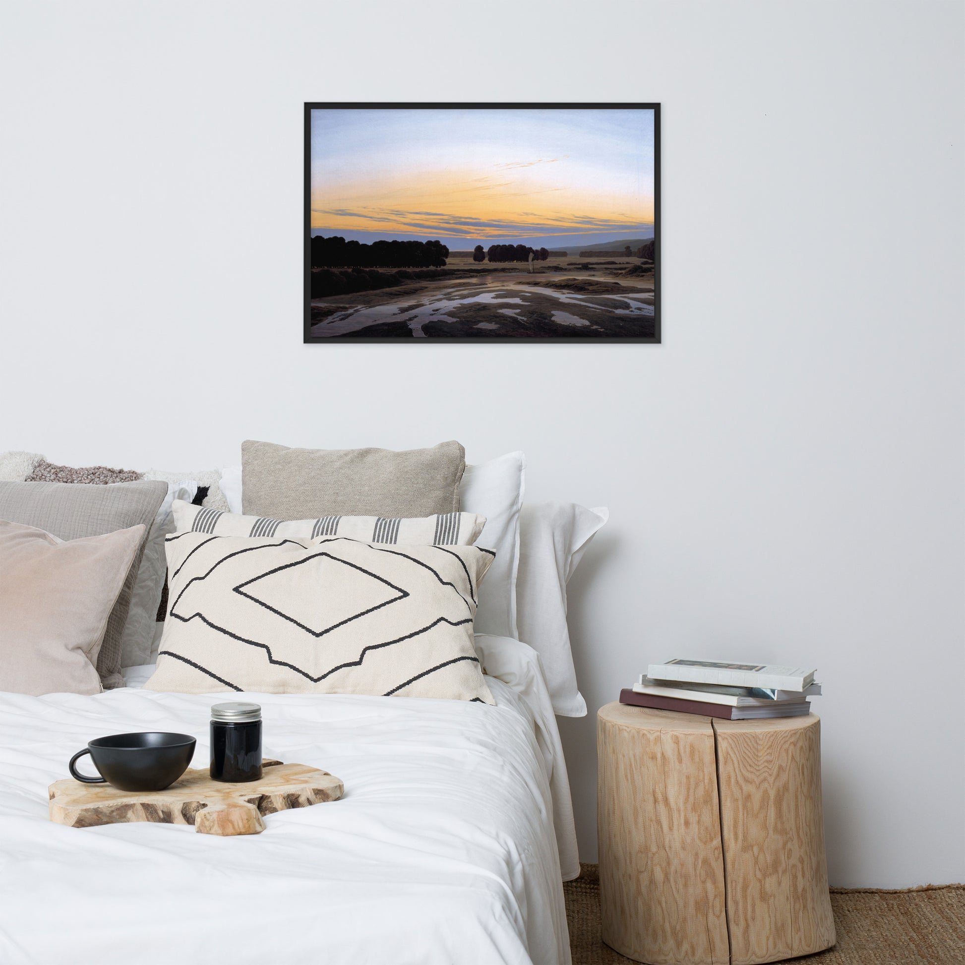 Offered as a premium framed wall print, this artwork brings a sense of poetic calm to modern interiors. Its muted palette and expansive horizon make it ideal for minimalist, nature-inspired, or meditative spaces. Whether displayed in a reading nook, studio, or gallery wall, The Great Enclosure offers a timeless escape into the sublime.